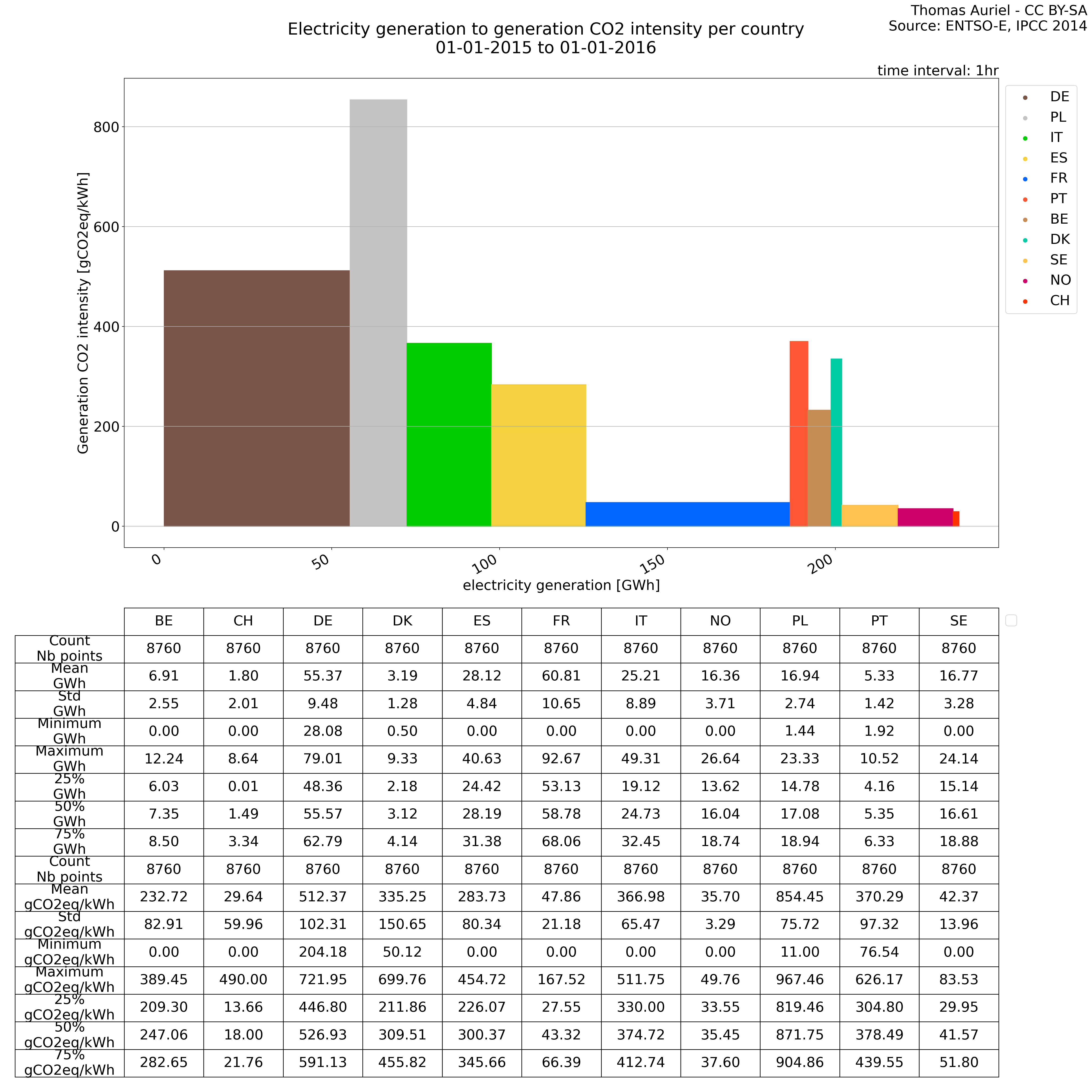 Square plots are a specialized type of graph utilized for visualizing complex data relationships. In the specific square plot under discussion, each square represents a country, distinguished by unique colors. This plot is designed to compare two key variables: average production and average CO2 intensity, across a range of countries.
