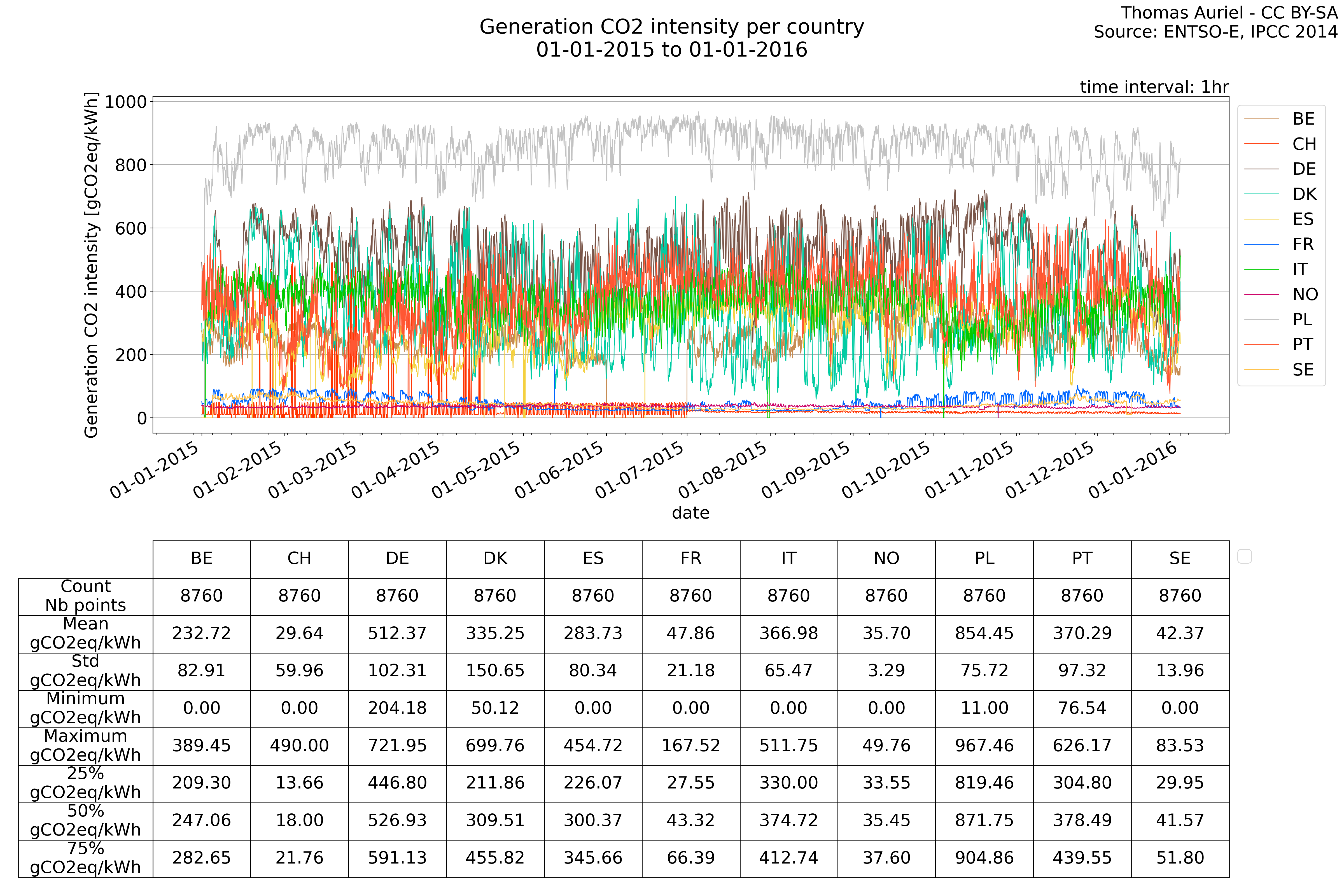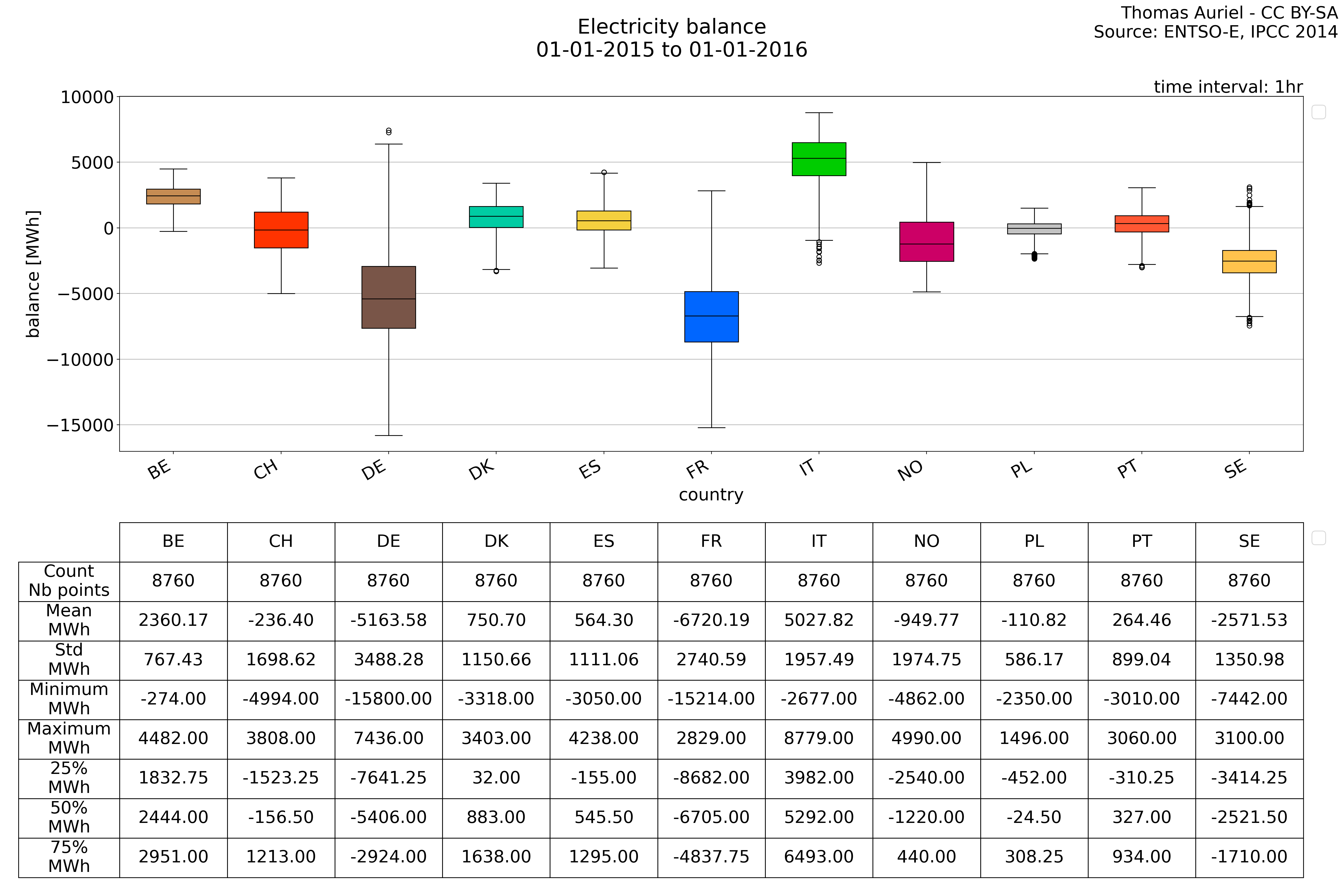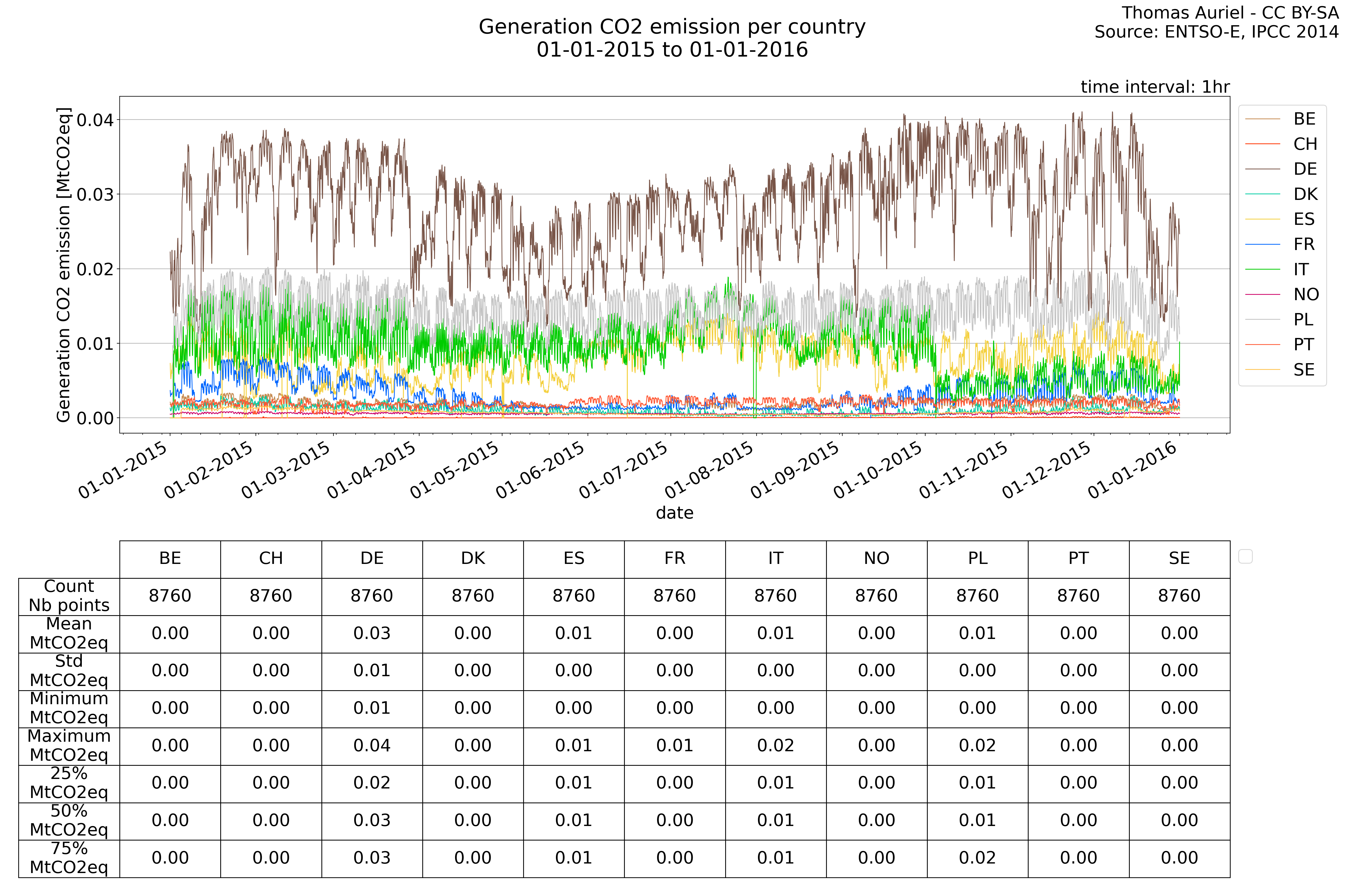 In these hourly line plots, the x-axis spans the entire year, with hours as individual data points. The y-axis represents the values of production, exchange, consumption, and data emissions, but unlike cumulative plots, these plots are designed for quality control purposes. Each line on the plot corresponds to a specific country and is used to identify data irregularities, holes, or artifacts that may occur within the year. By examining these plots, it is possible to spot discrepancies or missing data points in the hourly records, ensuring data integrity.
