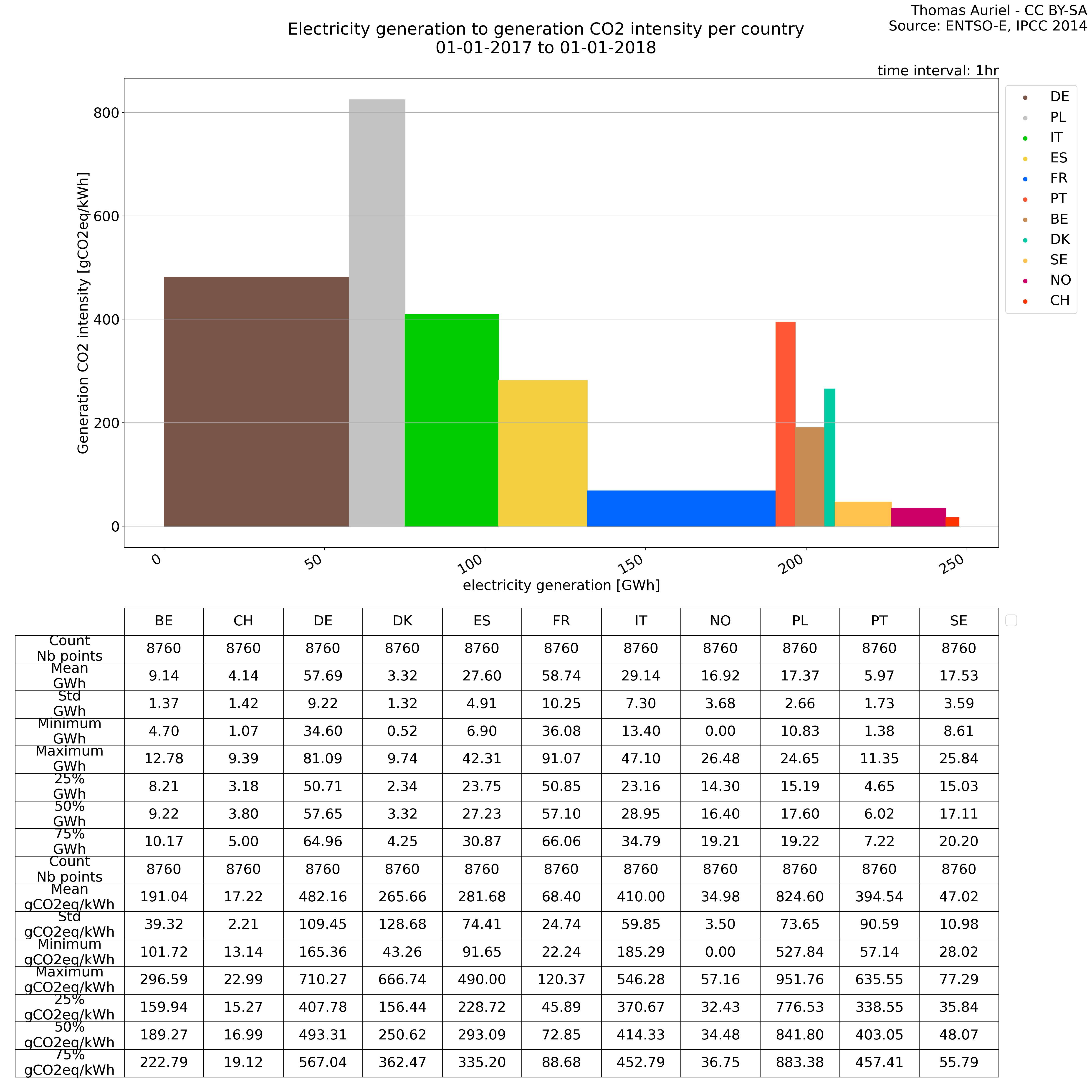 Square plots are a specialized type of graph utilized for visualizing complex data relationships. In the specific square plot under discussion, each square represents a country, distinguished by unique colors. This plot is designed to compare two key variables: average production and average CO2 intensity, across a range of countries.