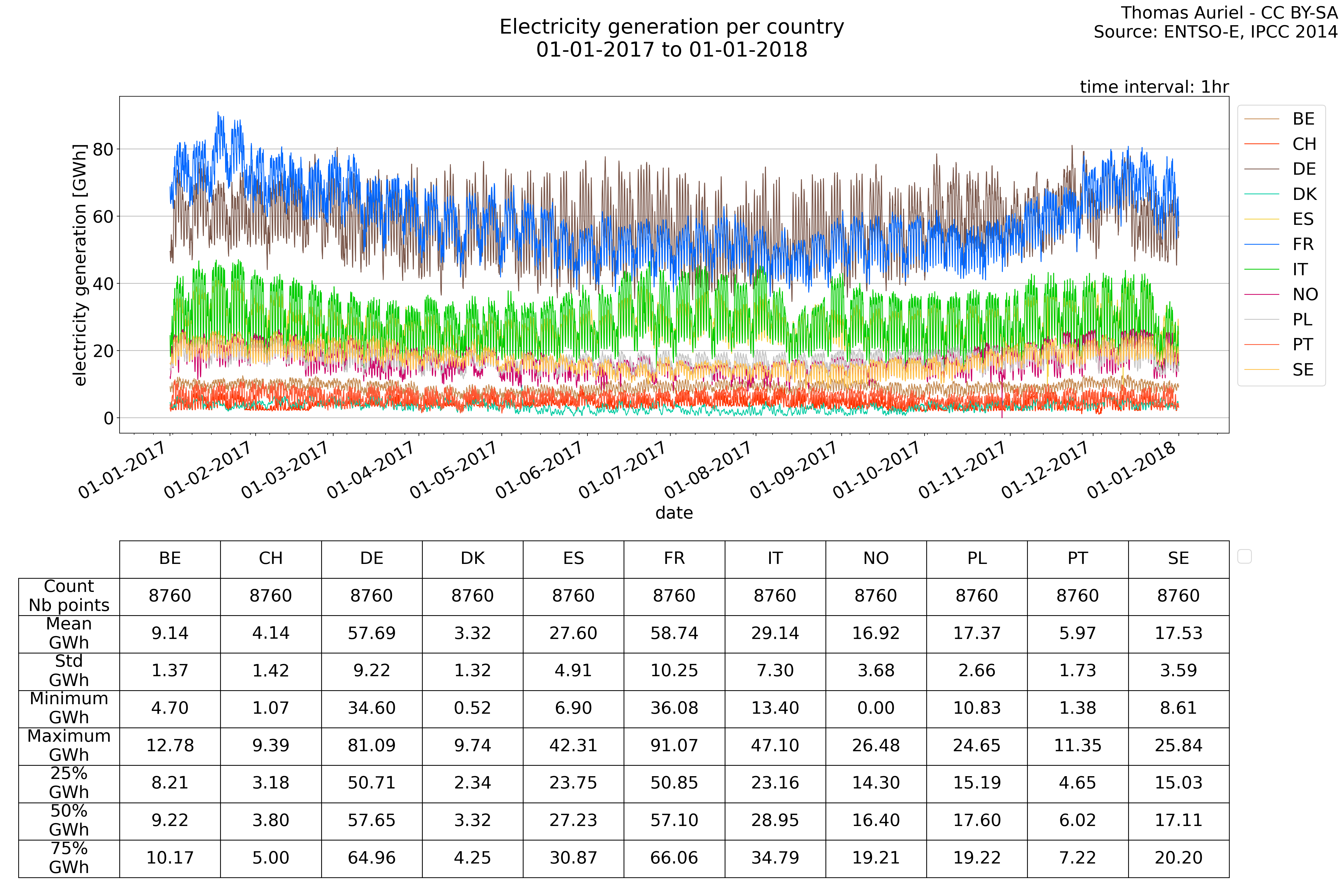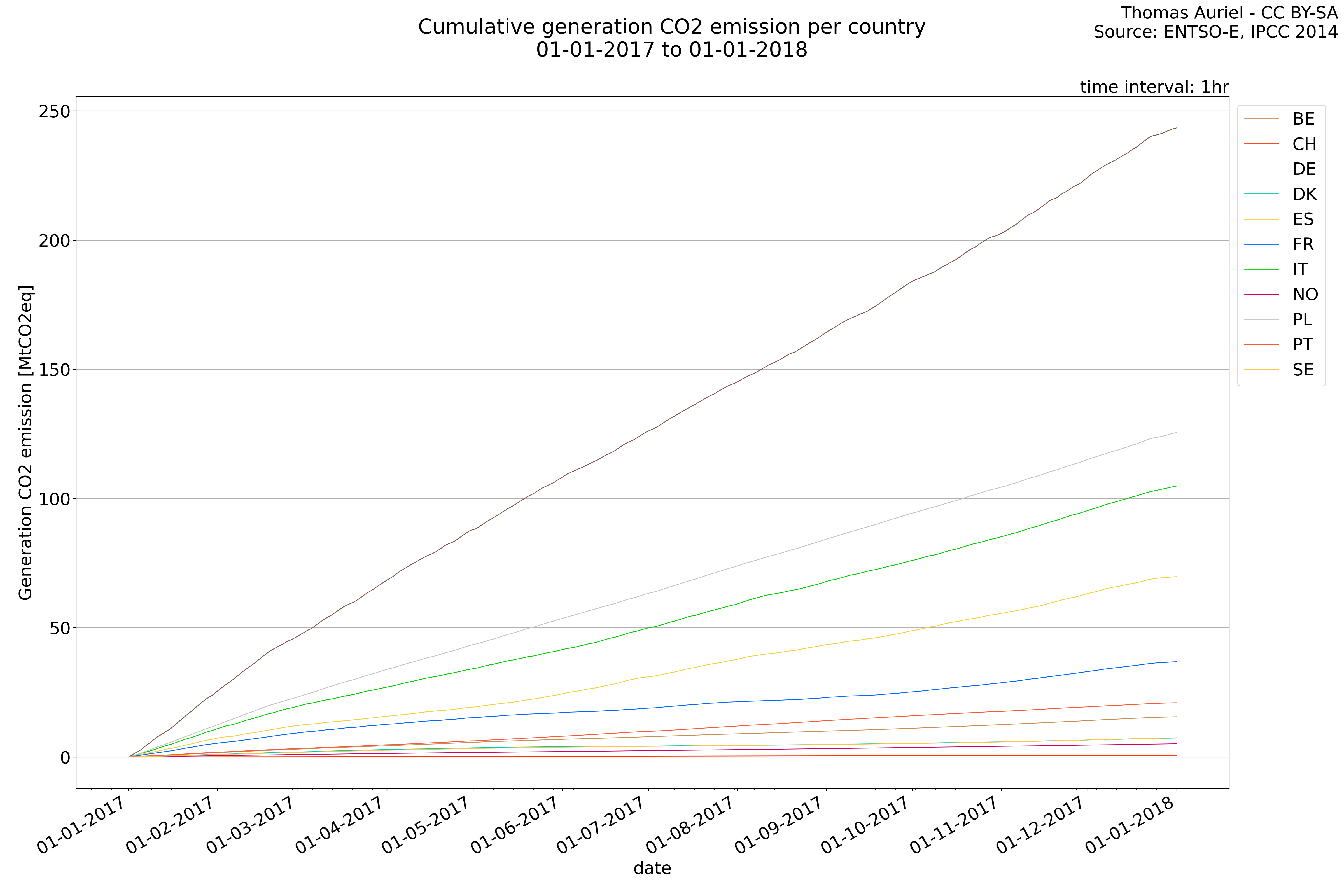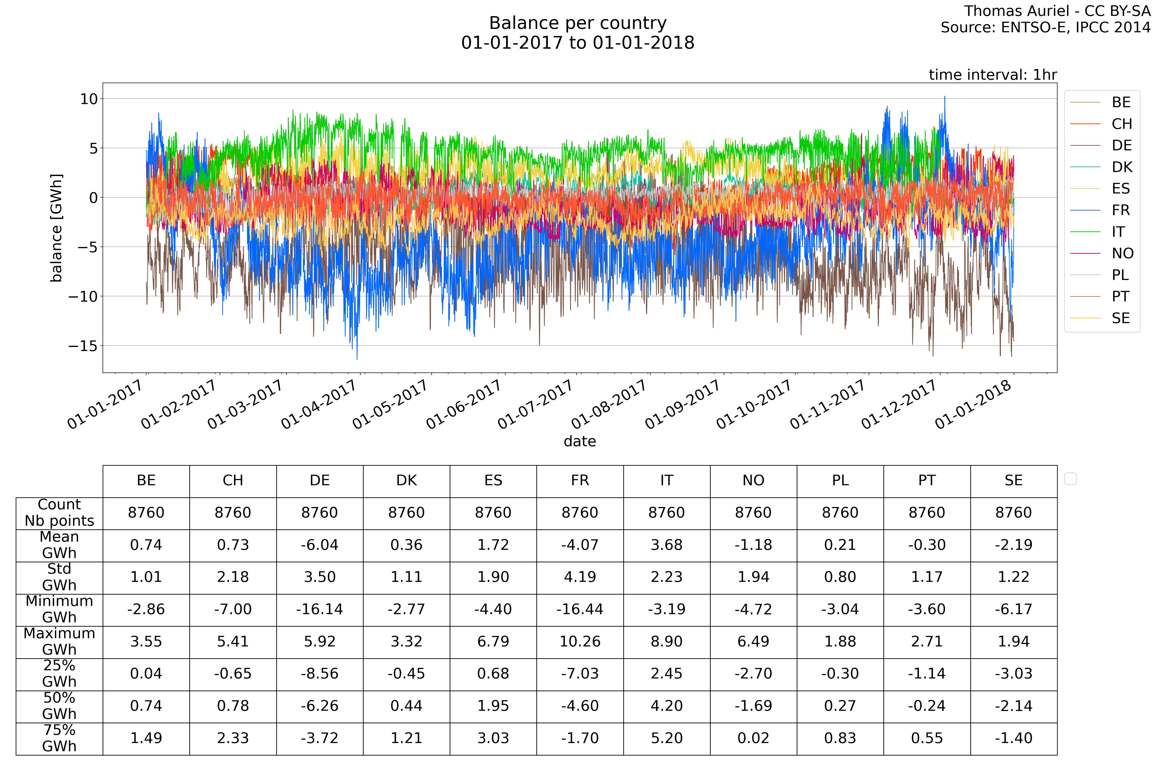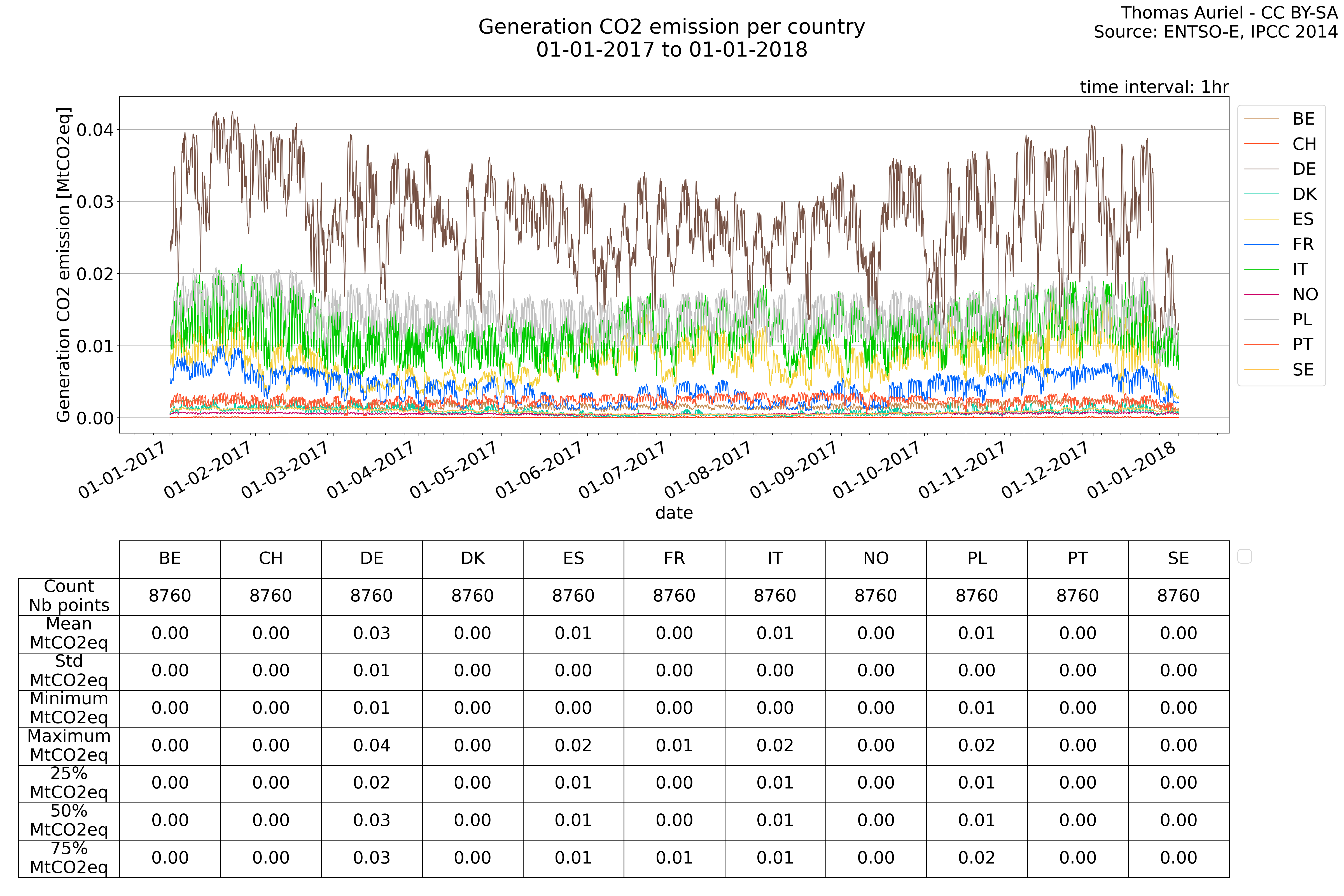 In these hourly line plots, the x-axis spans the entire year, with hours as individual data points. The y-axis represents the values of production, exchange, consumption, and data emissions, but unlike cumulative plots, these plots are designed for quality control purposes. Each line on the plot corresponds to a specific country and is used to identify data irregularities, holes, or artifacts that may occur within the year. By examining these plots, it is possible to spot discrepancies or missing data points in the hourly records, ensuring data integrity.
