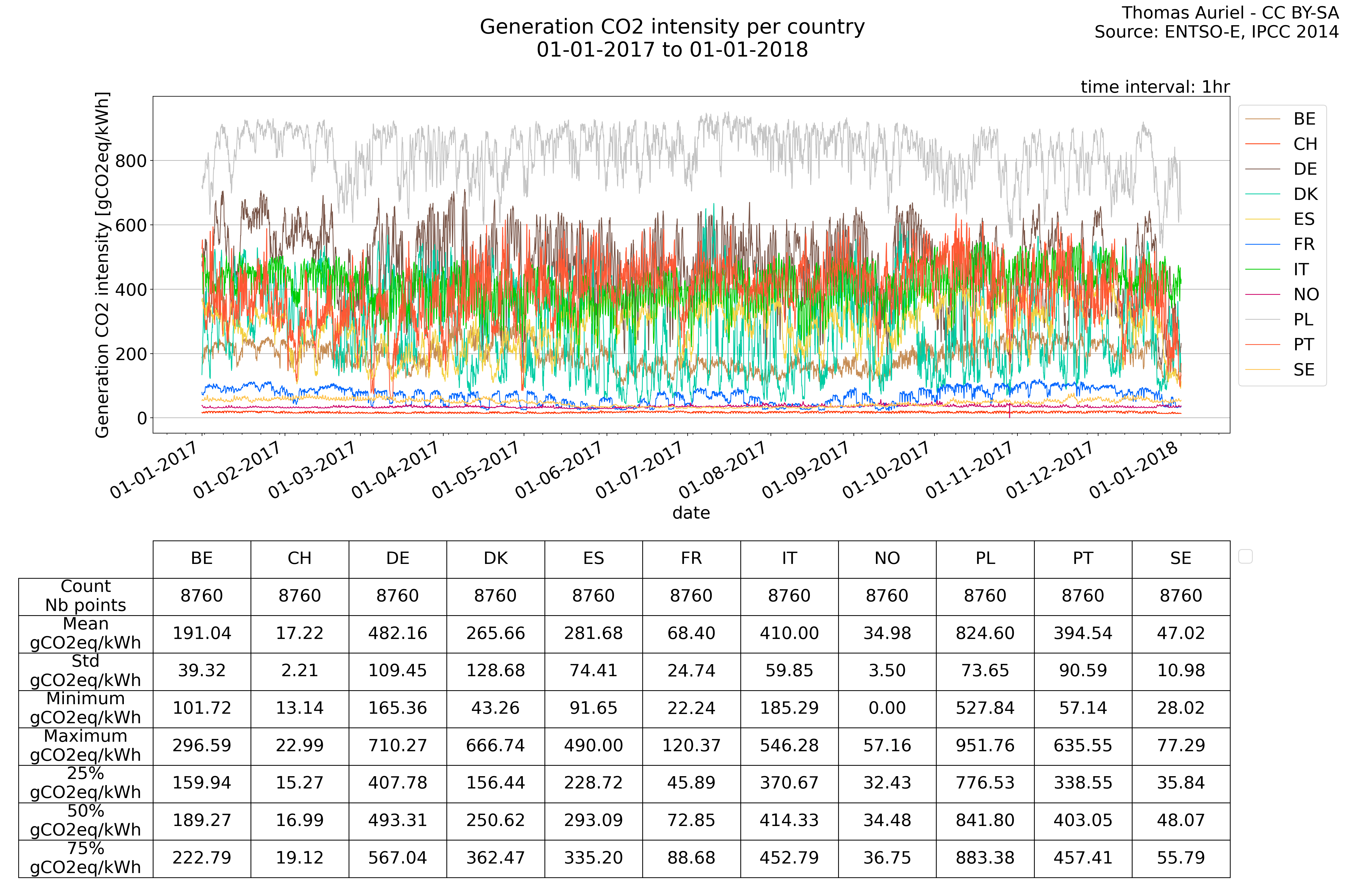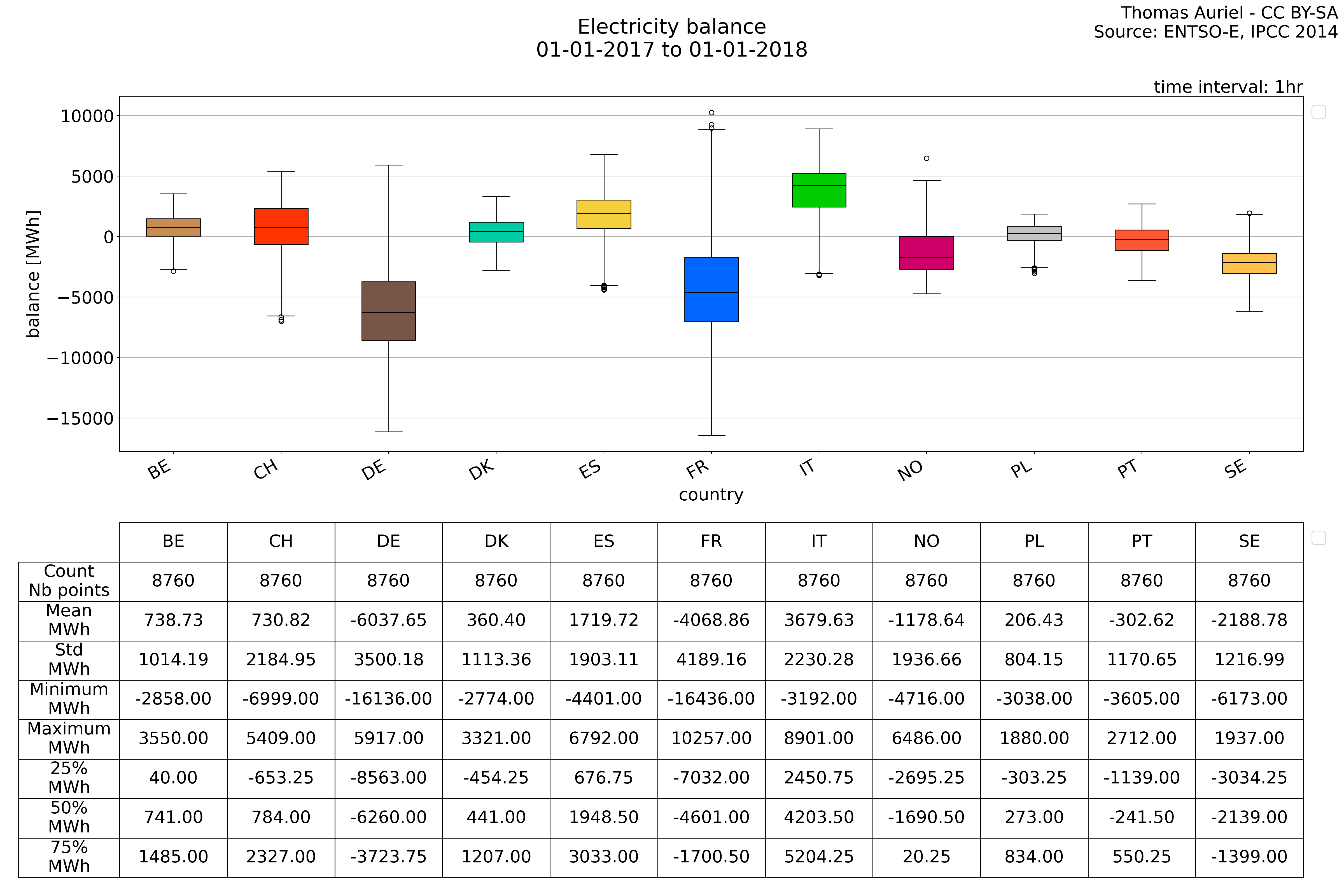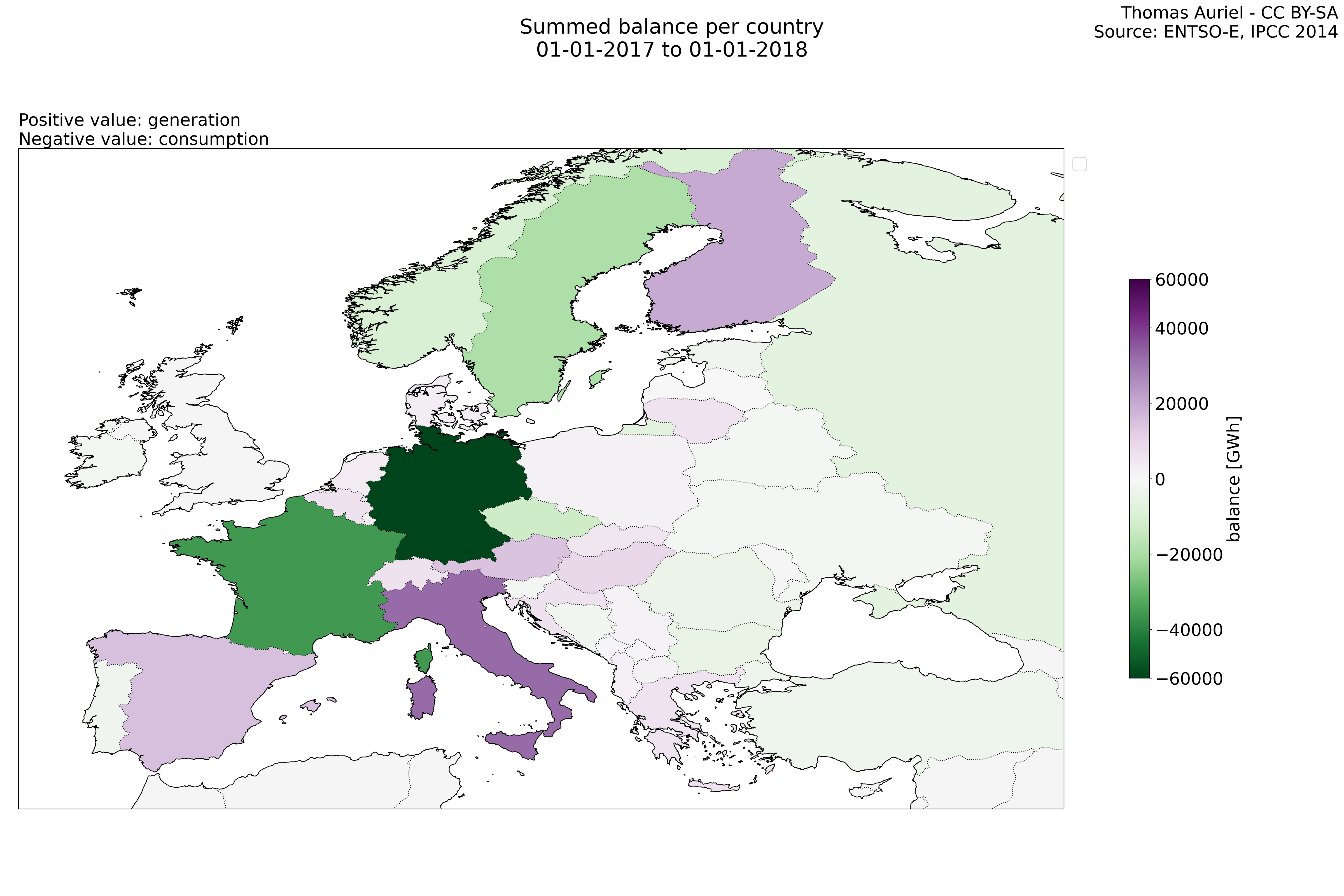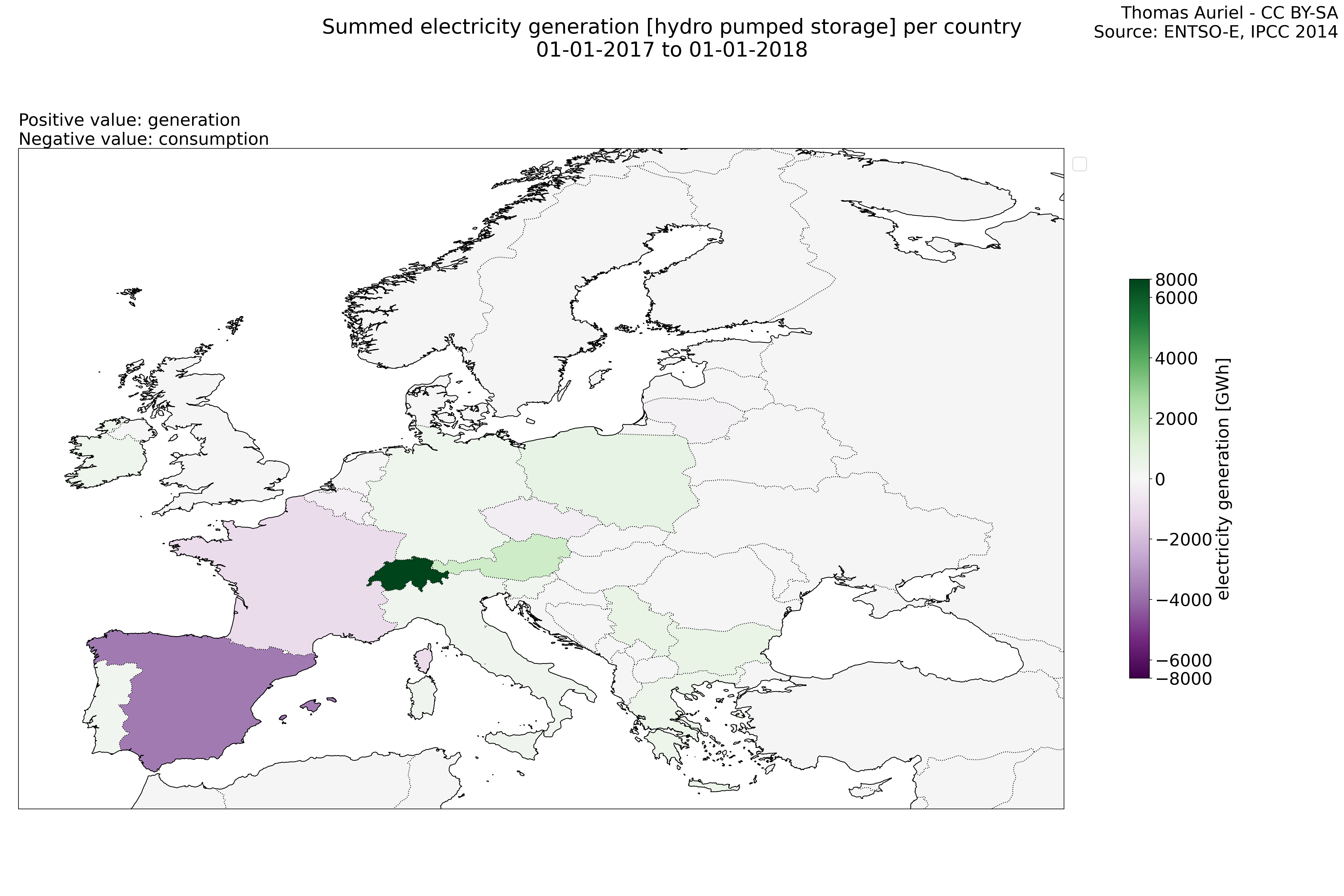 In these hourly line plots, the x-axis spans the entire year, with hours as individual data points. The y-axis represents the values of production, exchange, consumption, and data emissions, but unlike cumulative plots, these plots are designed for quality control purposes. Each line on the plot corresponds to a specific country and is used to identify data irregularities, holes, or artifacts that may occur within the year. By examining these plots, it is possible to spot discrepancies or missing data points in the hourly records, ensuring data integrity.