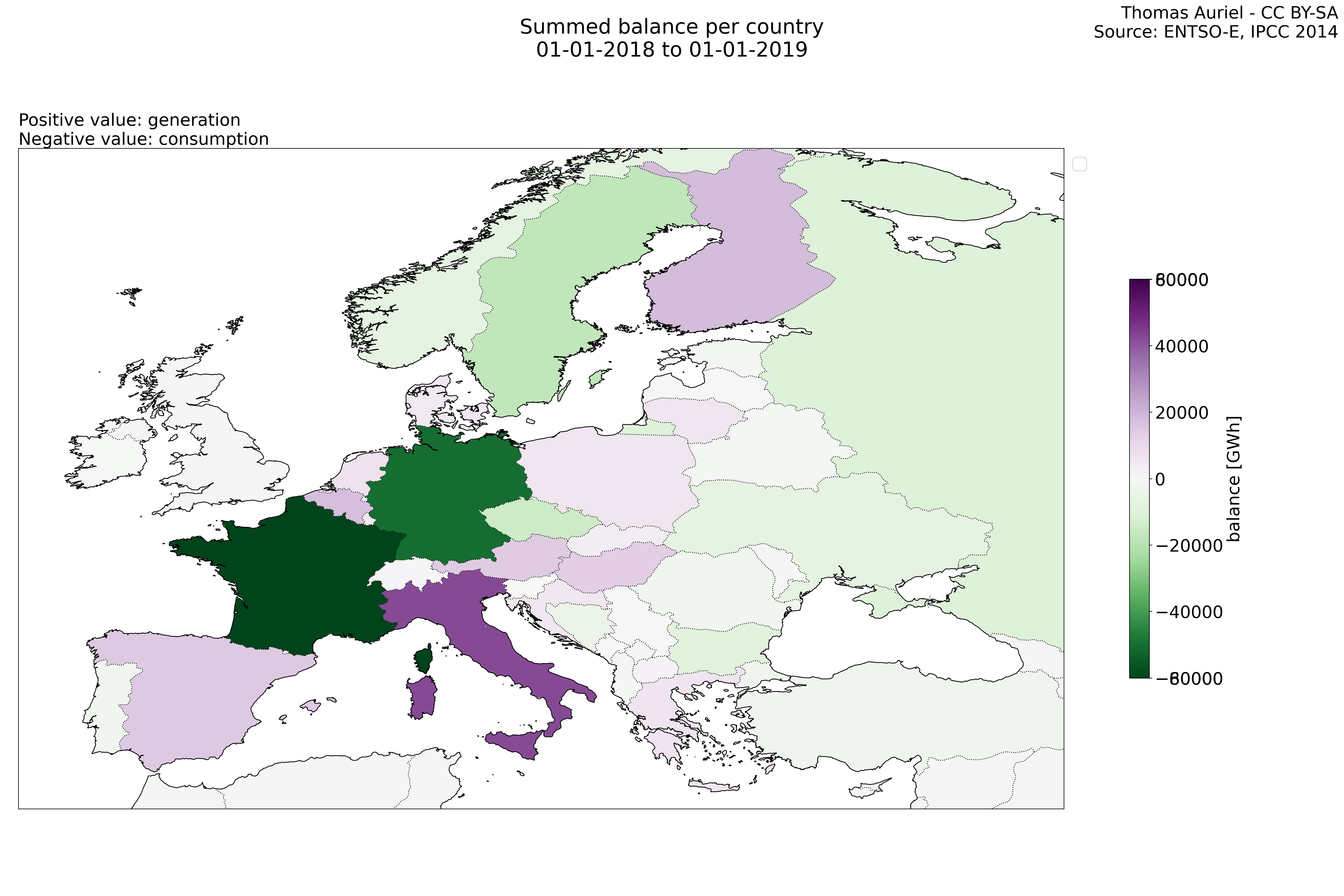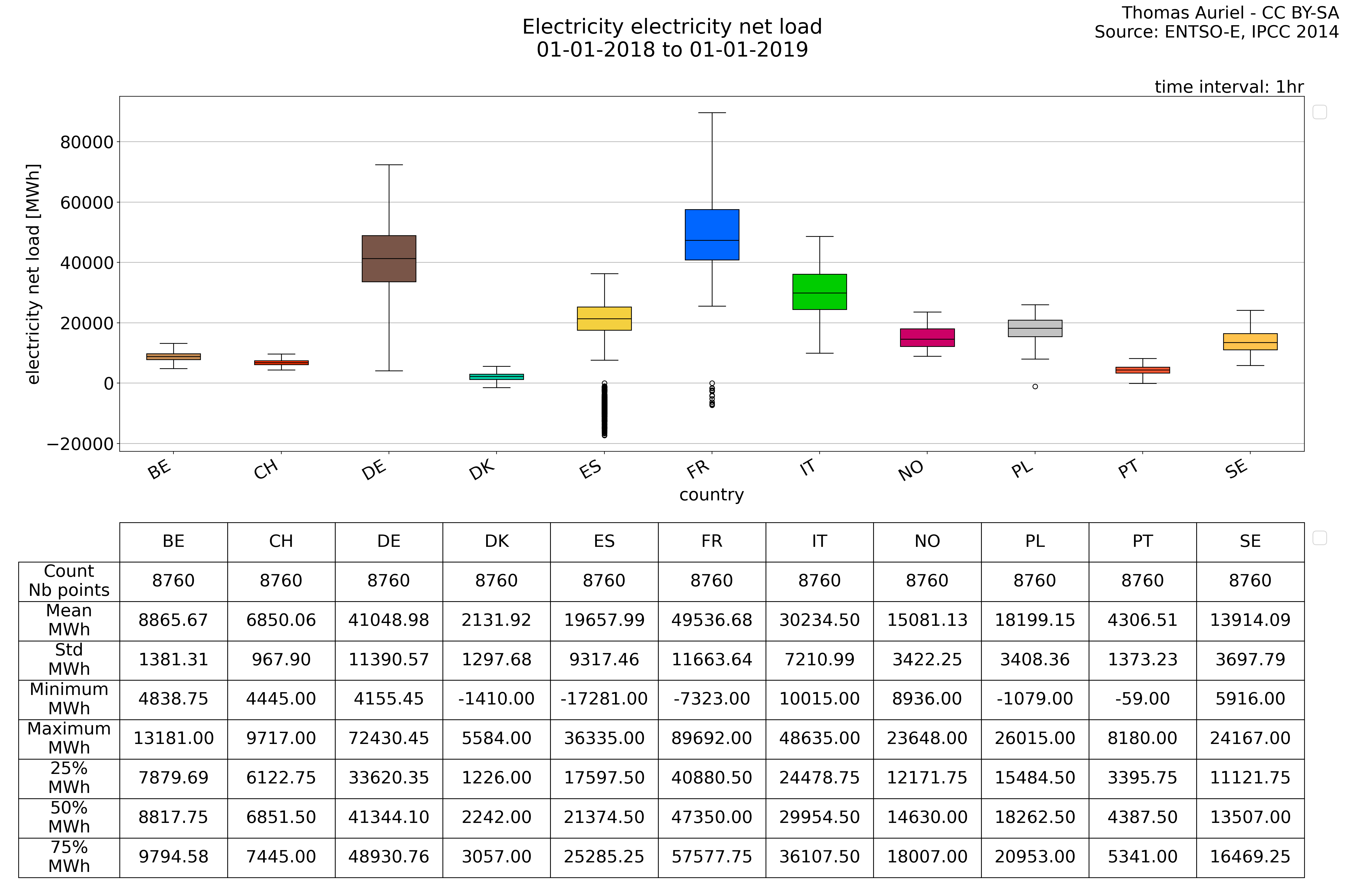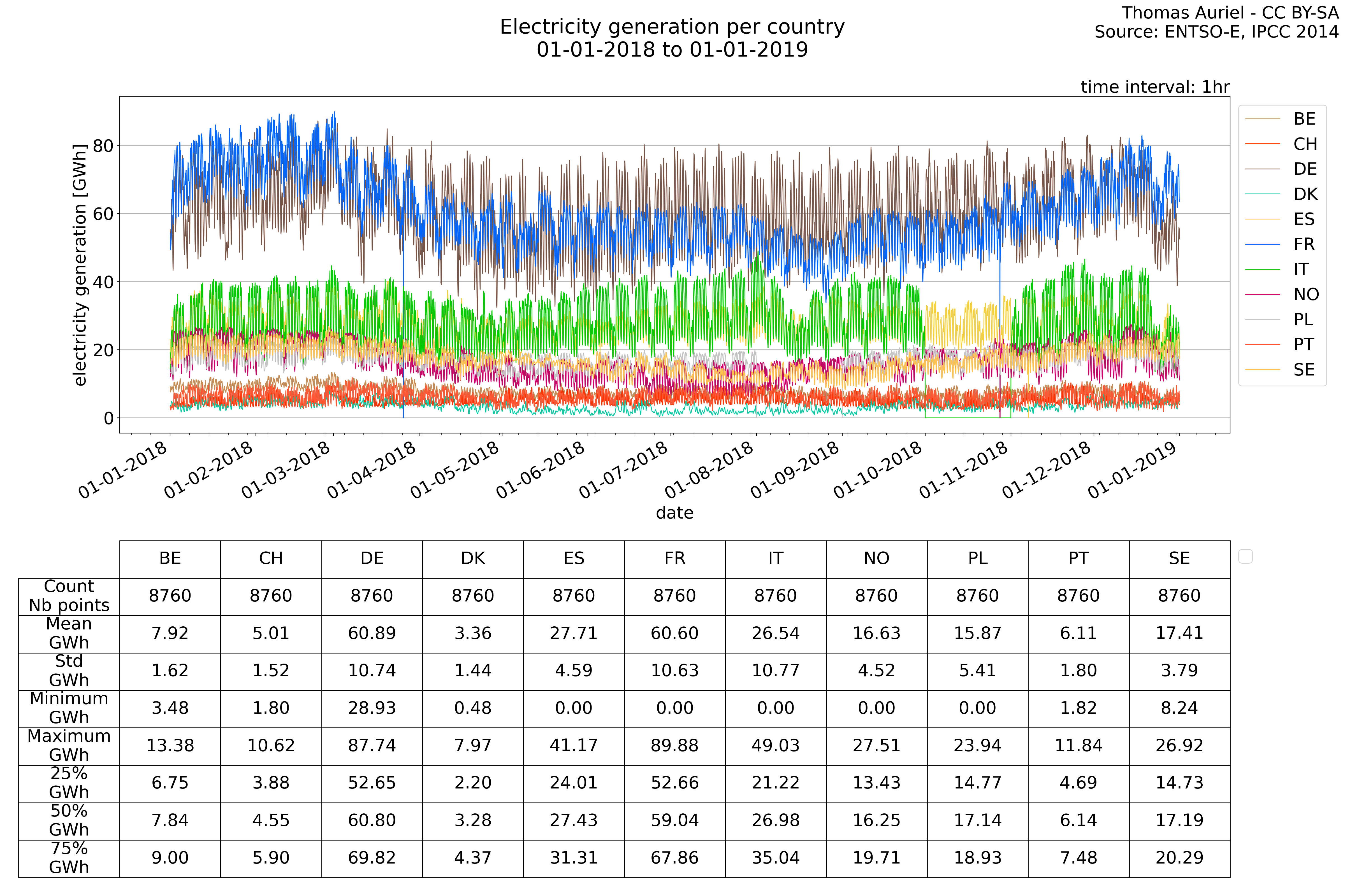 In these hourly line plots, the x-axis spans the entire year, with hours as individual data points. The y-axis represents the values of production, exchange, consumption, and data emissions, but unlike cumulative plots, these plots are designed for quality control purposes. Each line on the plot corresponds to a specific country and is used to identify data irregularities, holes, or artifacts that may occur within the year. By examining these plots, it is possible to spot discrepancies or missing data points in the hourly records, ensuring data integrity.