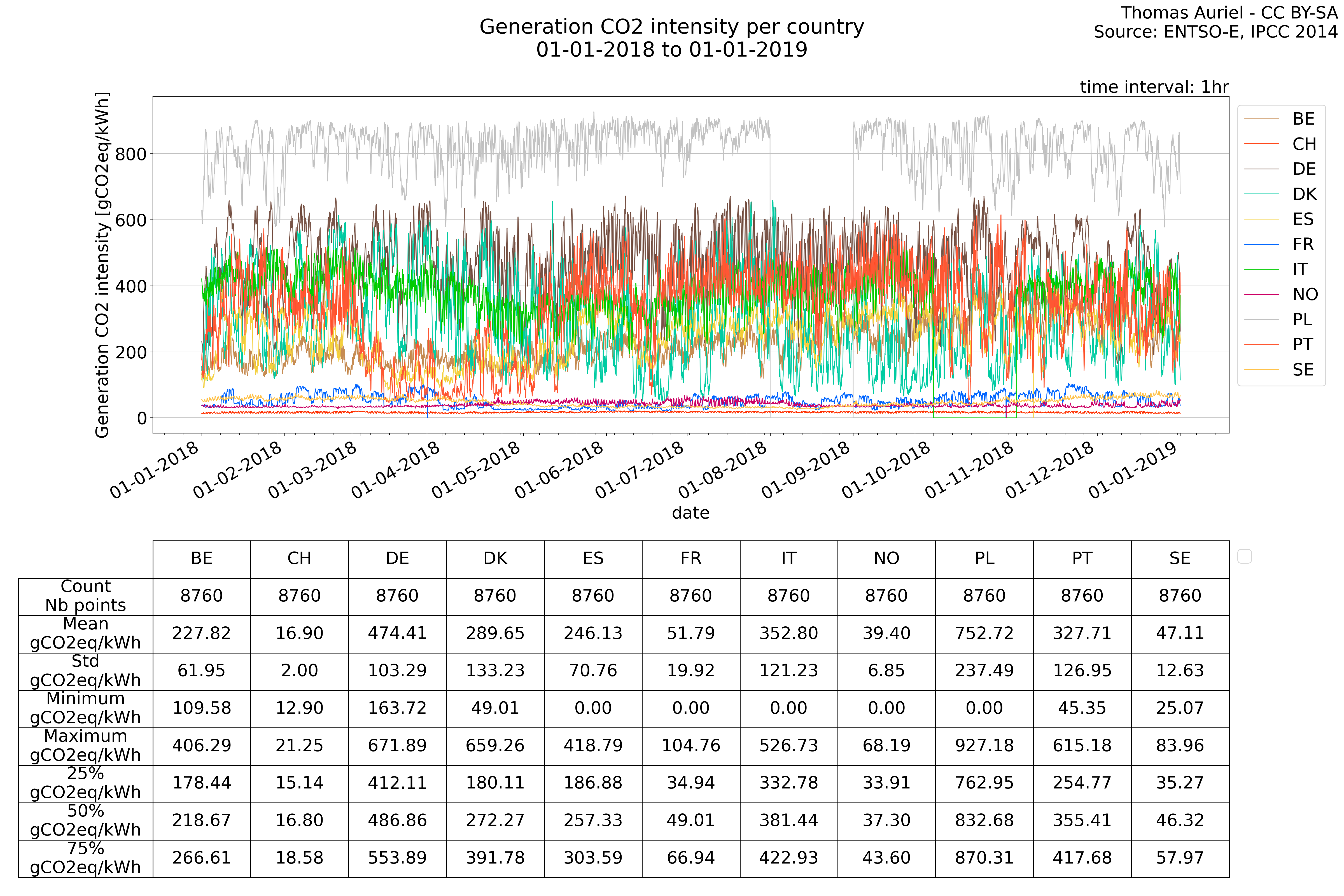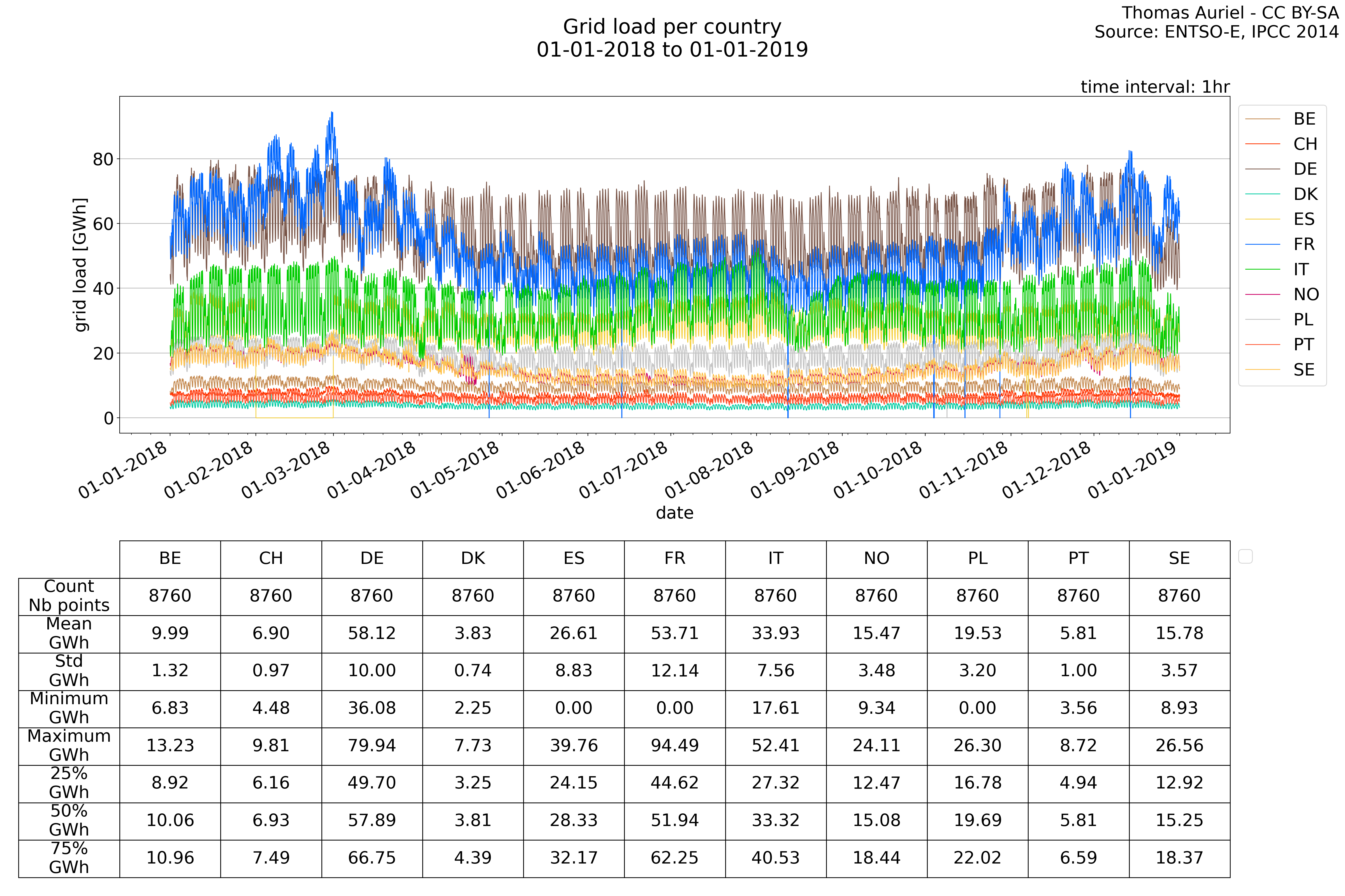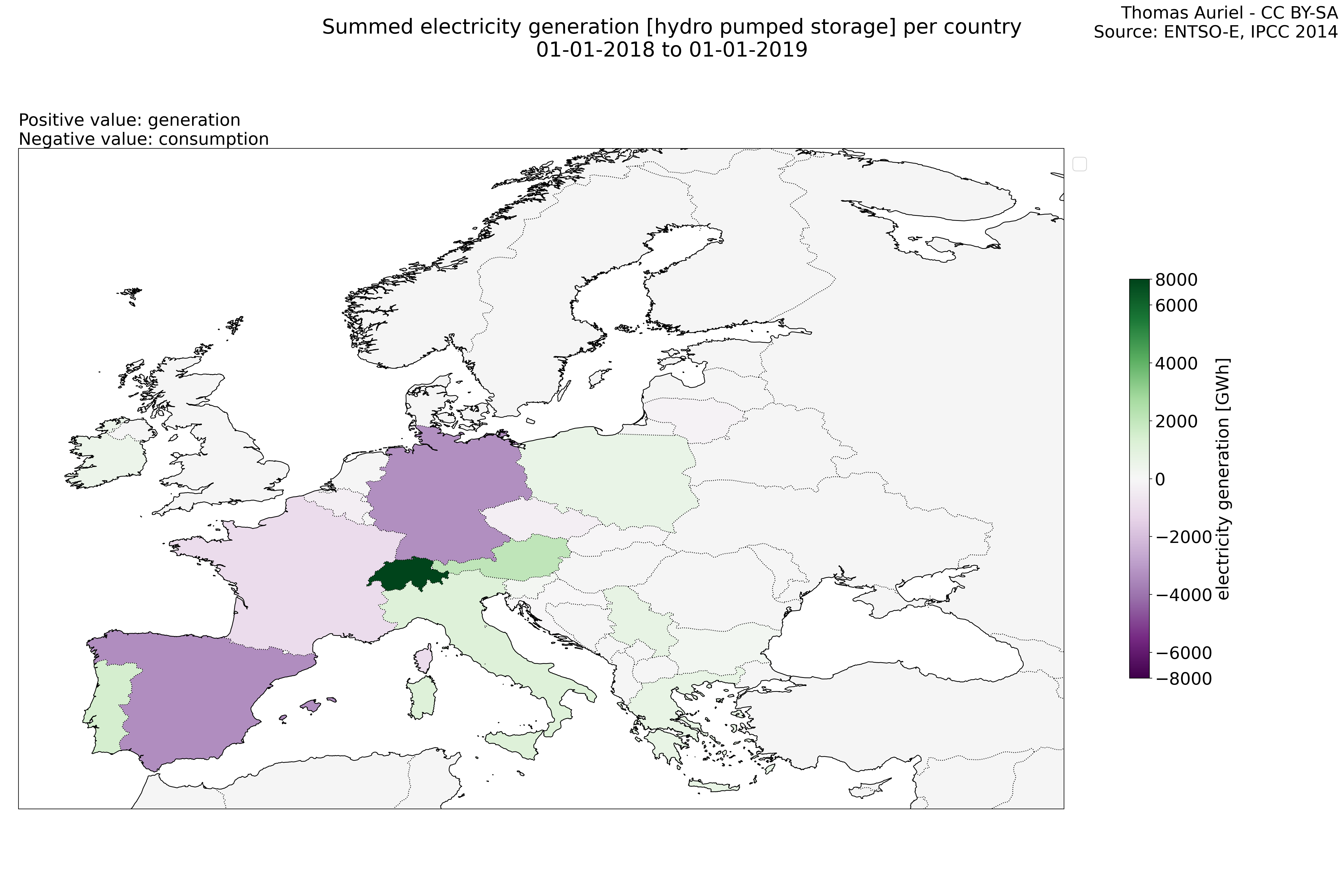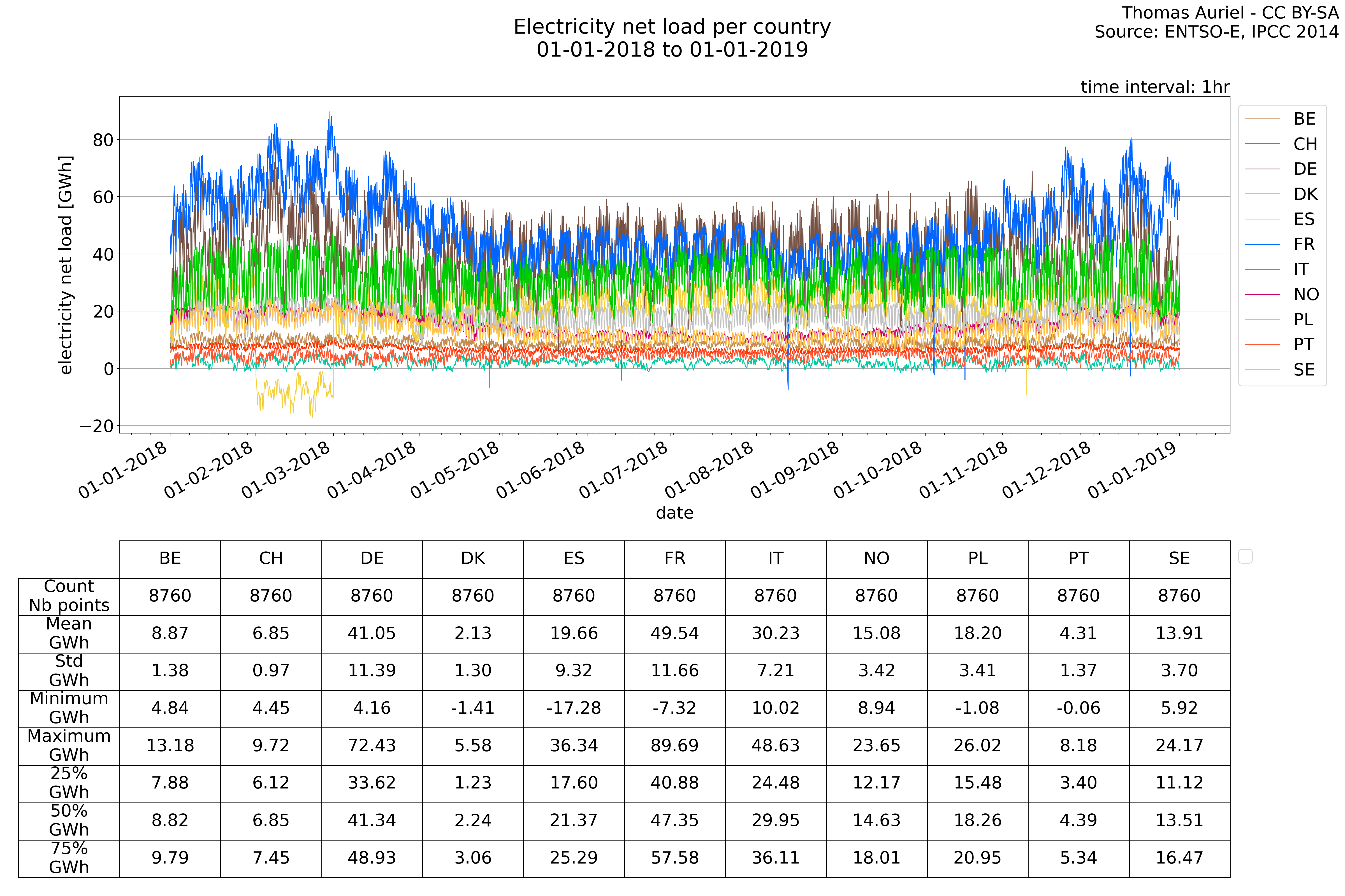 In these hourly line plots, the x-axis spans the entire year, with hours as individual data points. The y-axis represents the values of production, exchange, consumption, and data emissions, but unlike cumulative plots, these plots are designed for quality control purposes. Each line on the plot corresponds to a specific country and is used to identify data irregularities, holes, or artifacts that may occur within the year. By examining these plots, it is possible to spot discrepancies or missing data points in the hourly records, ensuring data integrity.