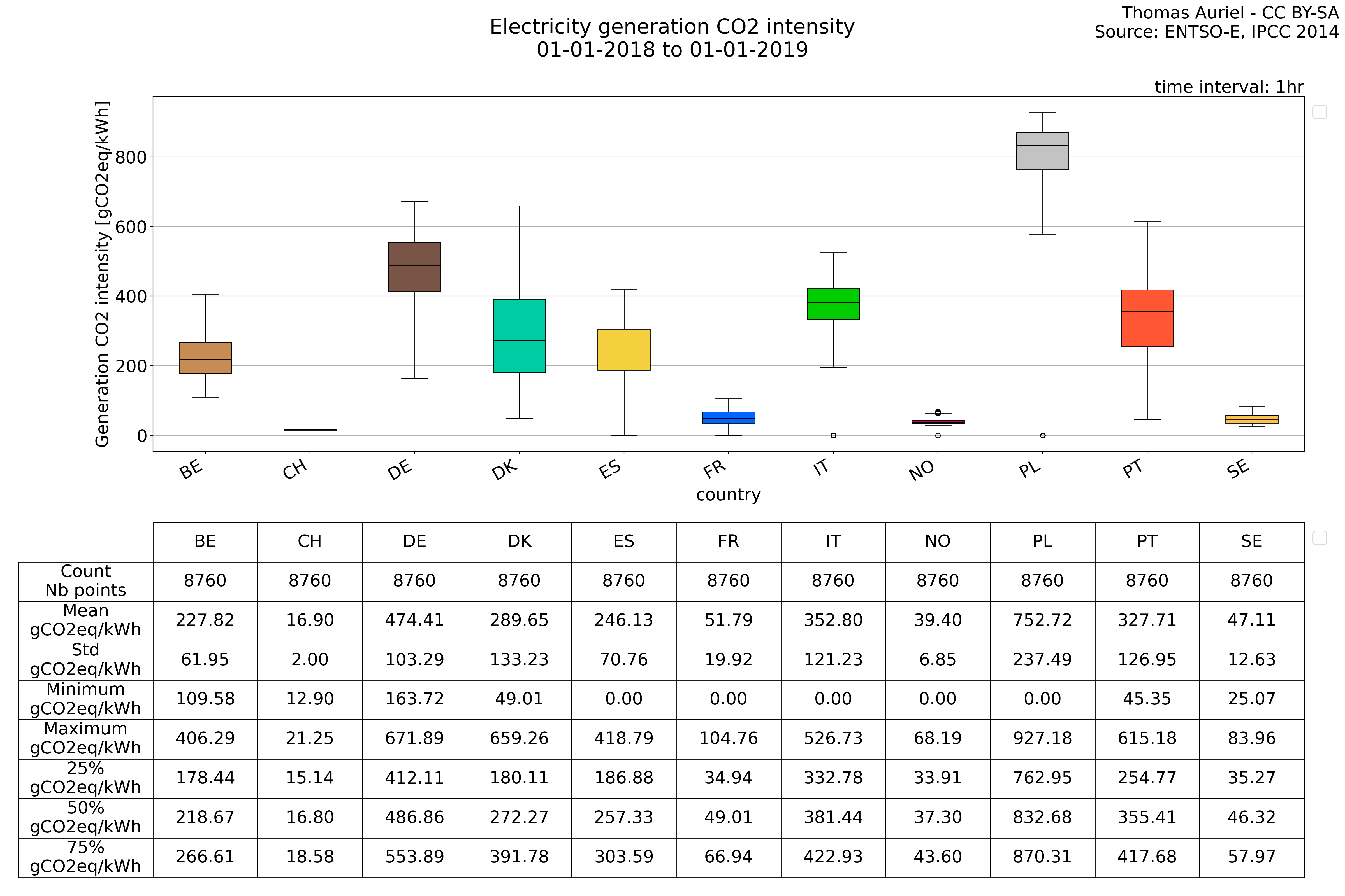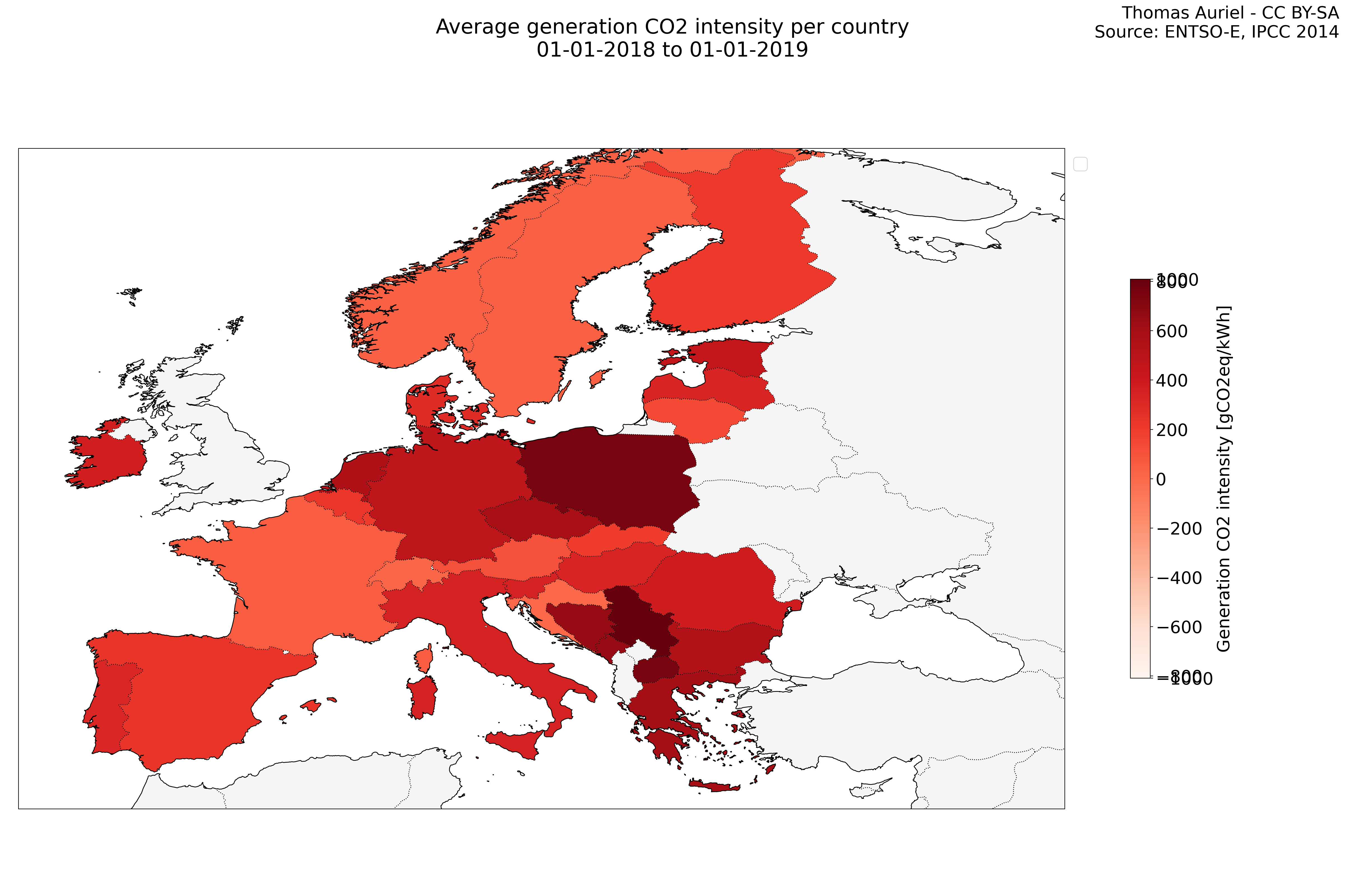 An essential feature of the square plot is the size of each square, which is proportional to the total CO2 emissions of the represented country, calculated by multiplying CO2 intensity with production. Larger squares indicate higher emissions.