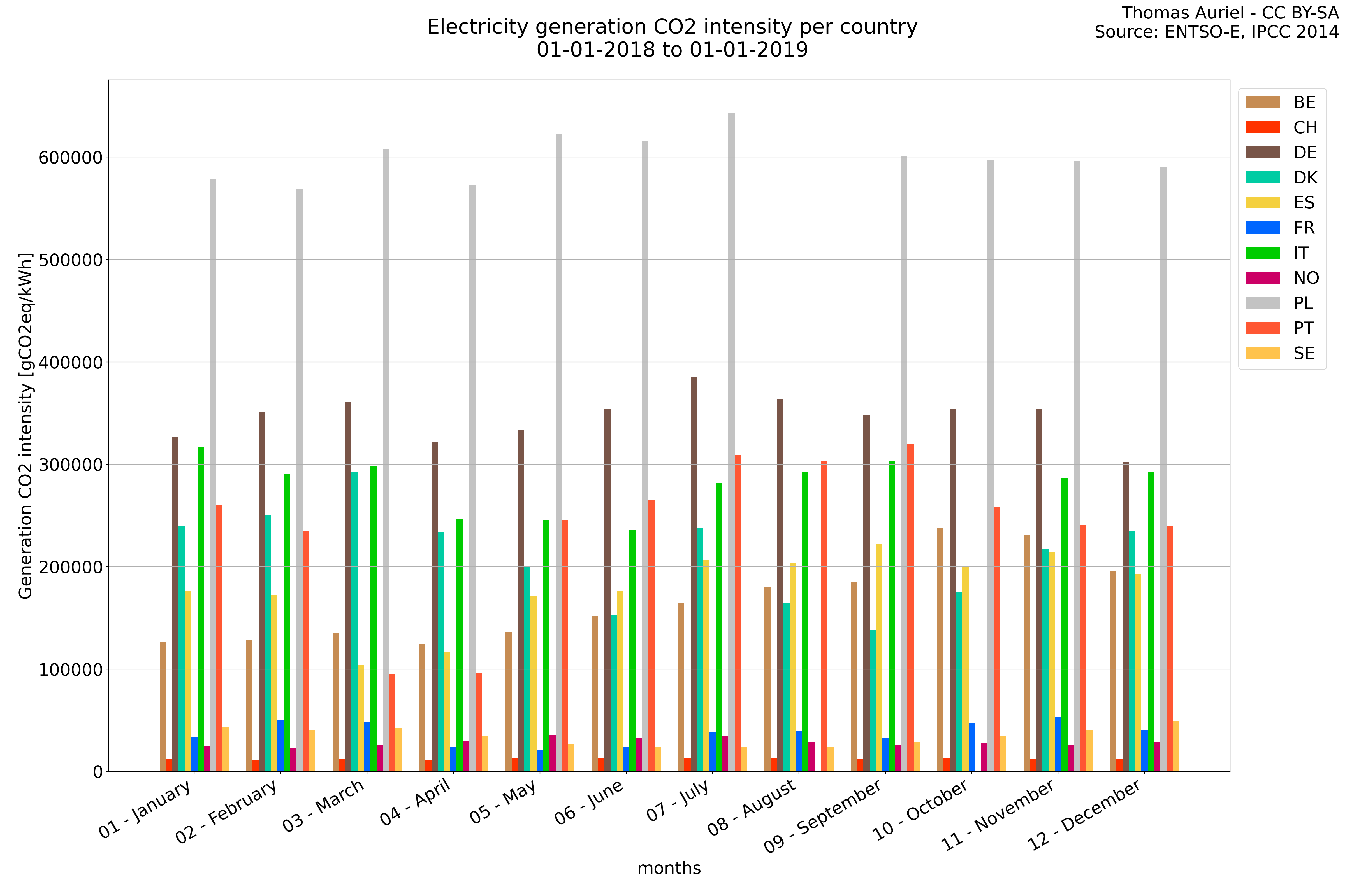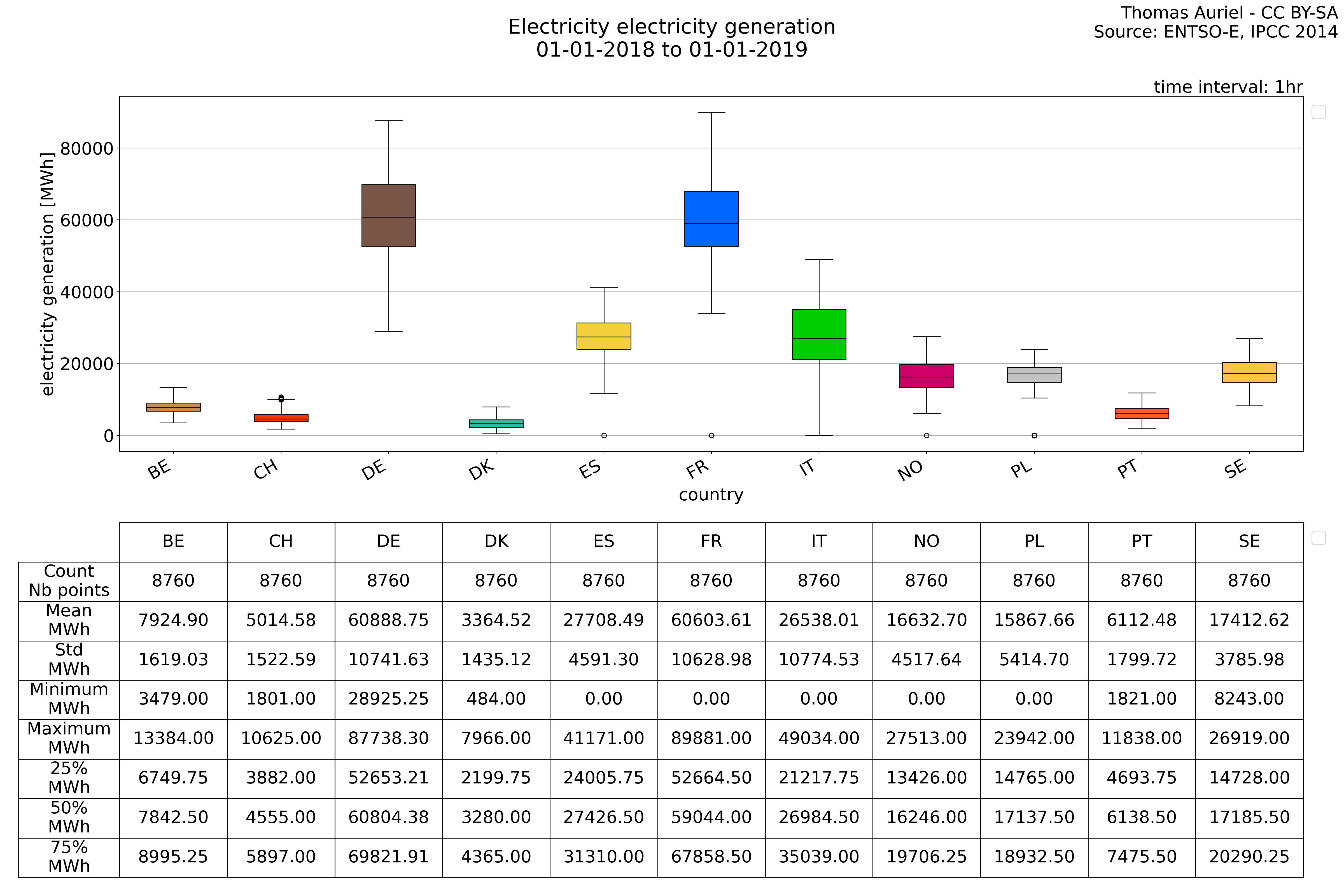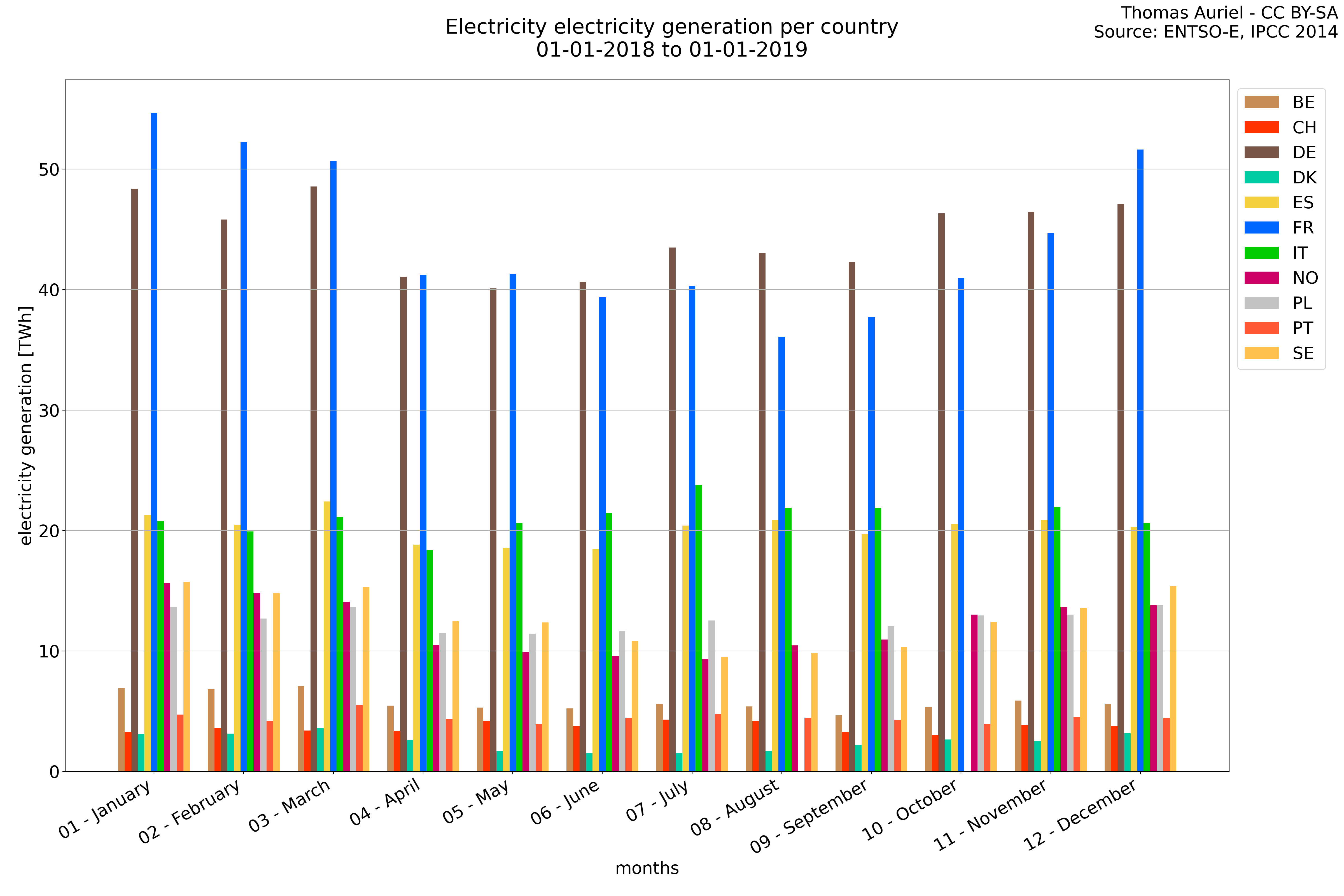 A periode plot takes a general view of the data by summing all the values over each month and presents them as a stacked bar plot. This visualization method allows for a clear understanding of how each country grid change over months. Then the Periode plot does not provide time-based trends but instead give an insight on the composition of the data within the chosen period.