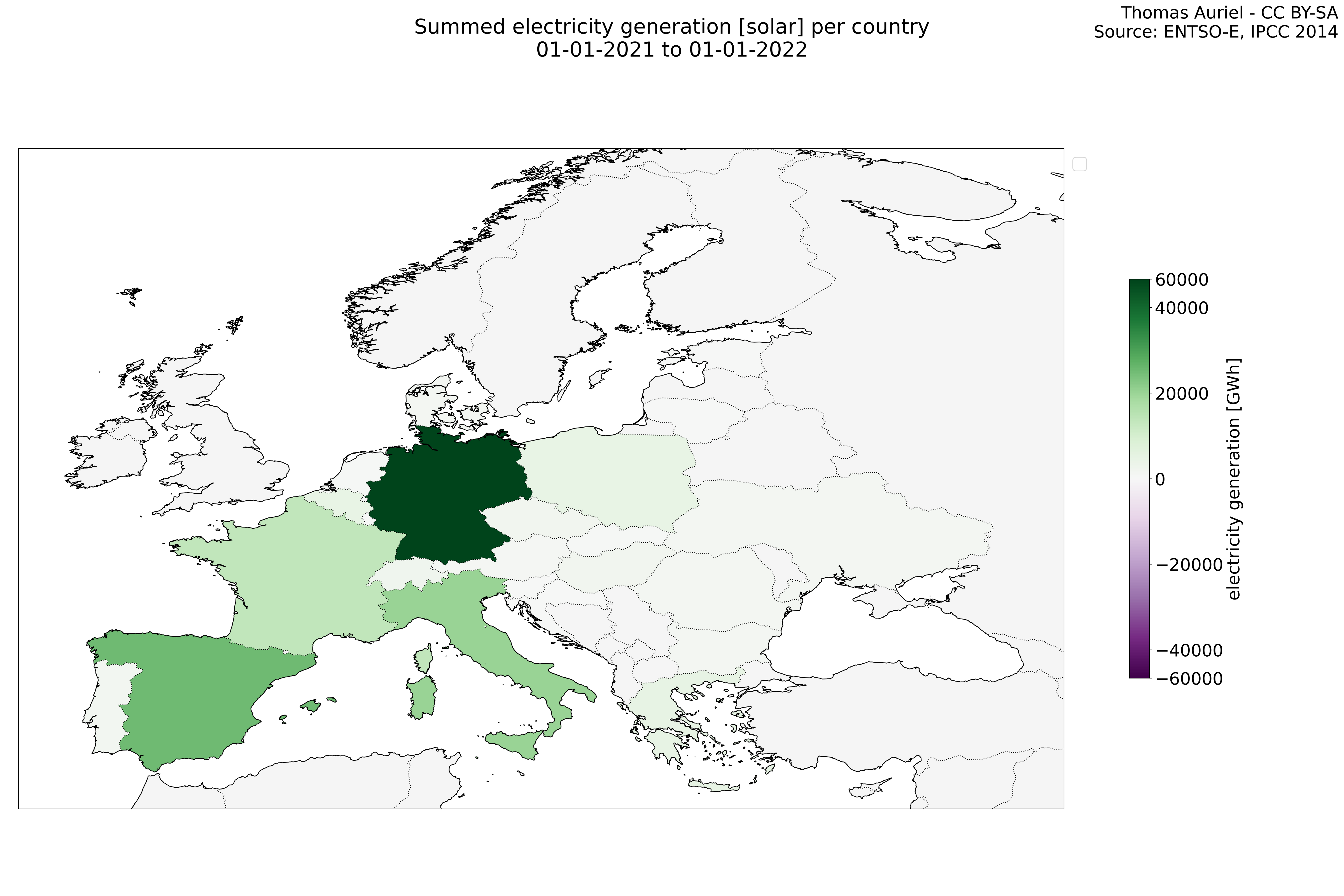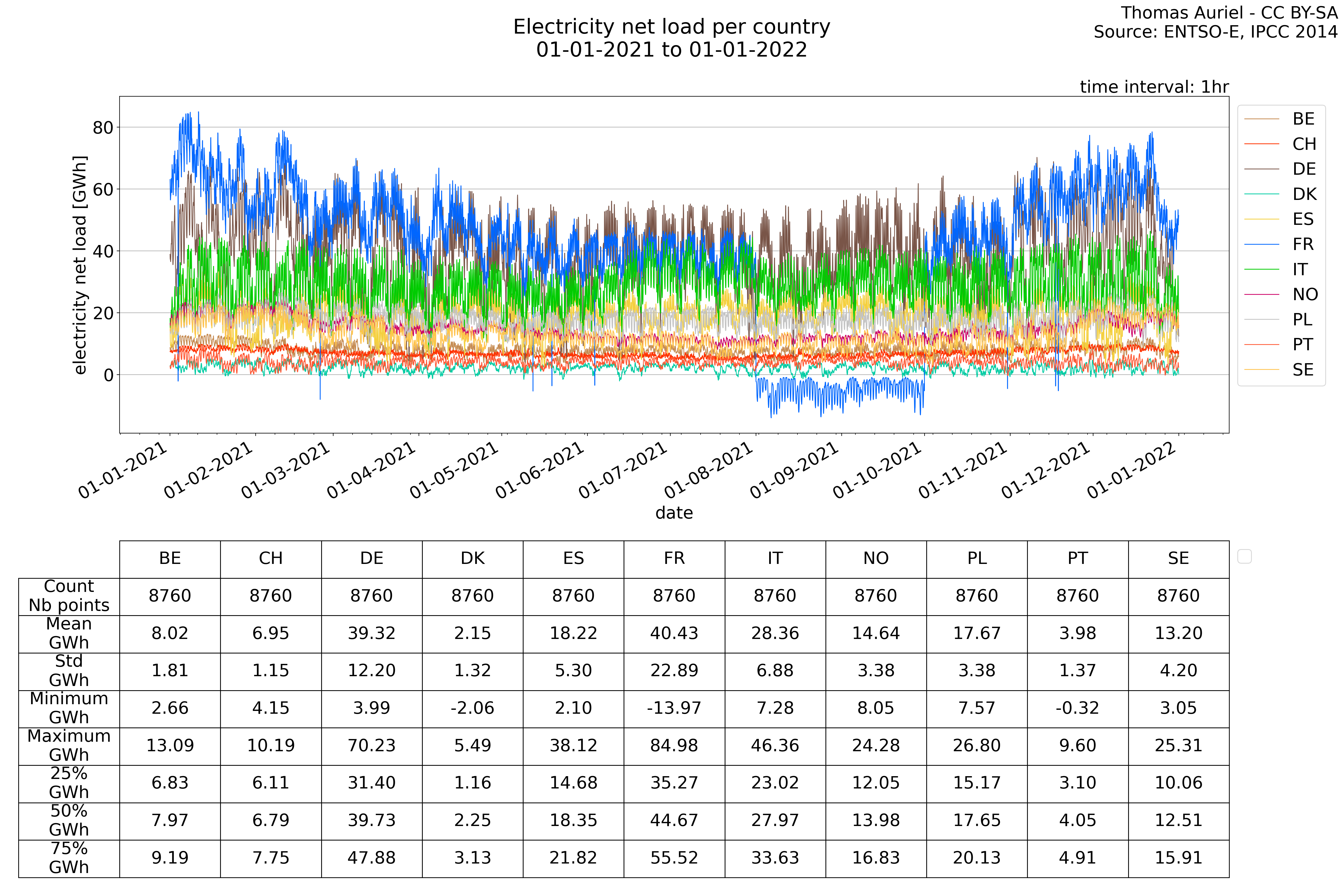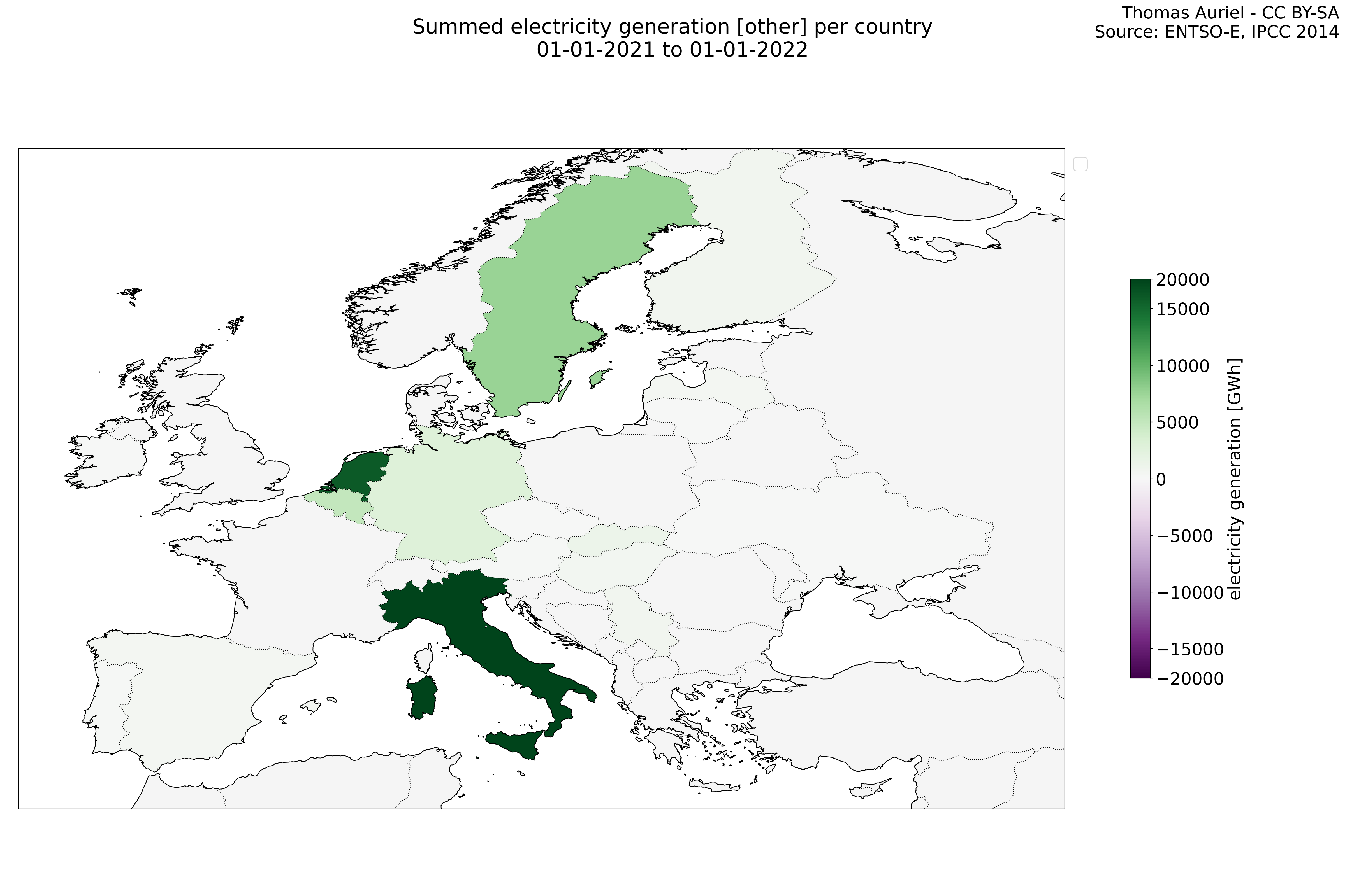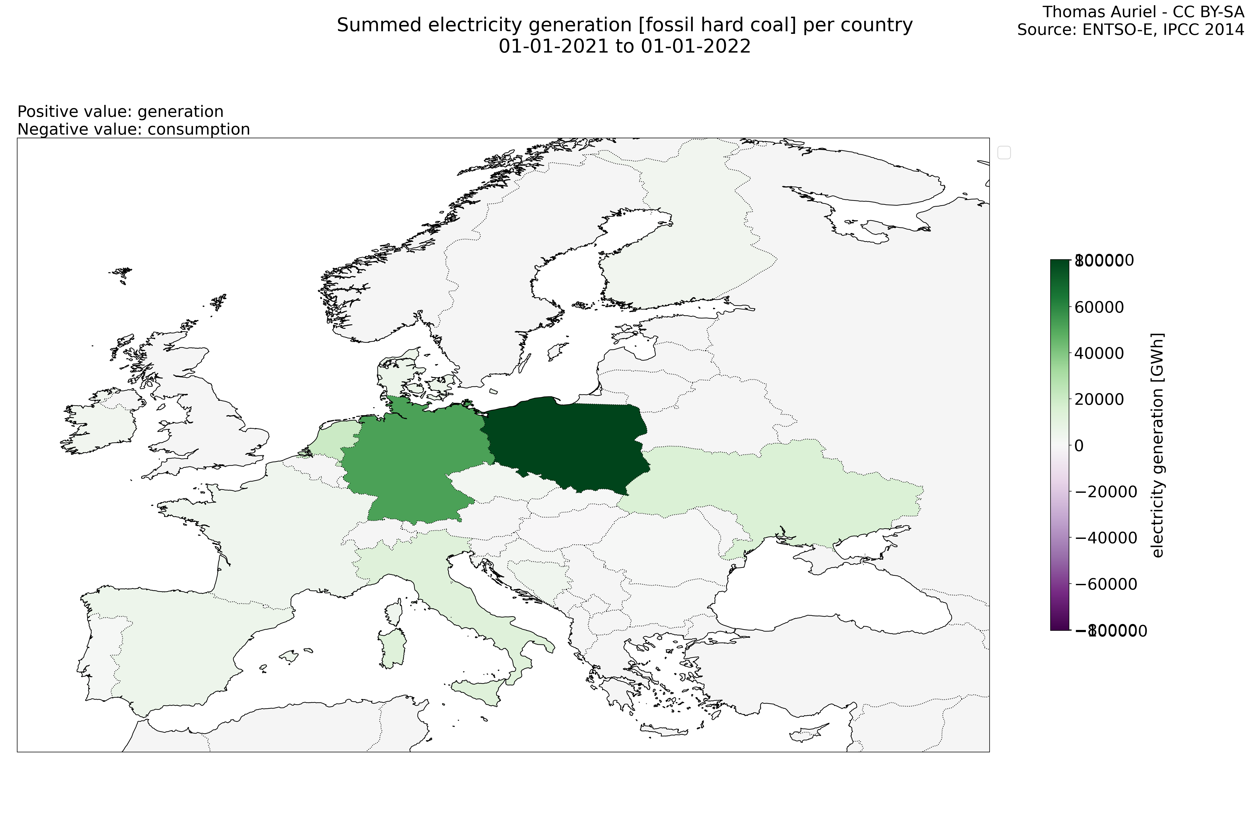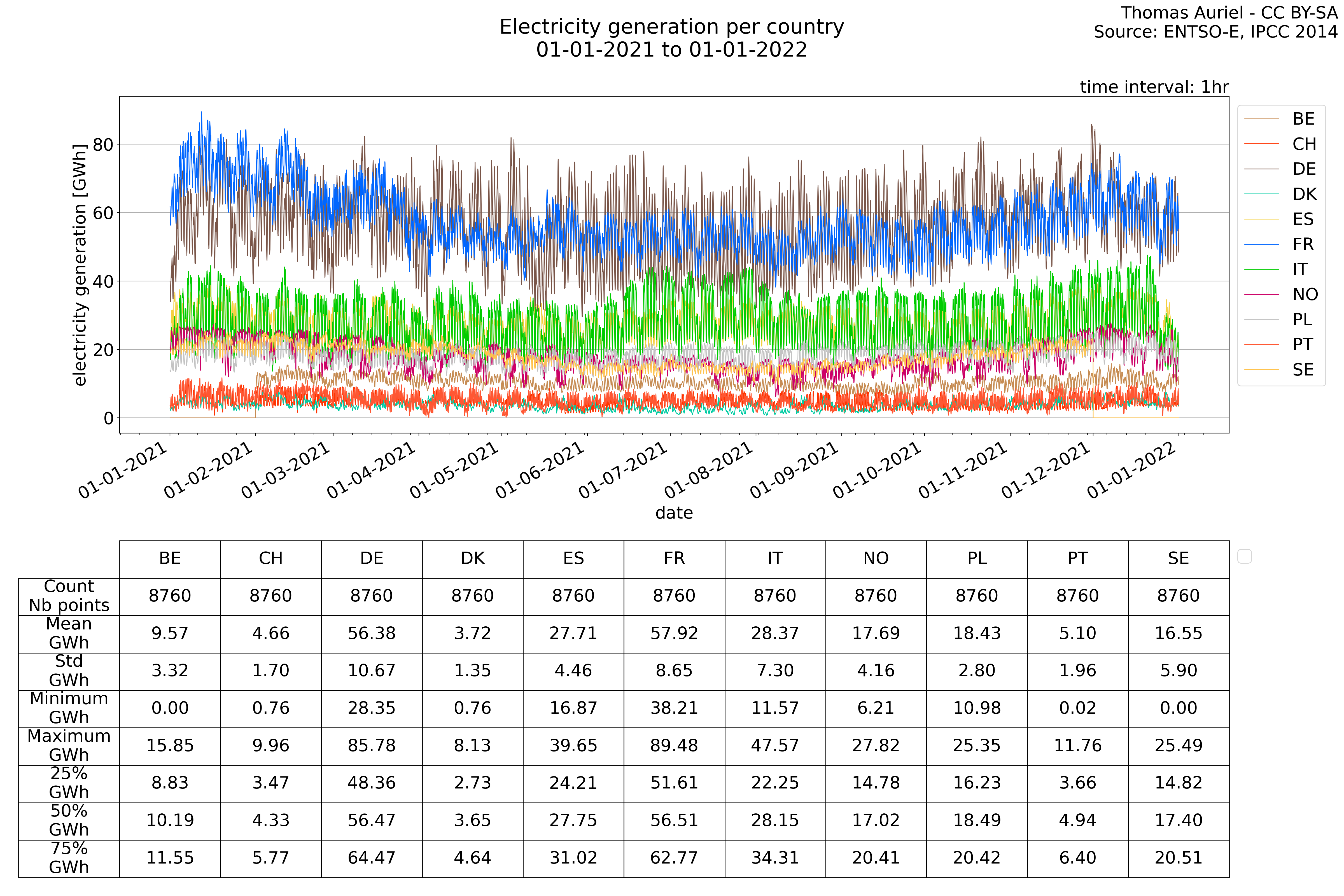 In these hourly line plots, the x-axis spans the entire year, with hours as individual data points. The y-axis represents the values of production, exchange, consumption, and data emissions, but unlike cumulative plots, these plots are designed for quality control purposes. Each line on the plot corresponds to a specific country and is used to identify data irregularities, holes, or artifacts that may occur within the year. By examining these plots, it is possible to spot discrepancies or missing data points in the hourly records, ensuring data integrity.