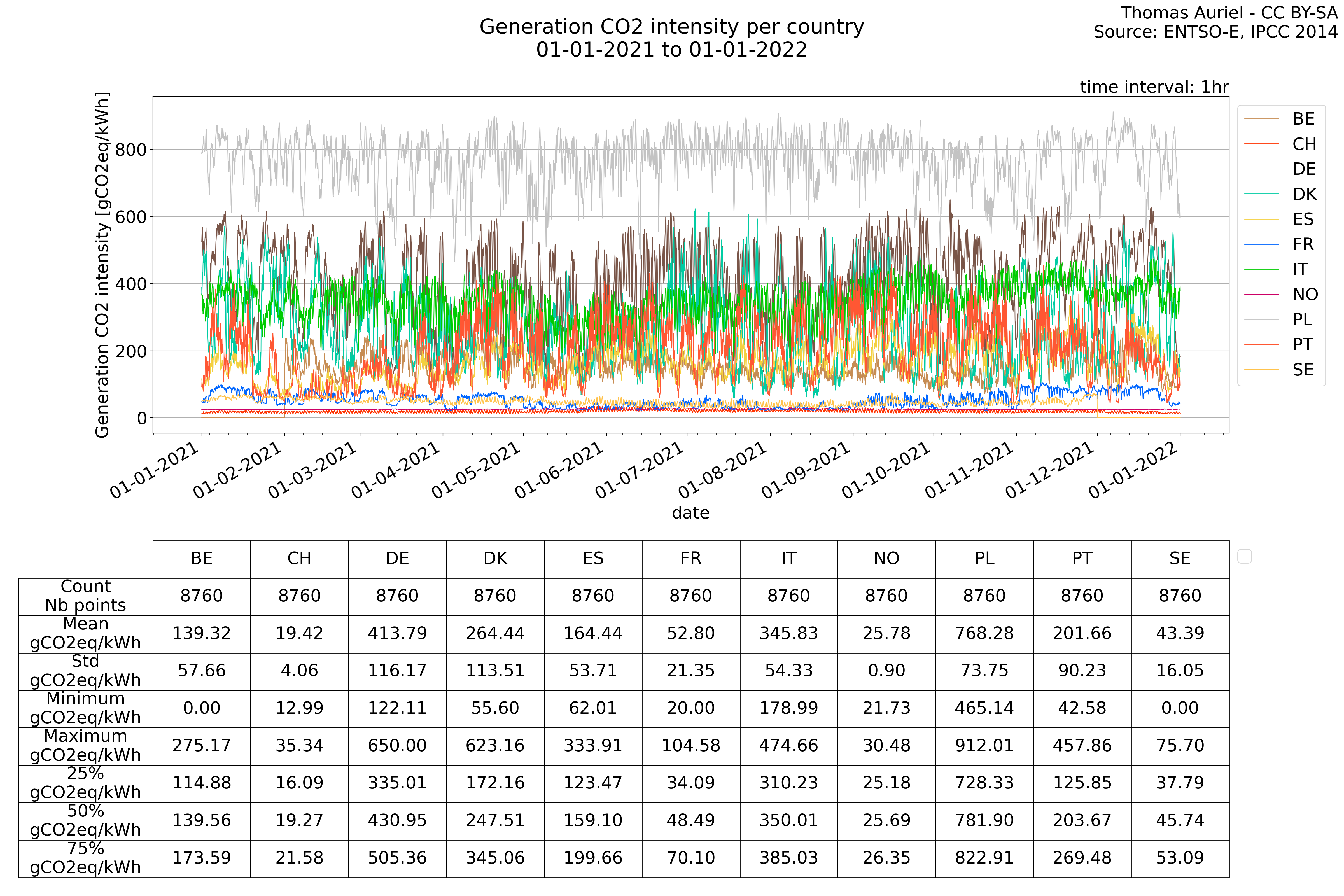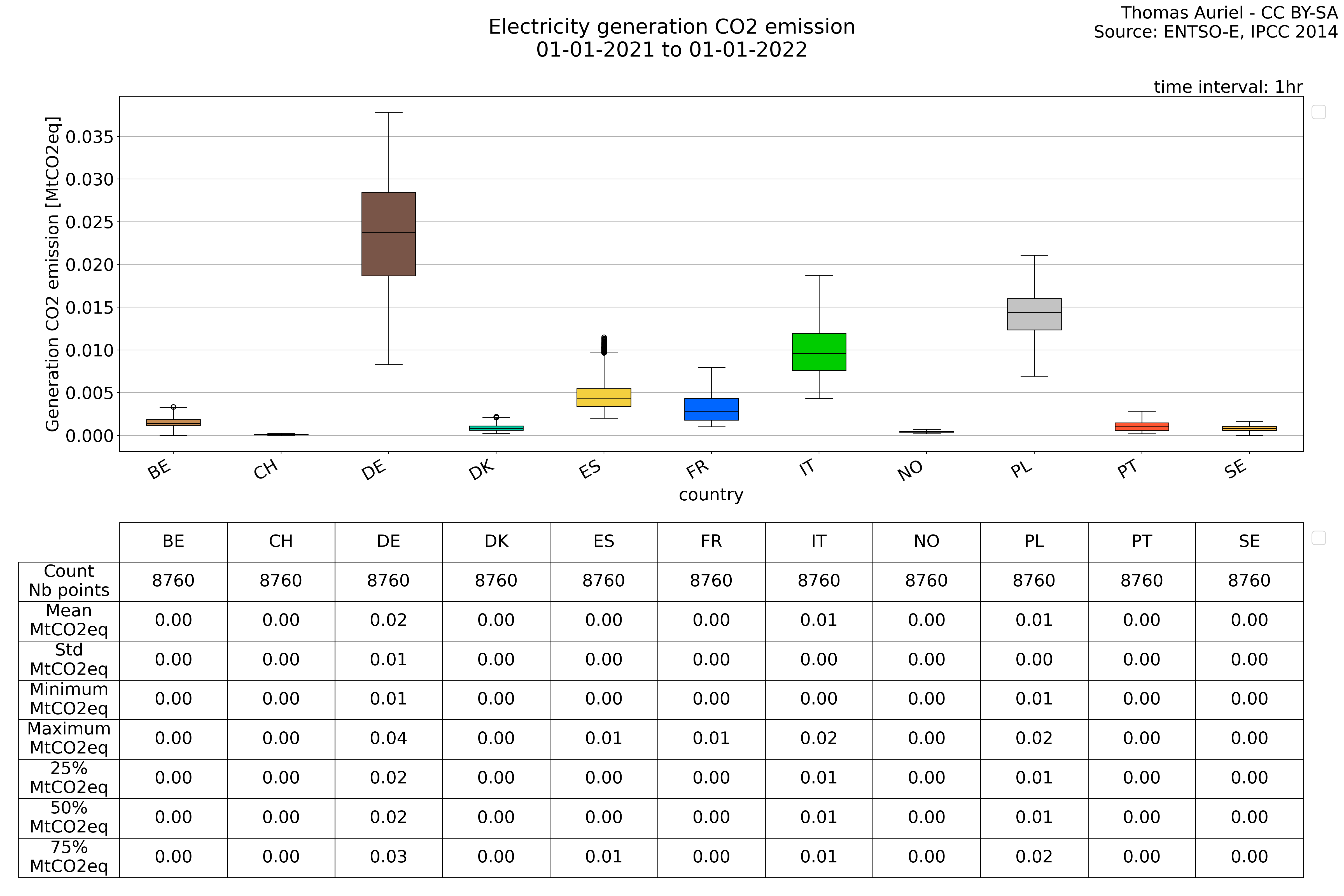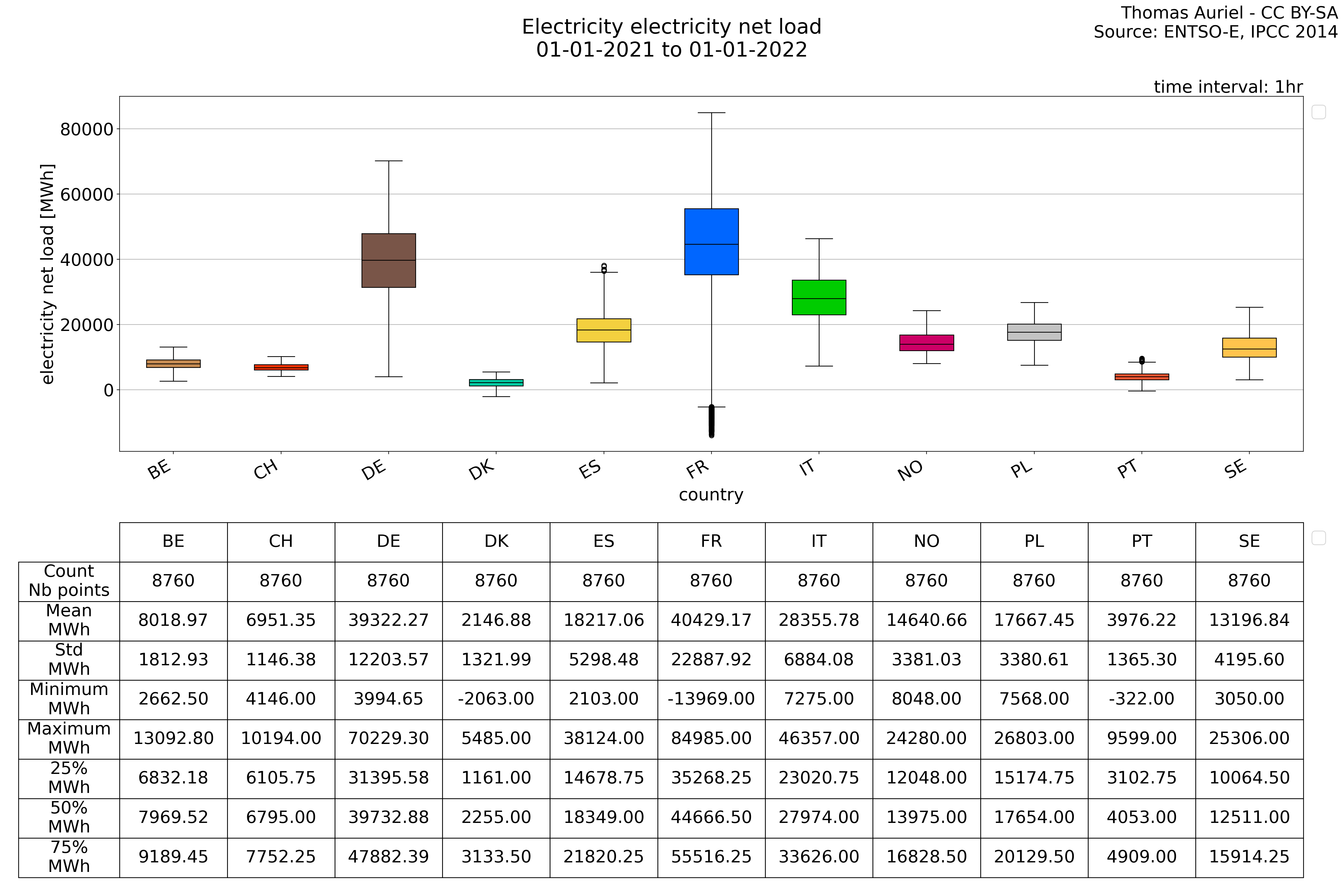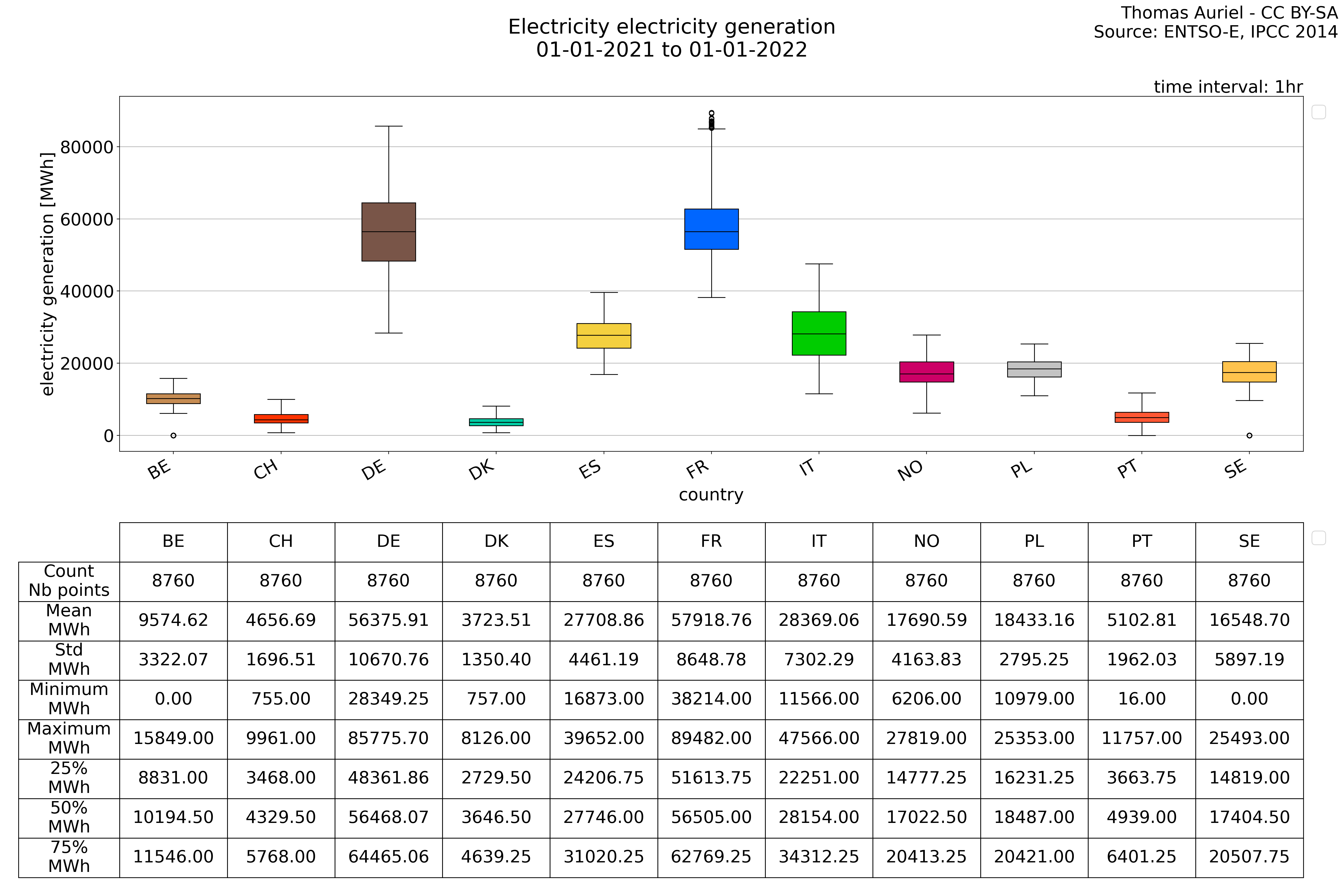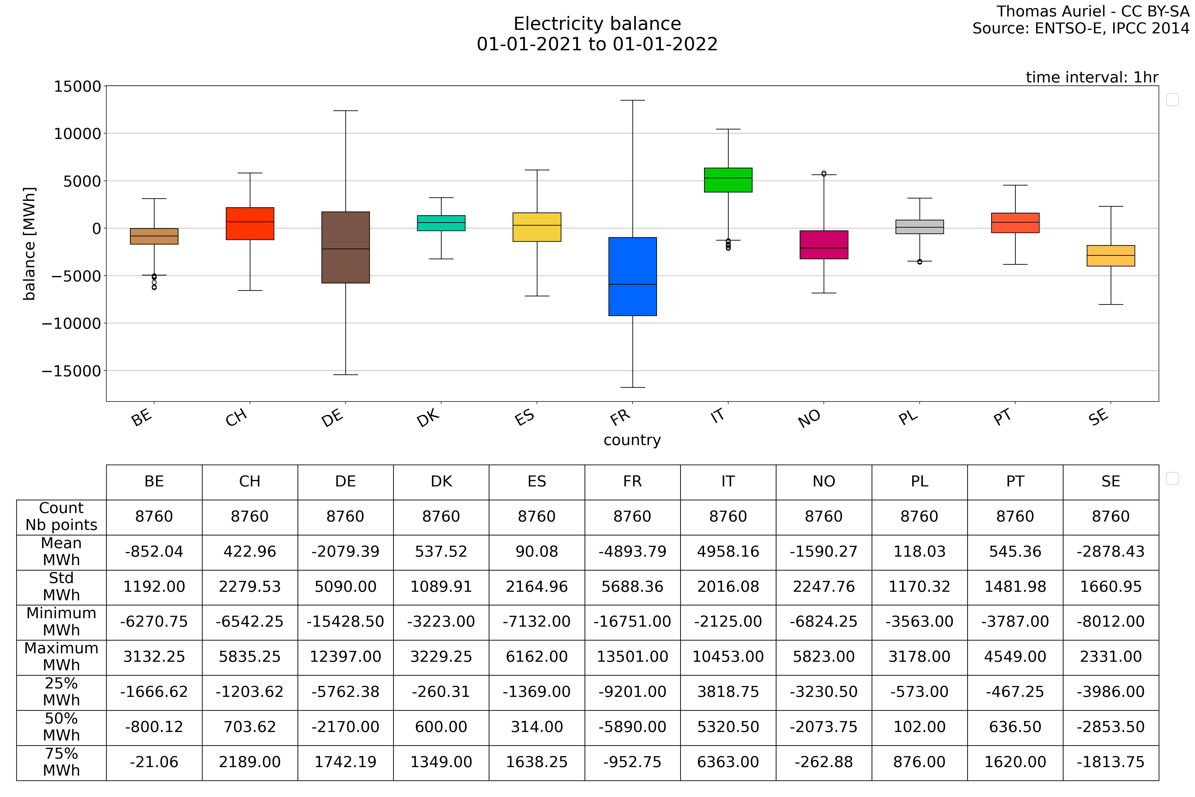 In these hourly line plots, the x-axis spans the entire year, with hours as individual data points. The y-axis represents the values of production, exchange, consumption, and data emissions, but unlike cumulative plots, these plots are designed for quality control purposes. Each line on the plot corresponds to a specific country and is used to identify data irregularities, holes, or artifacts that may occur within the year. By examining these plots, it is possible to spot discrepancies or missing data points in the hourly records, ensuring data integrity.
