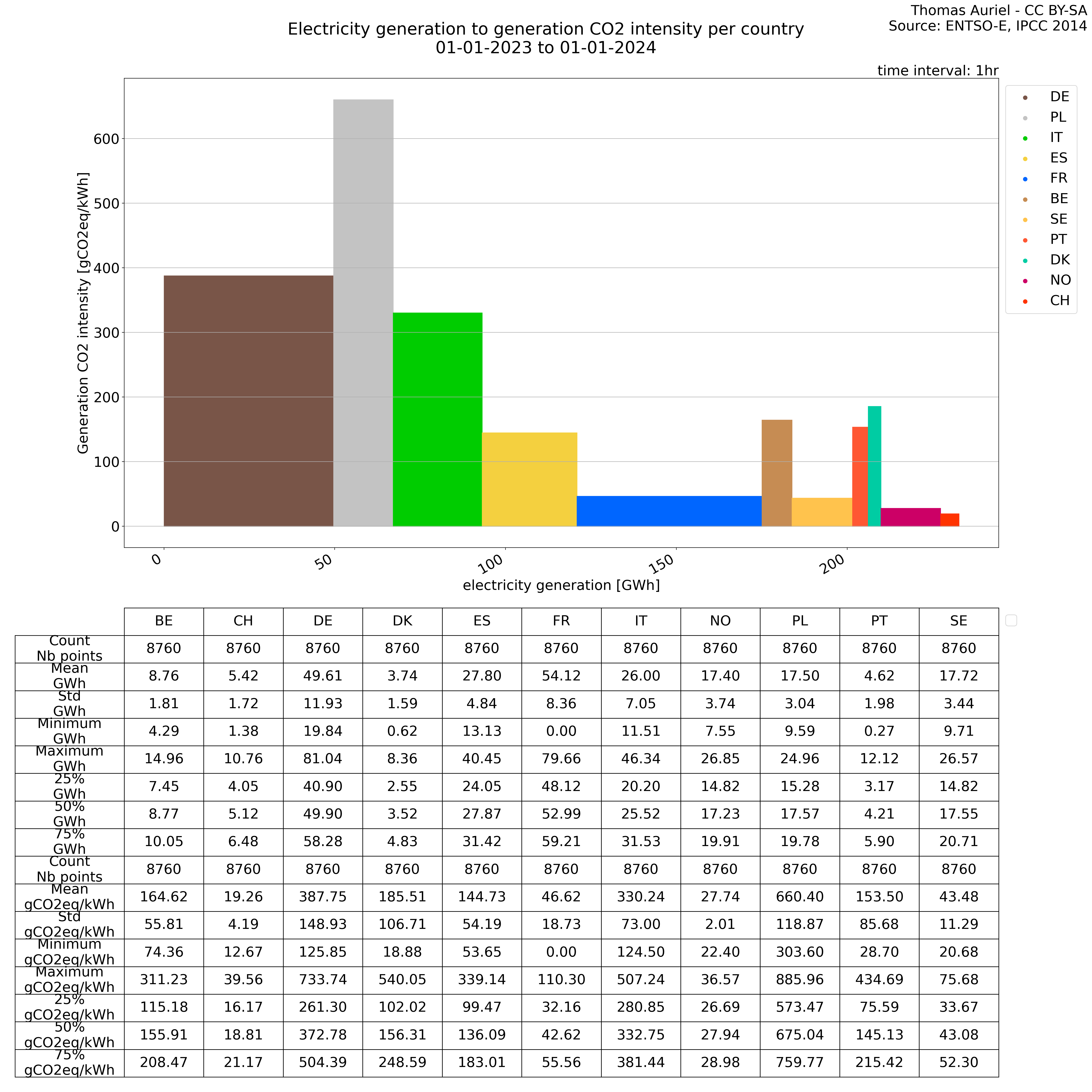 In these square plots, the horizontal axis (x-axis) signifies the average production, while the vertical axis (y-axis) corresponds to the average CO2 intensity. The positioning of each square is dictated by these two metrics. Unlike scatter plots where points are independently placed, in square plots, squares are arranged adjacently, forming a continuous line. Consequently, the x-axis also functions as a cumulative representation of the squares, aggregating the data visually.