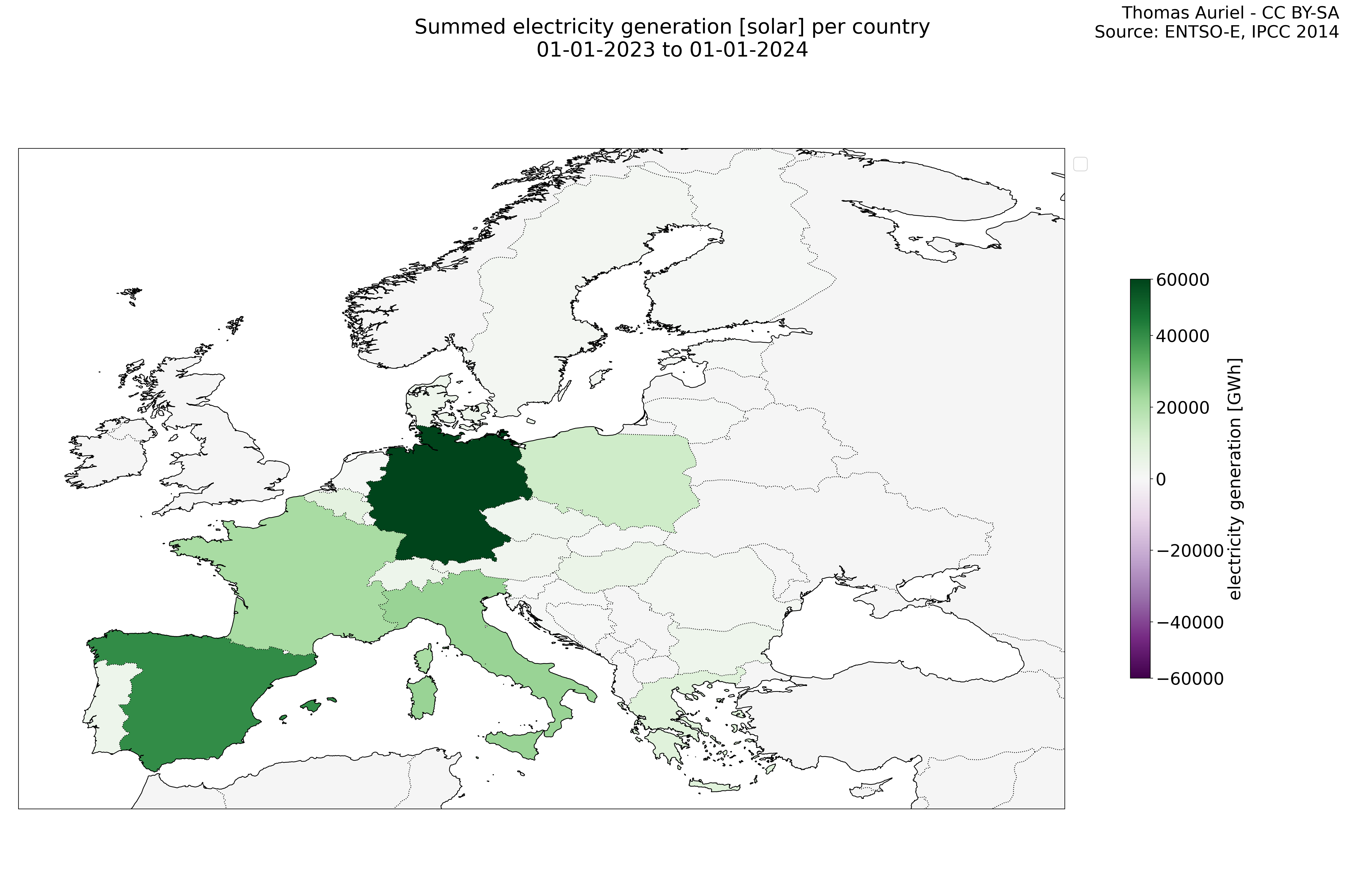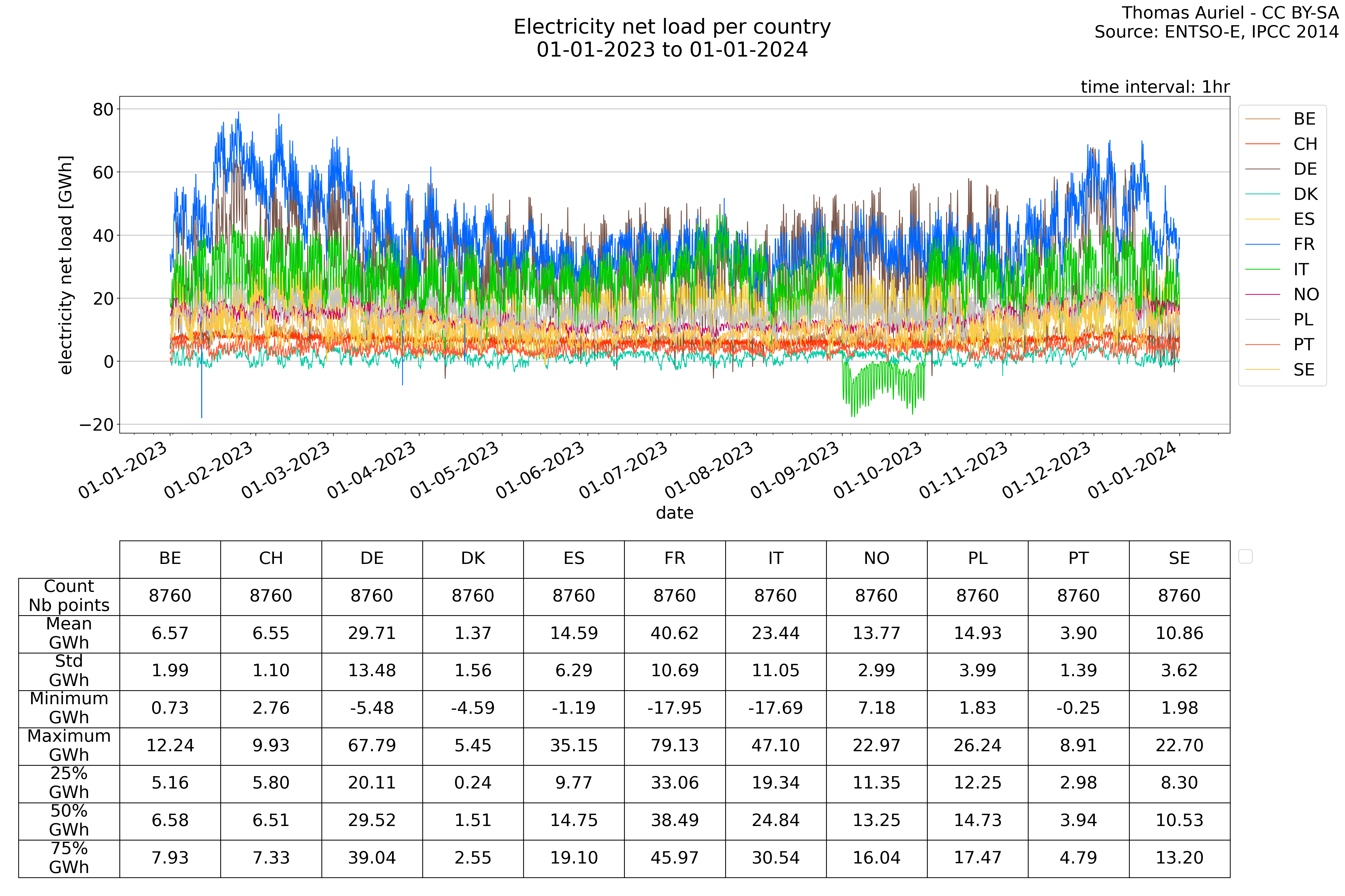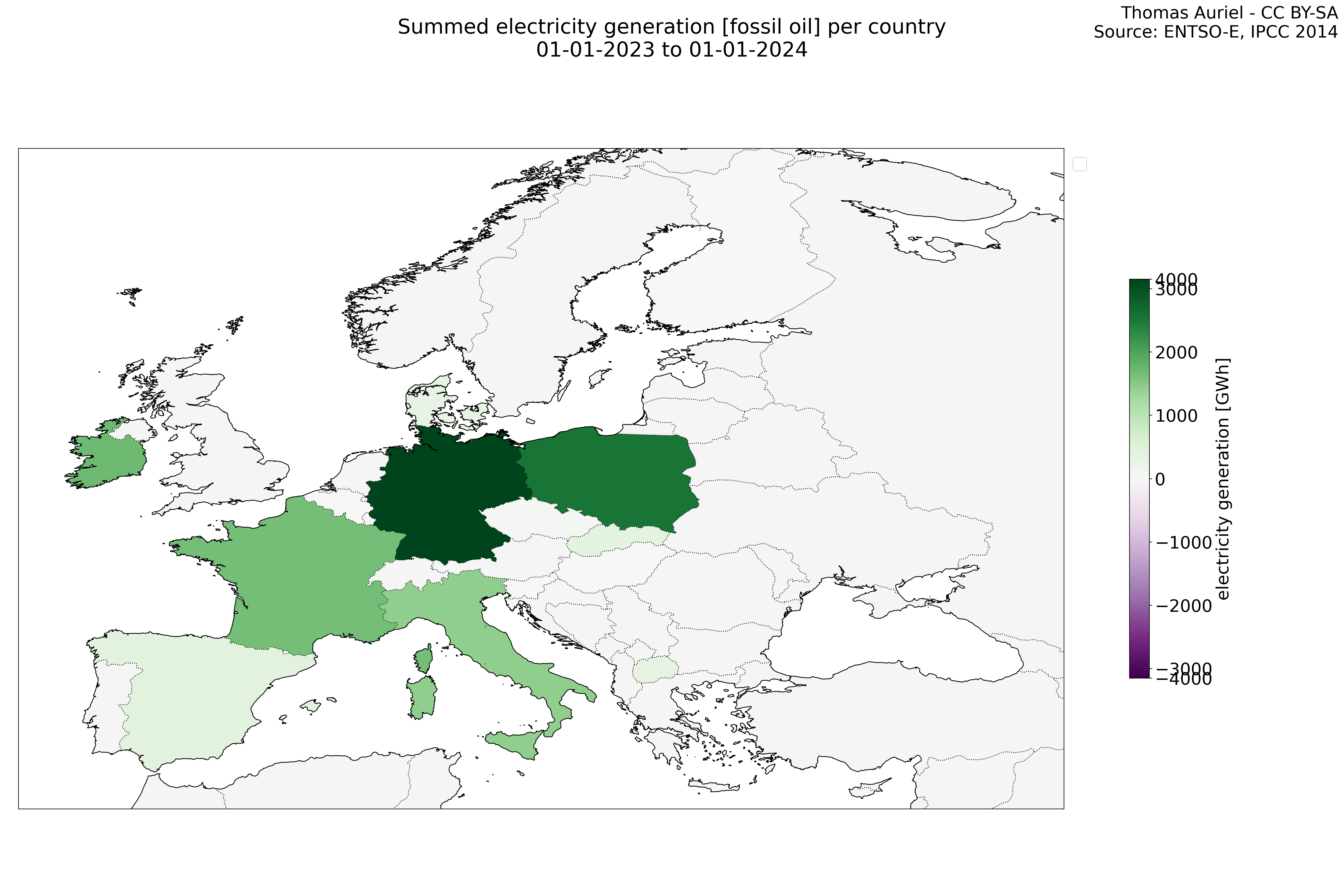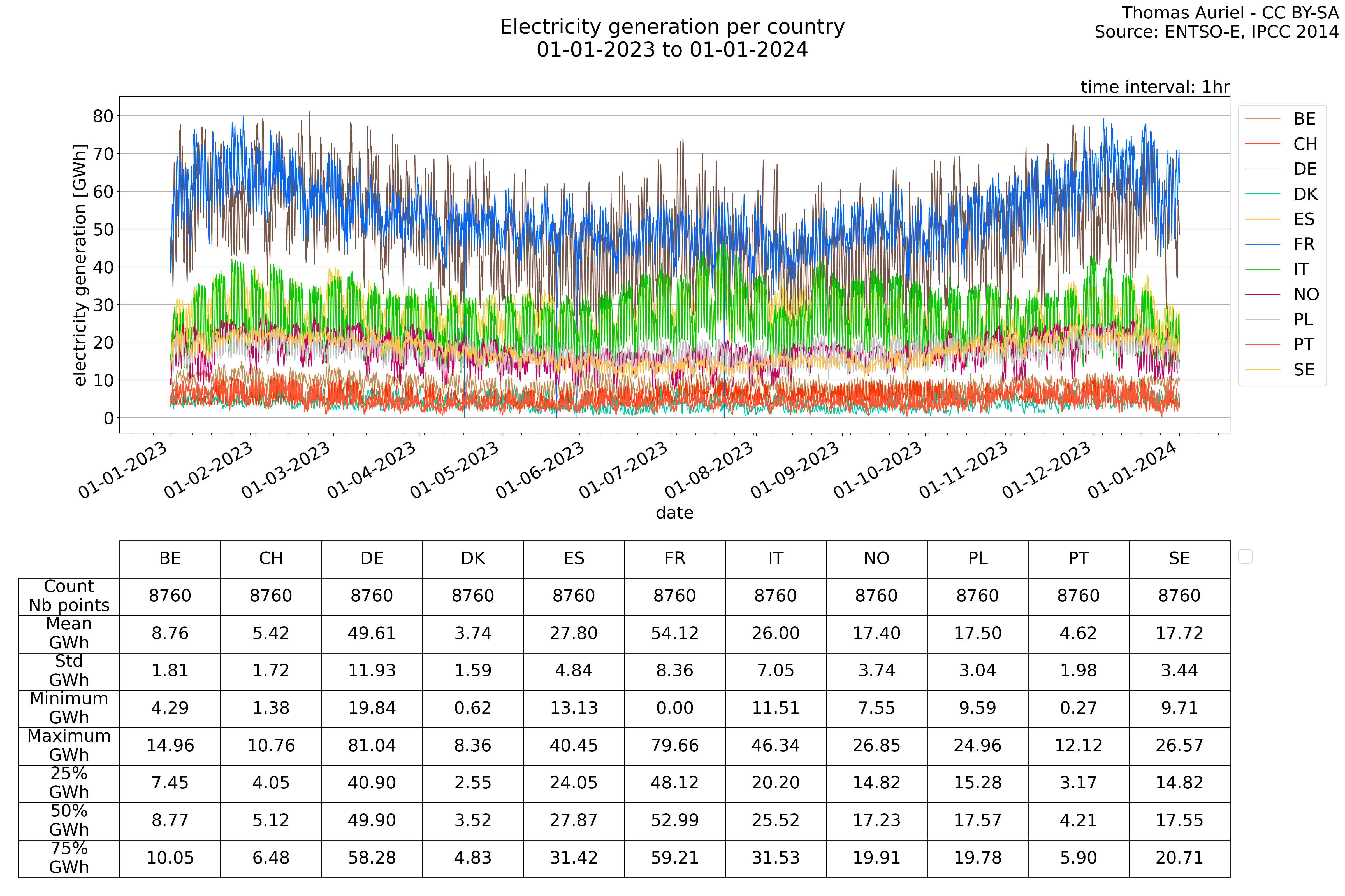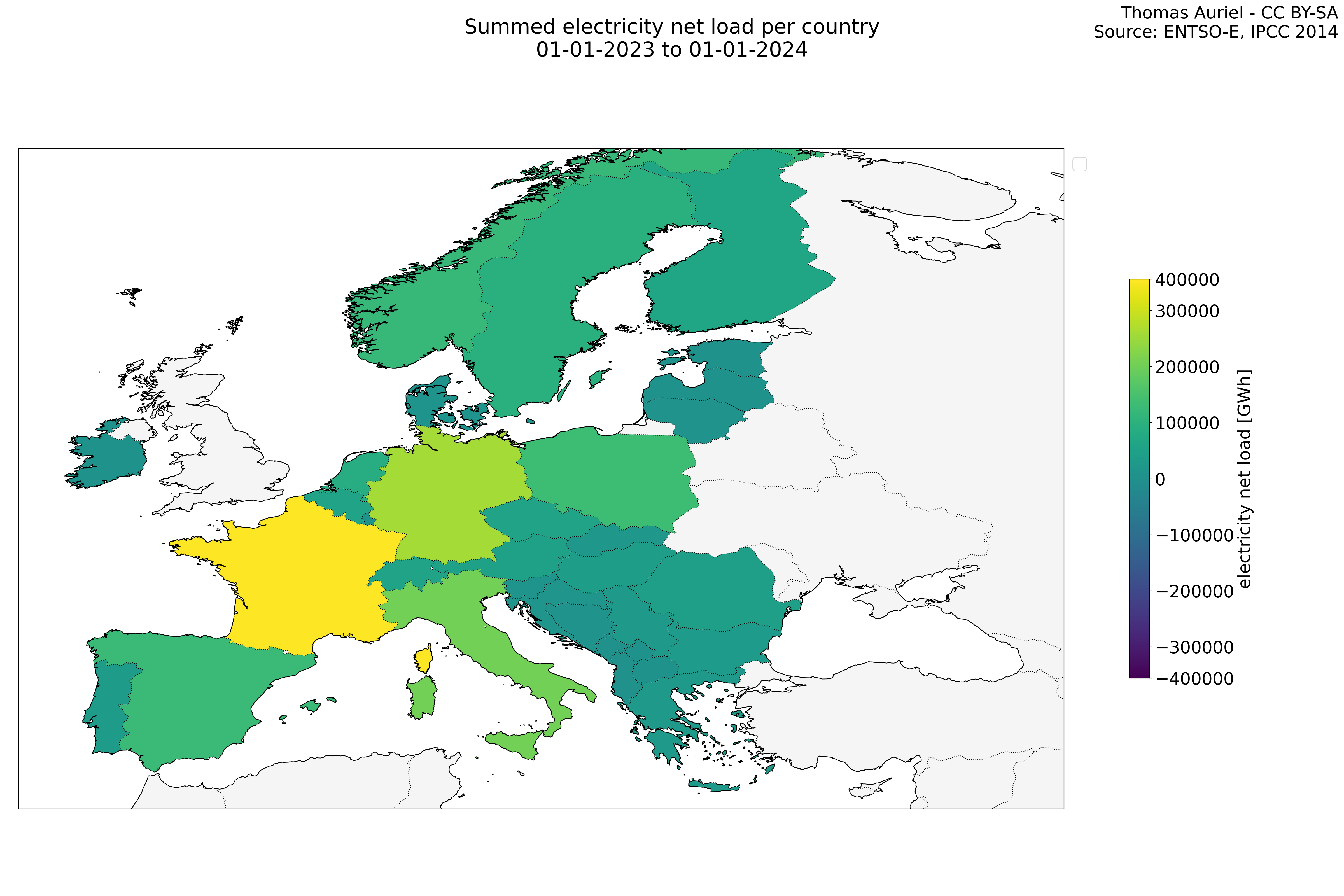 In these hourly line plots, the x-axis spans the entire year, with hours as individual data points. The y-axis represents the values of production, exchange, consumption, and data emissions, but unlike cumulative plots, these plots are designed for quality control purposes. Each line on the plot corresponds to a specific country and is used to identify data irregularities, holes, or artifacts that may occur within the year. By examining these plots, it is possible to spot discrepancies or missing data points in the hourly records, ensuring data integrity.