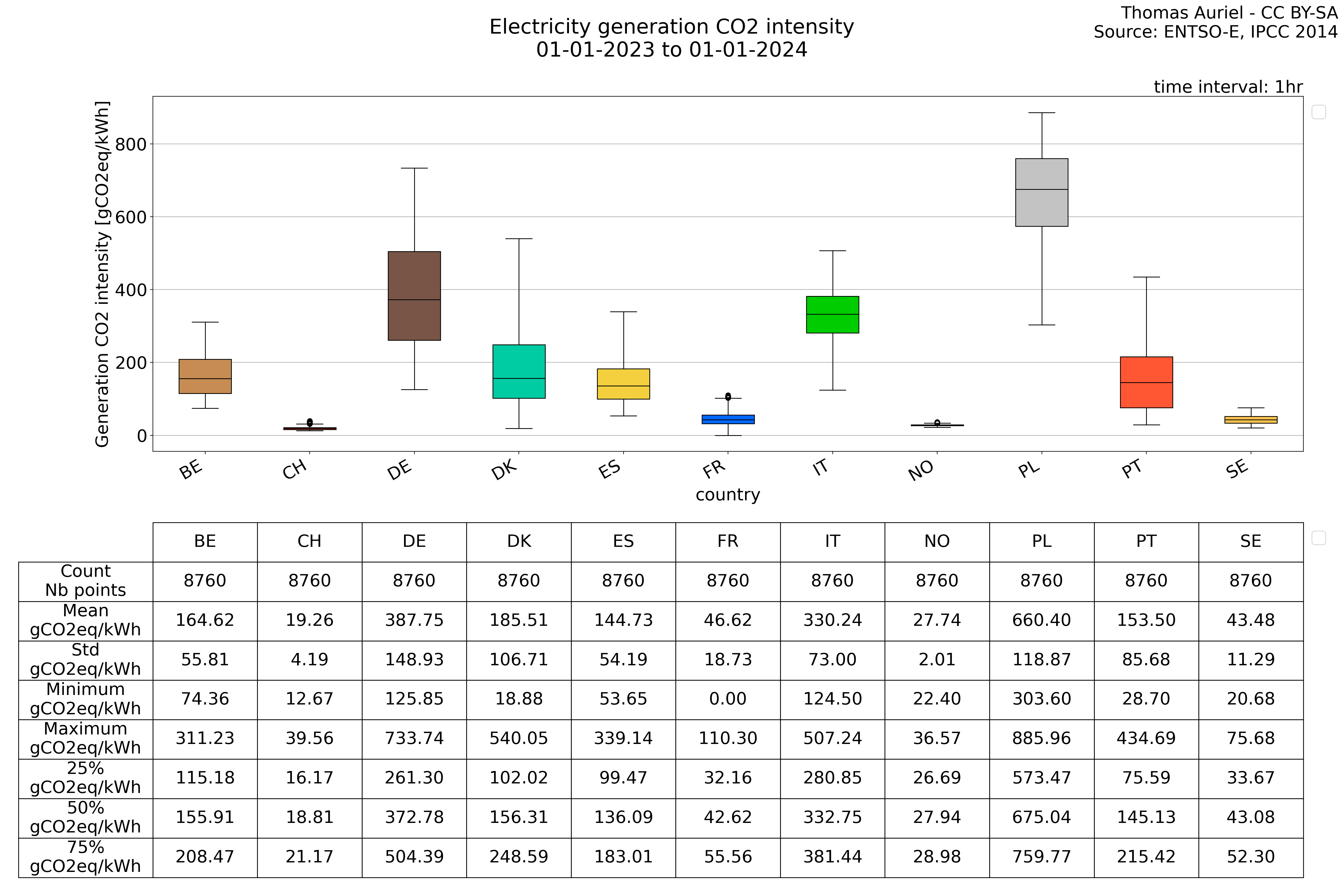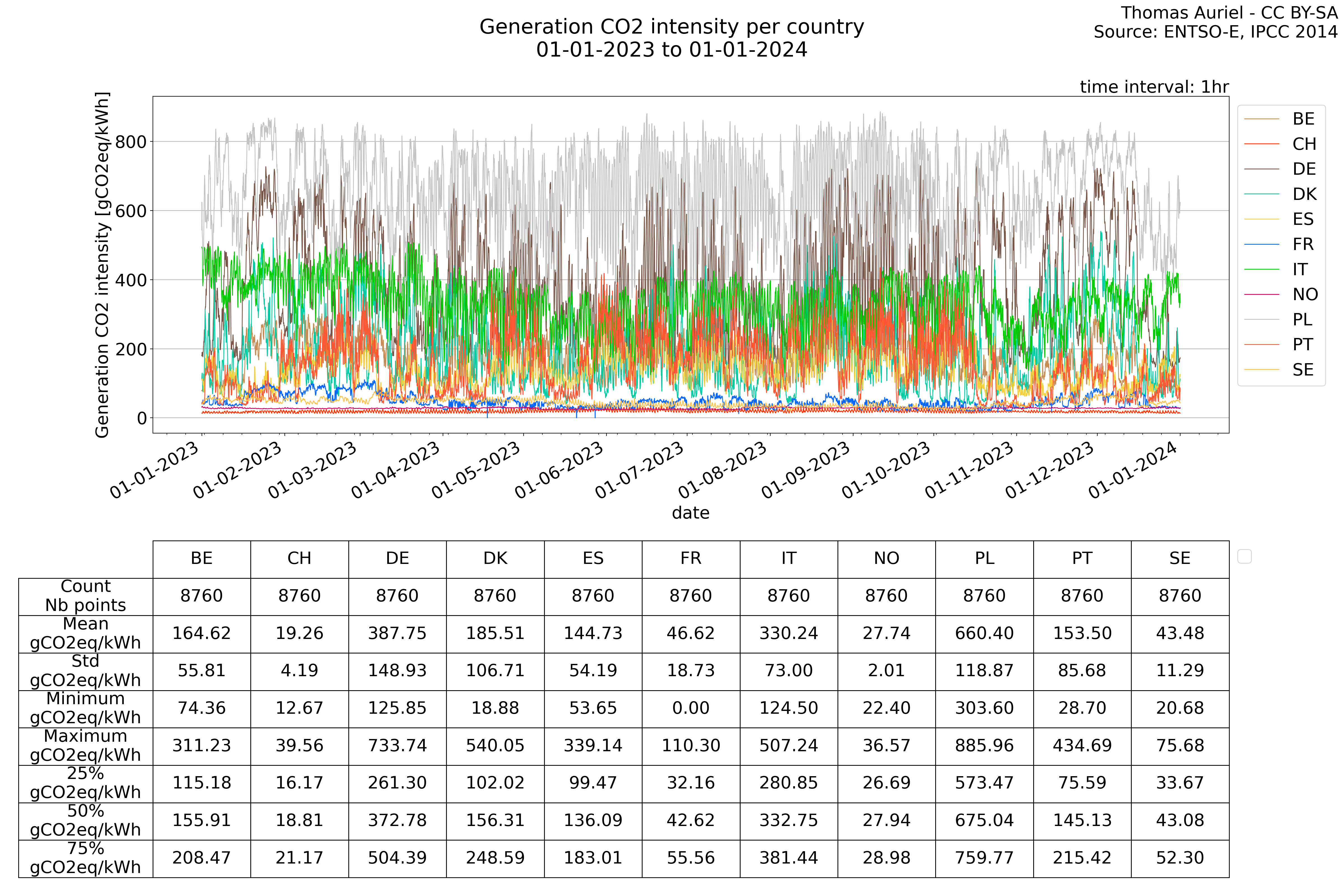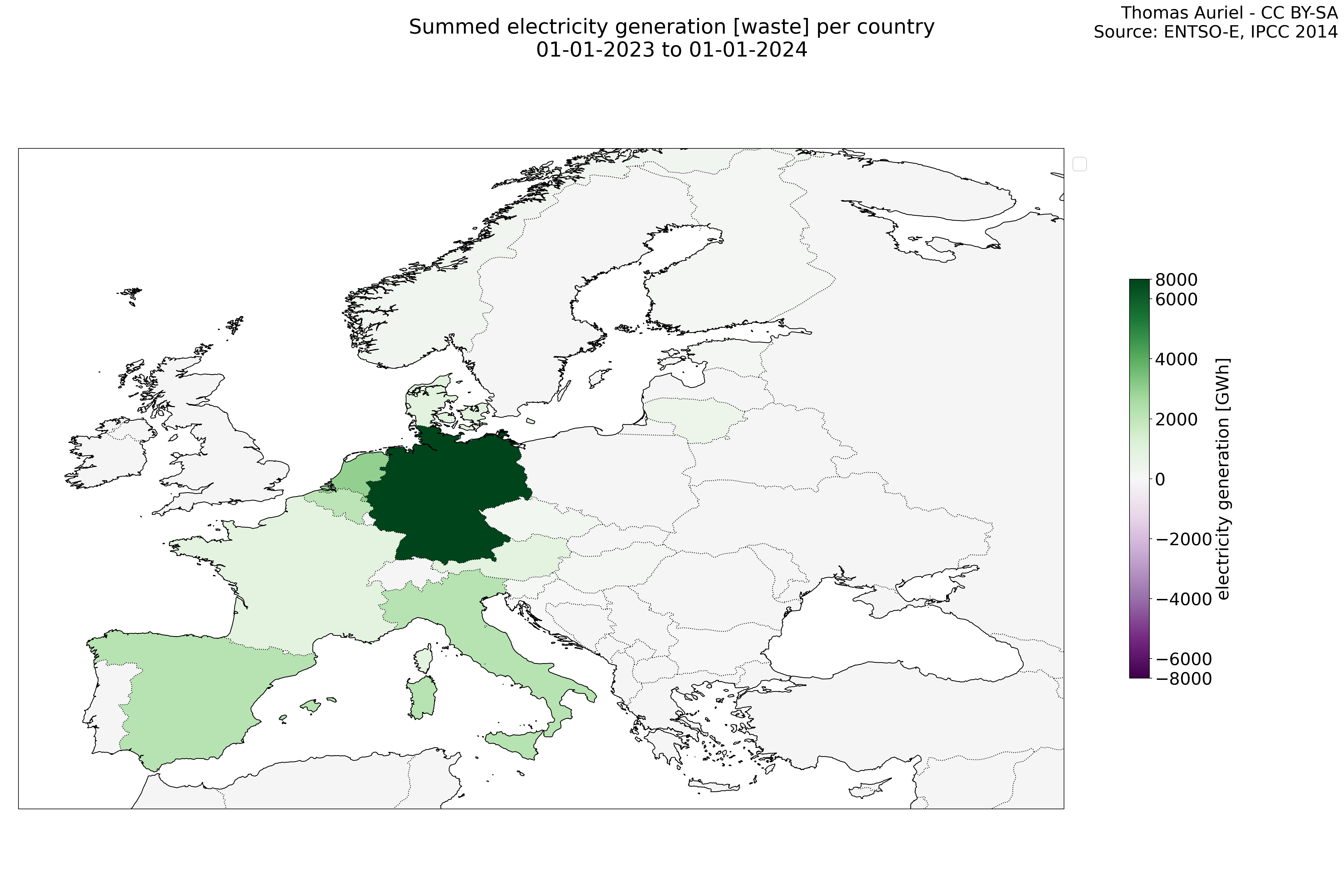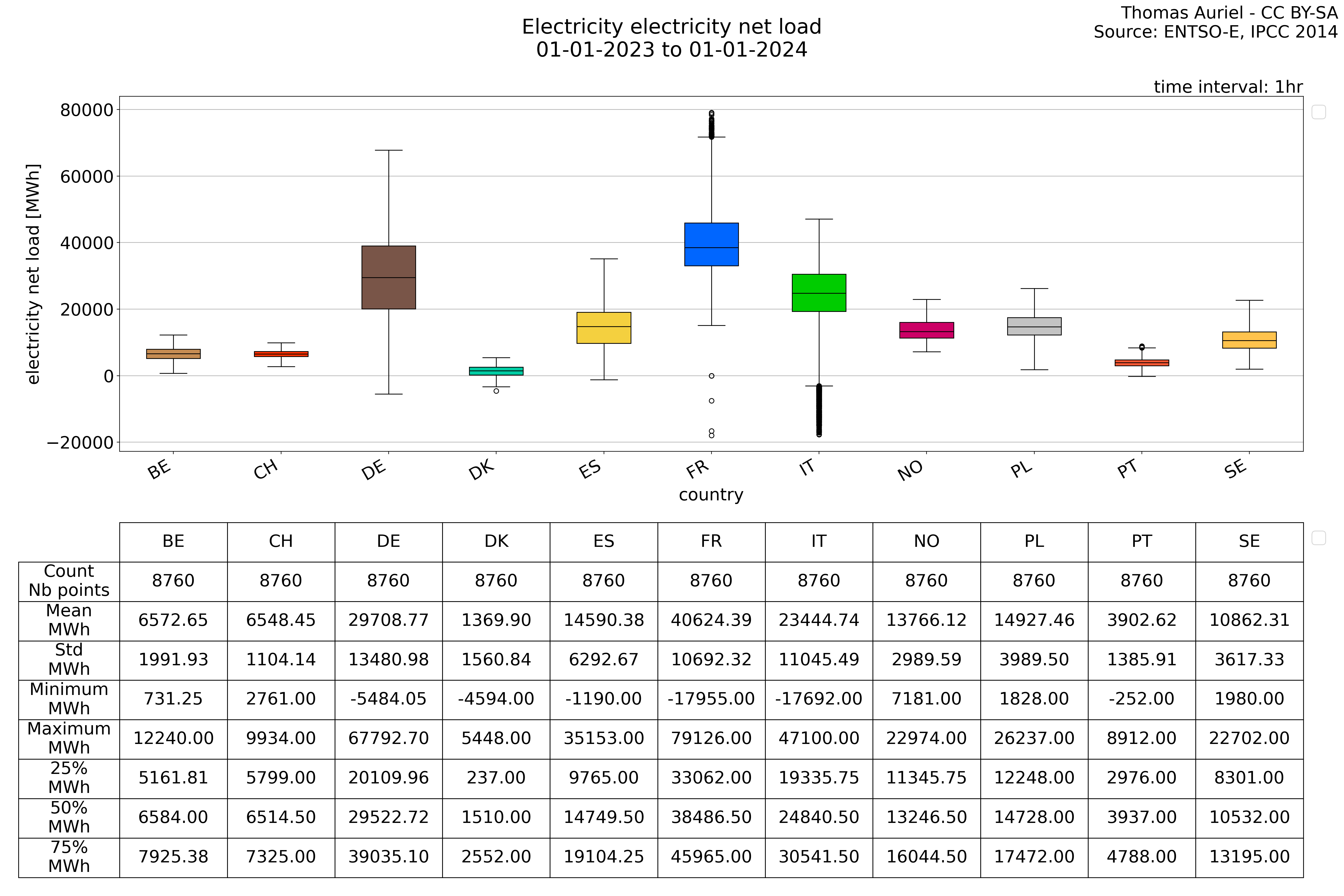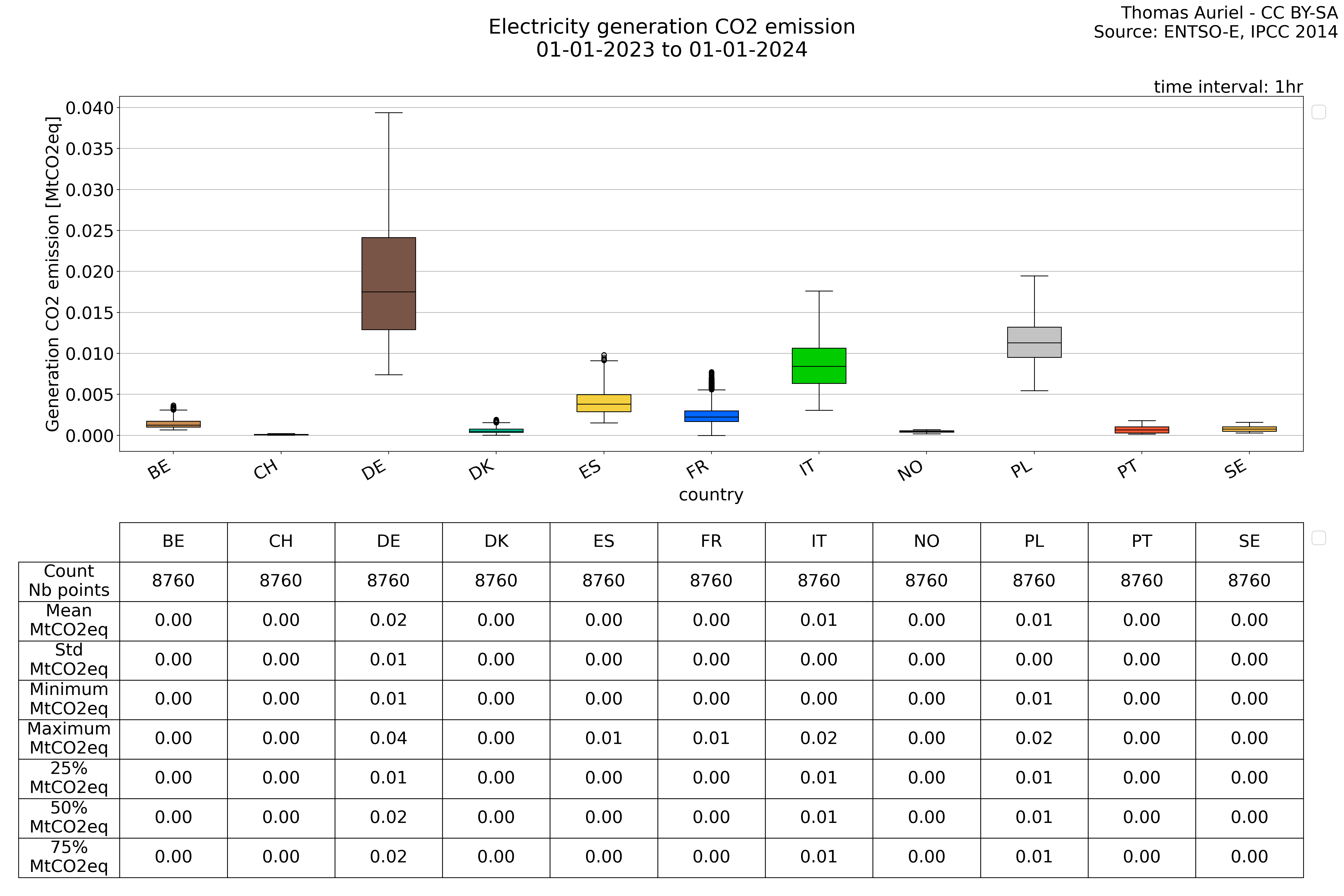 In these hourly line plots, the x-axis spans the entire year, with hours as individual data points. The y-axis represents the values of production, exchange, consumption, and data emissions, but unlike cumulative plots, these plots are designed for quality control purposes. Each line on the plot corresponds to a specific country and is used to identify data irregularities, holes, or artifacts that may occur within the year. By examining these plots, it is possible to spot discrepancies or missing data points in the hourly records, ensuring data integrity.