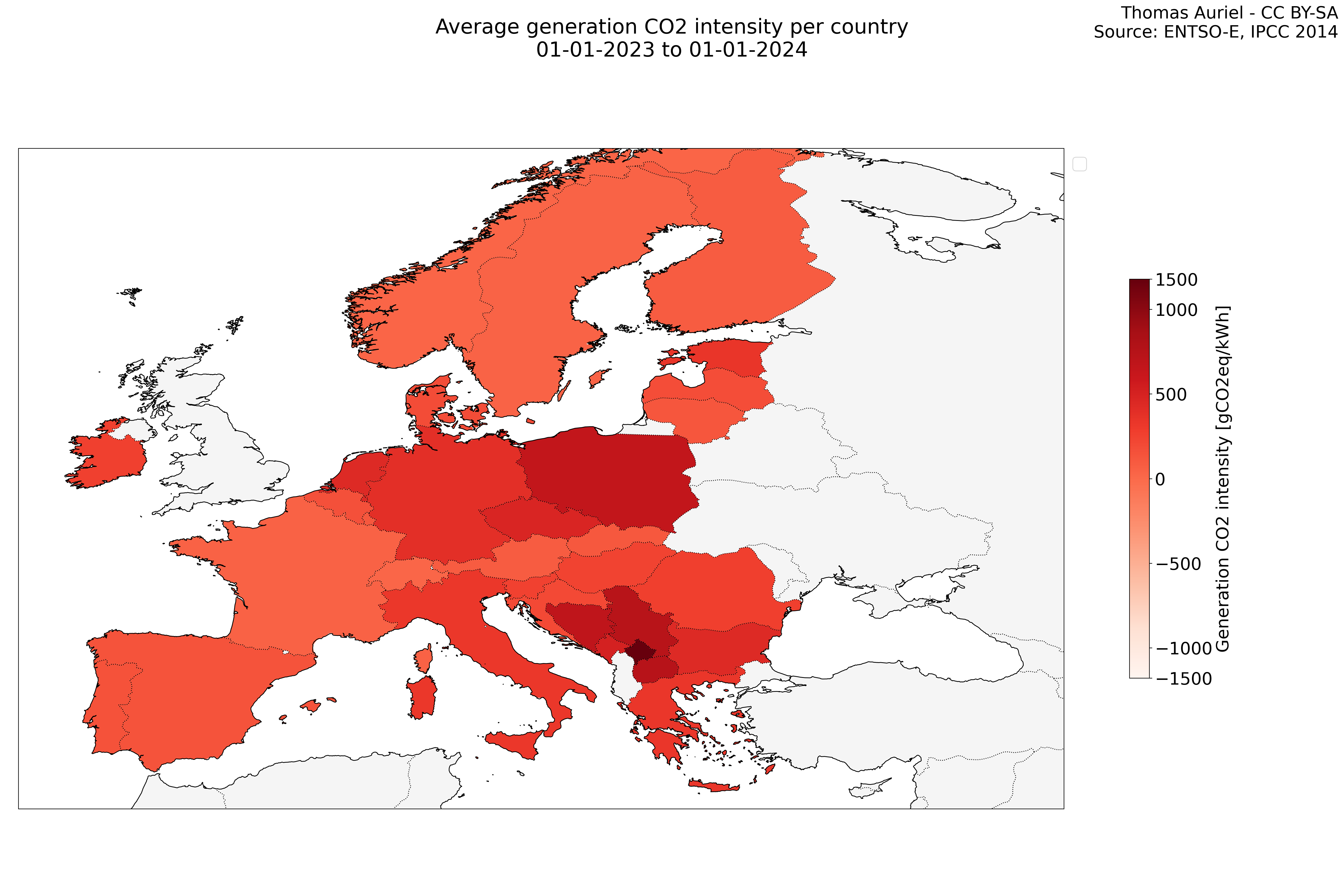 An essential feature of the square plot is the size of each square, which is proportional to the total CO2 emissions of the represented country, calculated by multiplying CO2 intensity with production. Larger squares indicate higher emissions.