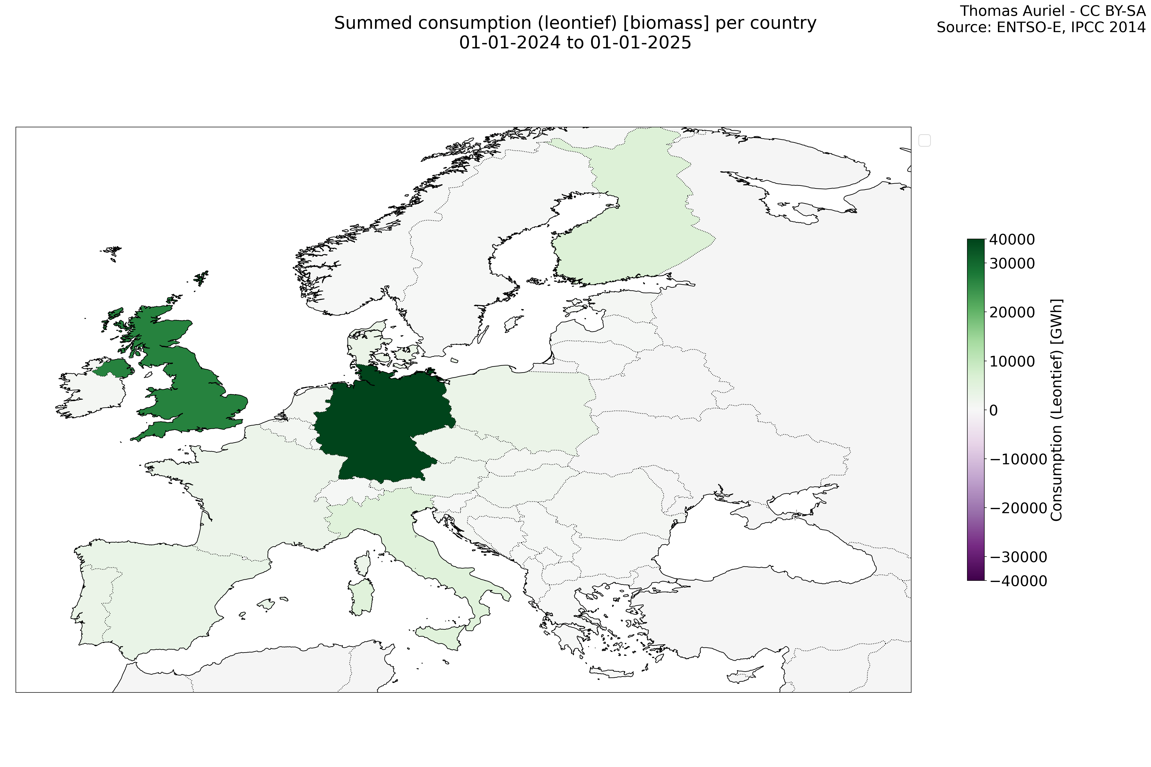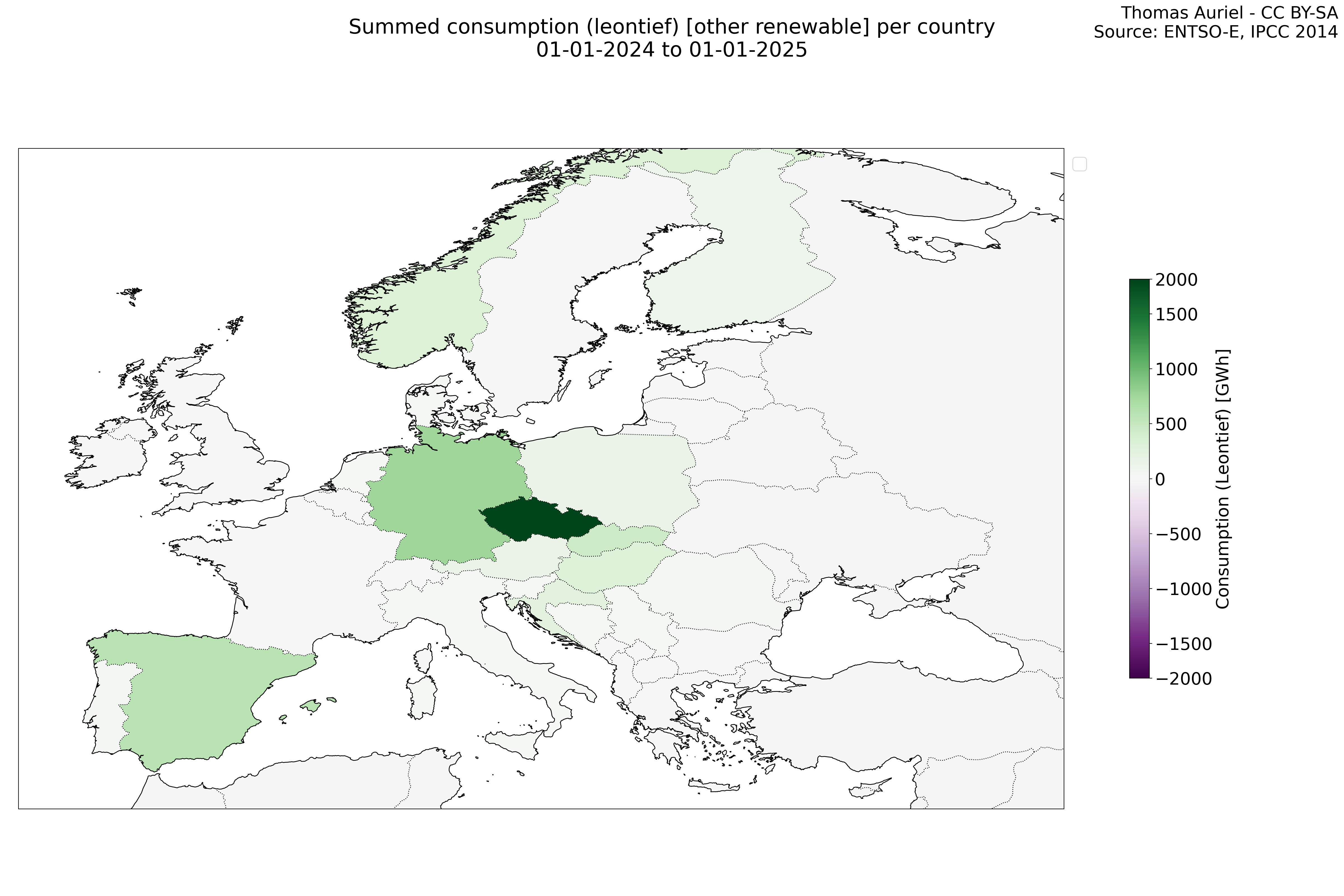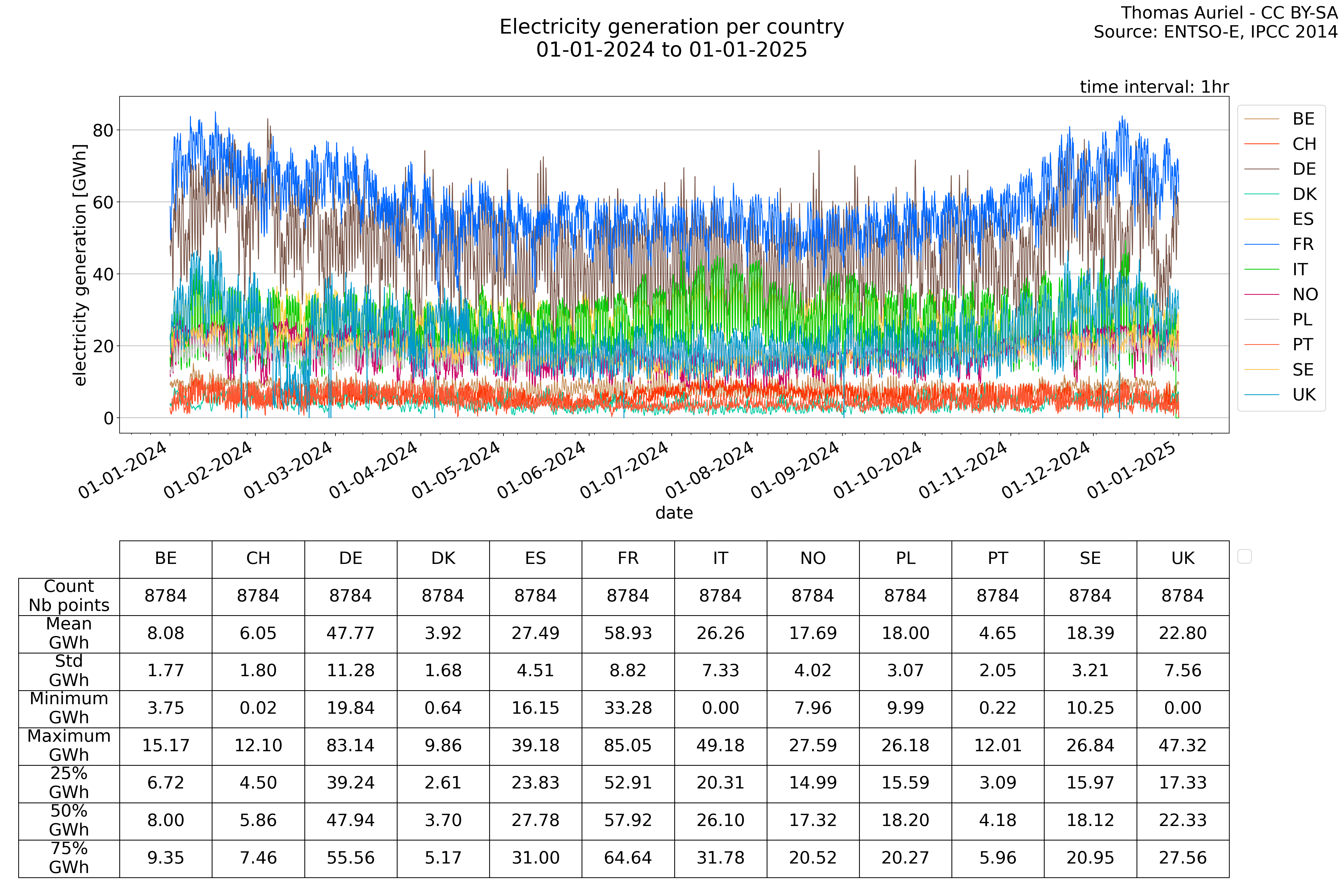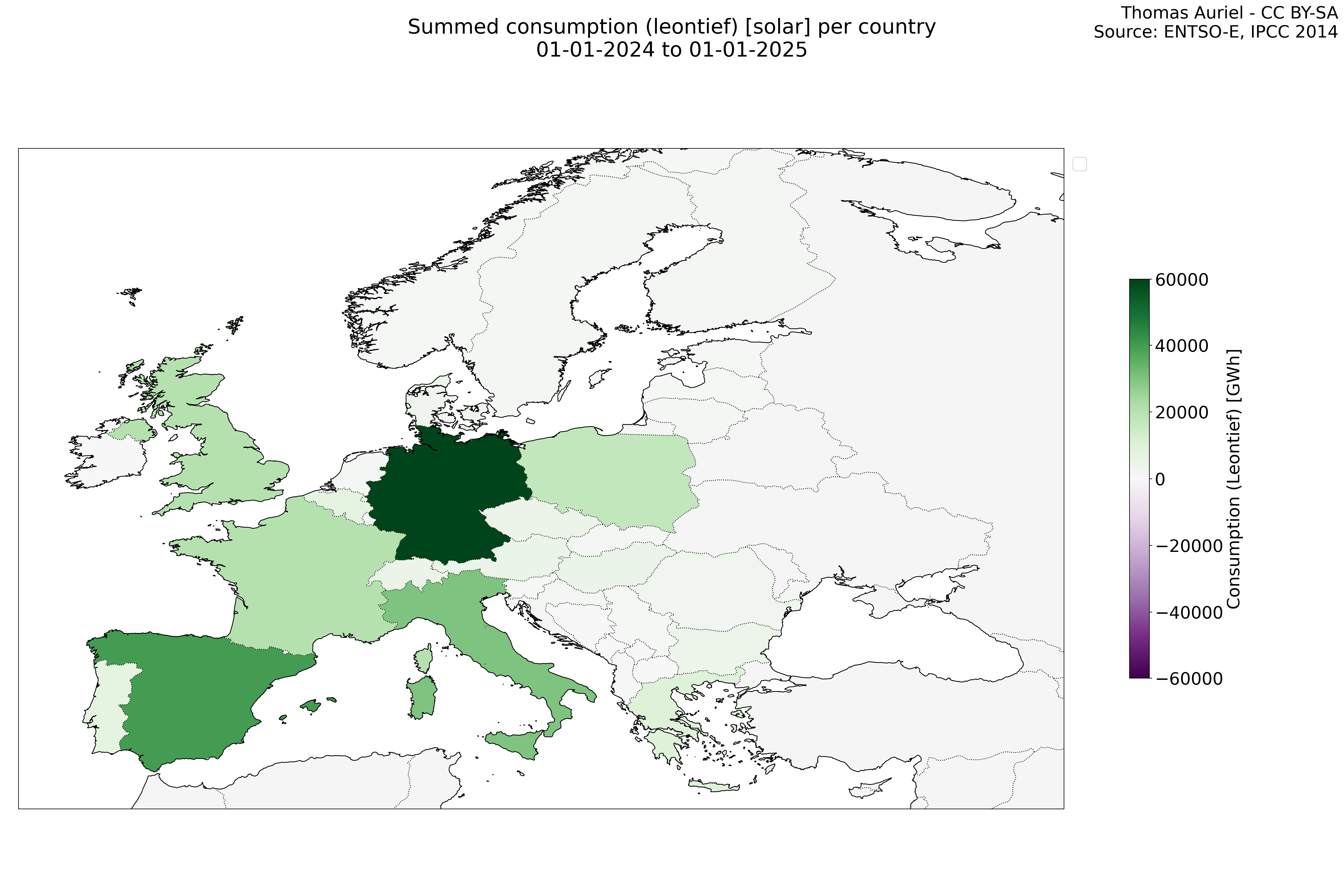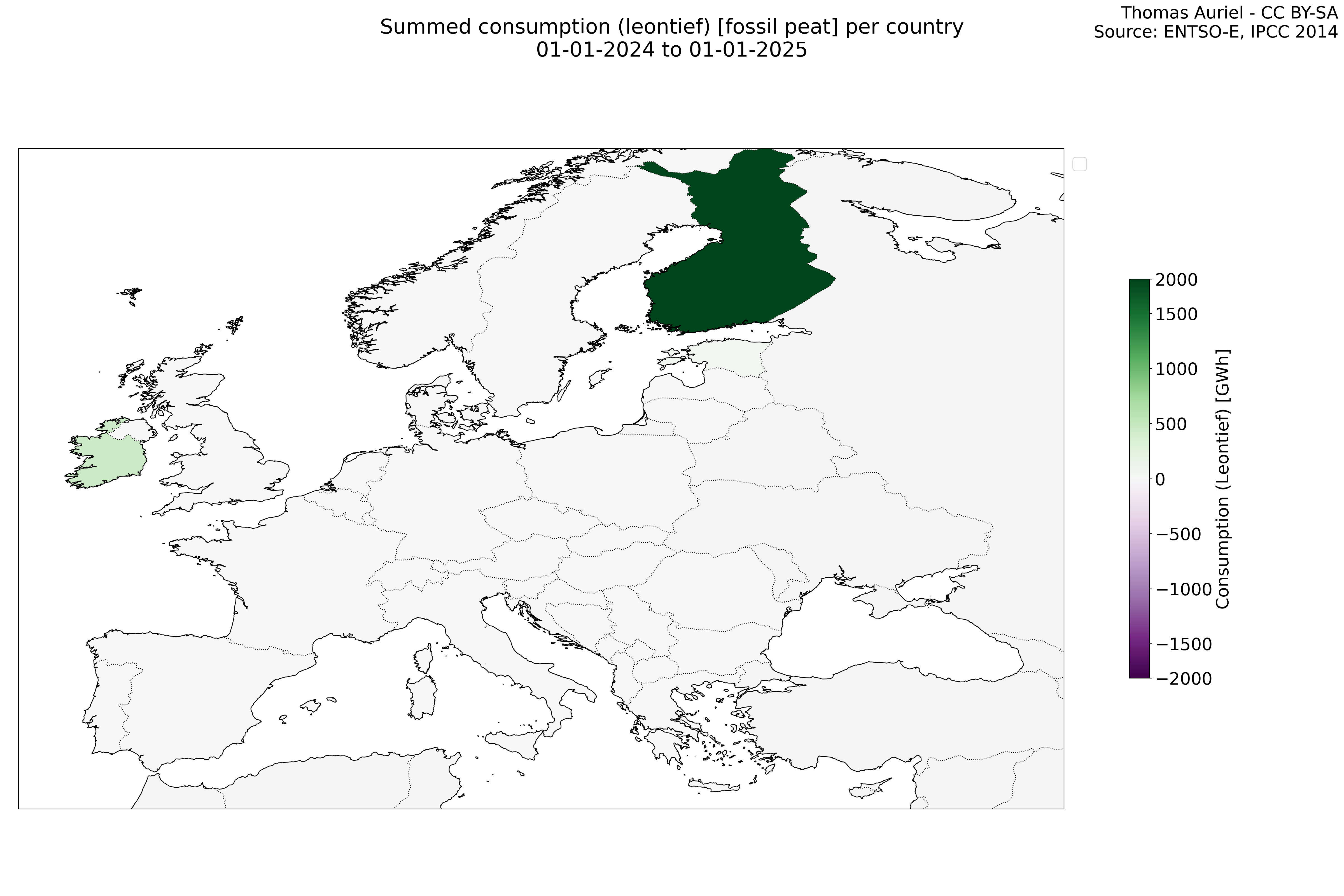 In these hourly line plots, the x-axis spans the entire year, with hours as individual data points. The y-axis represents the values of production, exchange, consumption, and data emissions, but unlike cumulative plots, these plots are designed for quality control purposes. Each line on the plot corresponds to a specific country and is used to identify data irregularities, holes, or artifacts that may occur within the year. By examining these plots, it is possible to spot discrepancies or missing data points in the hourly records, ensuring data integrity.