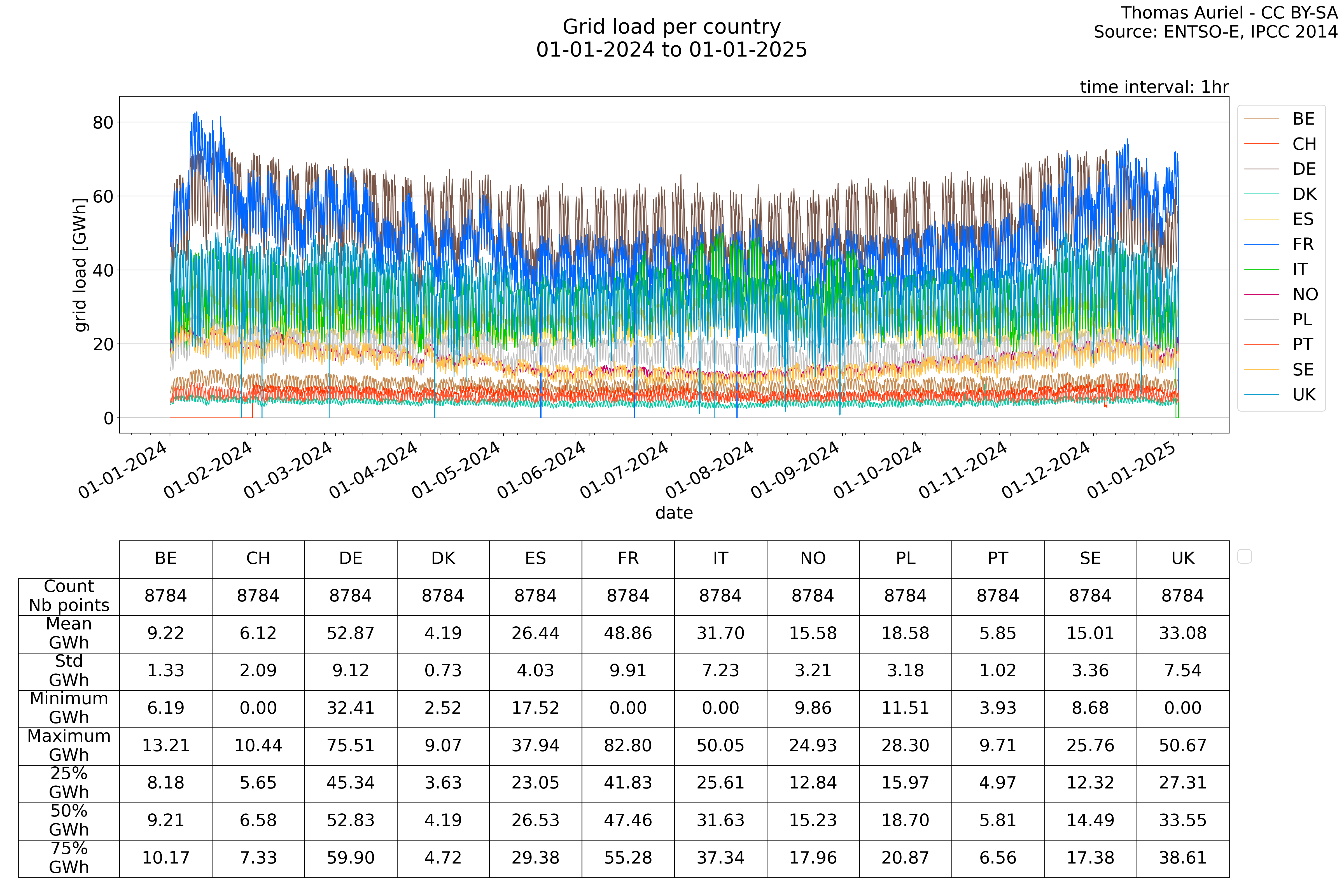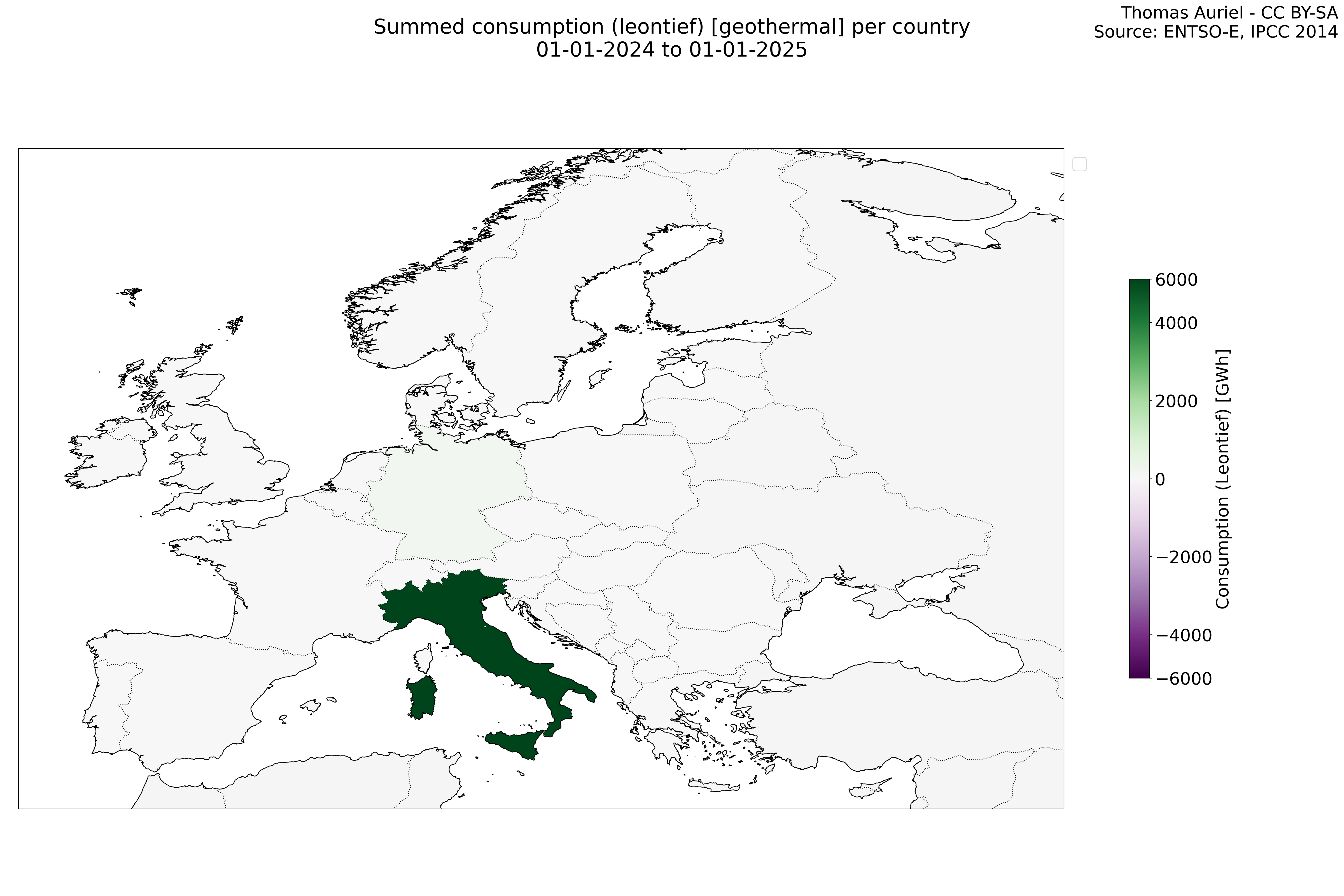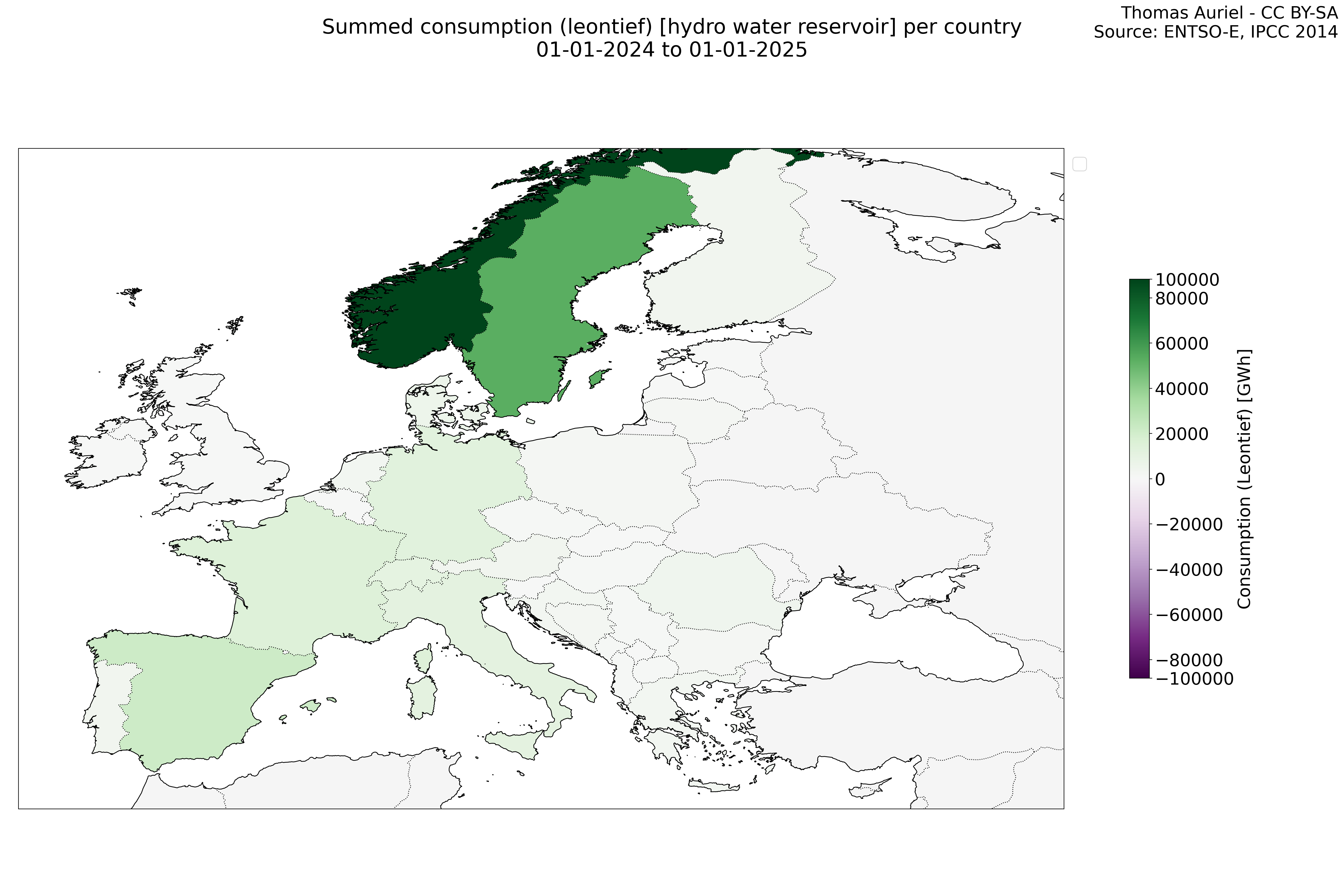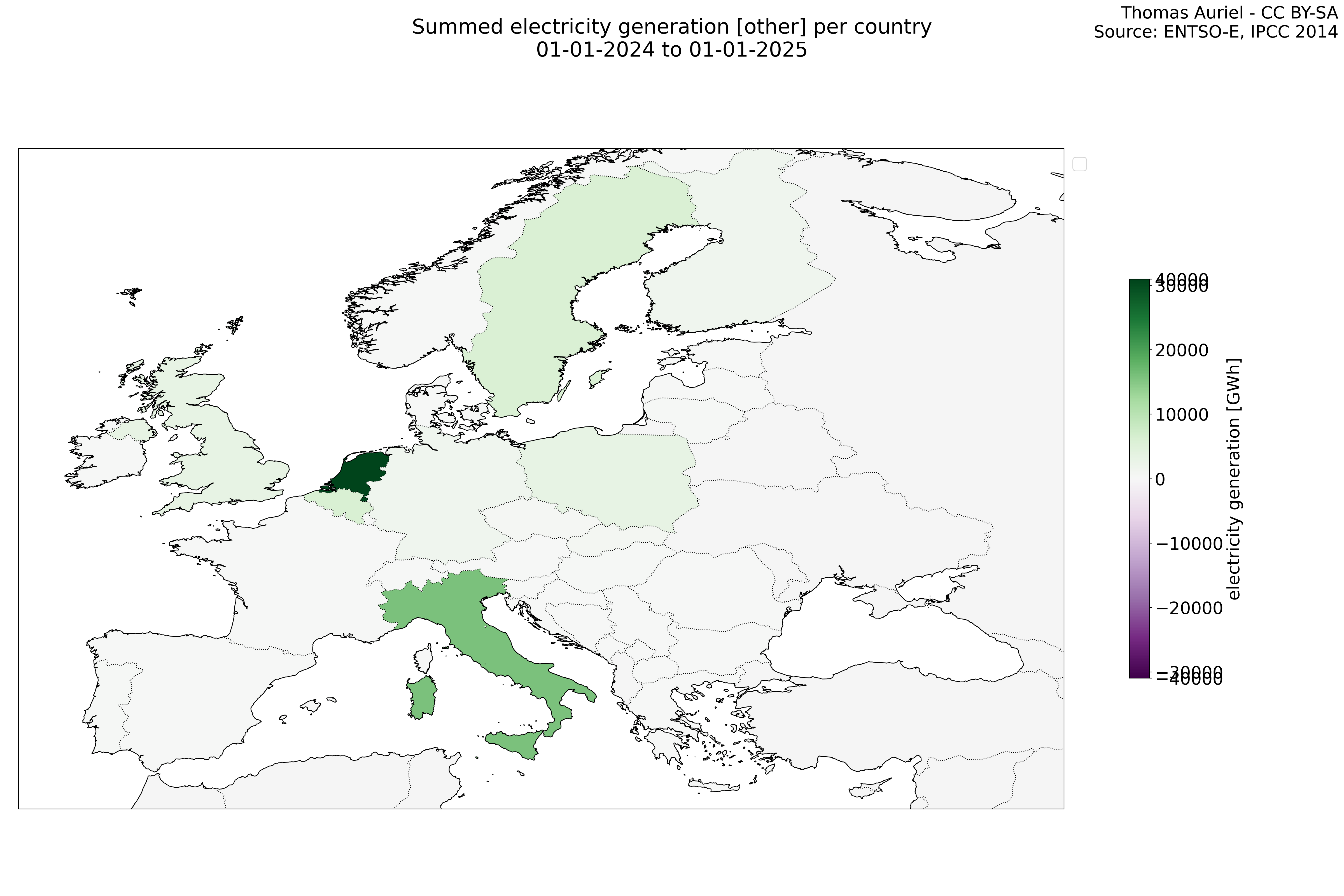 In these hourly line plots, the x-axis spans the entire year, with hours as individual data points. The y-axis represents the values of production, exchange, consumption, and data emissions, but unlike cumulative plots, these plots are designed for quality control purposes. Each line on the plot corresponds to a specific country and is used to identify data irregularities, holes, or artifacts that may occur within the year. By examining these plots, it is possible to spot discrepancies or missing data points in the hourly records, ensuring data integrity.