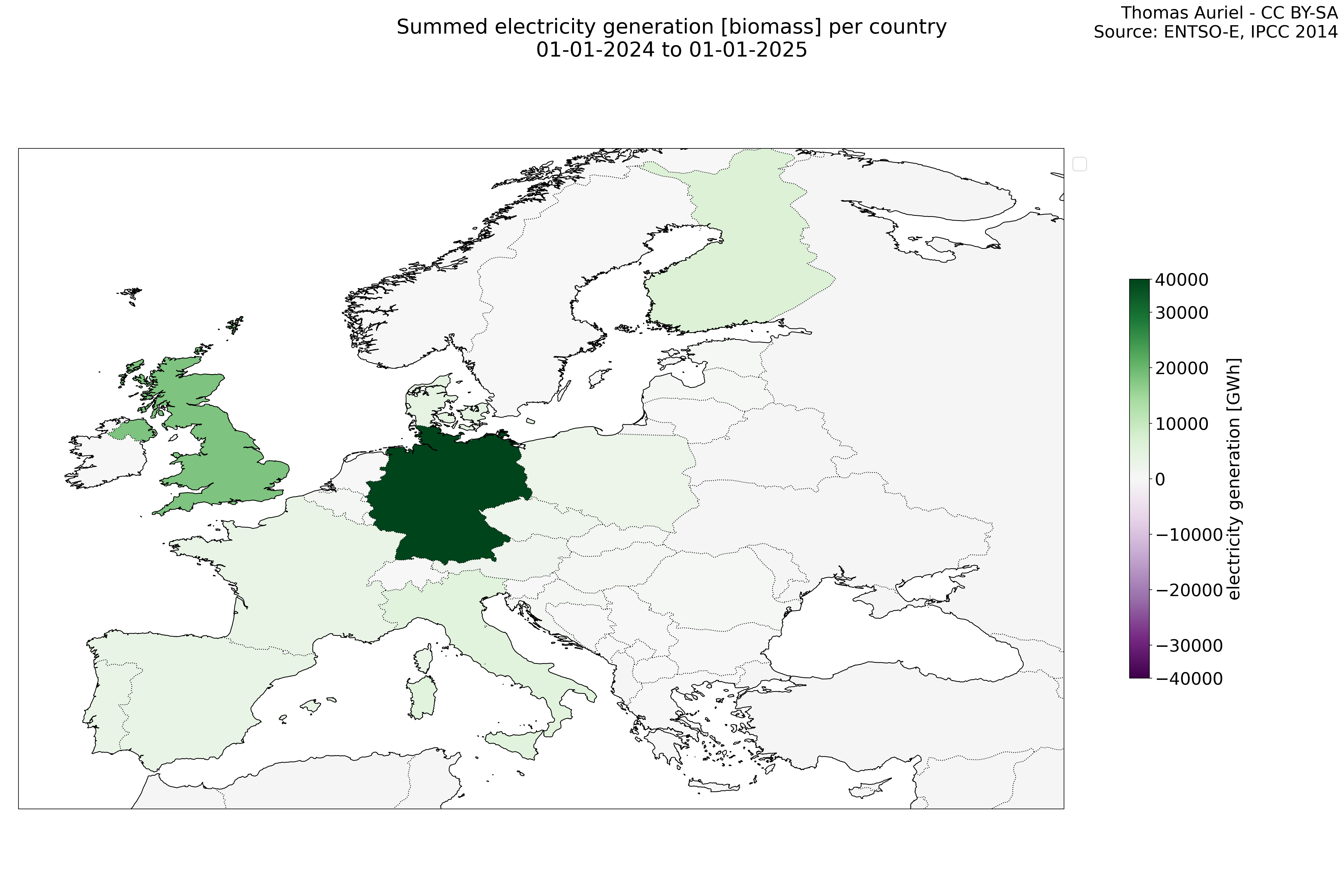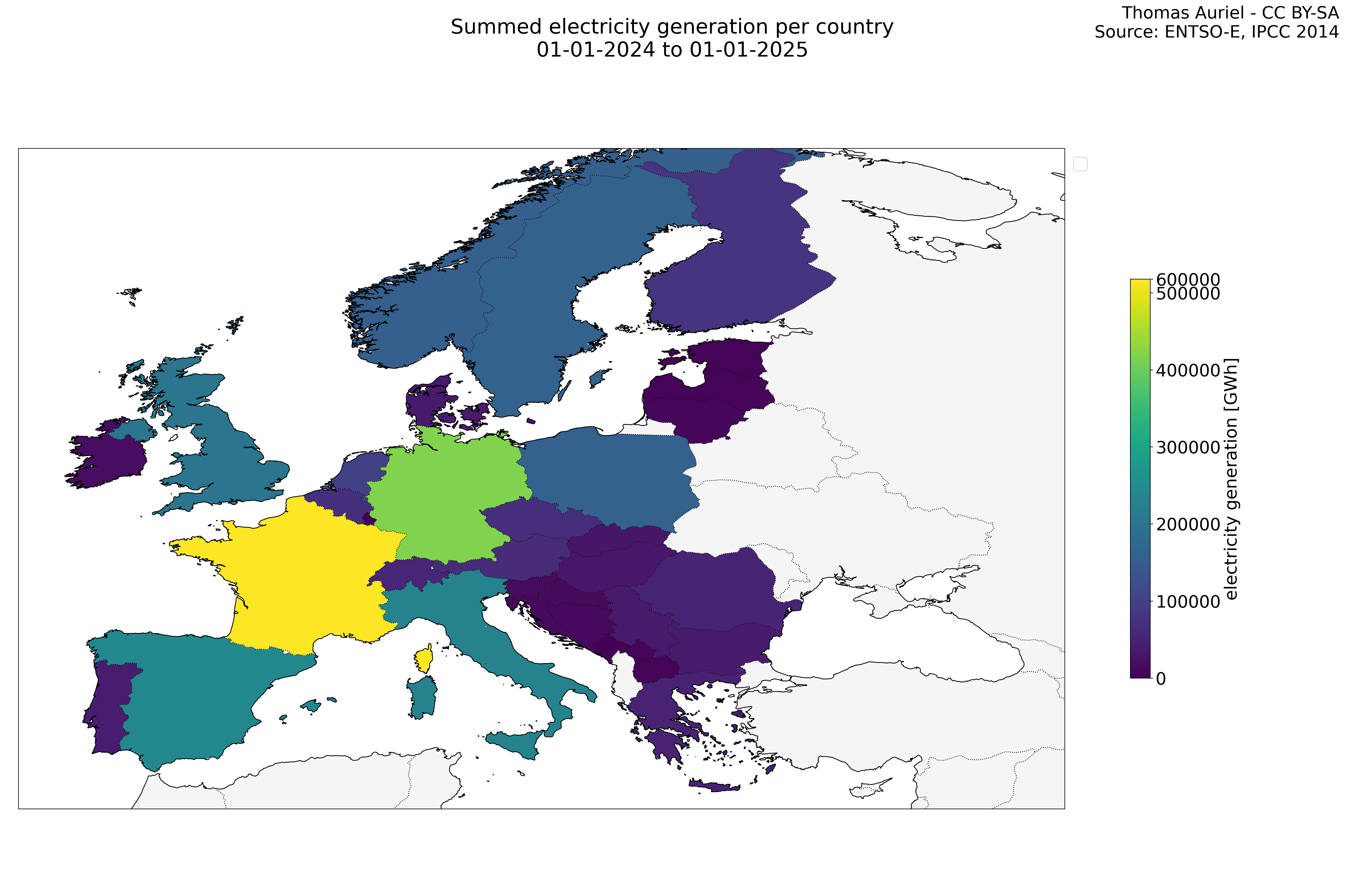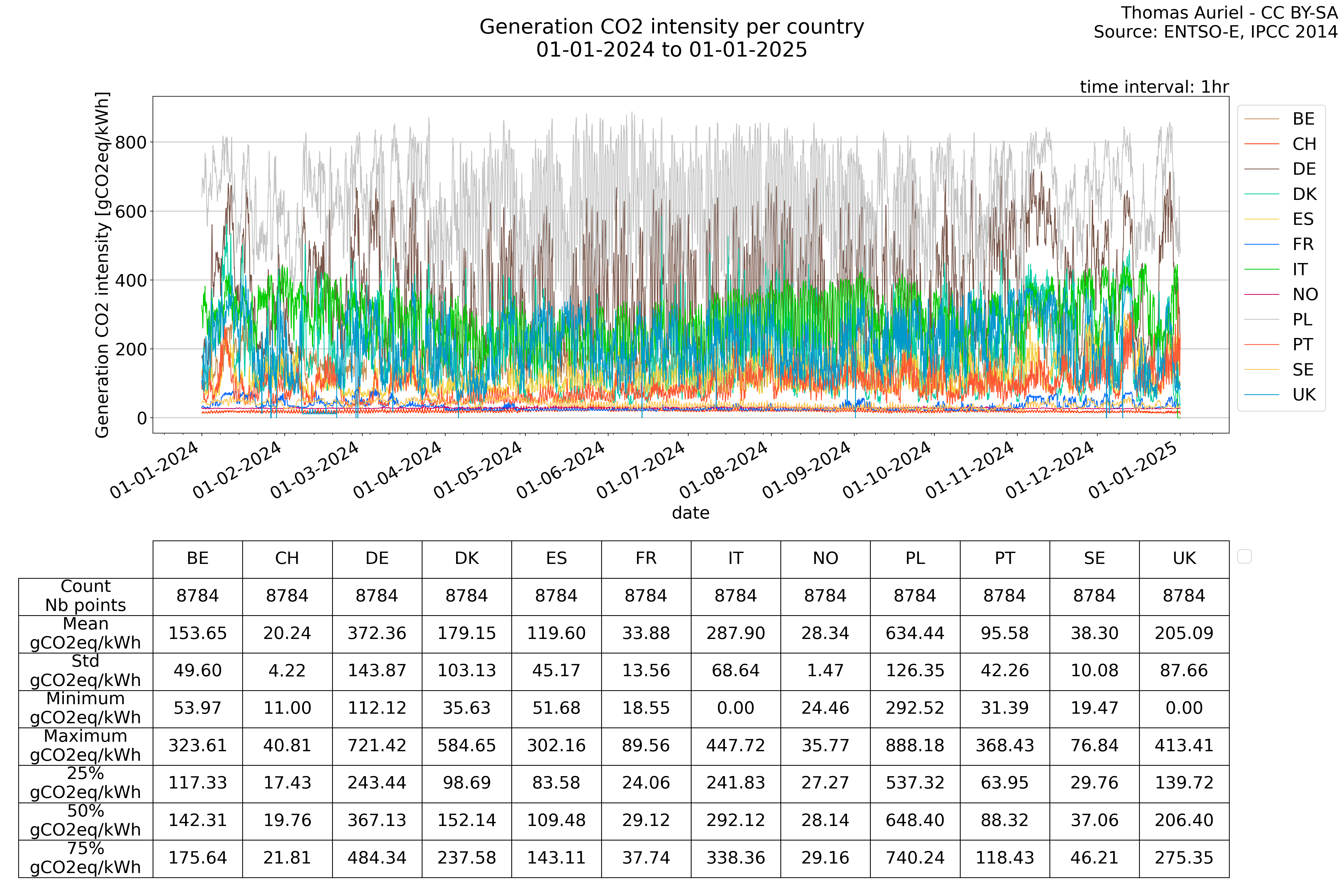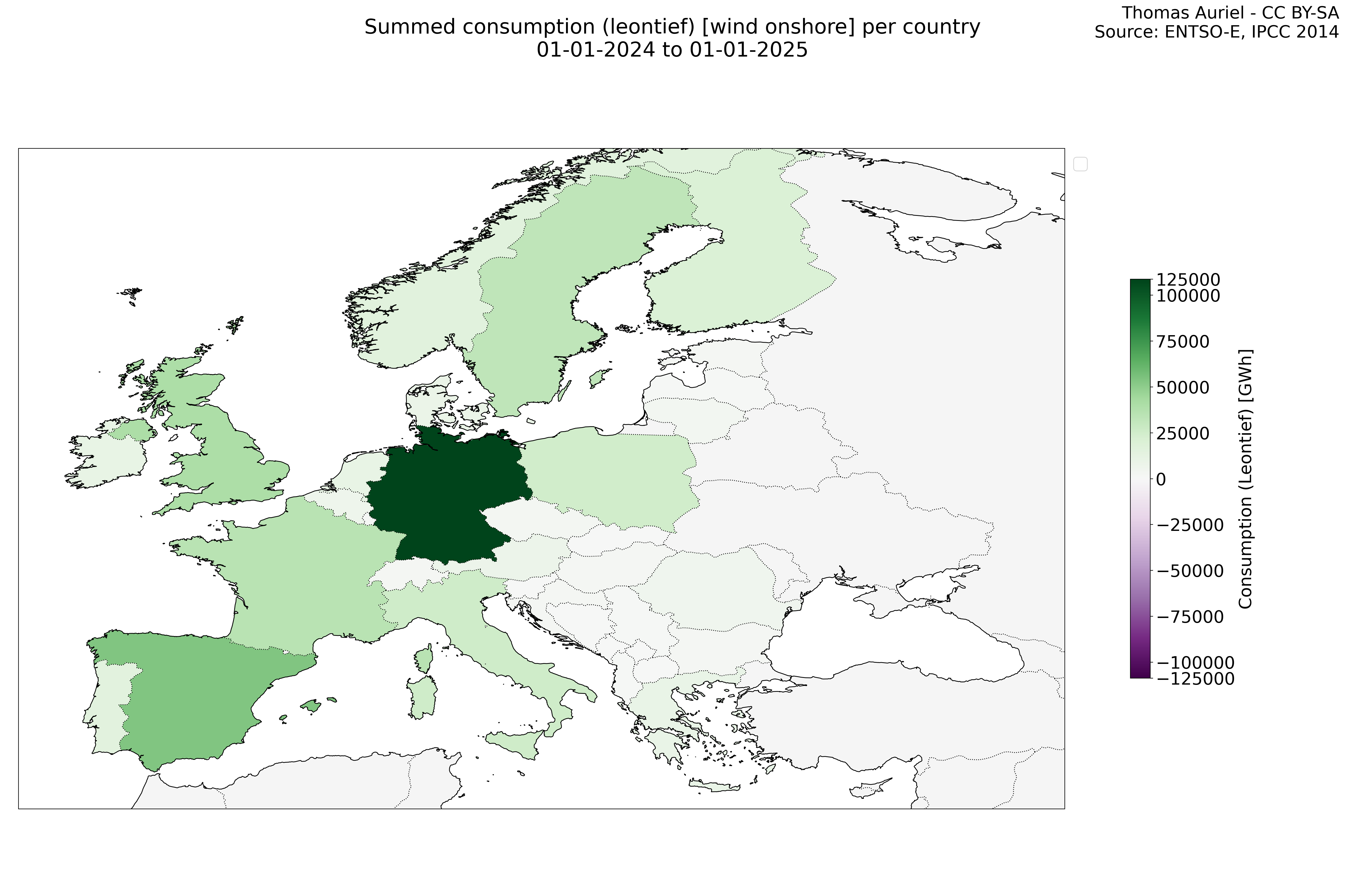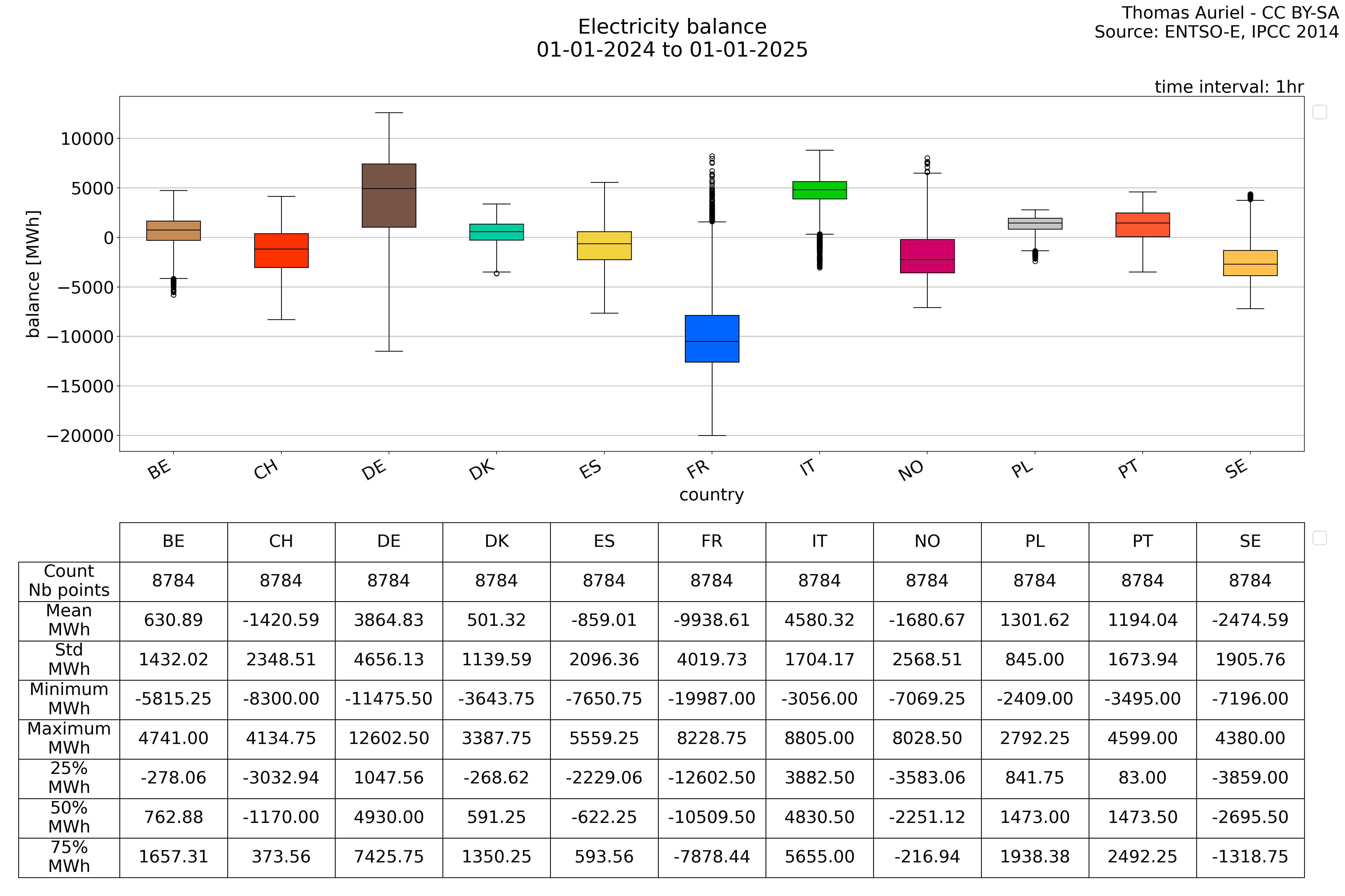 In these hourly line plots, the x-axis spans the entire year, with hours as individual data points. The y-axis represents the values of production, exchange, consumption, and data emissions, but unlike cumulative plots, these plots are designed for quality control purposes. Each line on the plot corresponds to a specific country and is used to identify data irregularities, holes, or artifacts that may occur within the year. By examining these plots, it is possible to spot discrepancies or missing data points in the hourly records, ensuring data integrity.