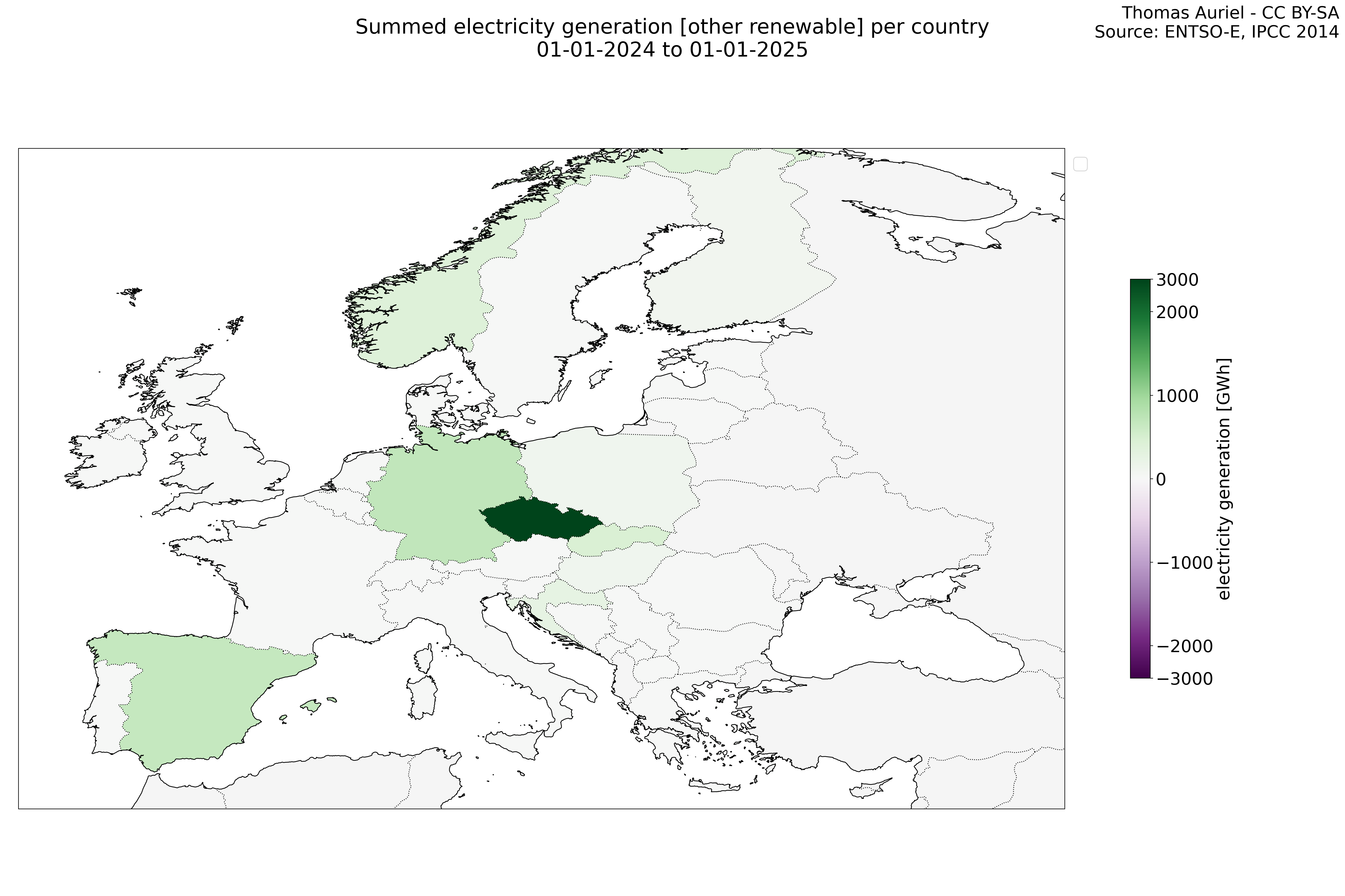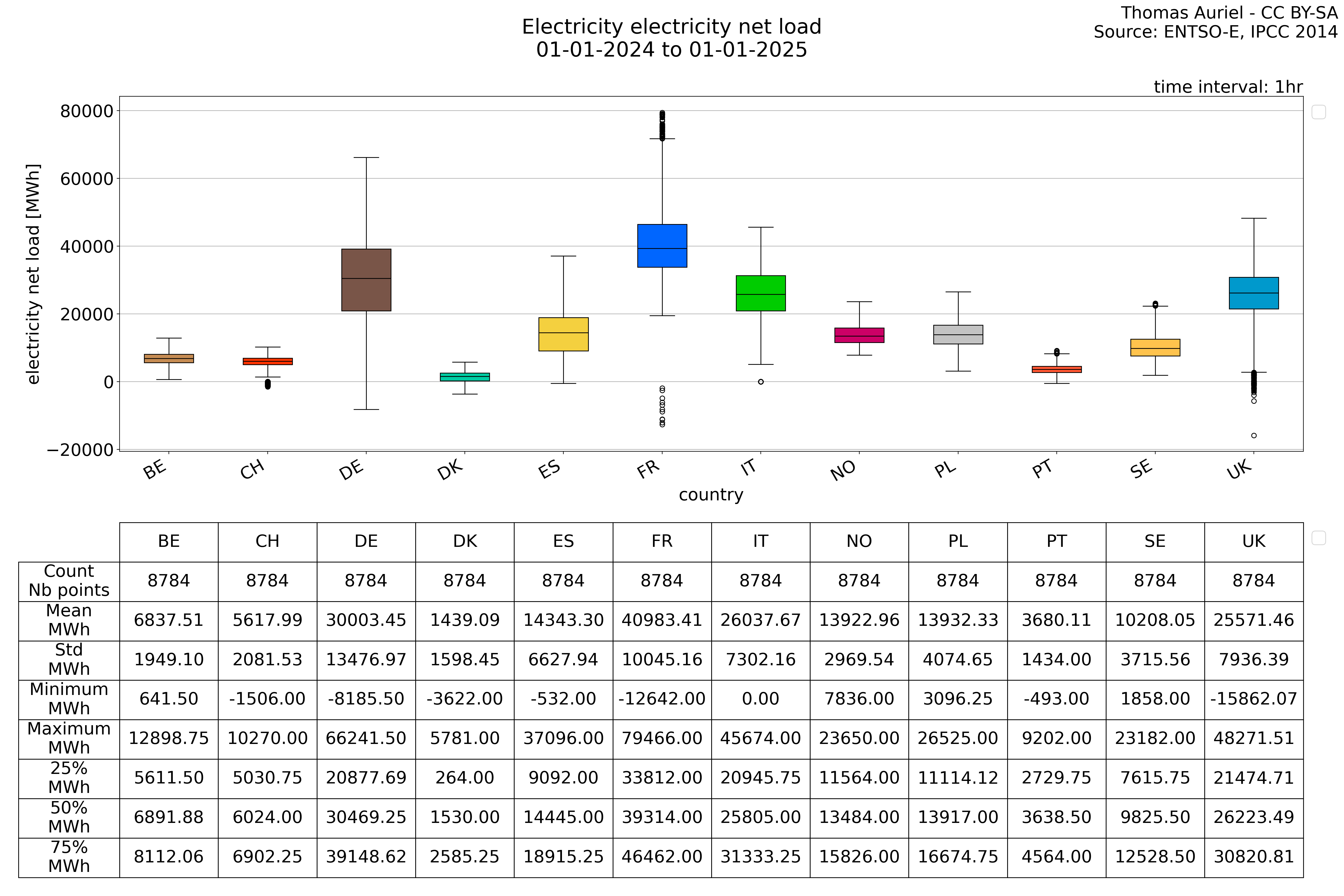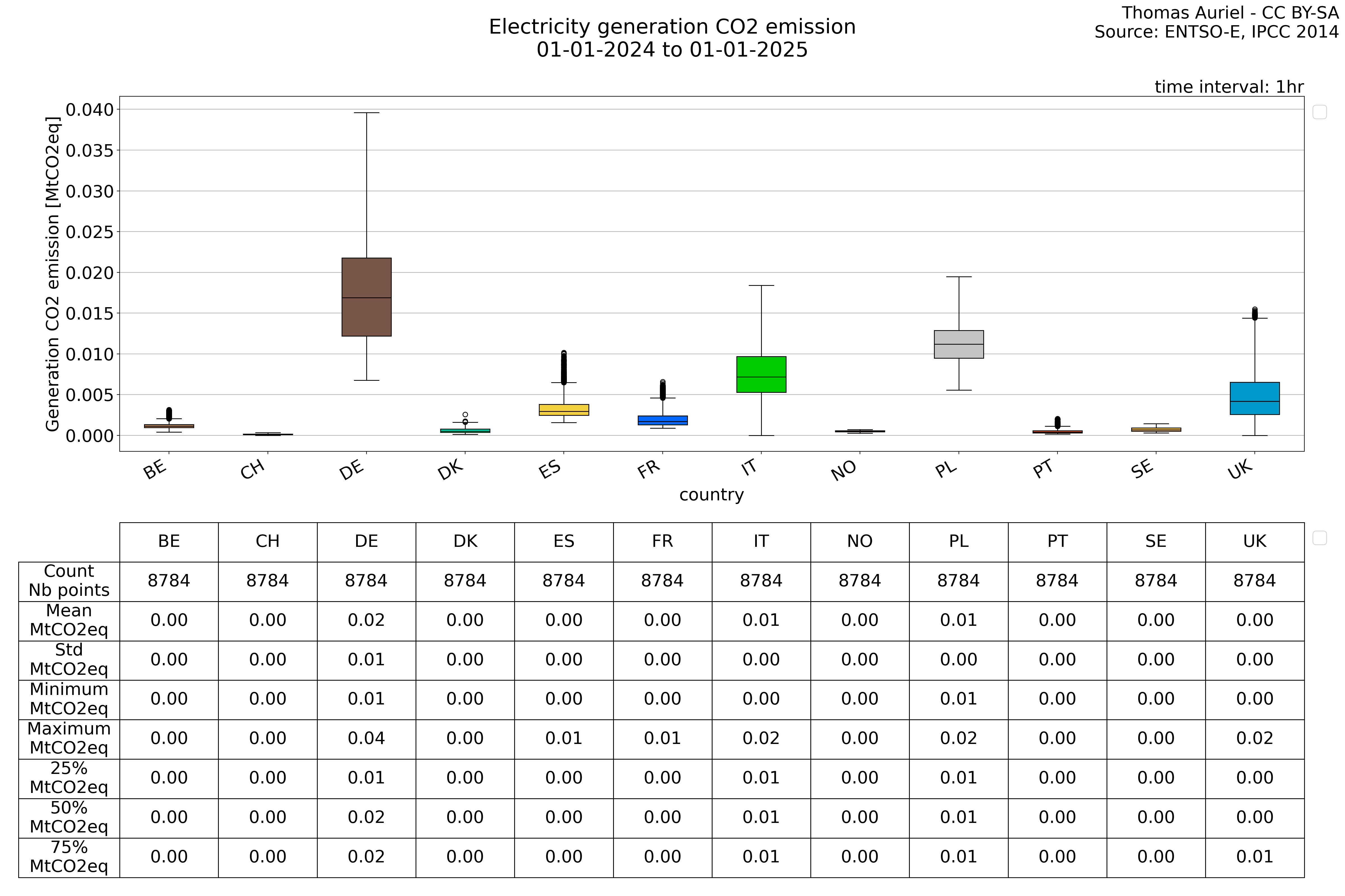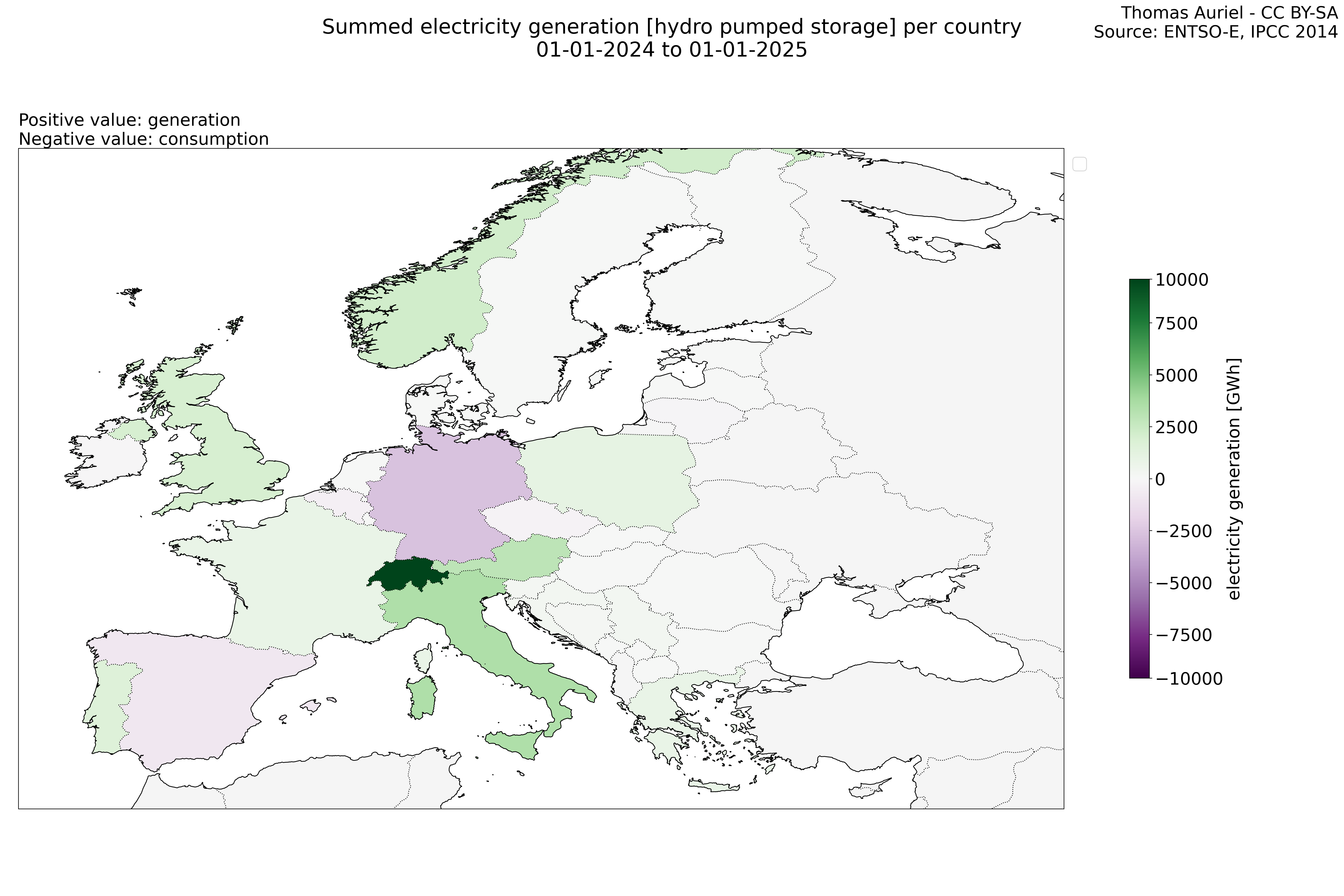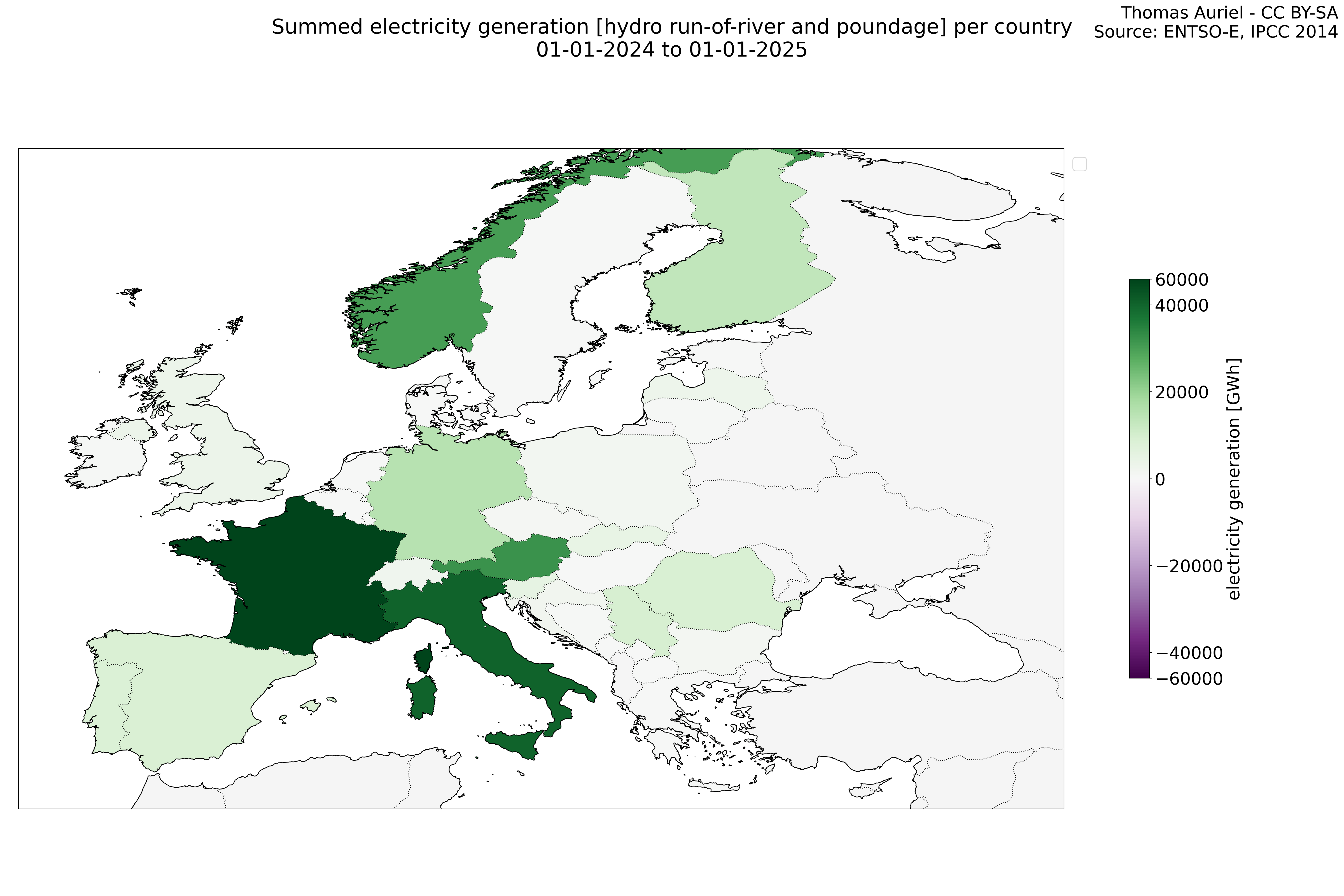 In these hourly line plots, the x-axis spans the entire year, with hours as individual data points. The y-axis represents the values of production, exchange, consumption, and data emissions, but unlike cumulative plots, these plots are designed for quality control purposes. Each line on the plot corresponds to a specific country and is used to identify data irregularities, holes, or artifacts that may occur within the year. By examining these plots, it is possible to spot discrepancies or missing data points in the hourly records, ensuring data integrity.
