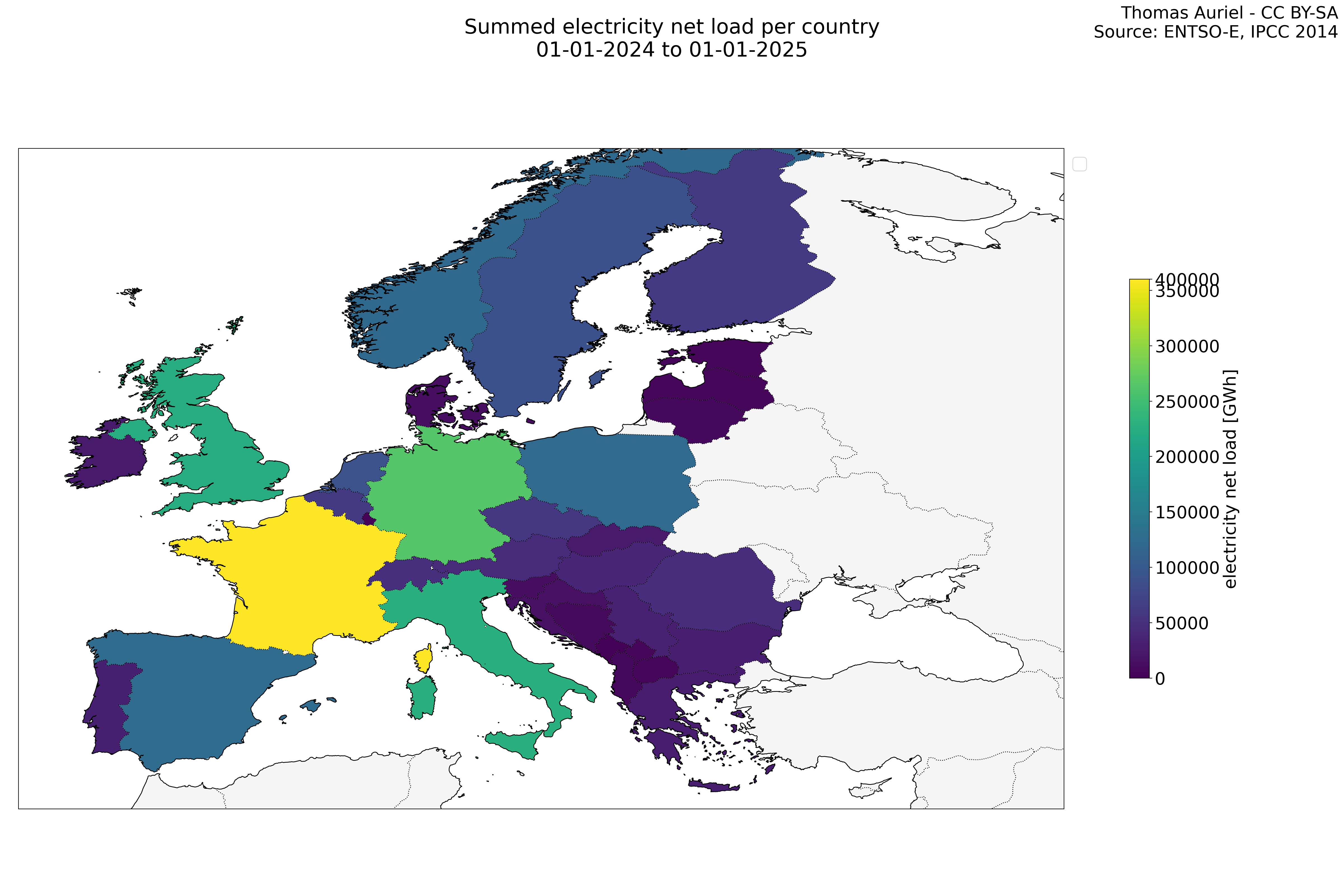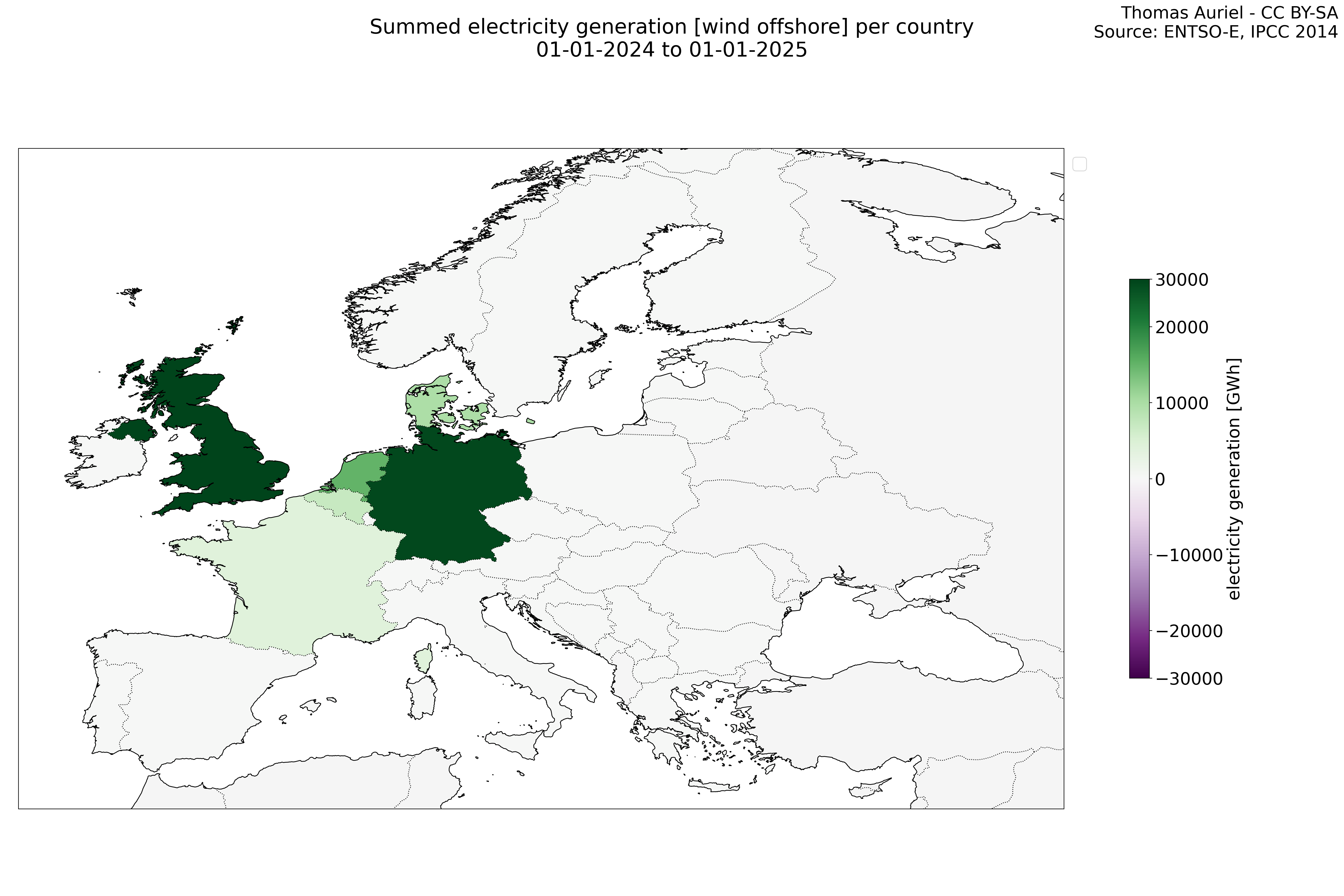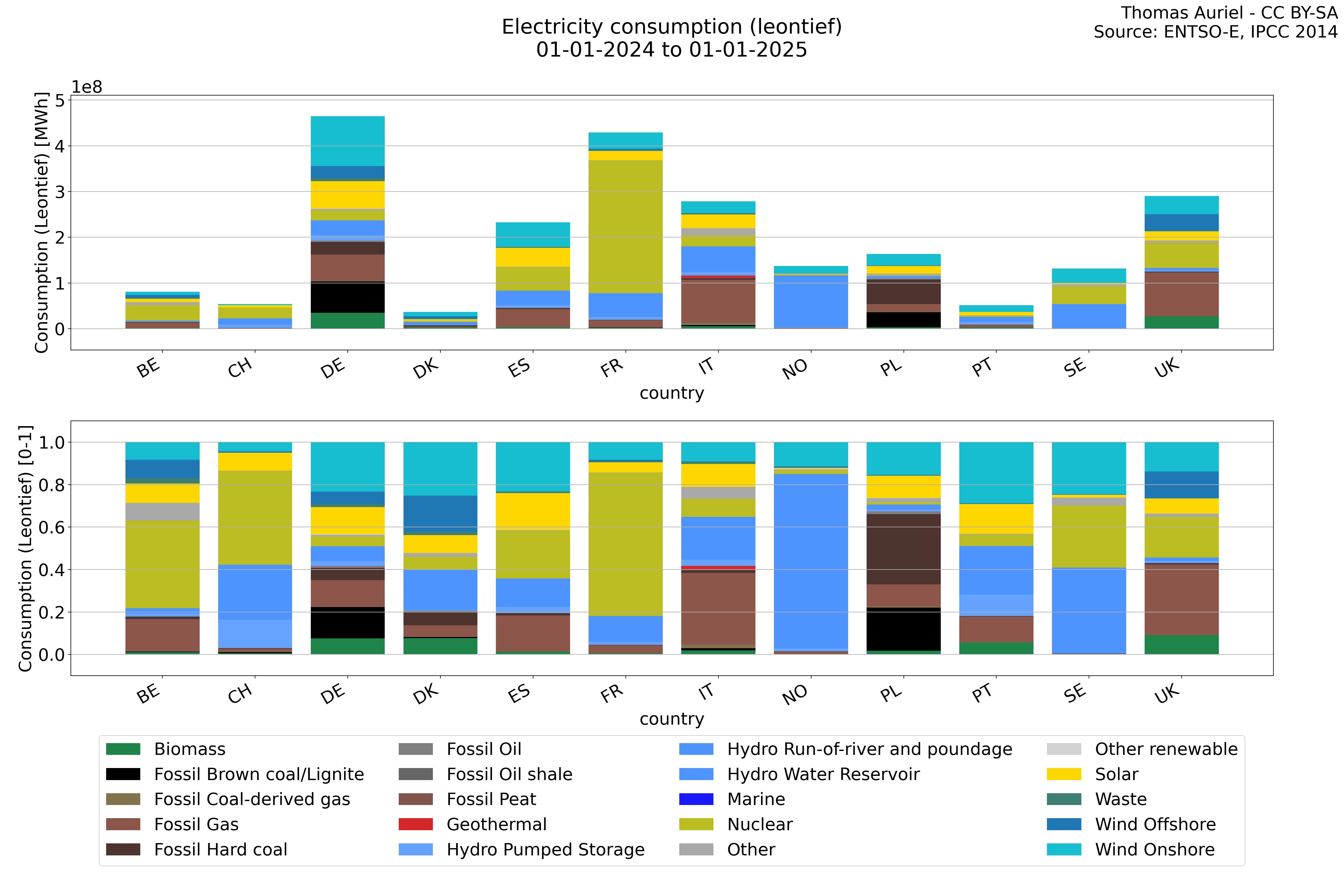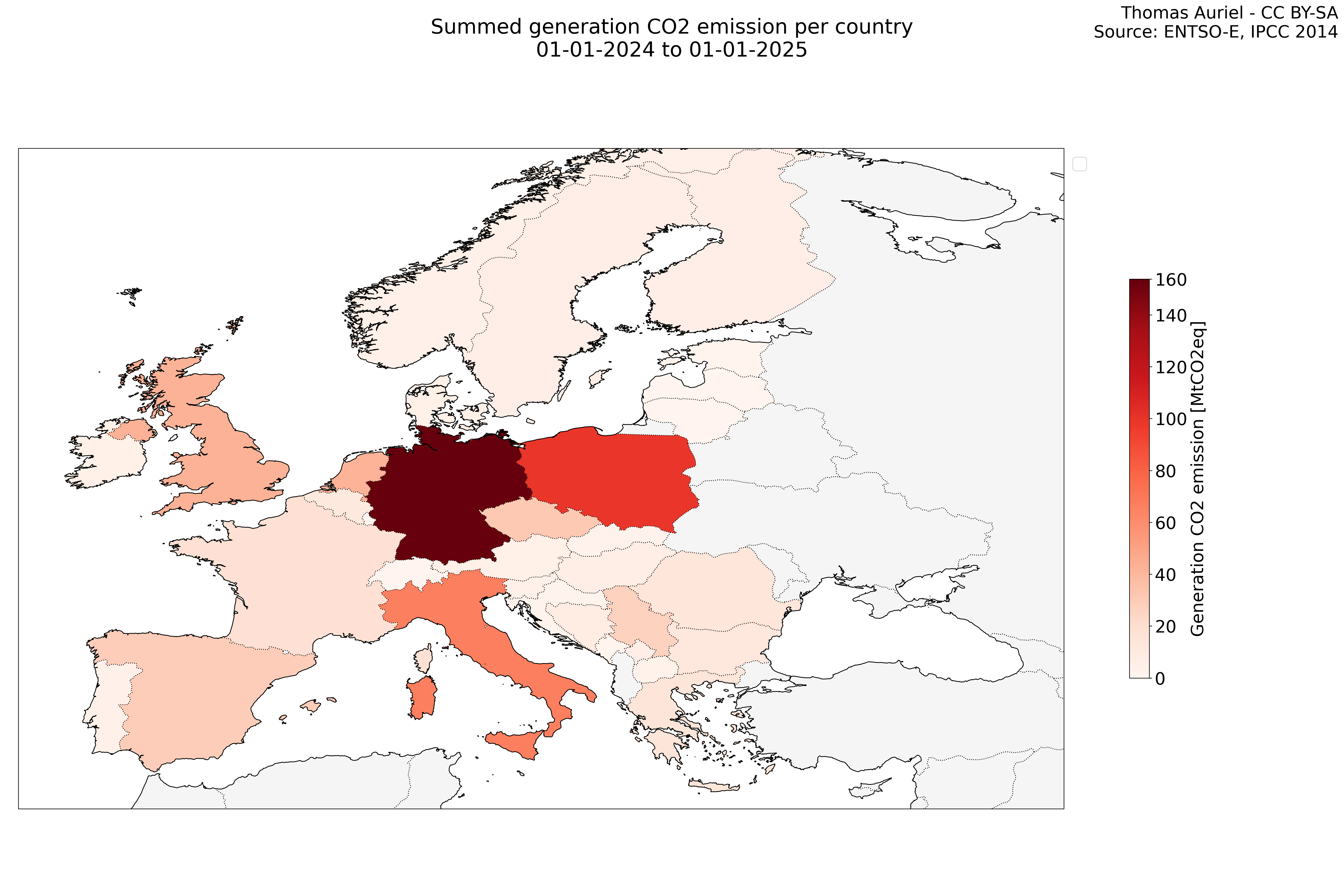 In these hourly line plots, the x-axis spans the entire year, with hours as individual data points. The y-axis represents the values of production, exchange, consumption, and data emissions, but unlike cumulative plots, these plots are designed for quality control purposes. Each line on the plot corresponds to a specific country and is used to identify data irregularities, holes, or artifacts that may occur within the year. By examining these plots, it is possible to spot discrepancies or missing data points in the hourly records, ensuring data integrity.