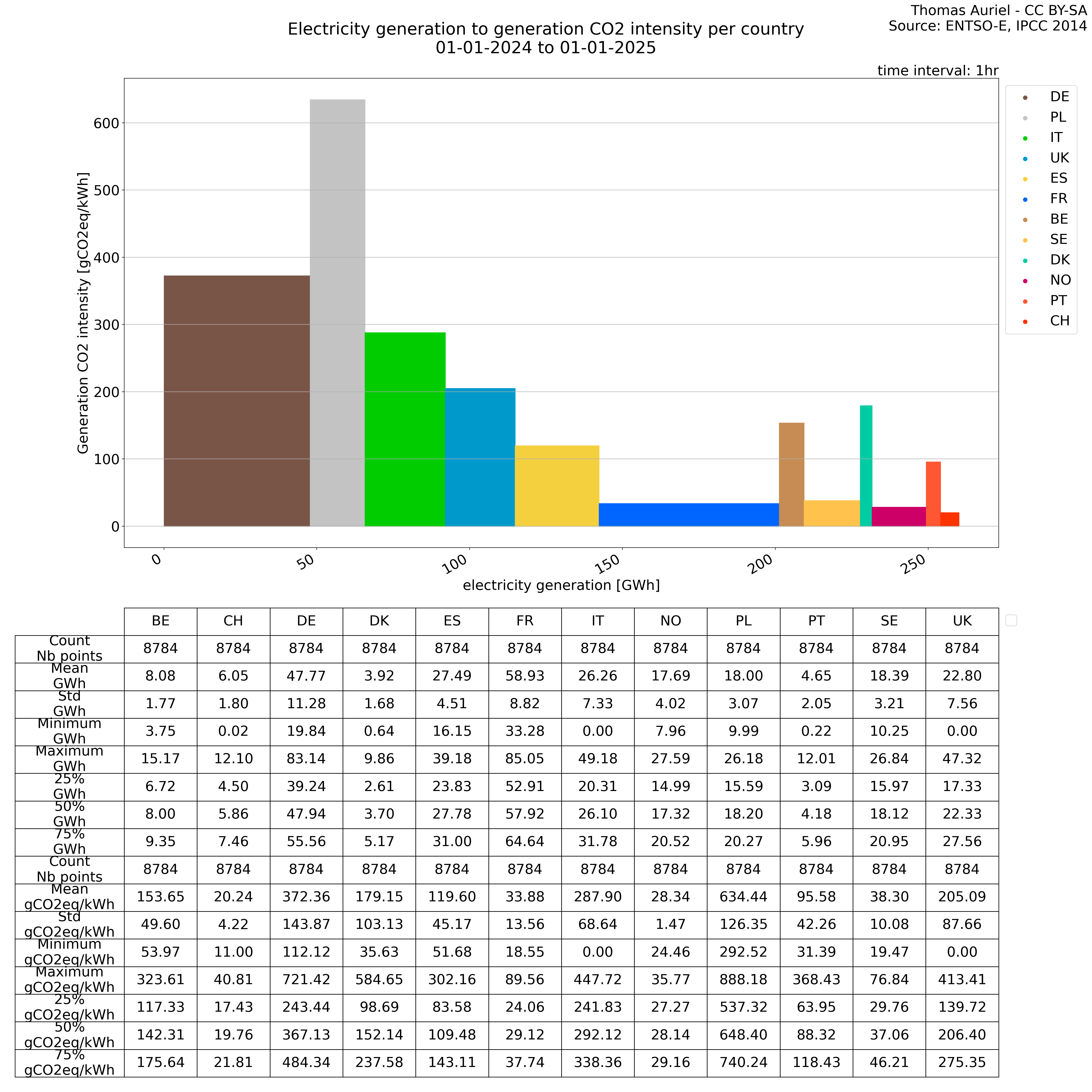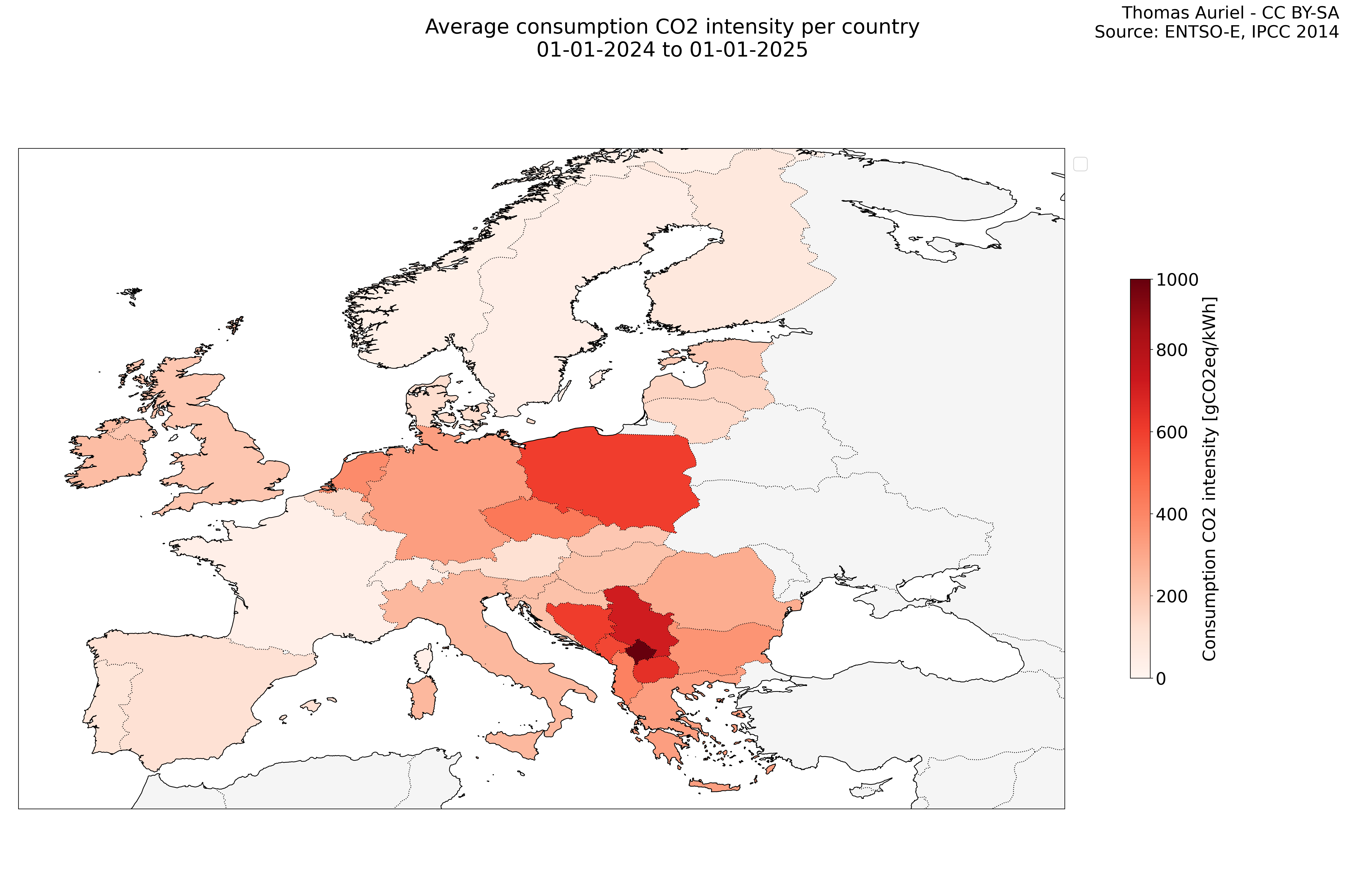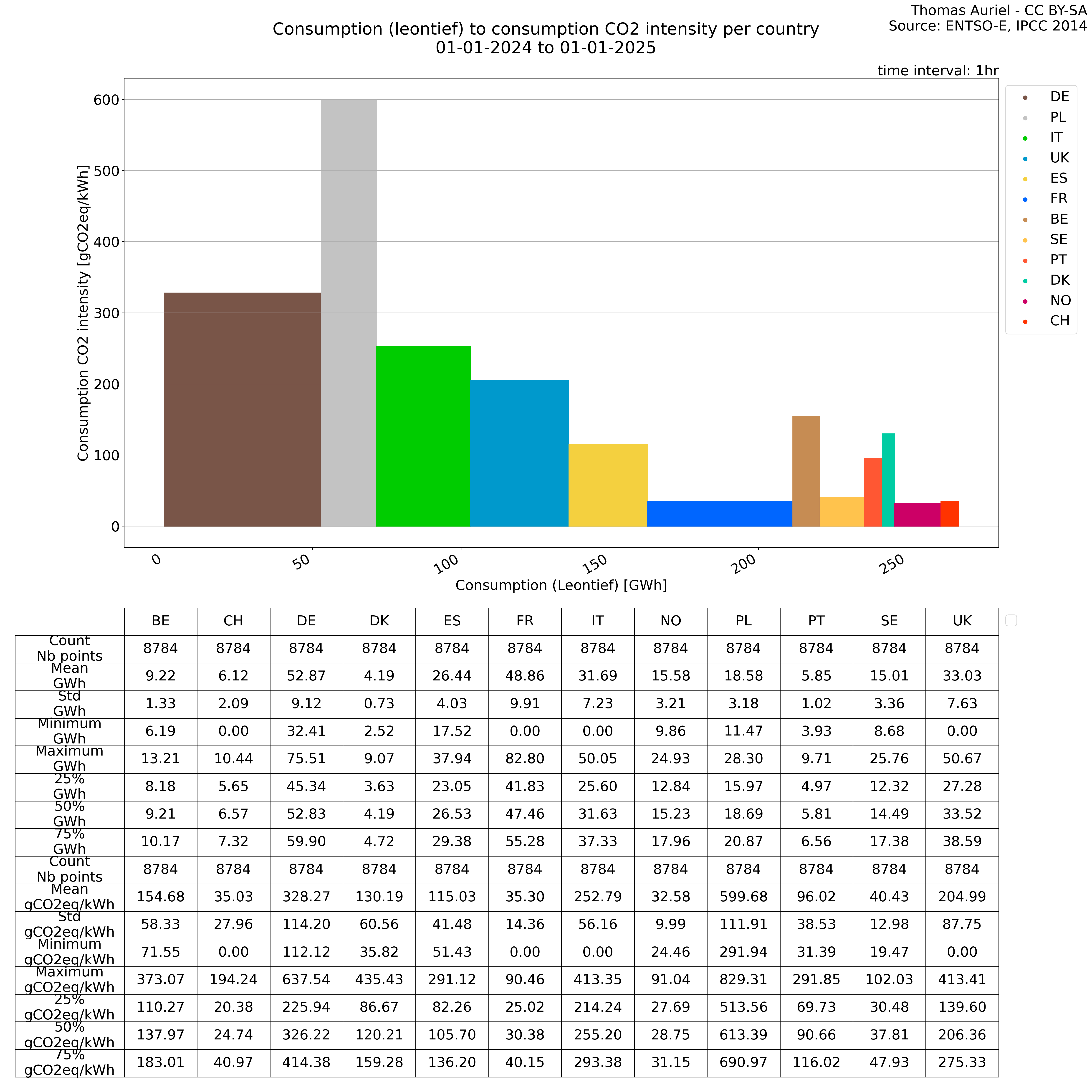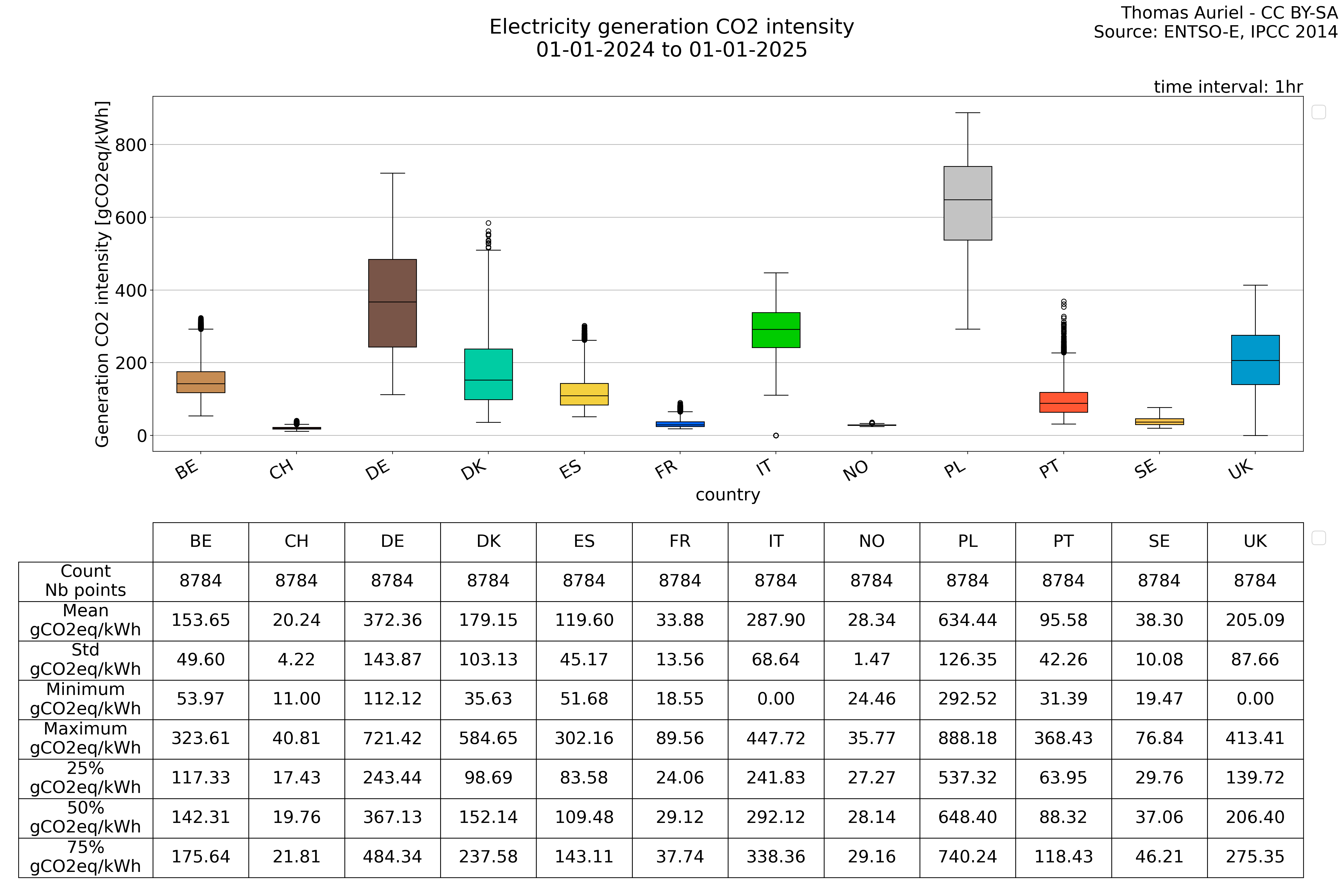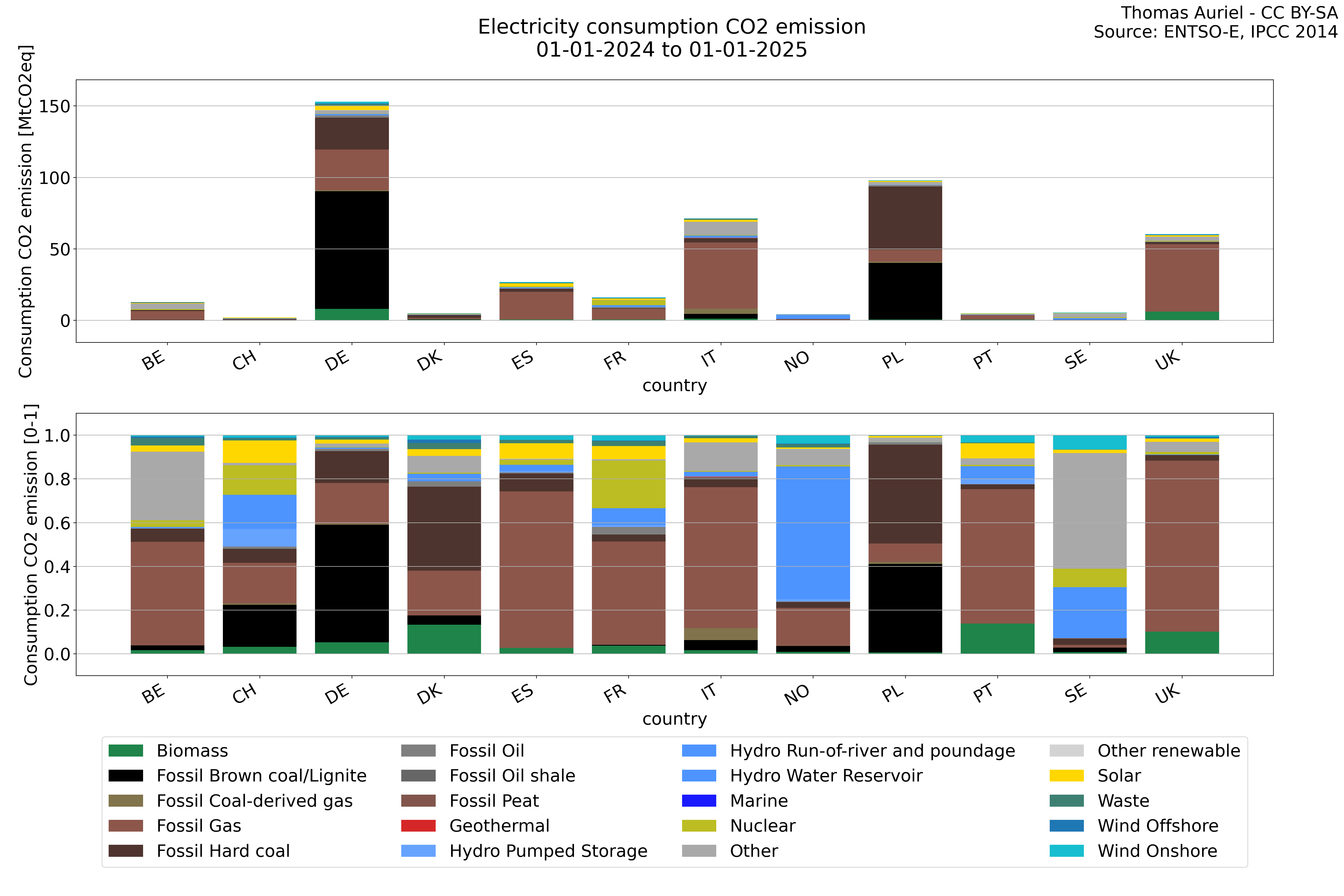 In these hourly line plots, the x-axis spans the entire year, with hours as individual data points. The y-axis represents the values of production, exchange, consumption, and data emissions, but unlike cumulative plots, these plots are designed for quality control purposes. Each line on the plot corresponds to a specific country and is used to identify data irregularities, holes, or artifacts that may occur within the year. By examining these plots, it is possible to spot discrepancies or missing data points in the hourly records, ensuring data integrity.