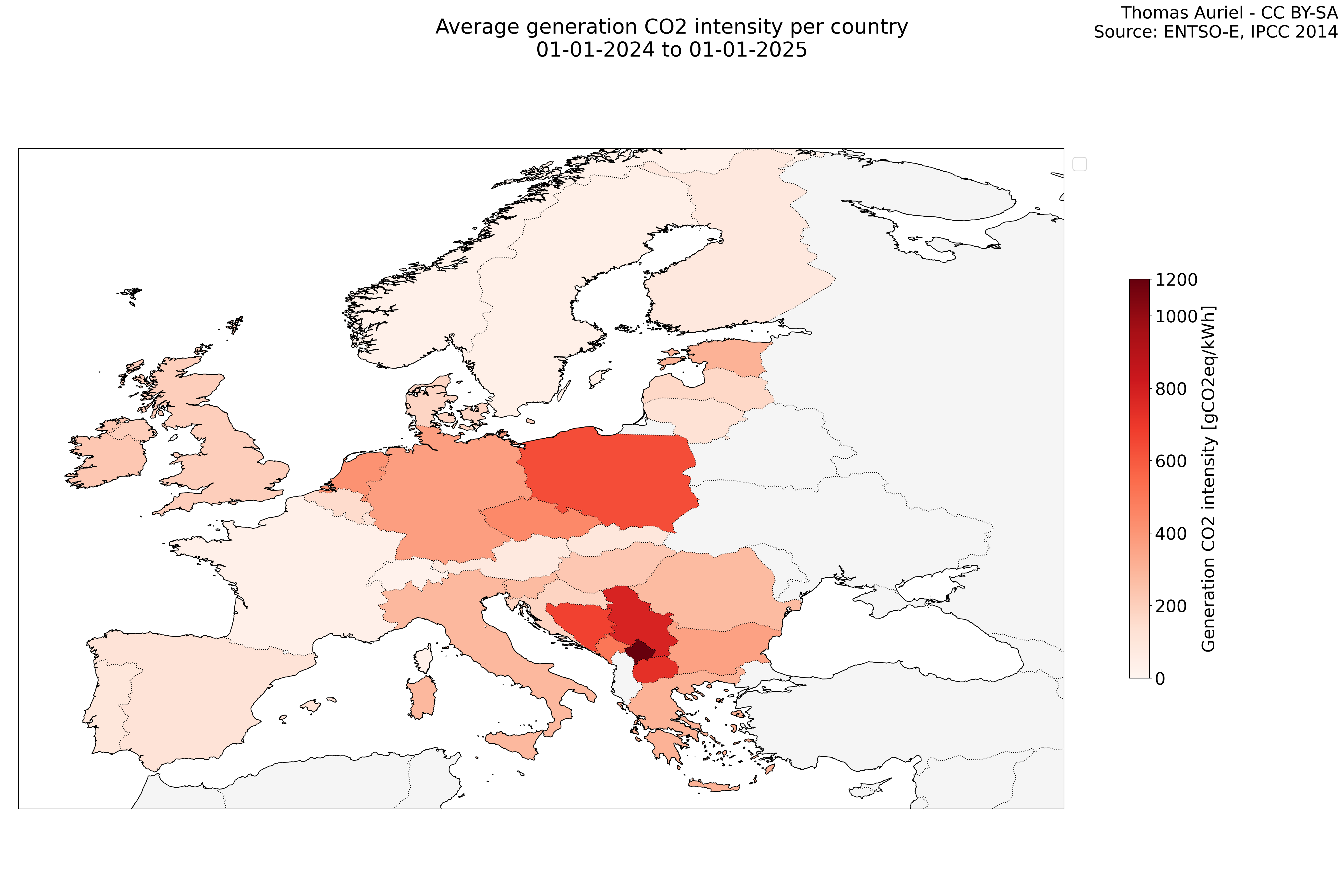 An essential feature of the square plot is the size of each square, which is proportional to the total CO2 emissions of the represented country, calculated by multiplying CO2 intensity with production. Larger squares indicate higher emissions.