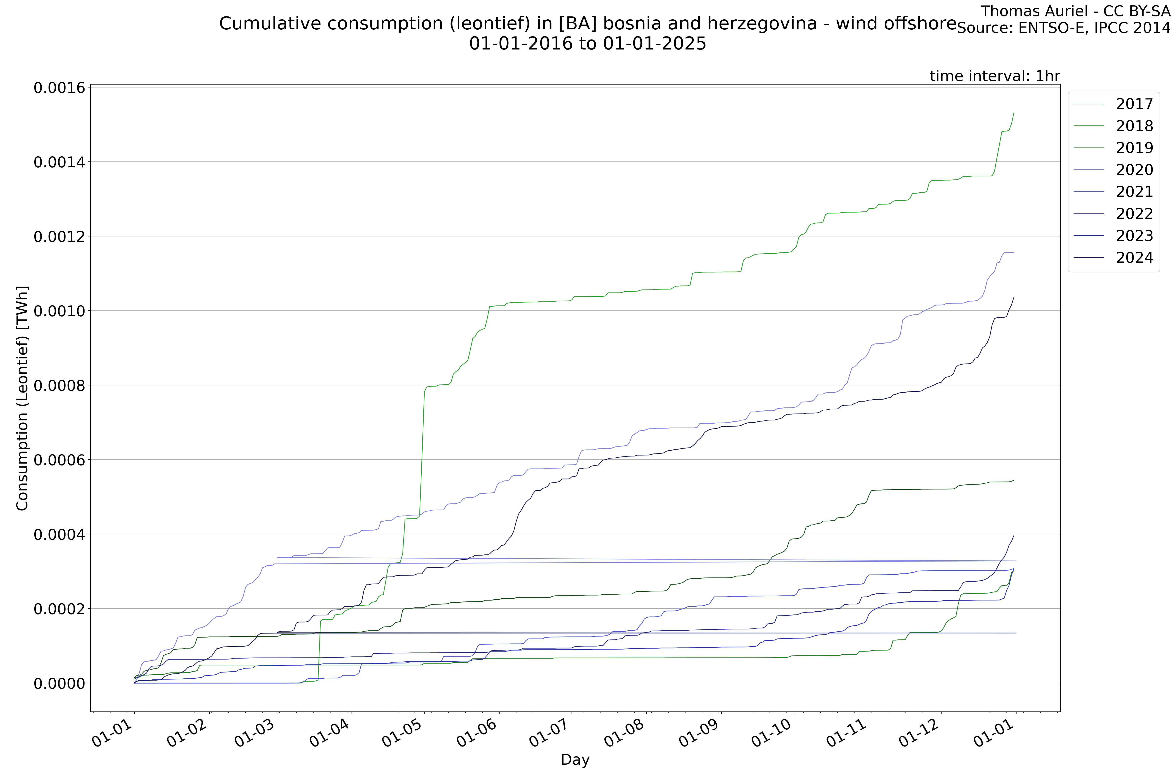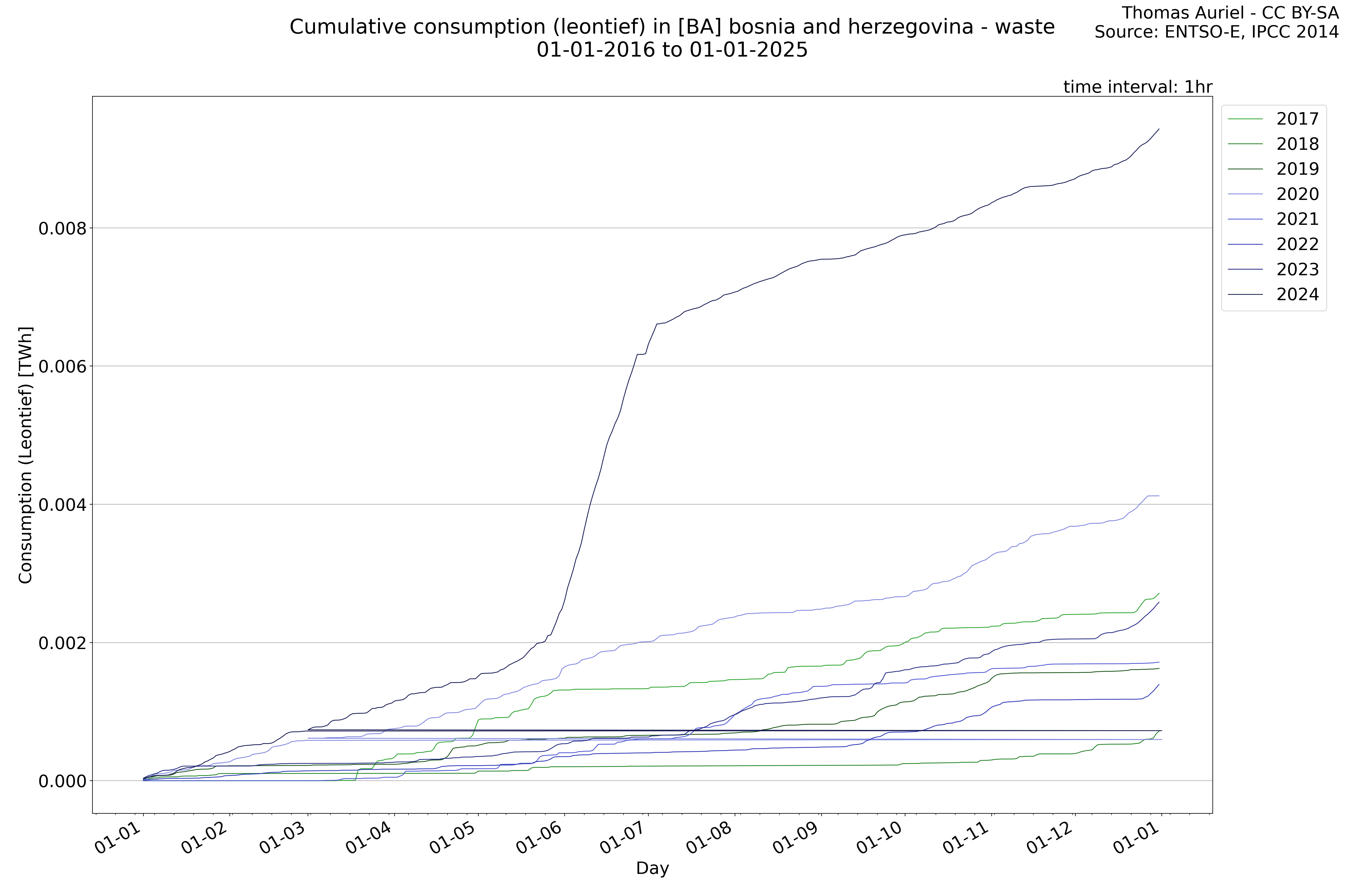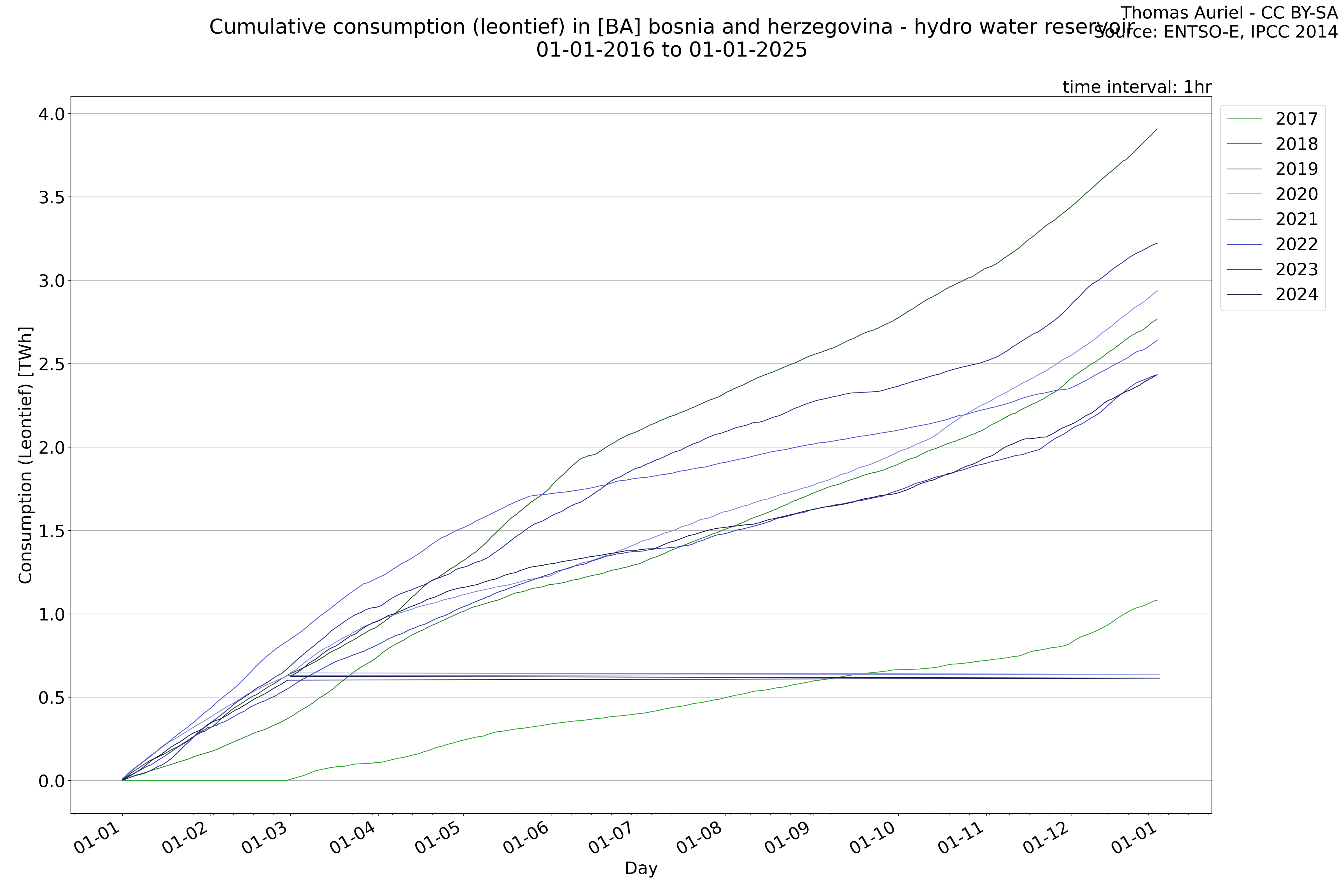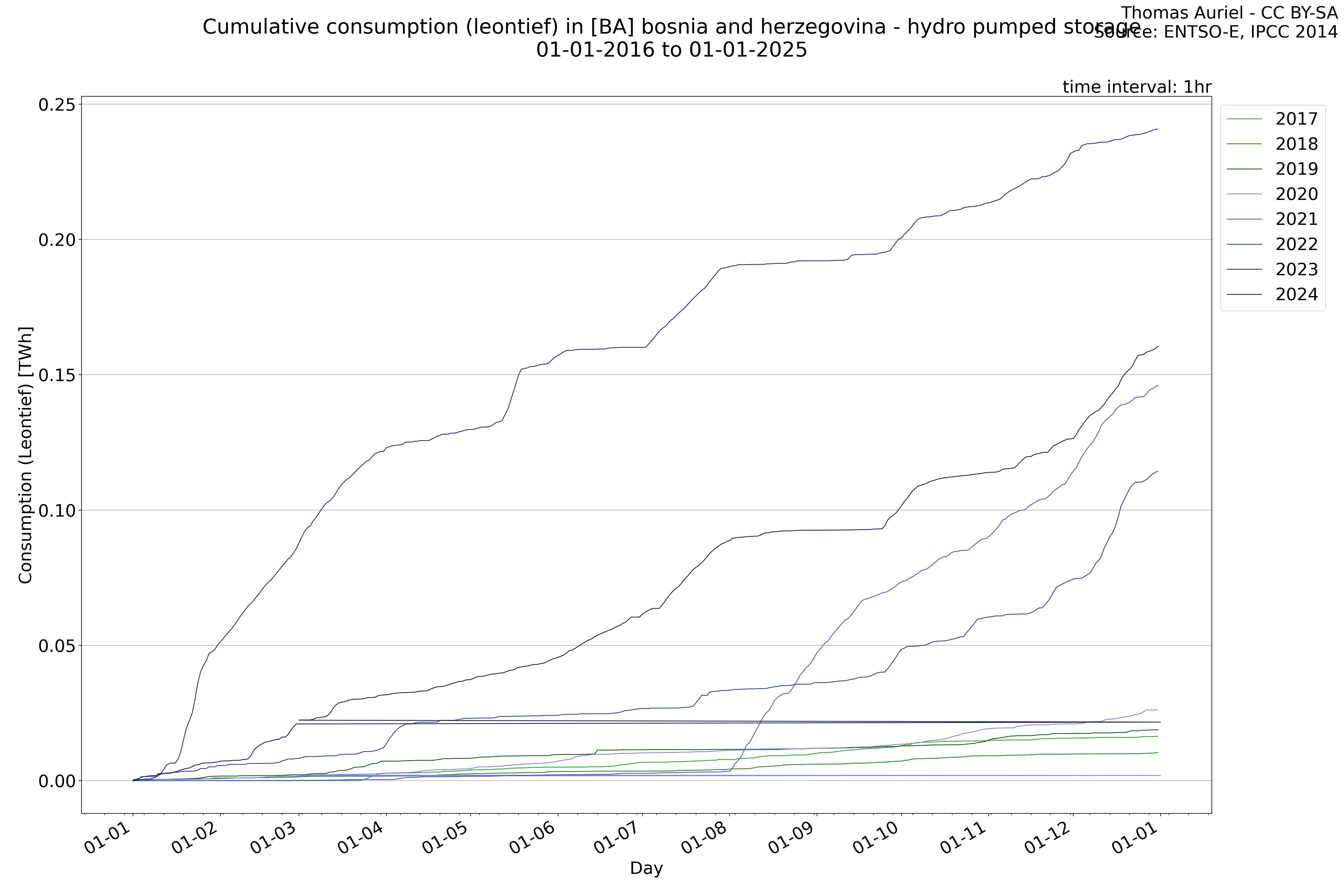 This plot is a cumulative sum plot, where each line represents the cumulative value of a specific metric (e.g., production, load, import, or export) for a given year. The plot begins at zero, and as the year progresses, the cumulative value is updated to reflect the total amount accumulated over time. This visualization illustrates the overall trend of the metric, showing whether the cumulative sum is increasing or decreasing, as well as any changes in the trend within the year. Additionally, the cumulative sum plot helps to reduce the impact of noise and short-term fluctuations commonly present in the raw data of production, load, import, or export. By smoothing out these variations, the plot emphasizes the broader, long-term trends. Consequently, this type of visualization facilitates a clearer understanding of the metric’s evolution across the year, revealing whether the activity follows a steady trajectory, shows signs of volatility, or experiences periods of significant change.