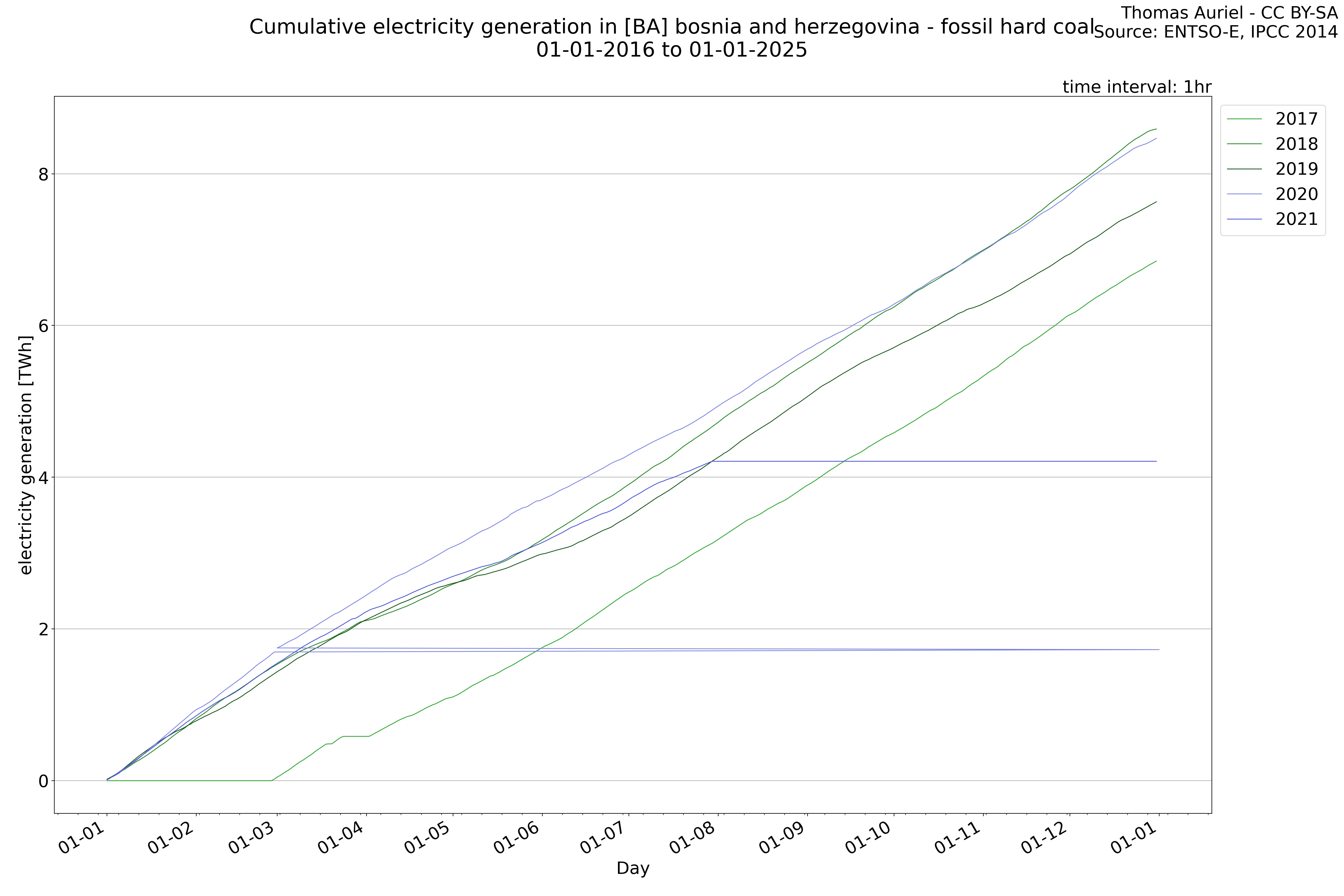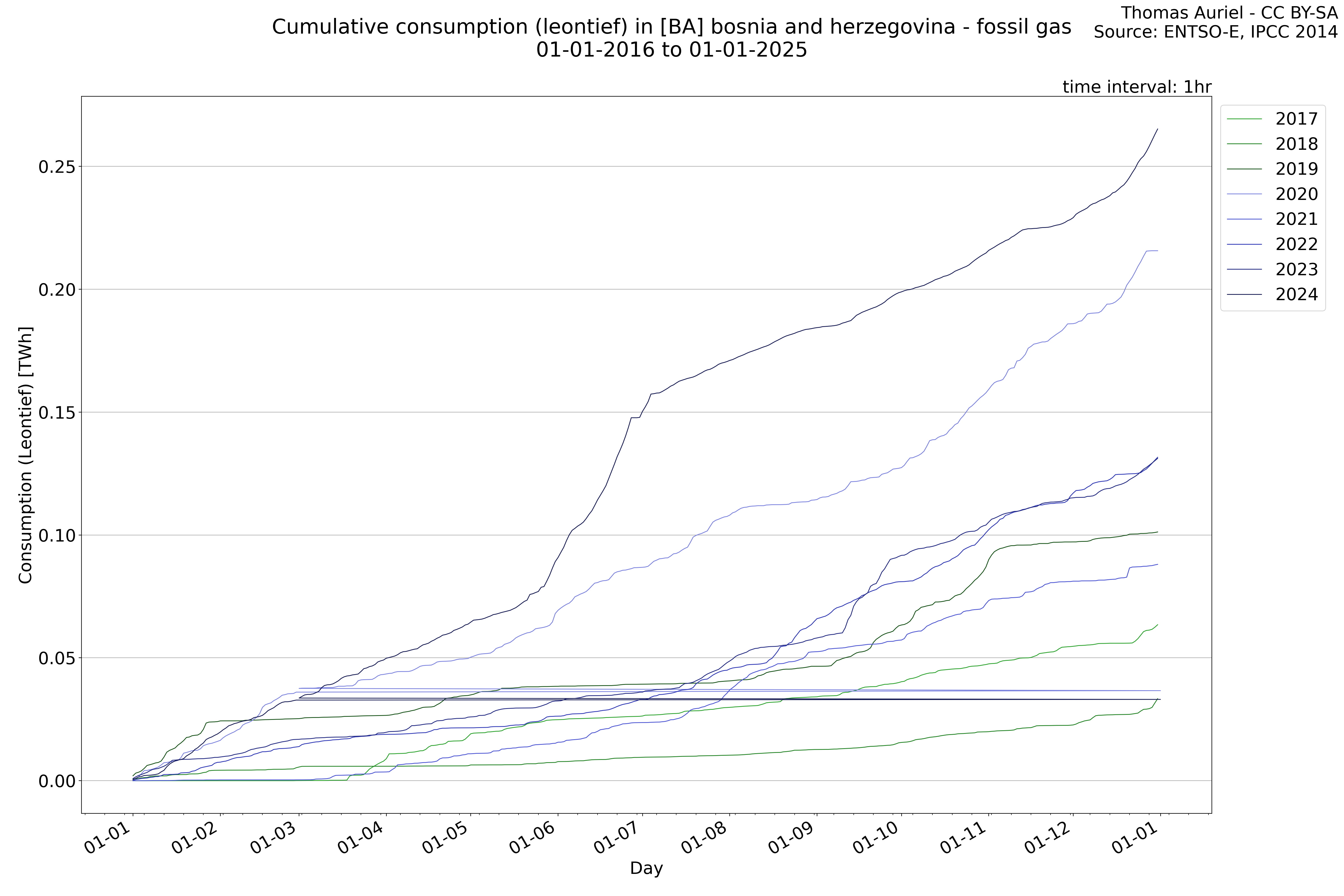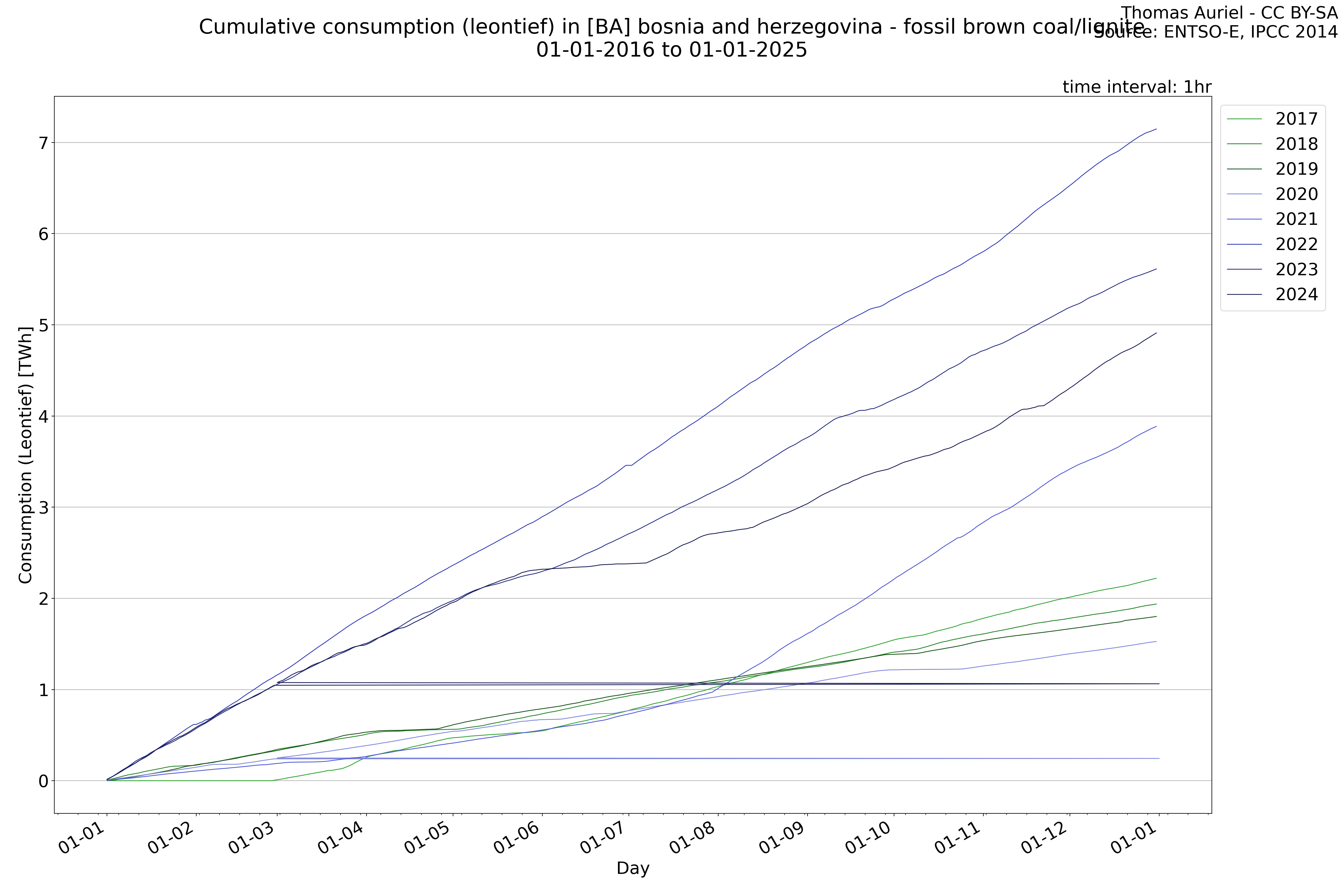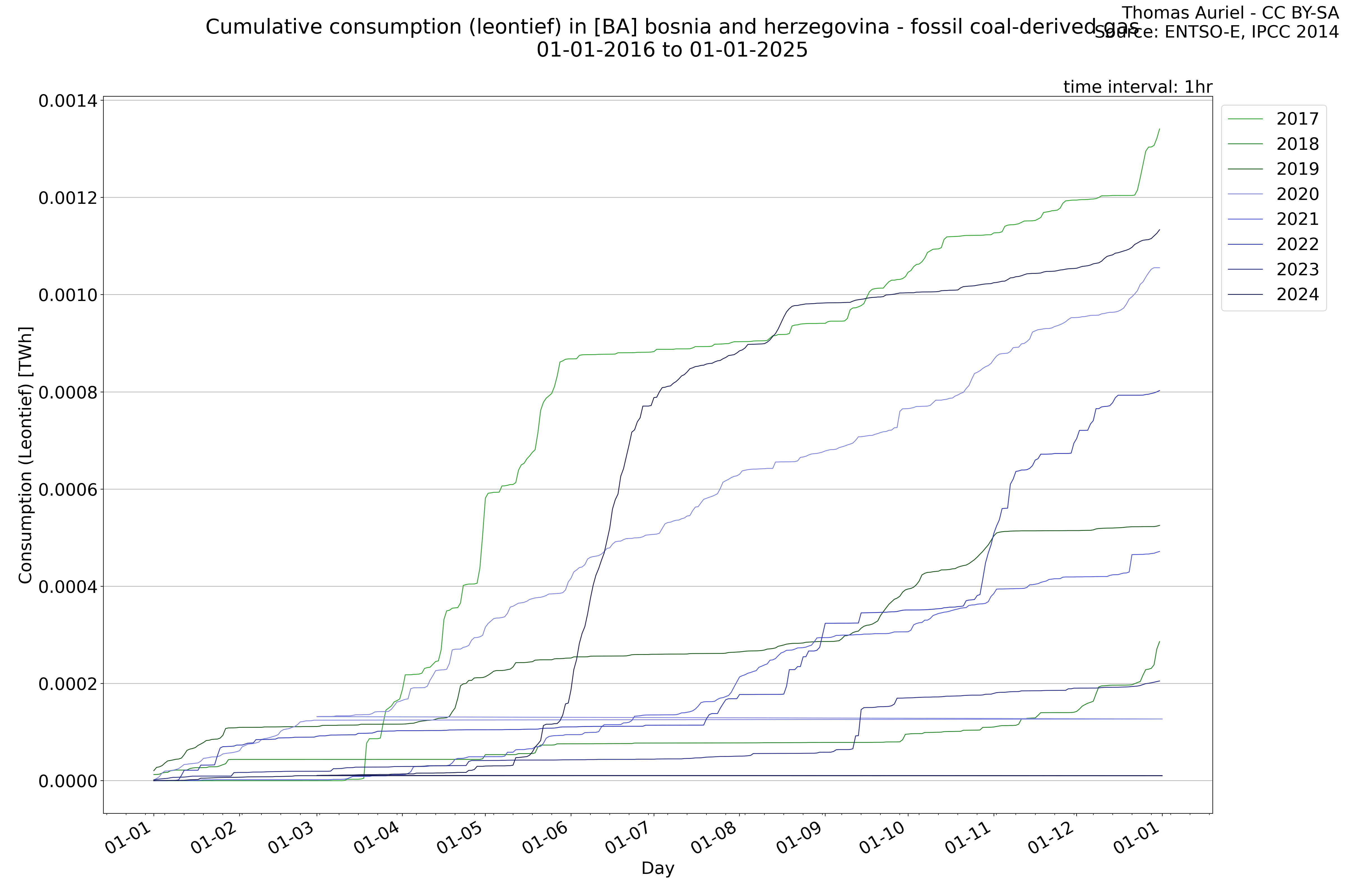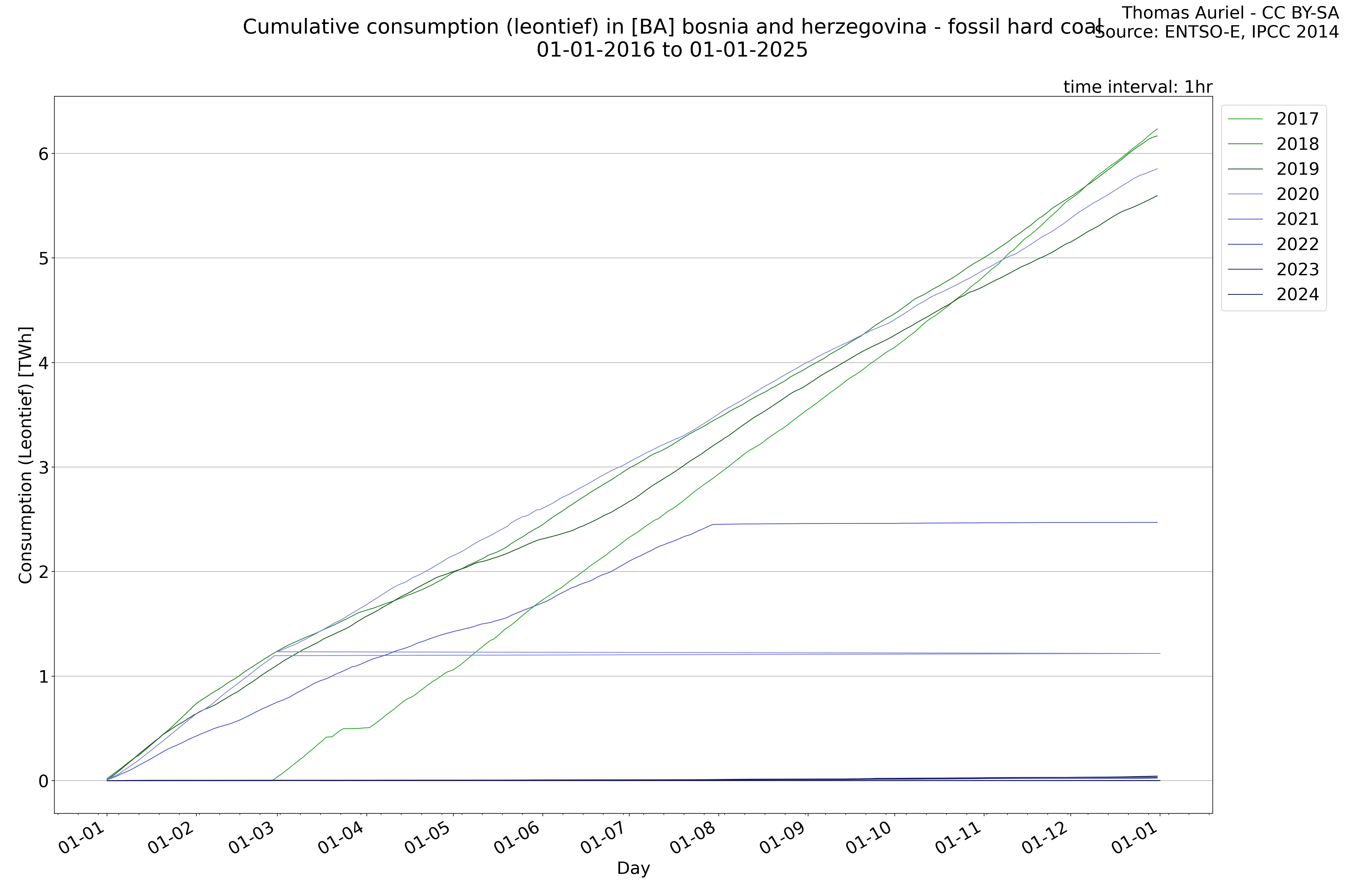 This plot is a cumulative sum plot, where each line represents the cumulative value of a specific metric (e.g., production, load, import, or export) for a given year. The plot begins at zero, and as the year progresses, the cumulative value is updated to reflect the total amount accumulated over time. This visualization illustrates the overall trend of the metric, showing whether the cumulative sum is increasing or decreasing, as well as any changes in the trend within the year. Additionally, the cumulative sum plot helps to reduce the impact of noise and short-term fluctuations commonly present in the raw data of production, load, import, or export. By smoothing out these variations, the plot emphasizes the broader, long-term trends. Consequently, this type of visualization facilitates a clearer understanding of the metric’s evolution across the year, revealing whether the activity follows a steady trajectory, shows signs of volatility, or experiences periods of significant change.