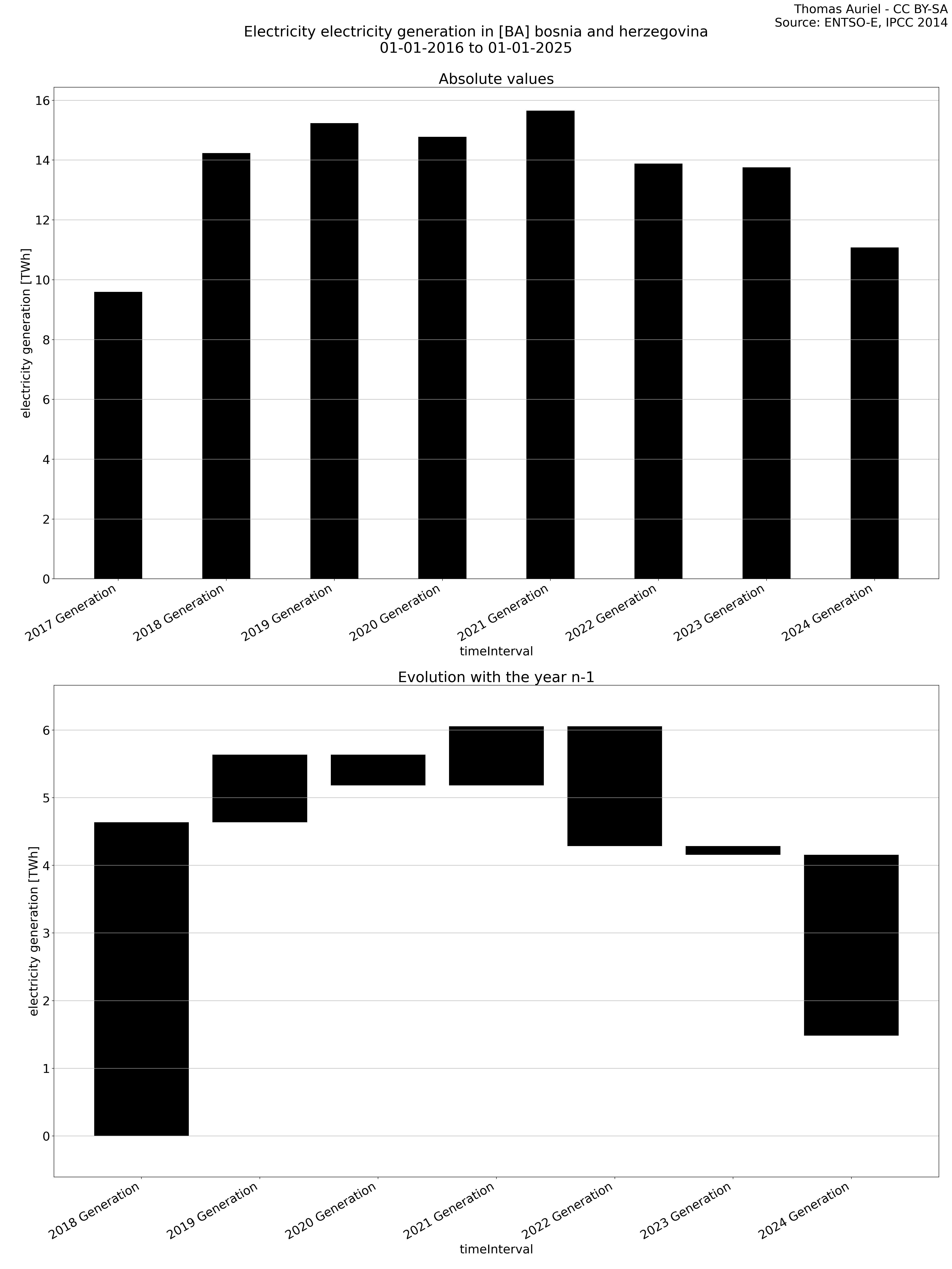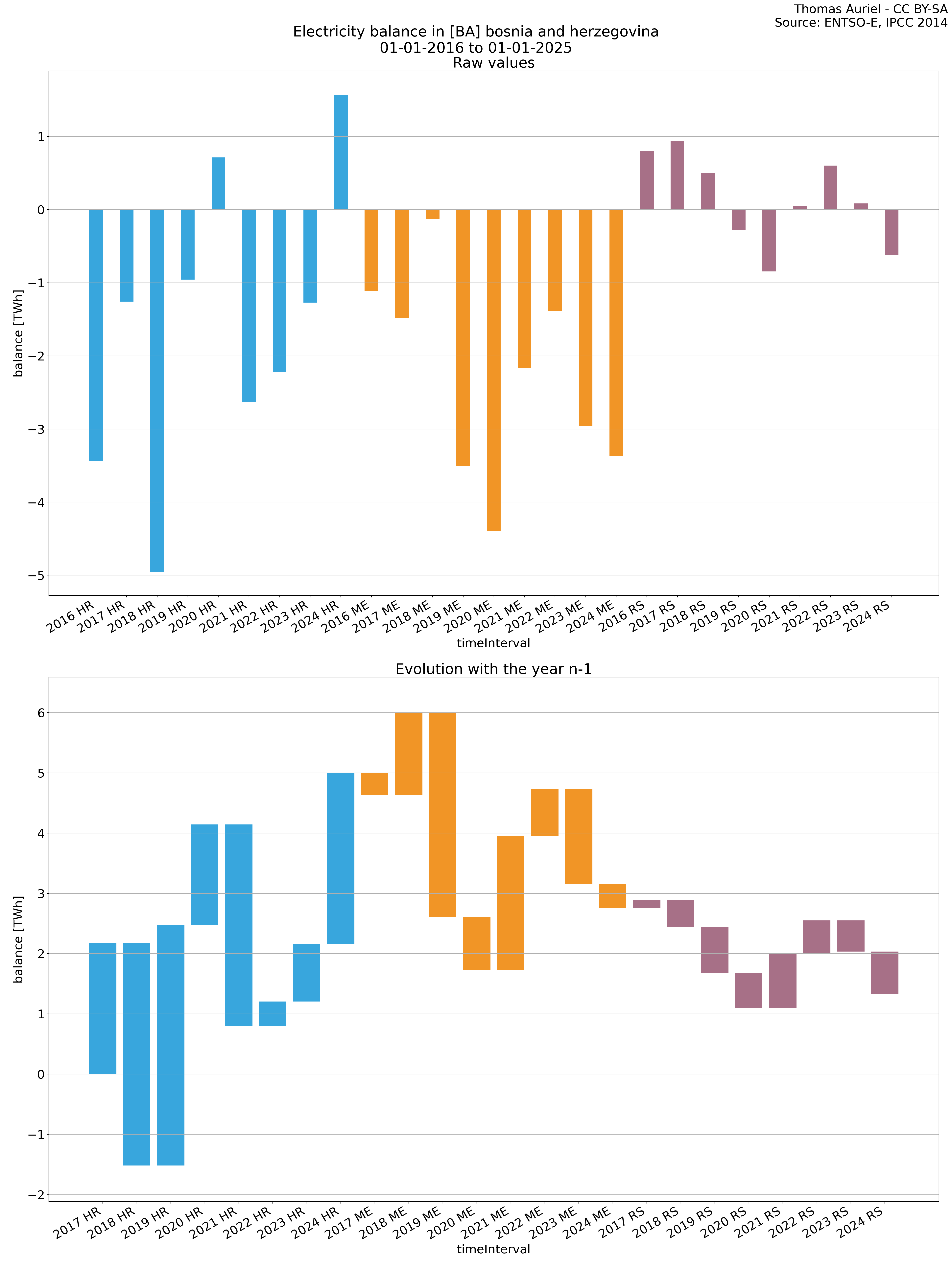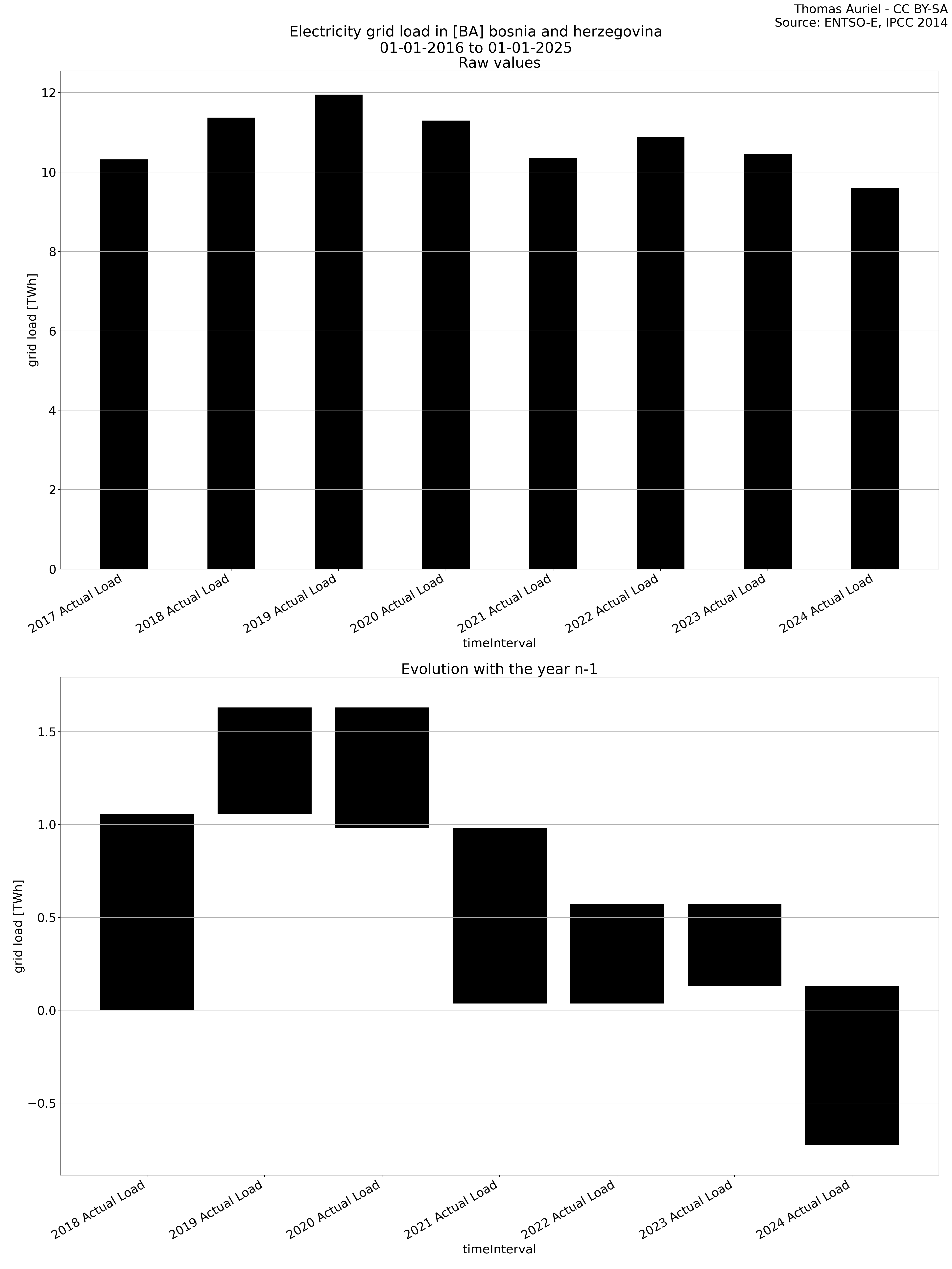 The second section features a waterfall graph, which visually represents the year-over-year changes in electricity metrics. In this graph, the length of each bar corresponds to the difference in the metric (e.g., production, load, etc.) compared to the previous year. Unlike the bar plot, the bars in the waterfall graph do not start at zero; instead, each bar begins where the previous one ended. Hence, this structure emphasizes the incremental changes in the metric over time, facilitating the visualization of fluctuations from one year to the next.