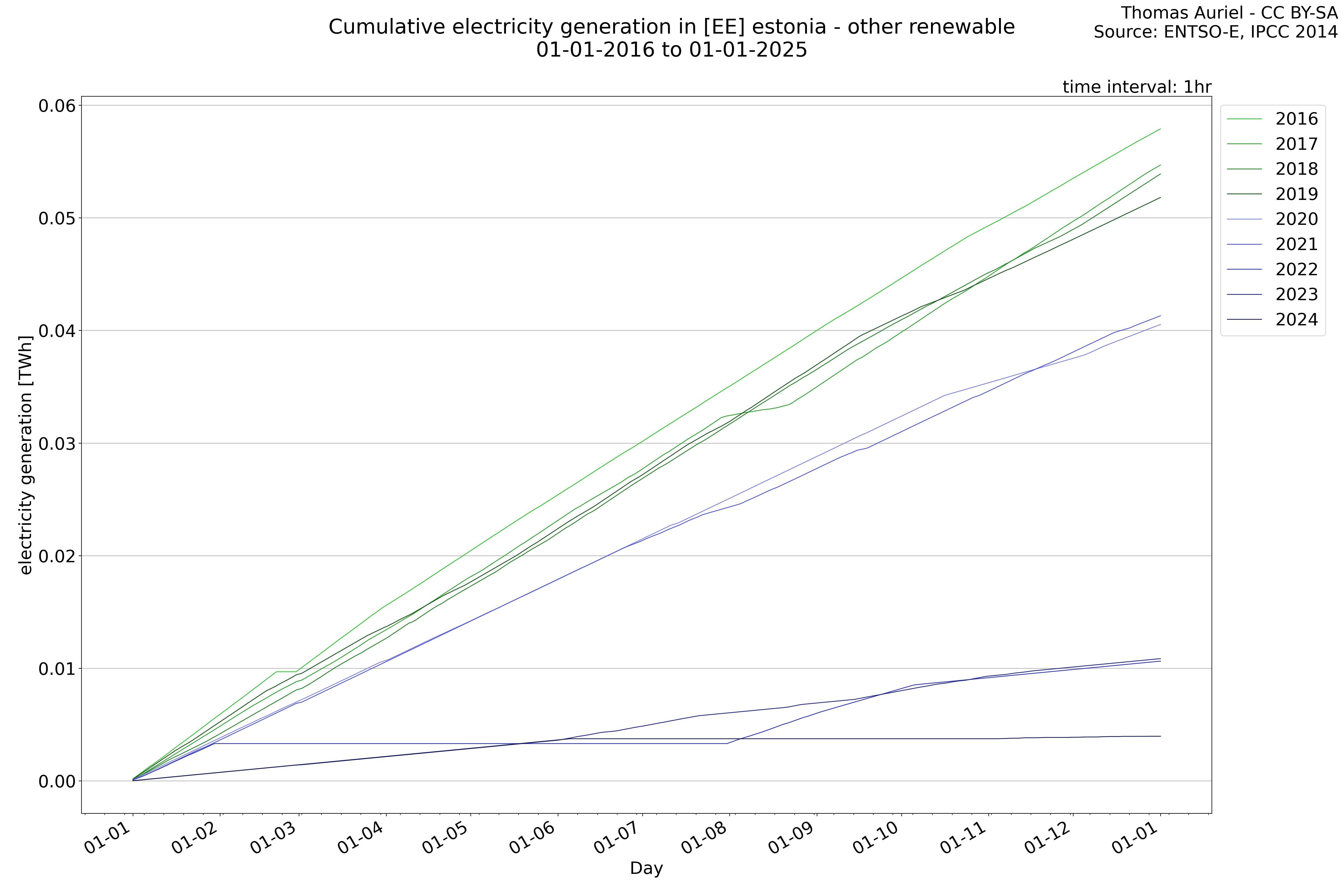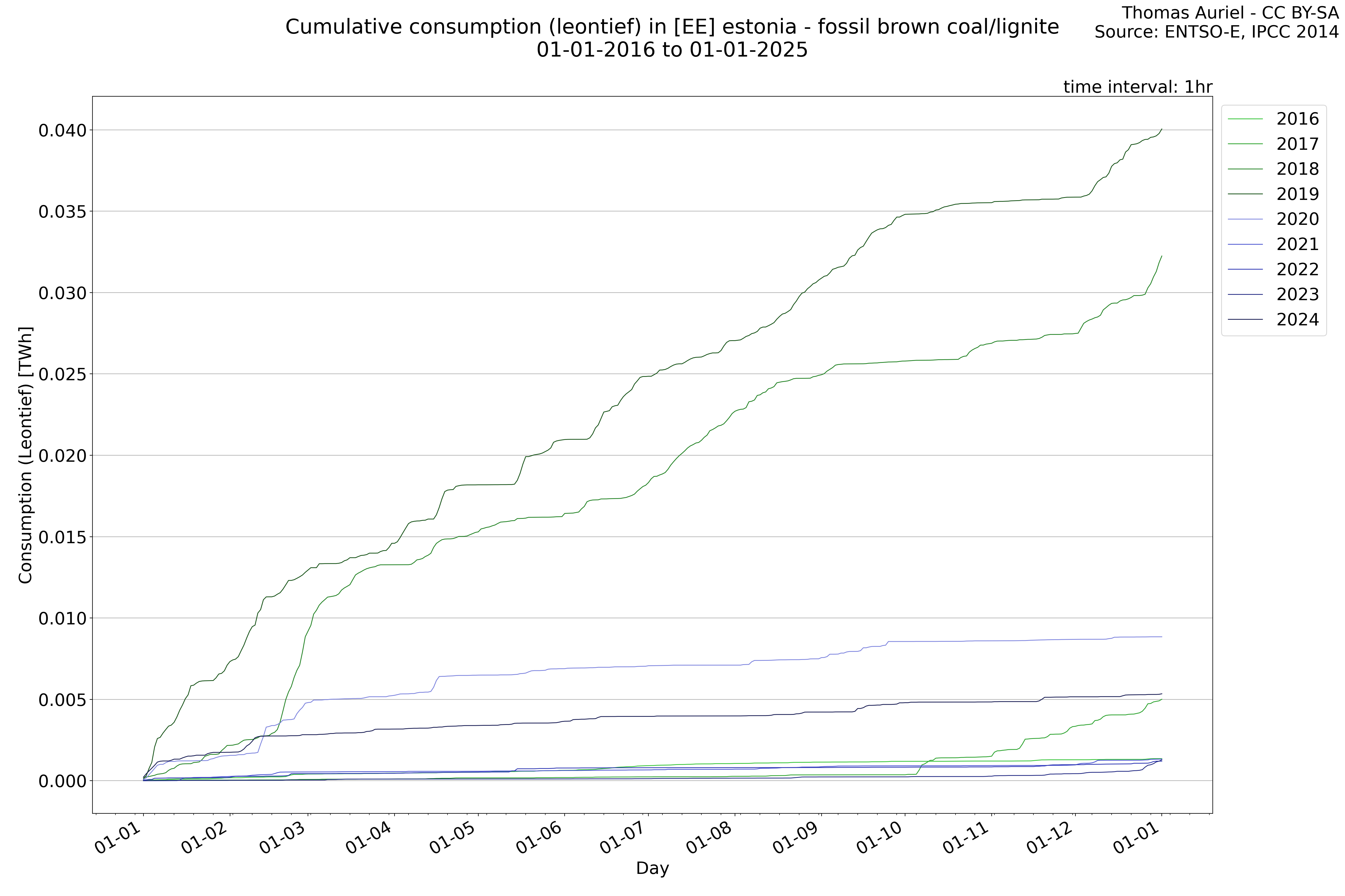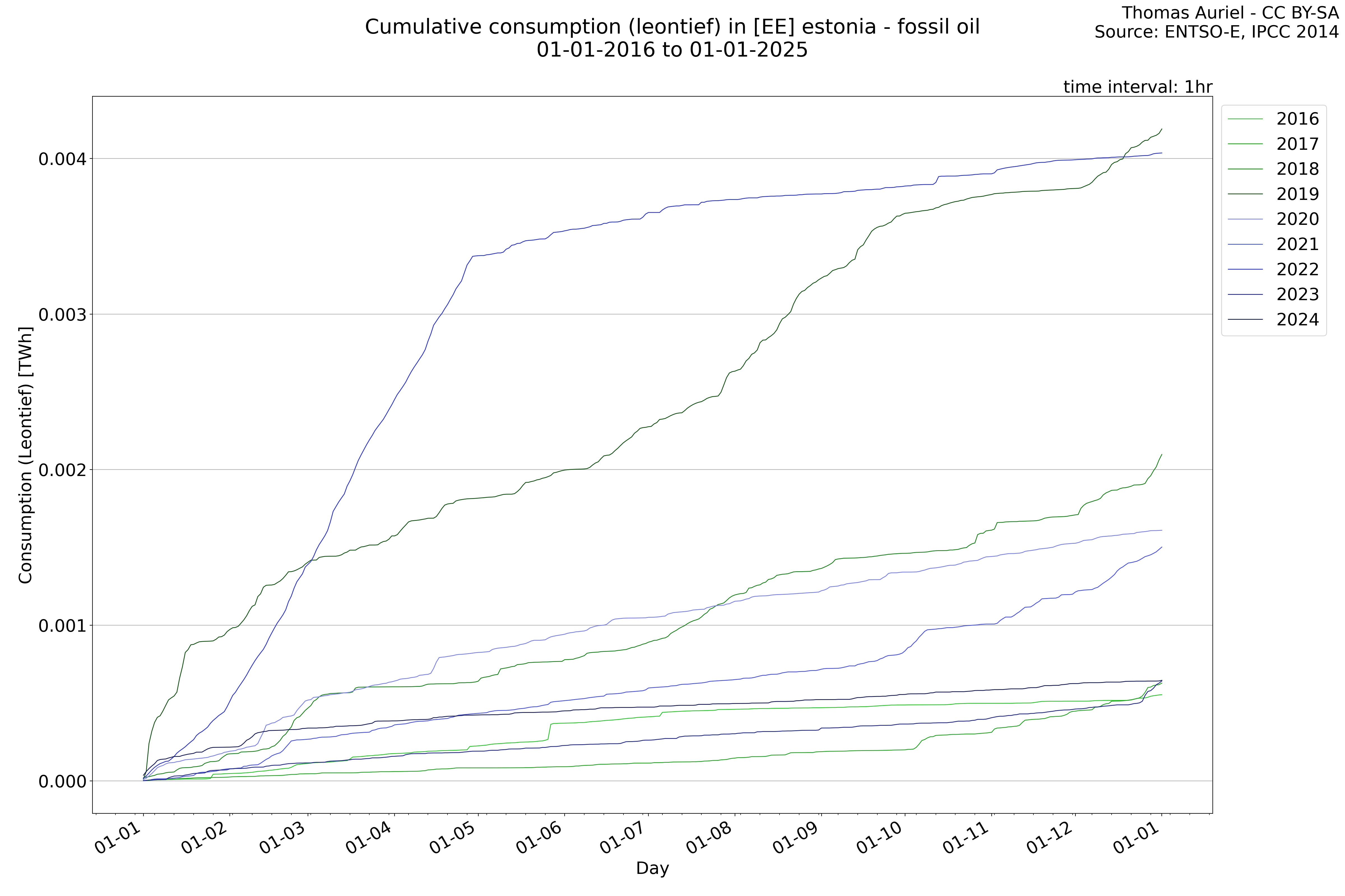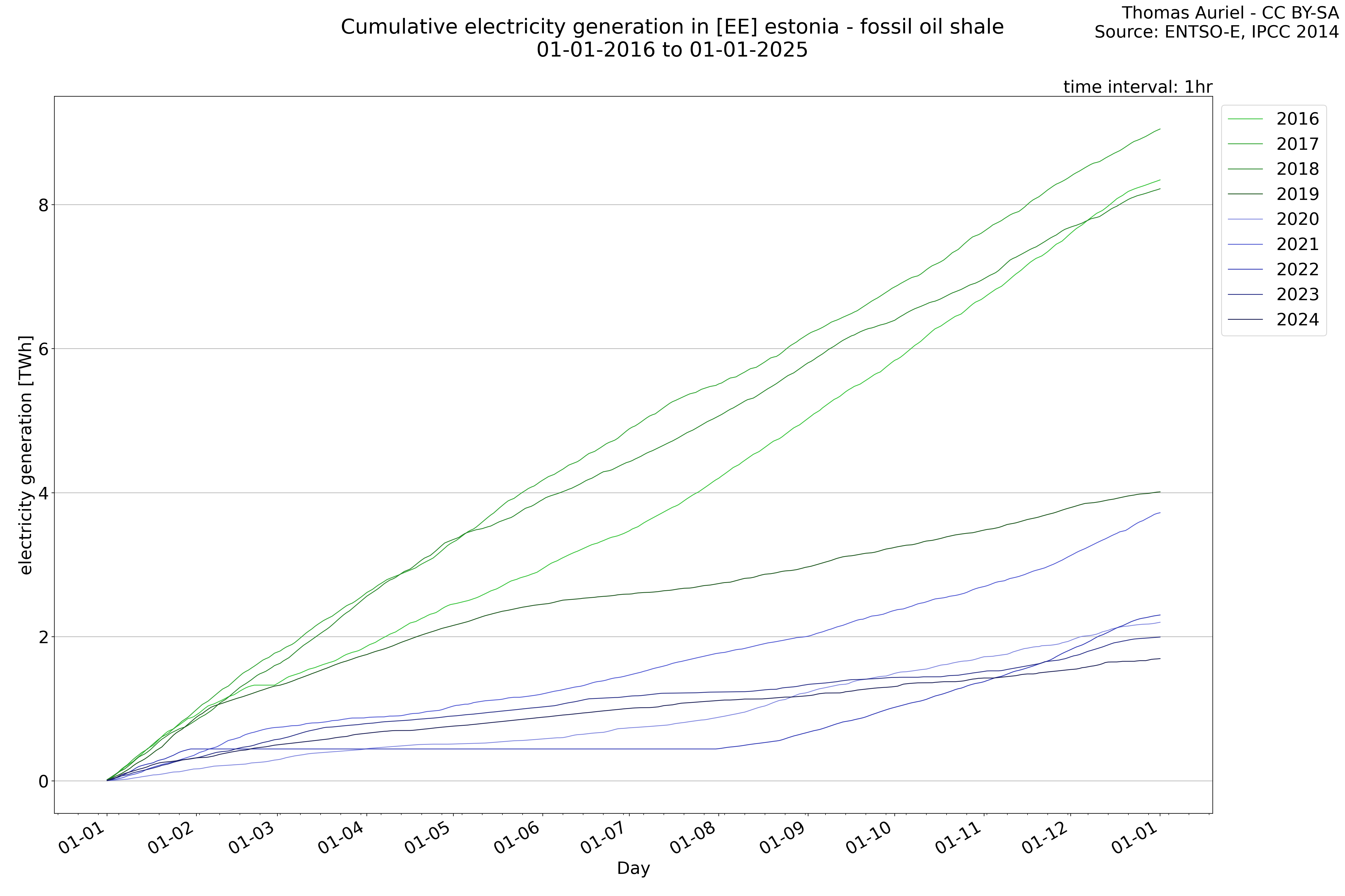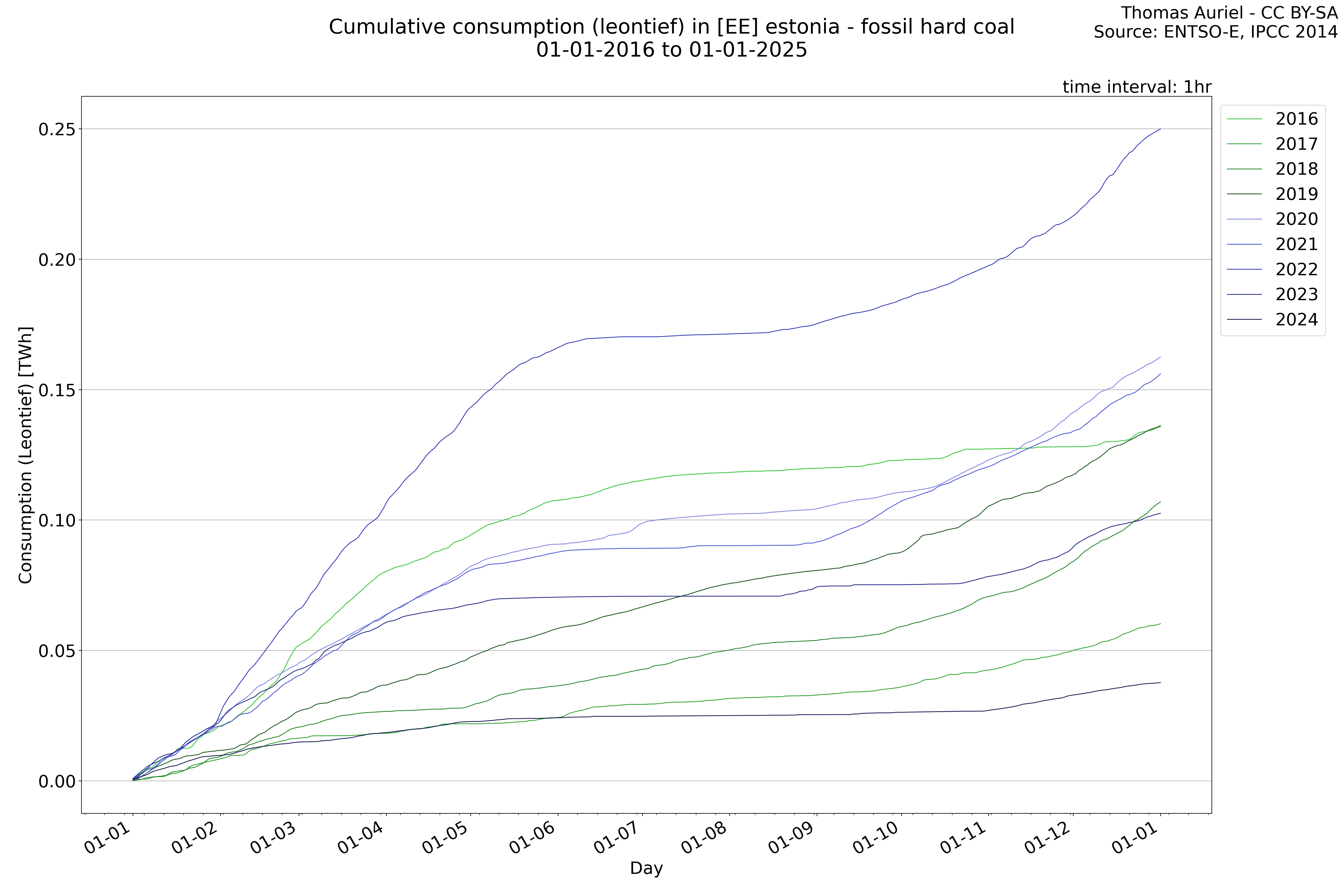 This plot is a cumulative sum plot, where each line represents the cumulative value of a specific metric (e.g., production, load, import, or export) for a given year. The plot begins at zero, and as the year progresses, the cumulative value is updated to reflect the total amount accumulated over time. This visualization illustrates the overall trend of the metric, showing whether the cumulative sum is increasing or decreasing, as well as any changes in the trend within the year. Additionally, the cumulative sum plot helps to reduce the impact of noise and short-term fluctuations commonly present in the raw data of production, load, import, or export. By smoothing out these variations, the plot emphasizes the broader, long-term trends. Consequently, this type of visualization facilitates a clearer understanding of the metric’s evolution across the year, revealing whether the activity follows a steady trajectory, shows signs of volatility, or experiences periods of significant change.