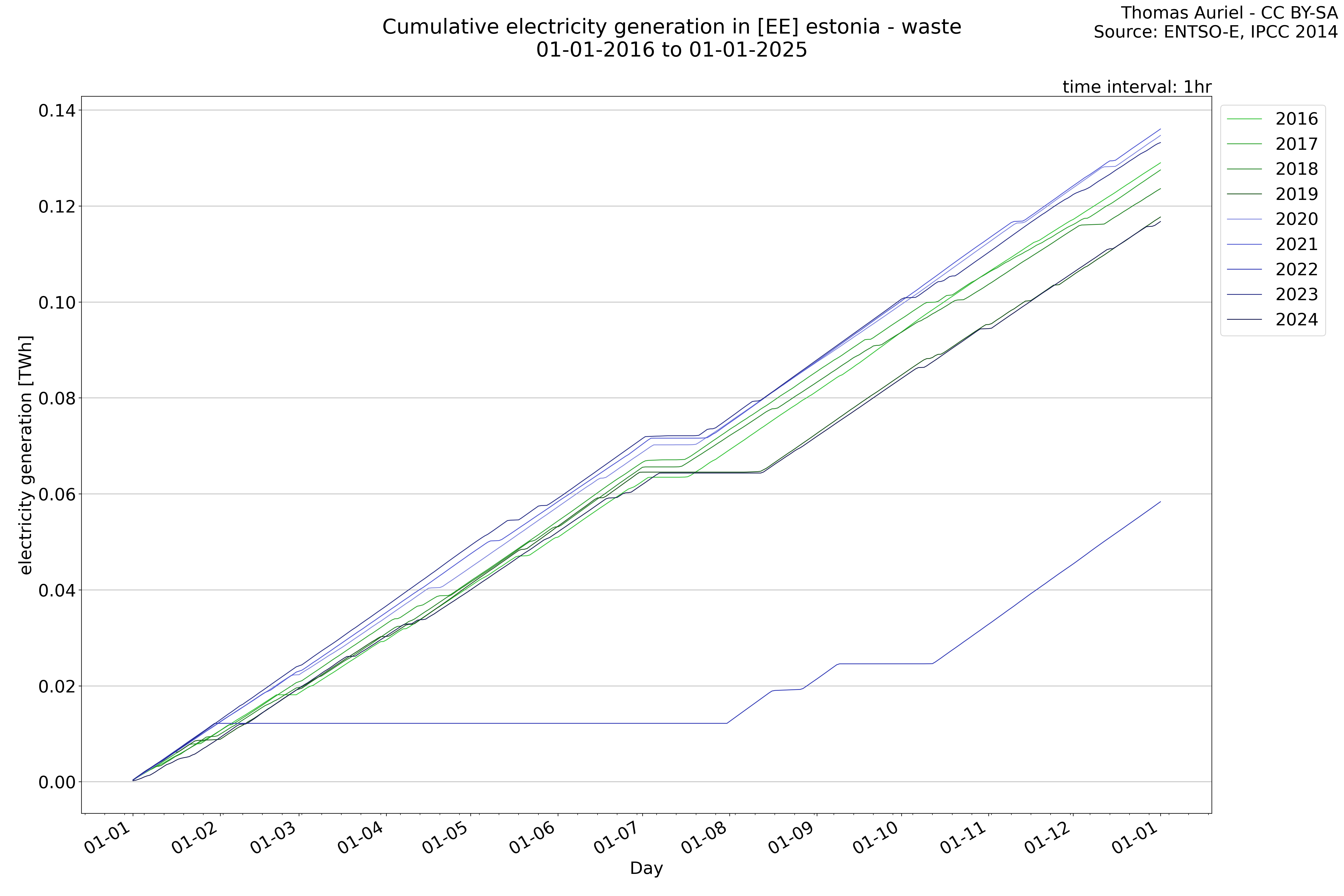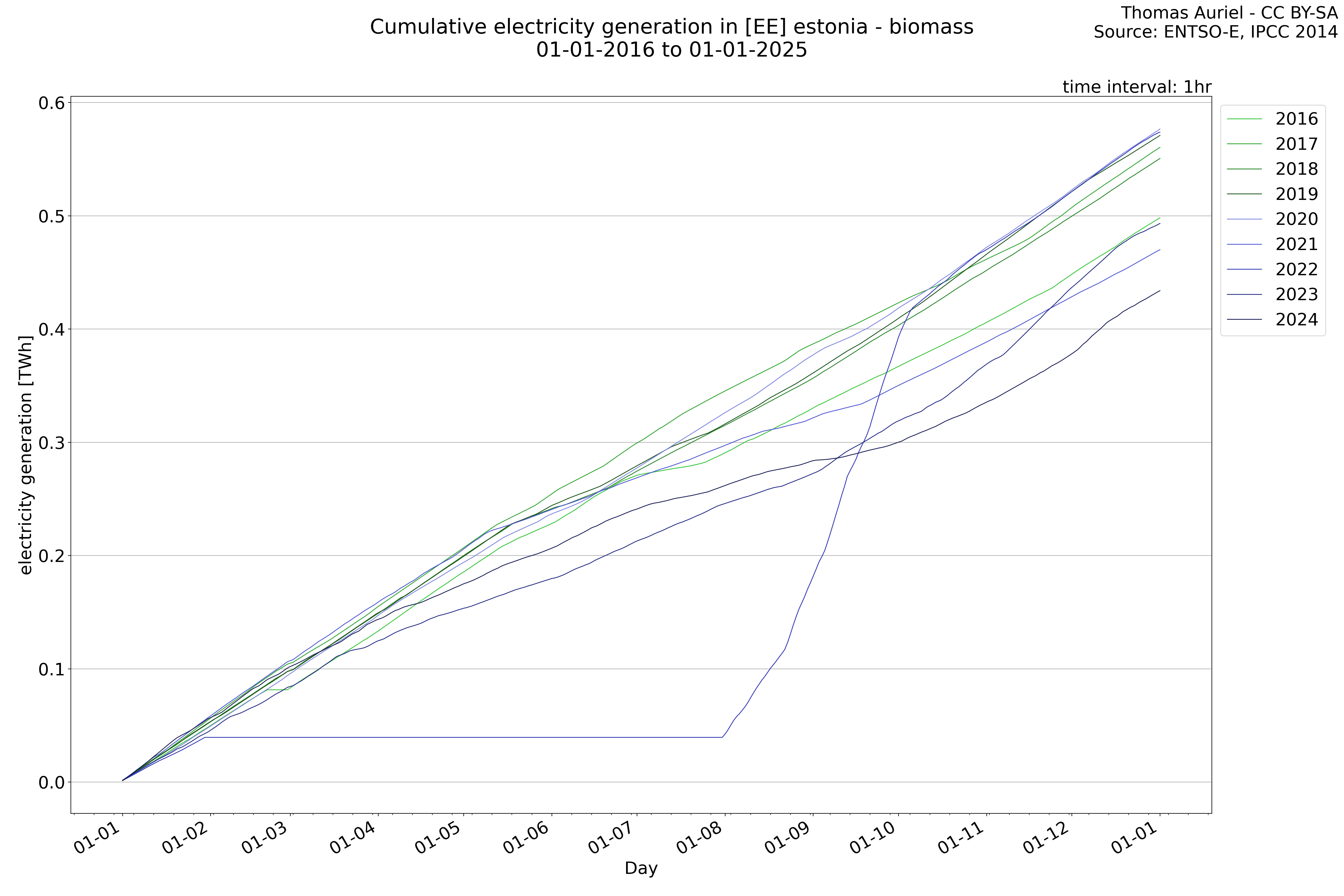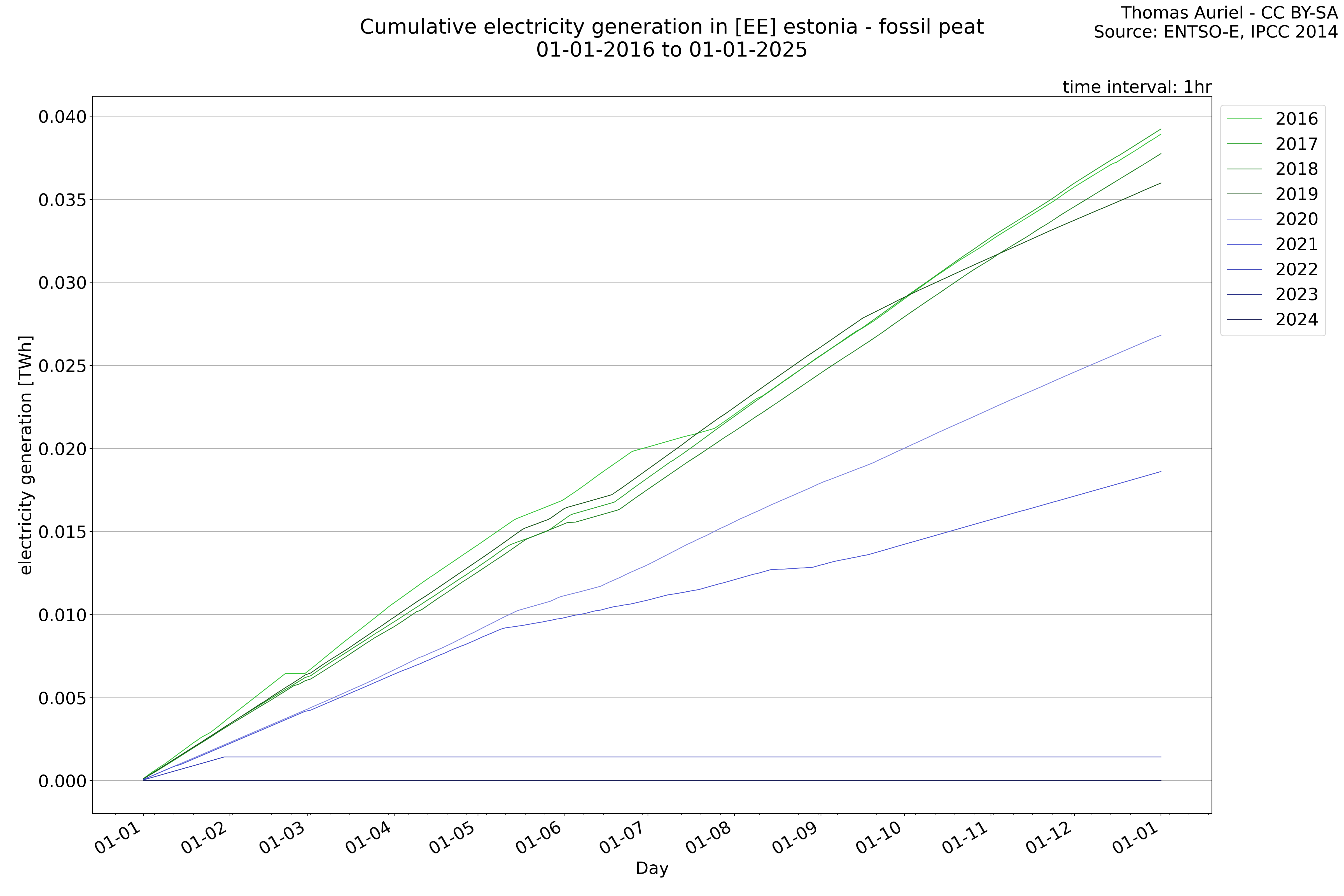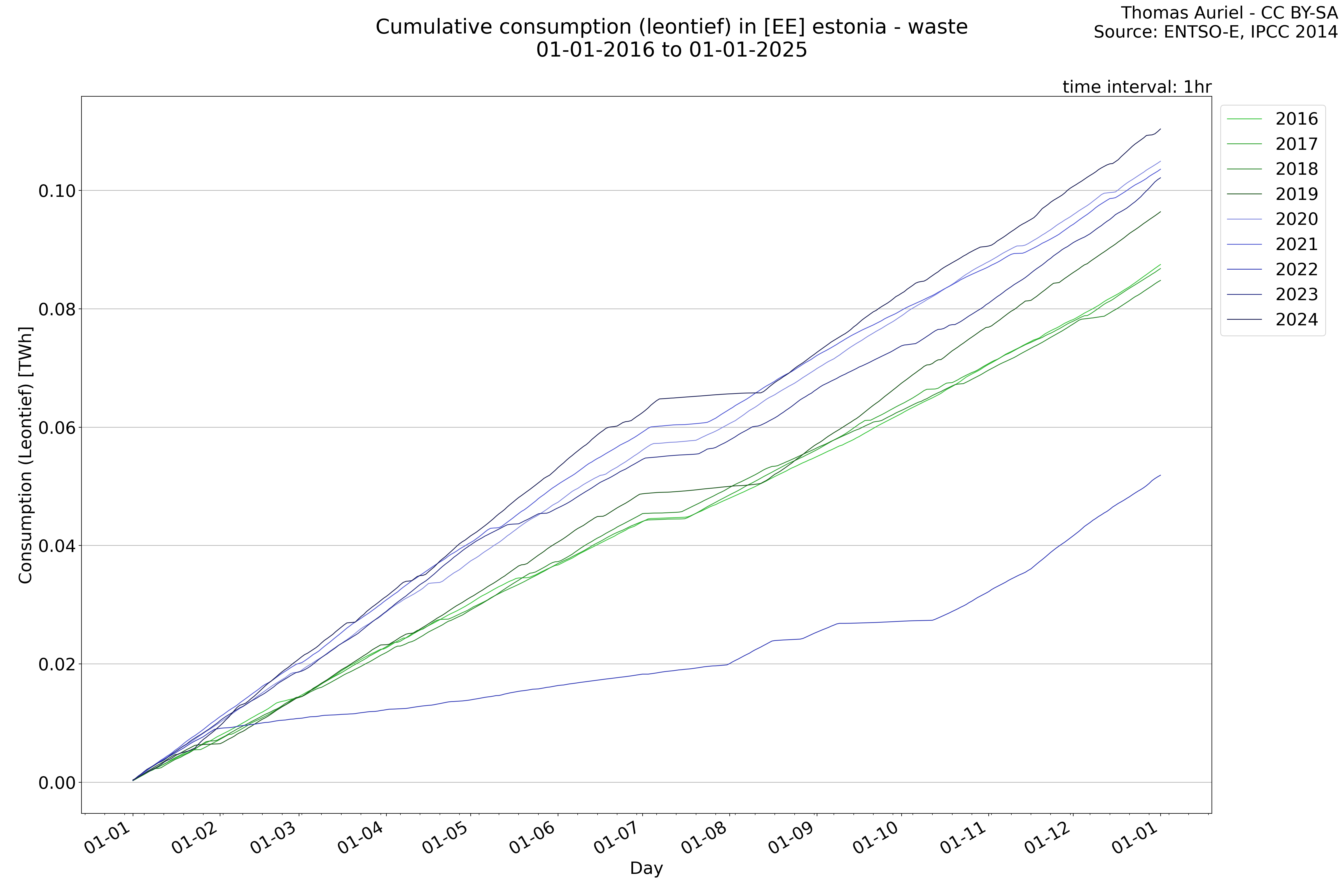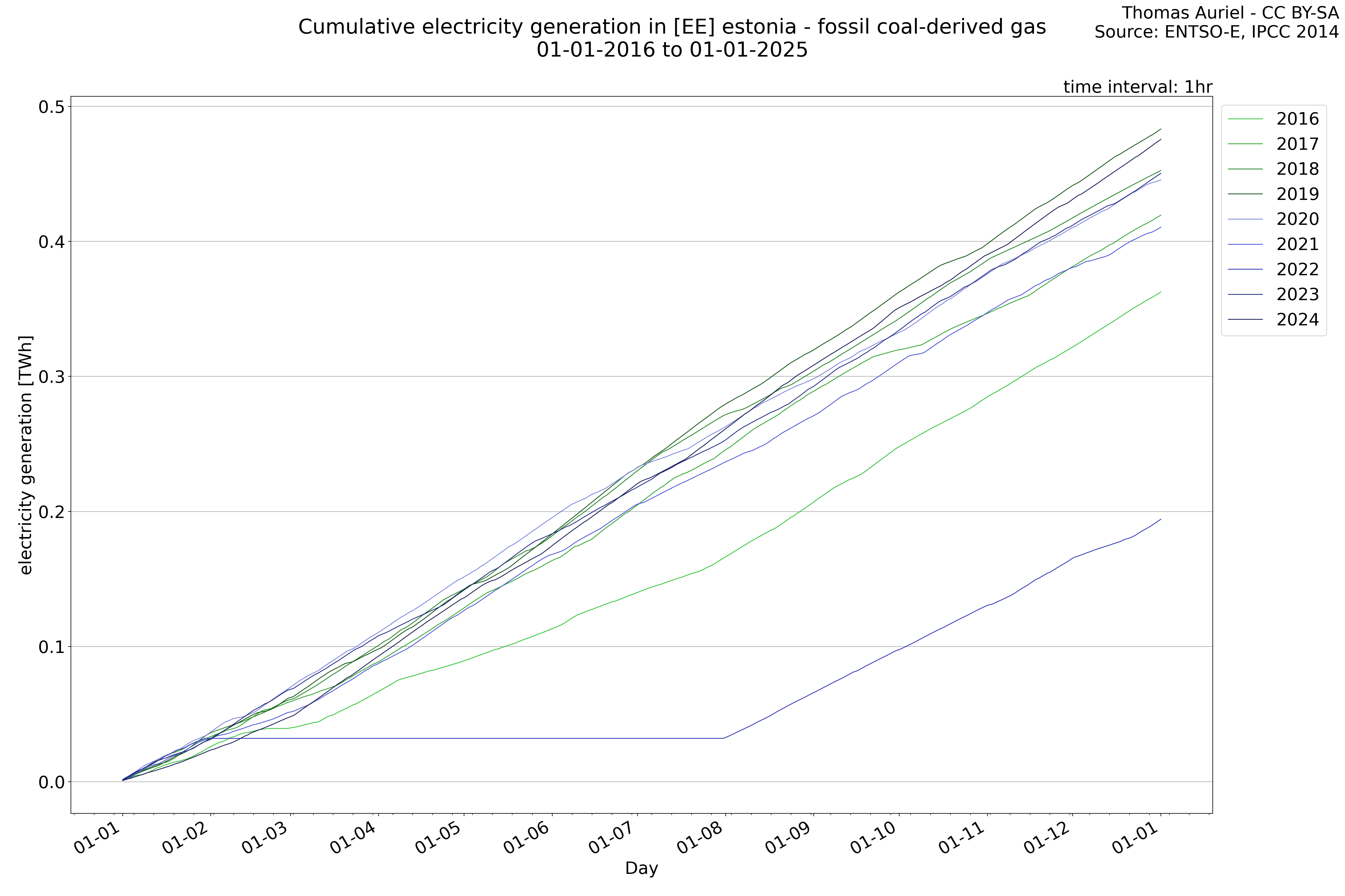 This plot is a cumulative sum plot, where each line represents the cumulative value of a specific metric (e.g., production, load, import, or export) for a given year. The plot begins at zero, and as the year progresses, the cumulative value is updated to reflect the total amount accumulated over time. This visualization illustrates the overall trend of the metric, showing whether the cumulative sum is increasing or decreasing, as well as any changes in the trend within the year. Additionally, the cumulative sum plot helps to reduce the impact of noise and short-term fluctuations commonly present in the raw data of production, load, import, or export. By smoothing out these variations, the plot emphasizes the broader, long-term trends. Consequently, this type of visualization facilitates a clearer understanding of the metric’s evolution across the year, revealing whether the activity follows a steady trajectory, shows signs of volatility, or experiences periods of significant change.