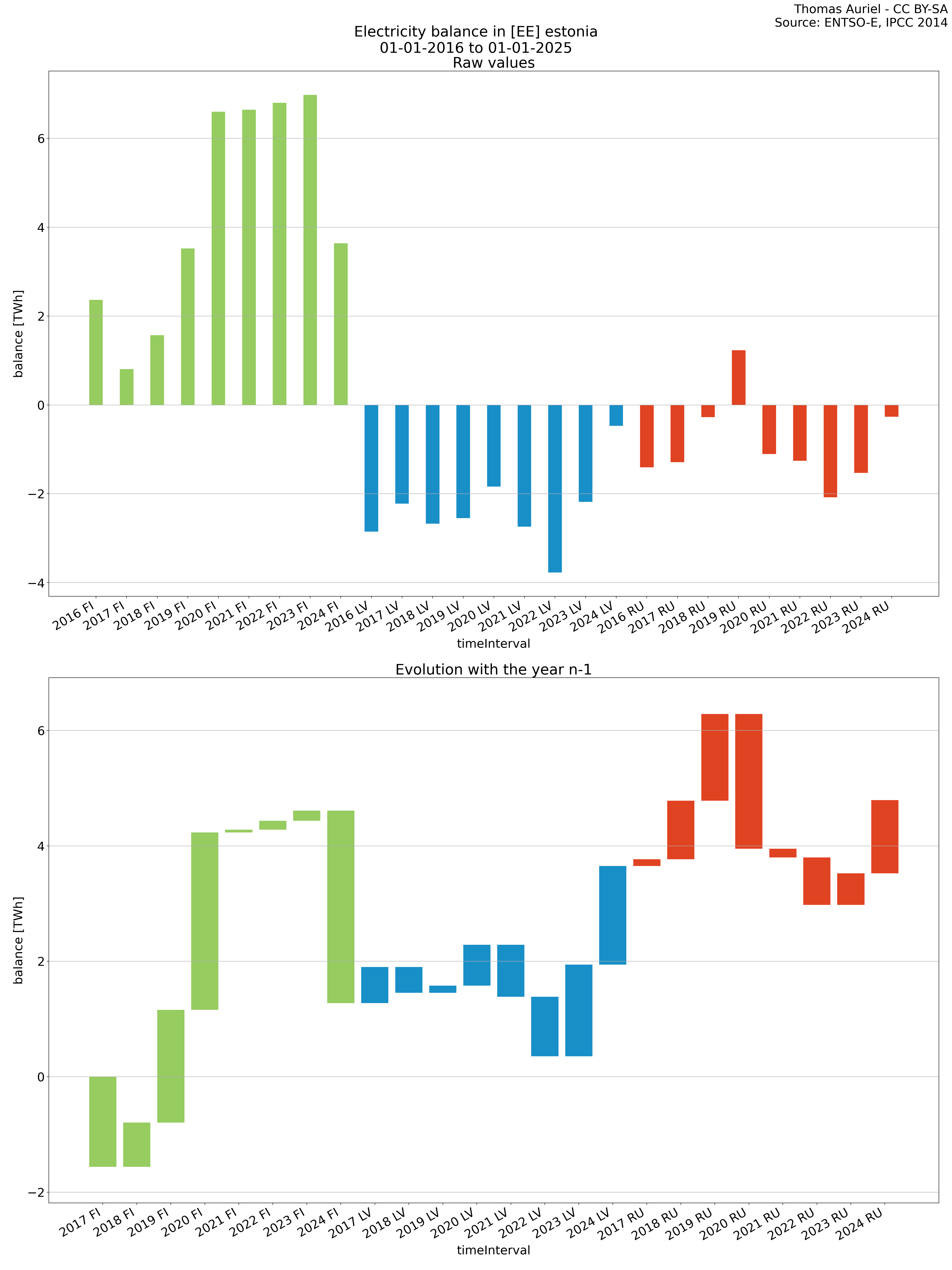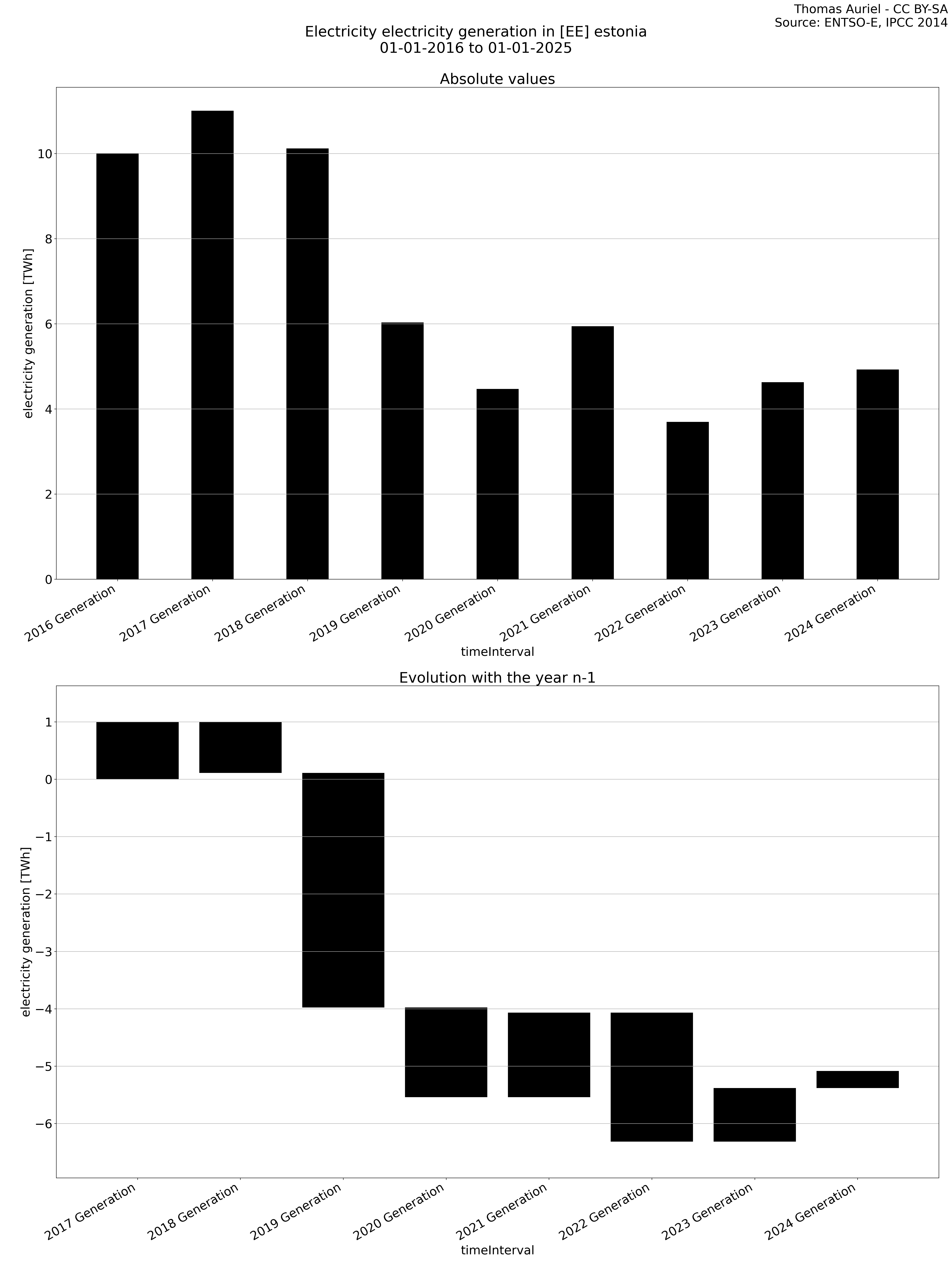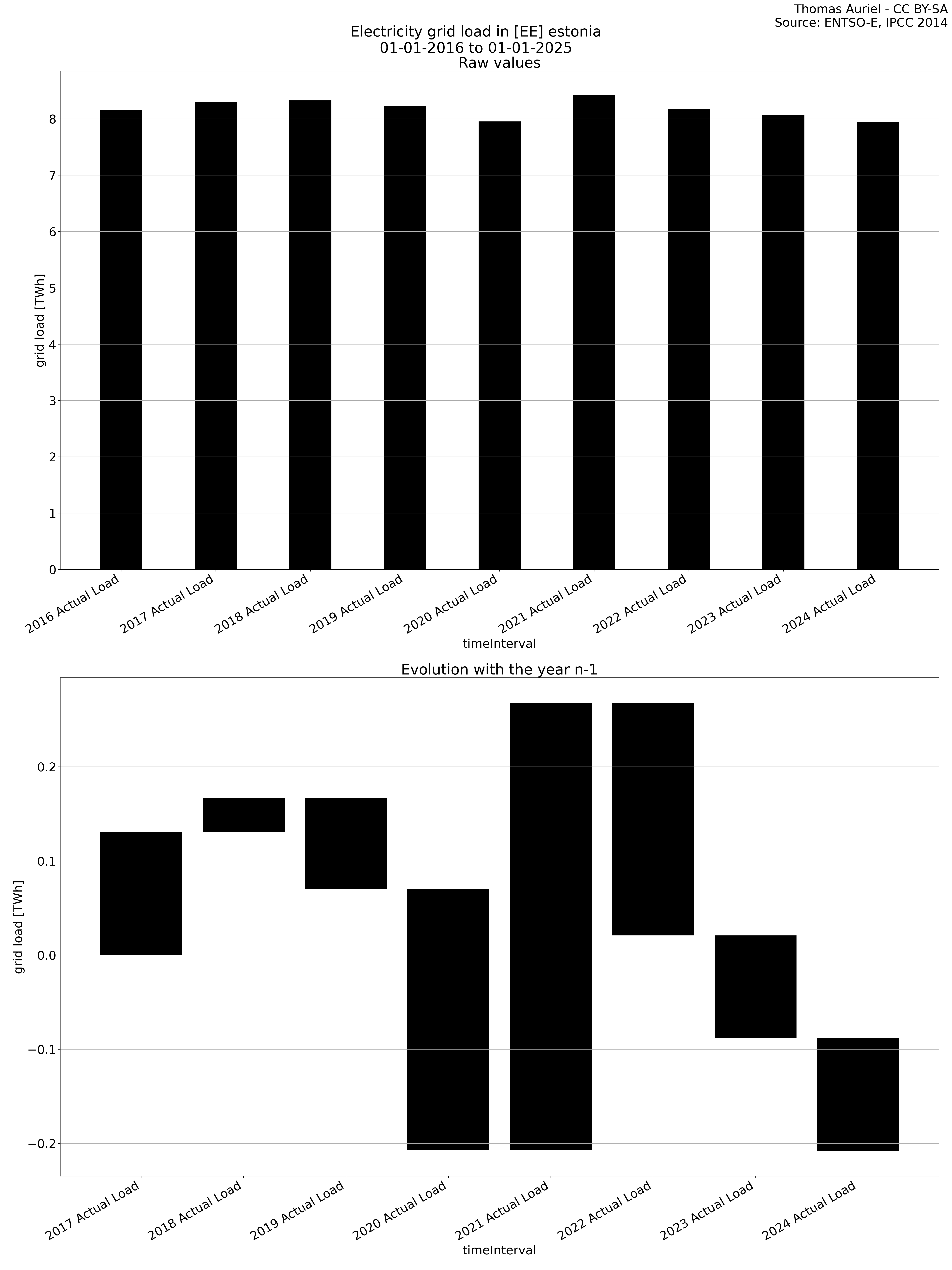 The second section features a waterfall graph, which visually represents the year-over-year changes in electricity metrics. In this graph, the length of each bar corresponds to the difference in the metric (e.g., production, load, etc.) compared to the previous year. Unlike the bar plot, the bars in the waterfall graph do not start at zero; instead, each bar begins where the previous one ended. Hence, this structure emphasizes the incremental changes in the metric over time, facilitating the visualization of fluctuations from one year to the next.
