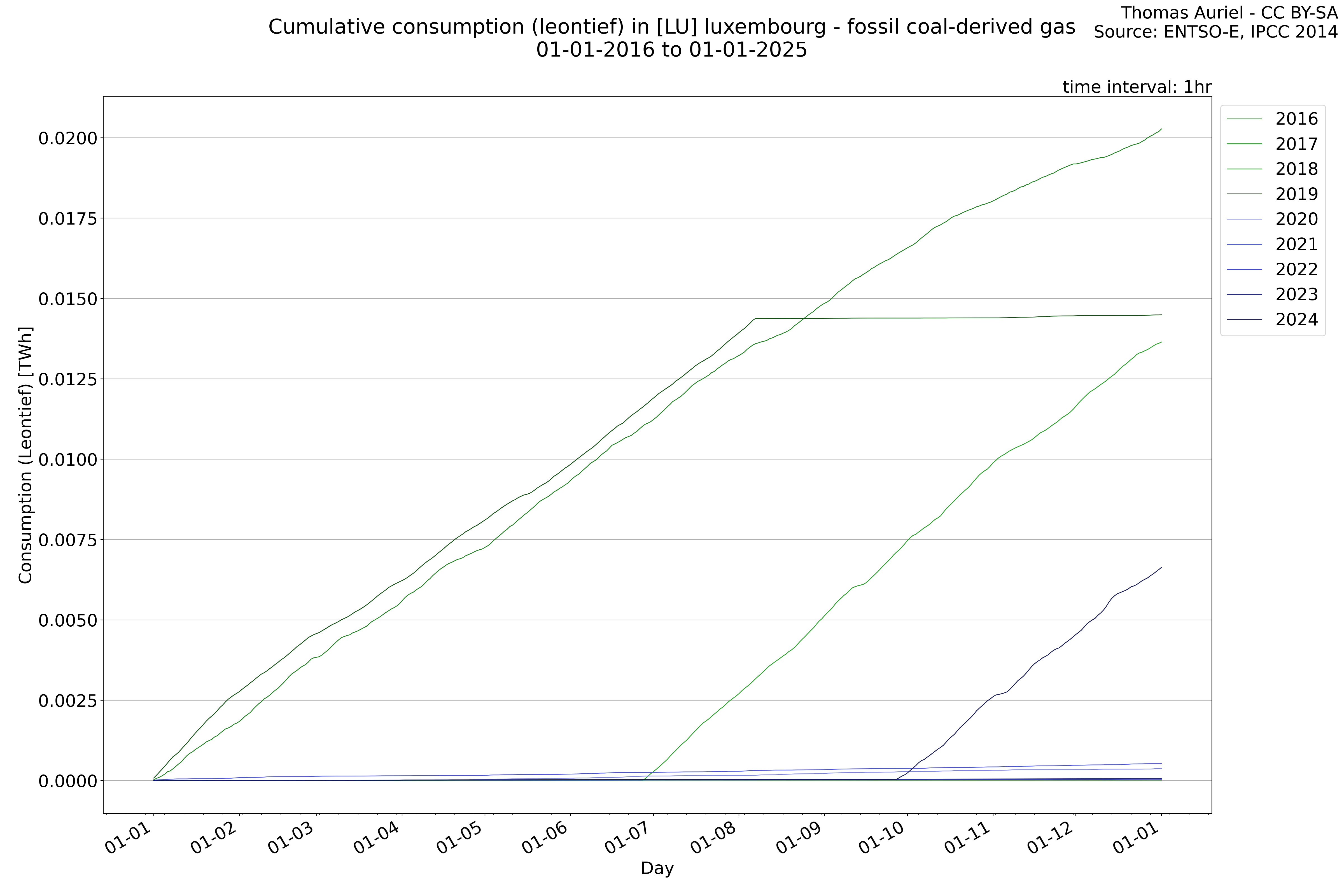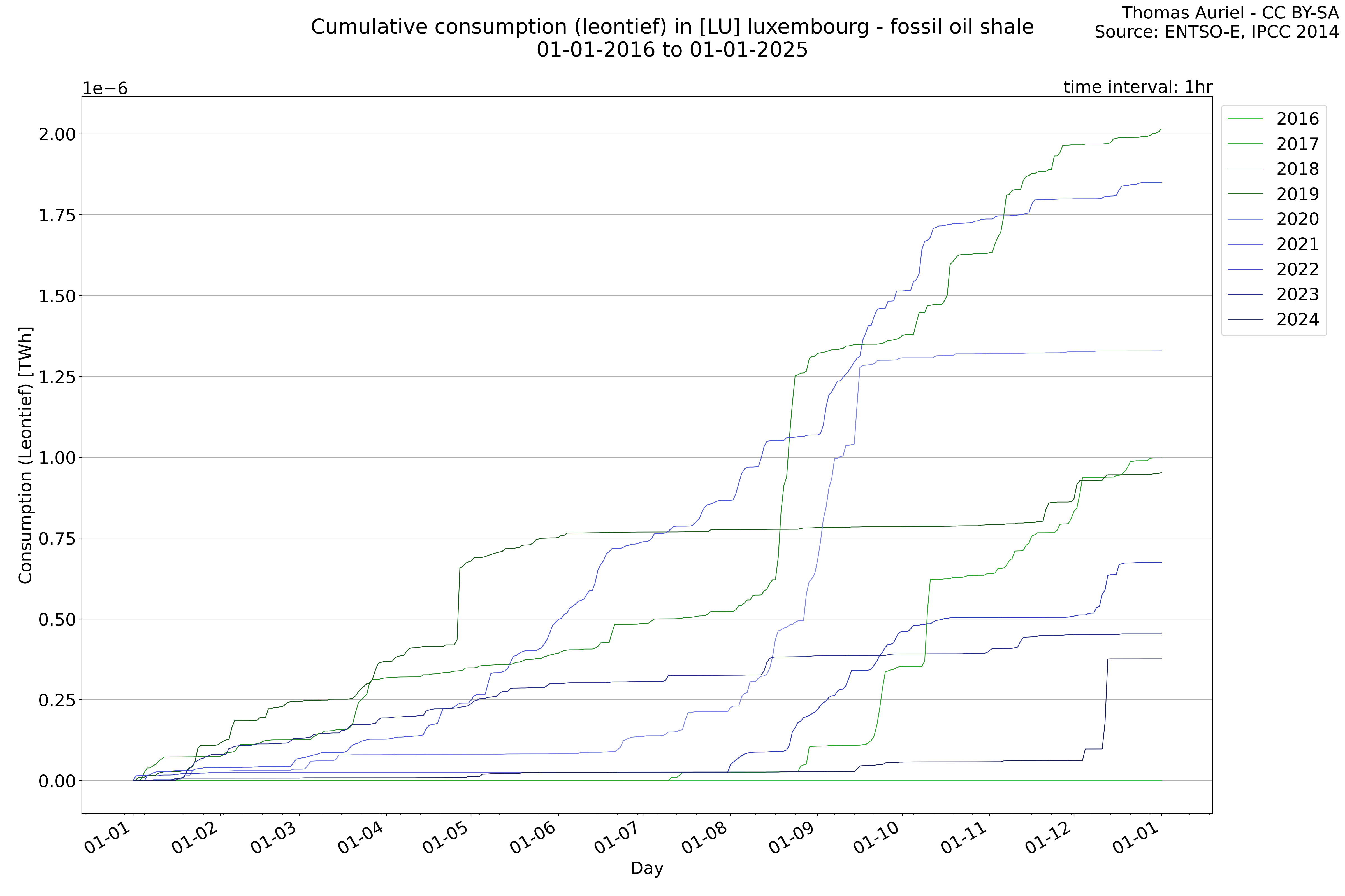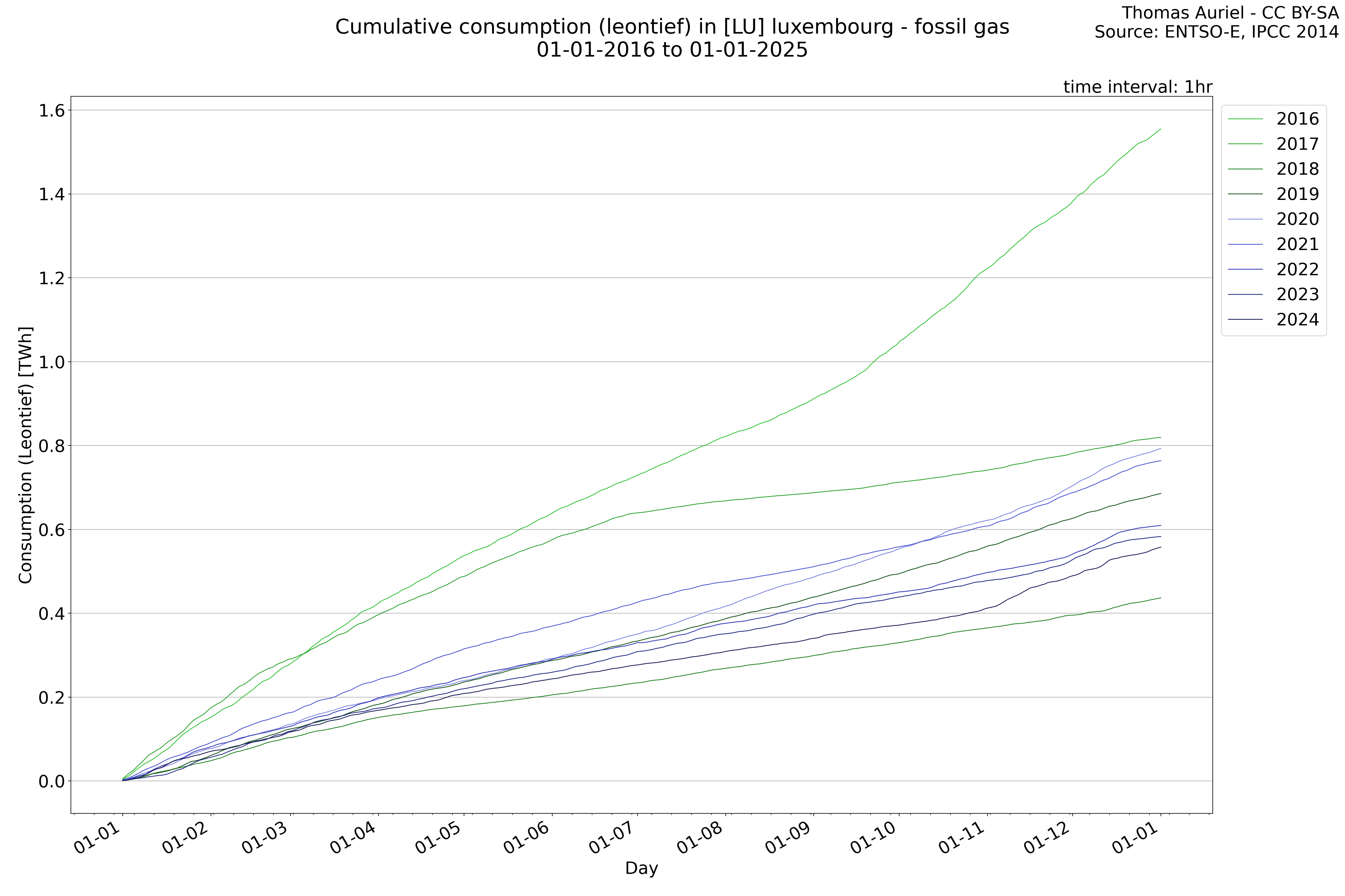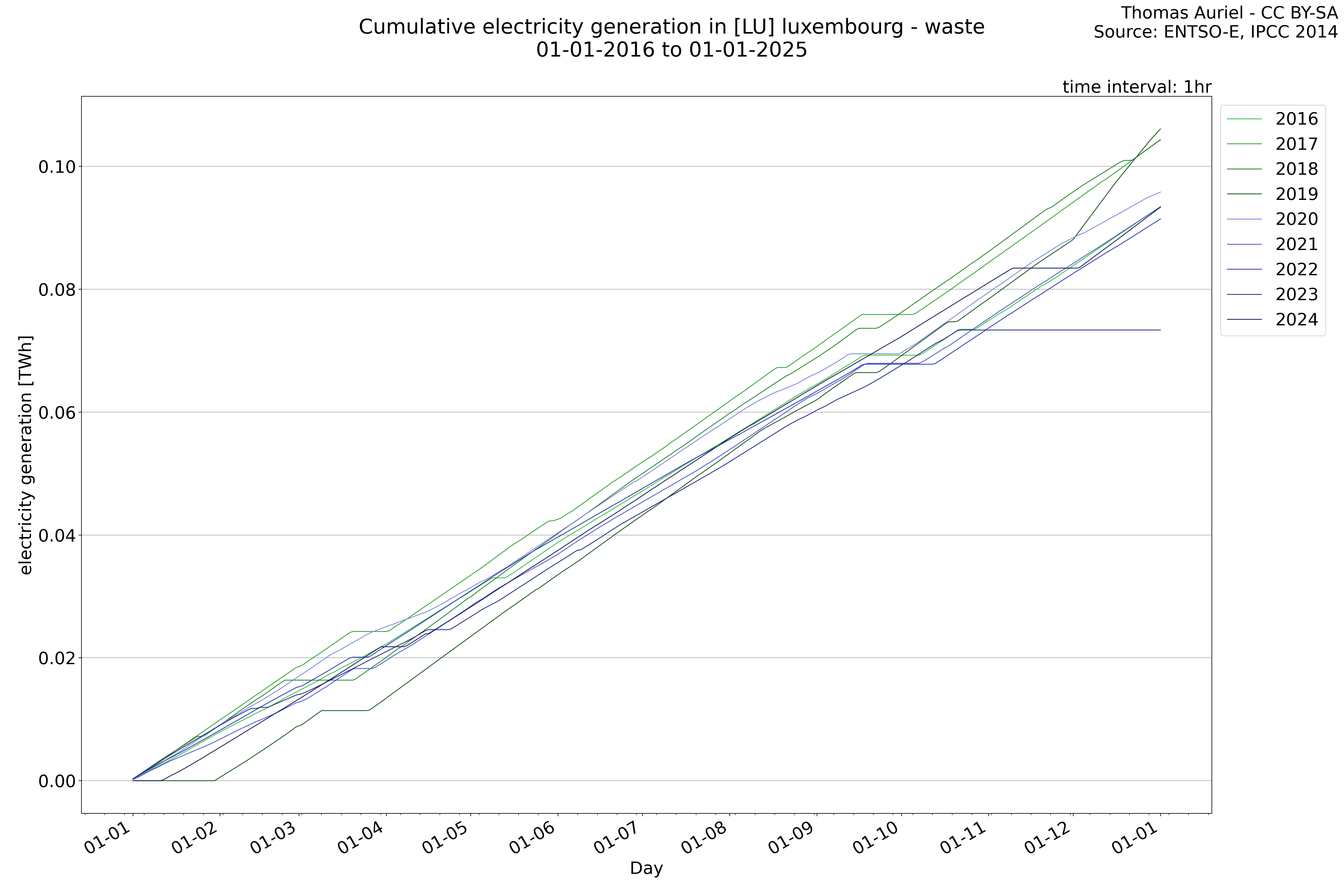 This plot is a cumulative sum plot, where each line represents the cumulative value of a specific metric (e.g., production, load, import, or export) for a given year. The plot begins at zero, and as the year progresses, the cumulative value is updated to reflect the total amount accumulated over time. This visualization illustrates the overall trend of the metric, showing whether the cumulative sum is increasing or decreasing, as well as any changes in the trend within the year. Additionally, the cumulative sum plot helps to reduce the impact of noise and short-term fluctuations commonly present in the raw data of production, load, import, or export. By smoothing out these variations, the plot emphasizes the broader, long-term trends. Consequently, this type of visualization facilitates a clearer understanding of the metric’s evolution across the year, revealing whether the activity follows a steady trajectory, shows signs of volatility, or experiences periods of significant change.