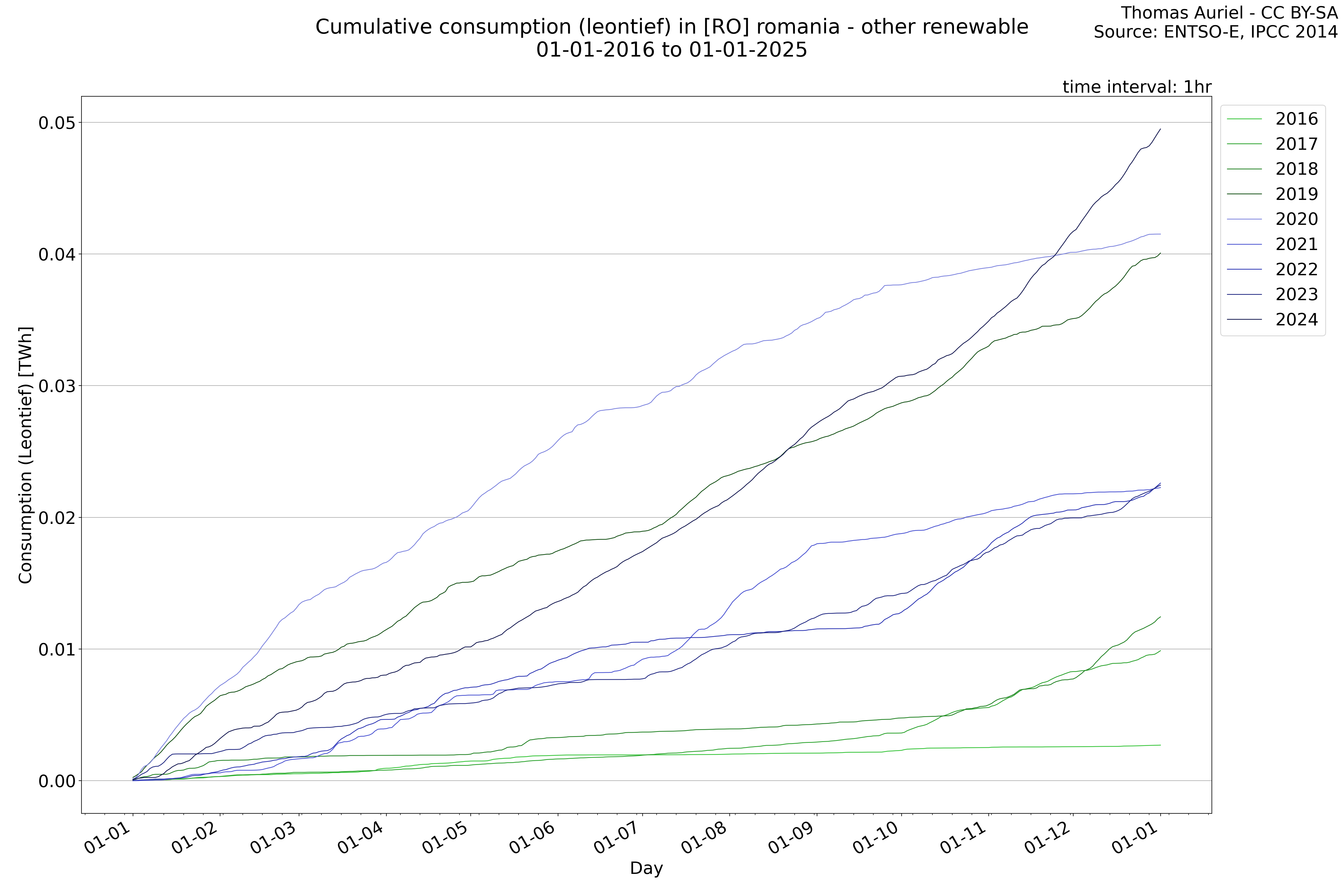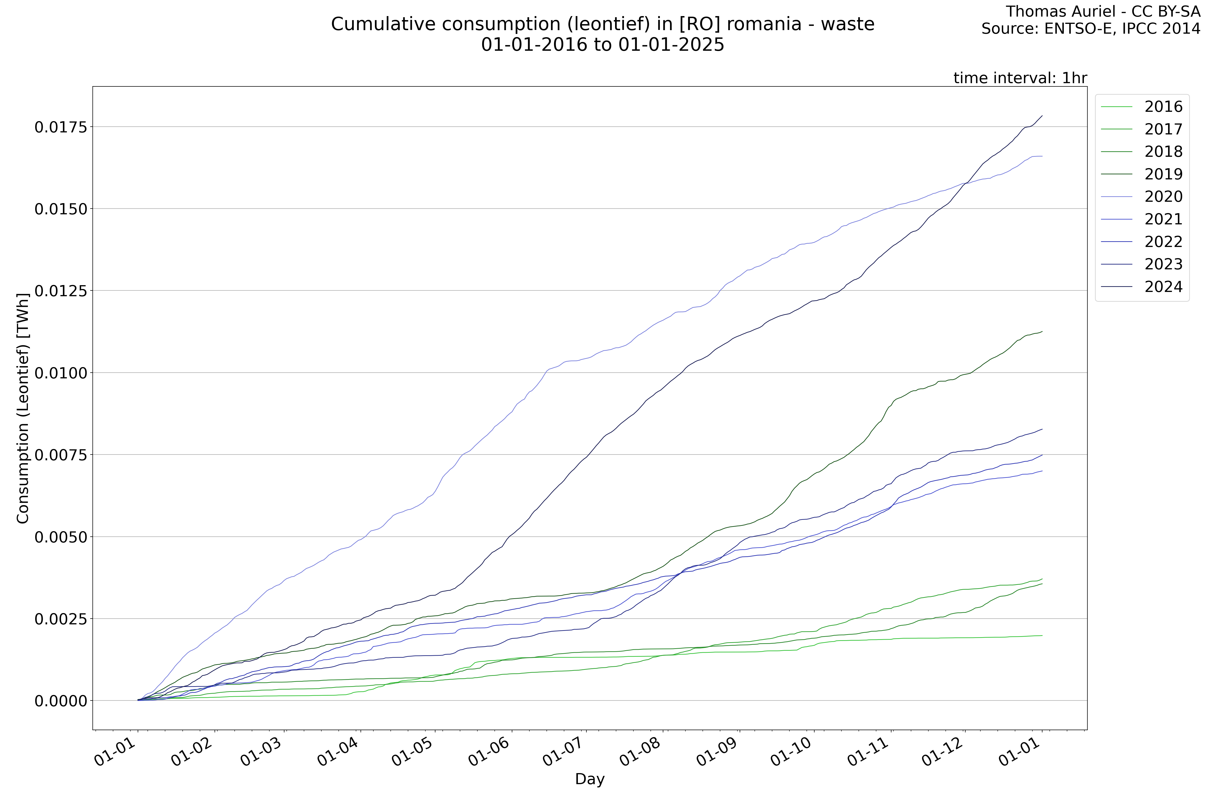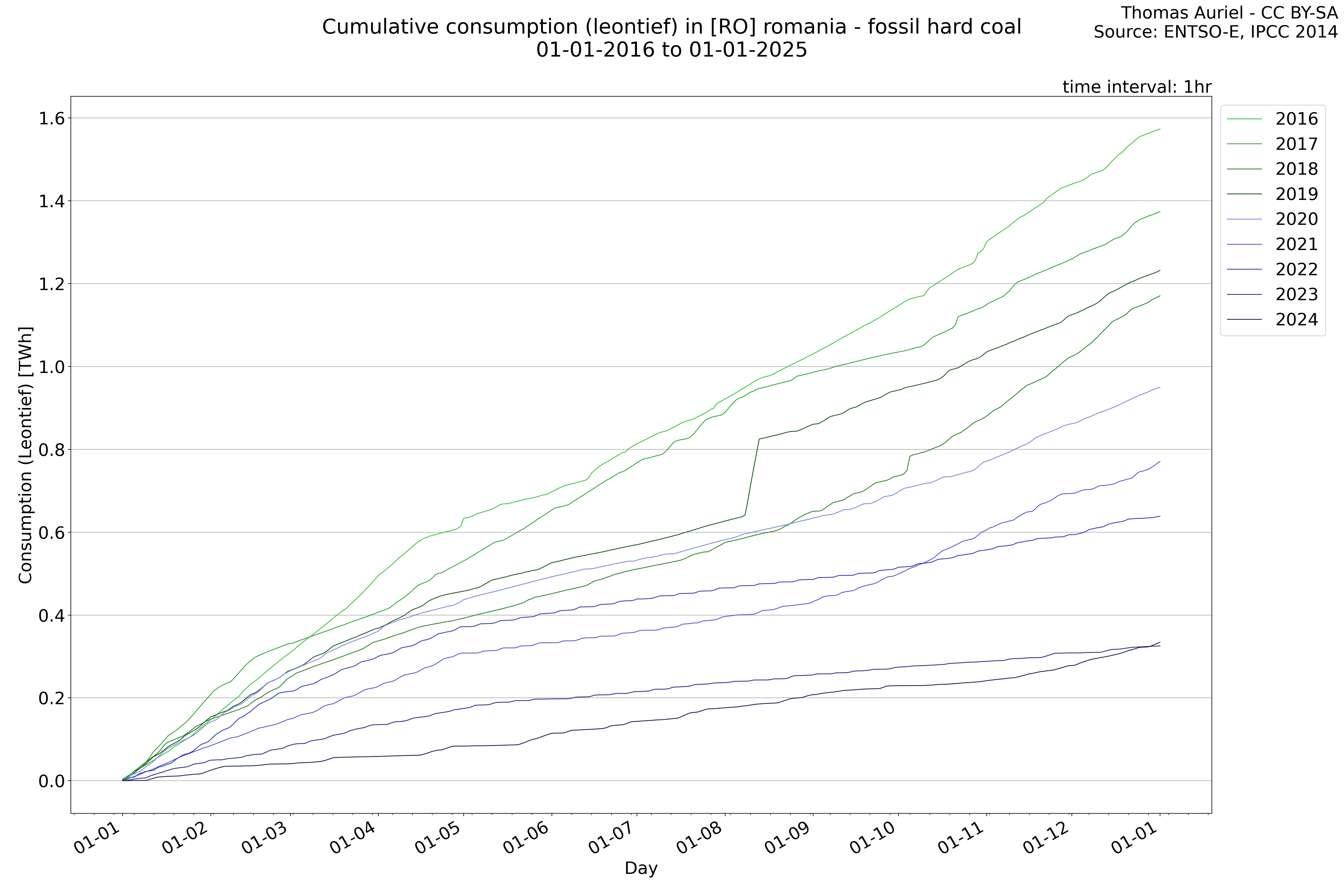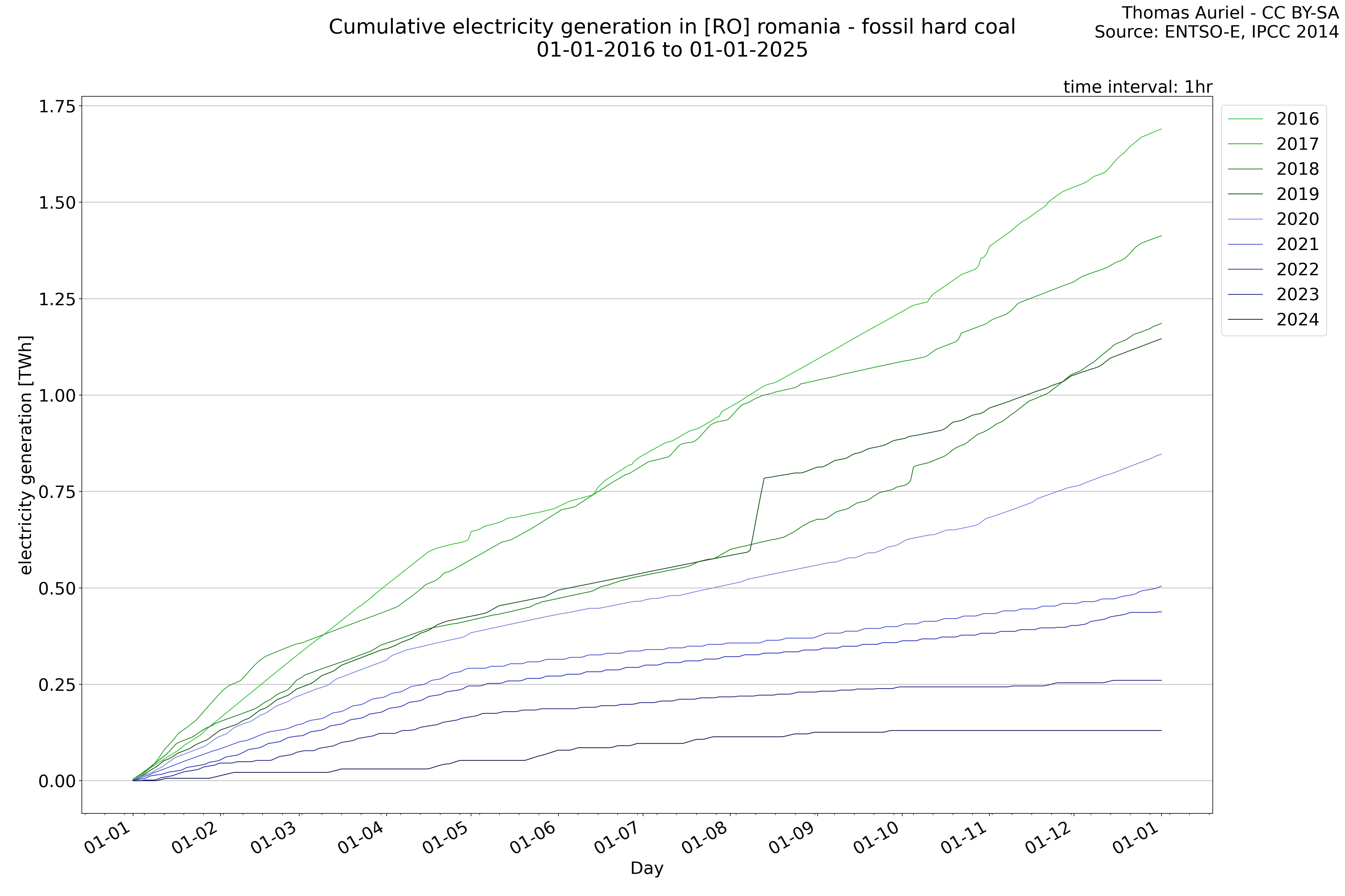 This plot is a cumulative sum plot, where each line represents the cumulative value of a specific metric (e.g., production, load, import, or export) for a given year. The plot begins at zero, and as the year progresses, the cumulative value is updated to reflect the total amount accumulated over time. This visualization illustrates the overall trend of the metric, showing whether the cumulative sum is increasing or decreasing, as well as any changes in the trend within the year. Additionally, the cumulative sum plot helps to reduce the impact of noise and short-term fluctuations commonly present in the raw data of production, load, import, or export. By smoothing out these variations, the plot emphasizes the broader, long-term trends. Consequently, this type of visualization facilitates a clearer understanding of the metric’s evolution across the year, revealing whether the activity follows a steady trajectory, shows signs of volatility, or experiences periods of significant change.