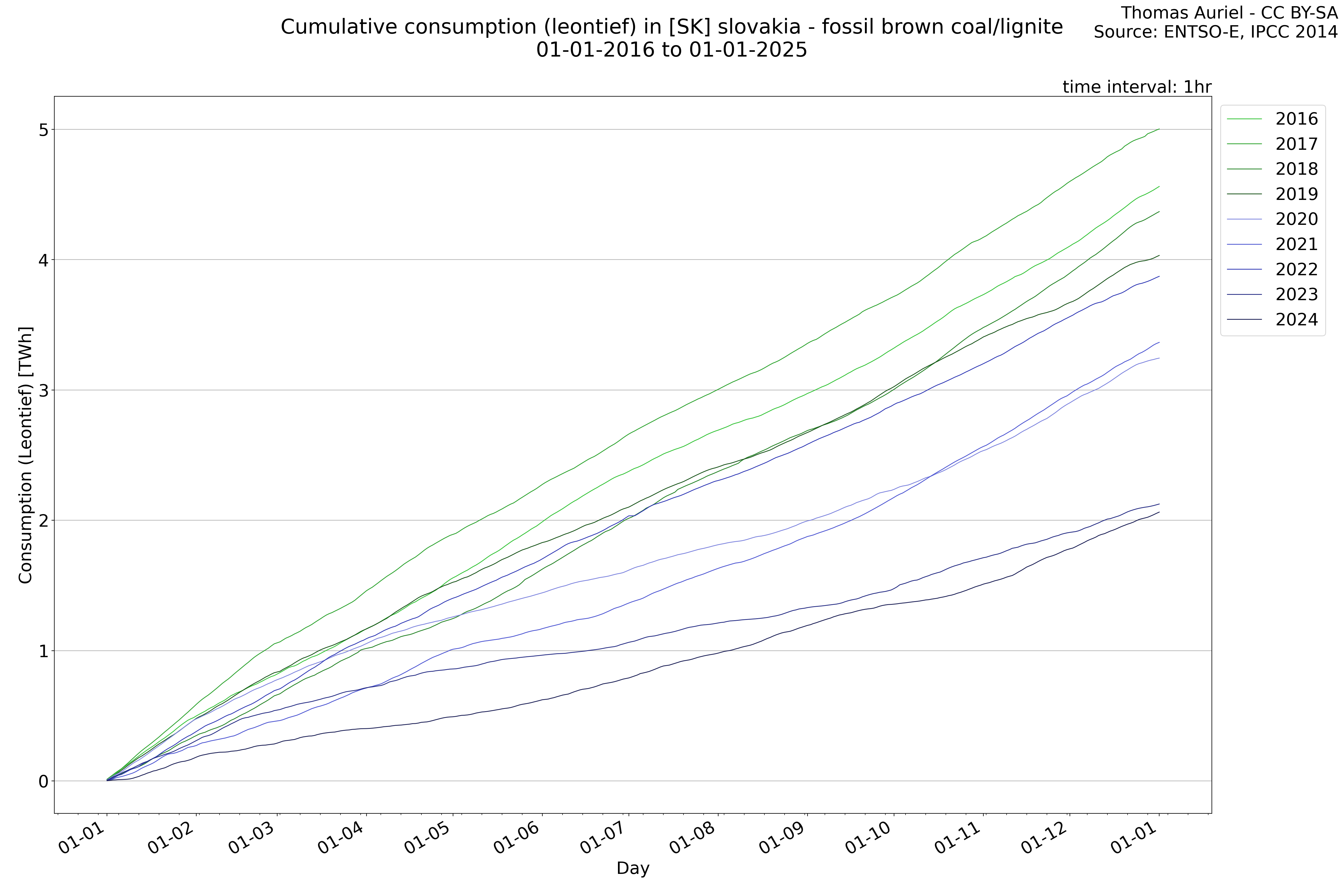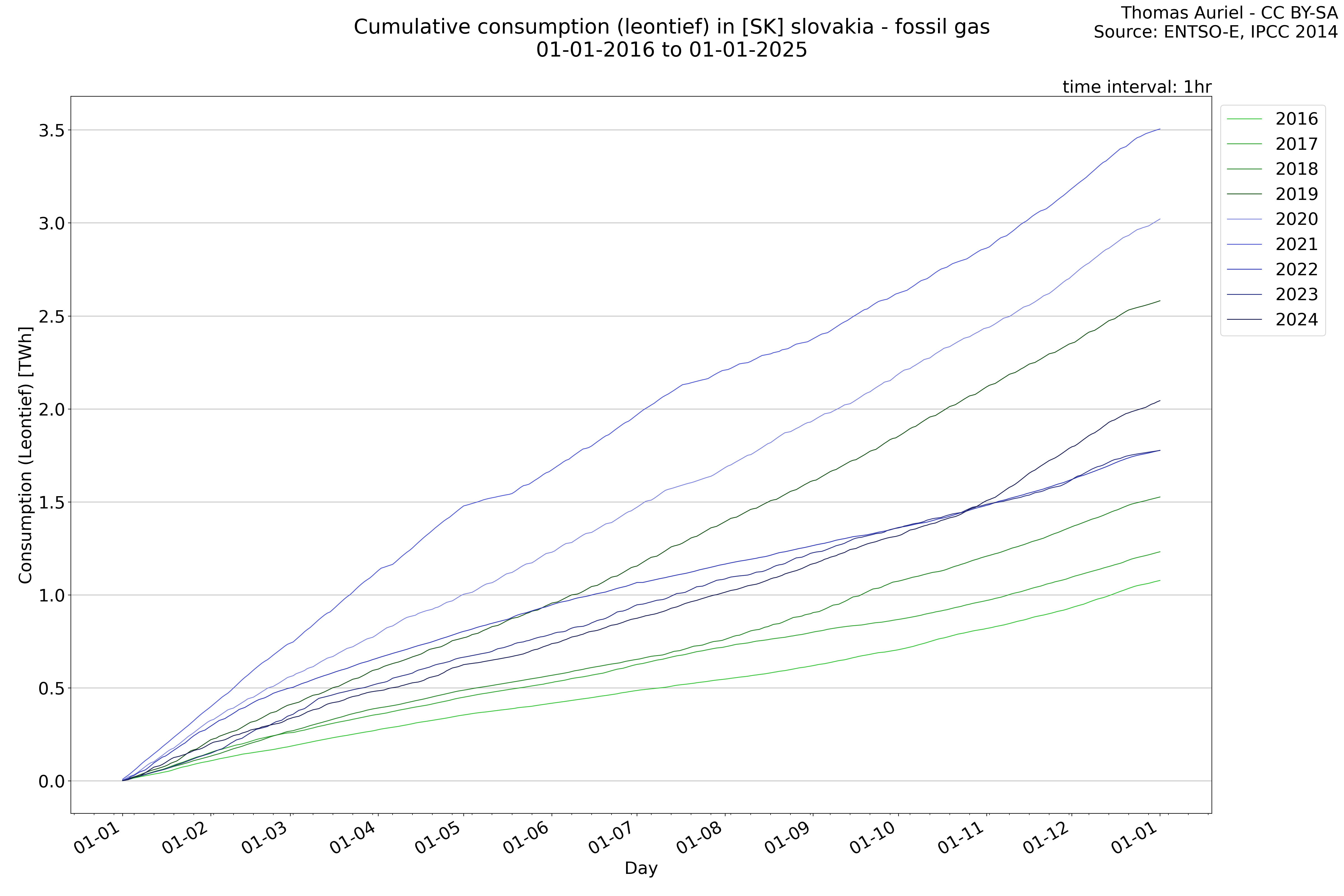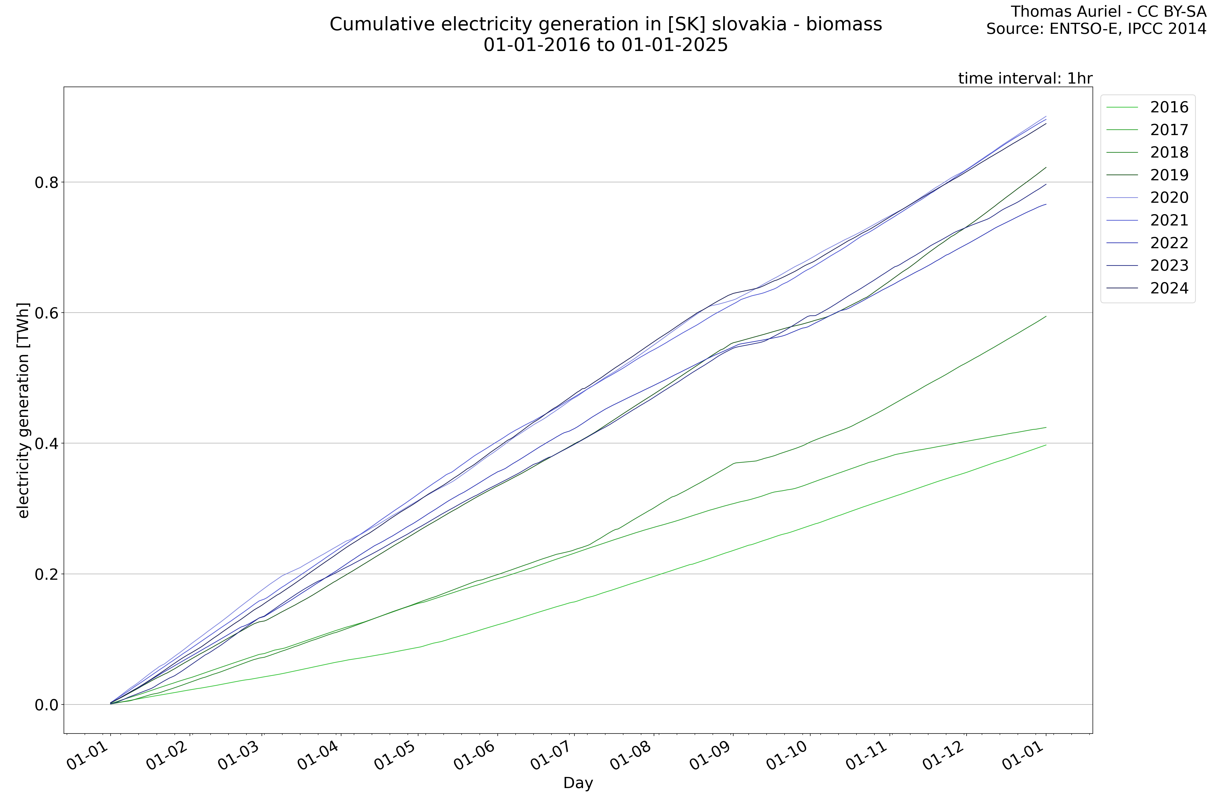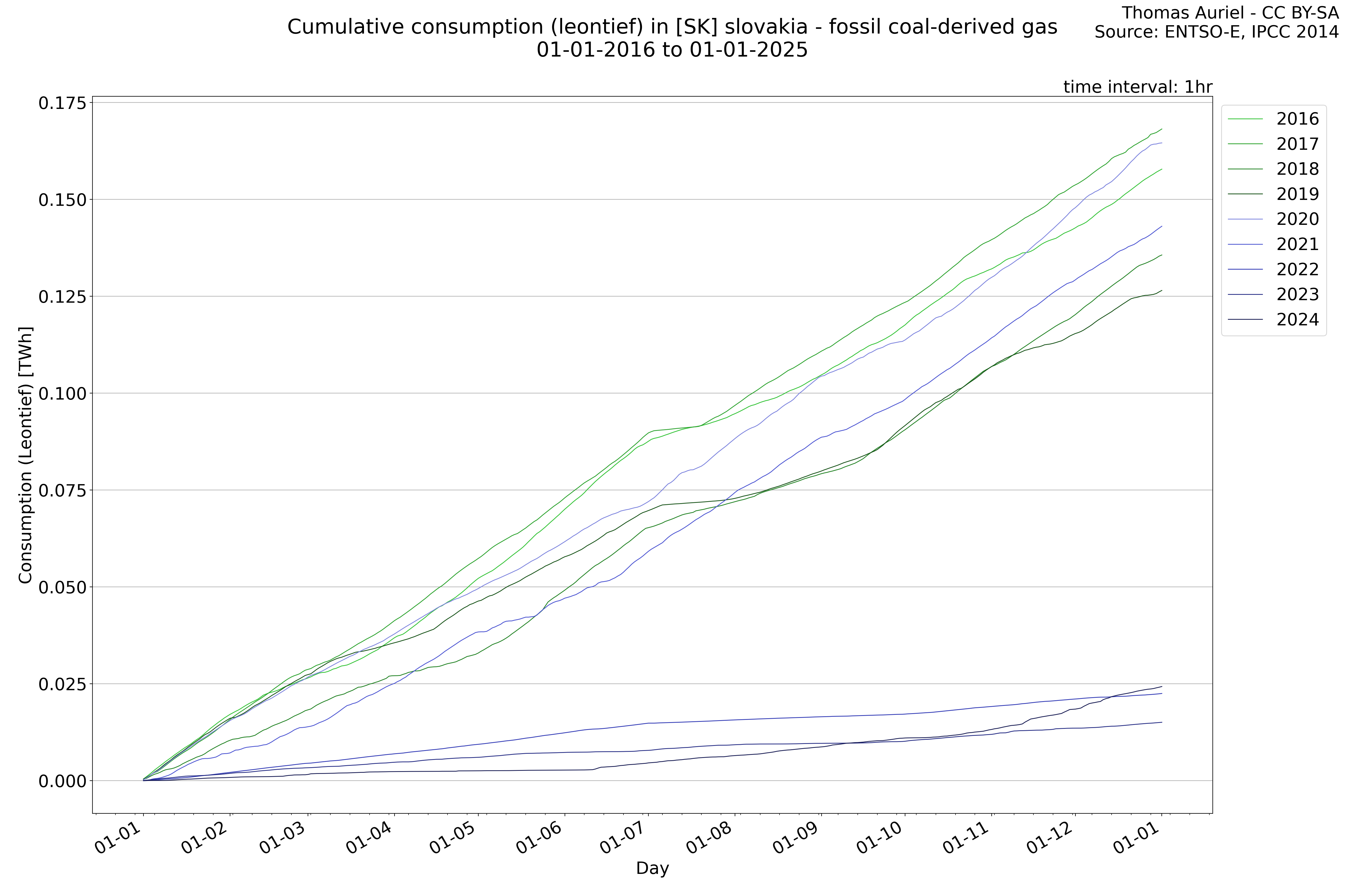 This plot is a cumulative sum plot, where each line represents the cumulative value of a specific metric (e.g., production, load, import, or export) for a given year. The plot begins at zero, and as the year progresses, the cumulative value is updated to reflect the total amount accumulated over time. This visualization illustrates the overall trend of the metric, showing whether the cumulative sum is increasing or decreasing, as well as any changes in the trend within the year. Additionally, the cumulative sum plot helps to reduce the impact of noise and short-term fluctuations commonly present in the raw data of production, load, import, or export. By smoothing out these variations, the plot emphasizes the broader, long-term trends. Consequently, this type of visualization facilitates a clearer understanding of the metric’s evolution across the year, revealing whether the activity follows a steady trajectory, shows signs of volatility, or experiences periods of significant change.