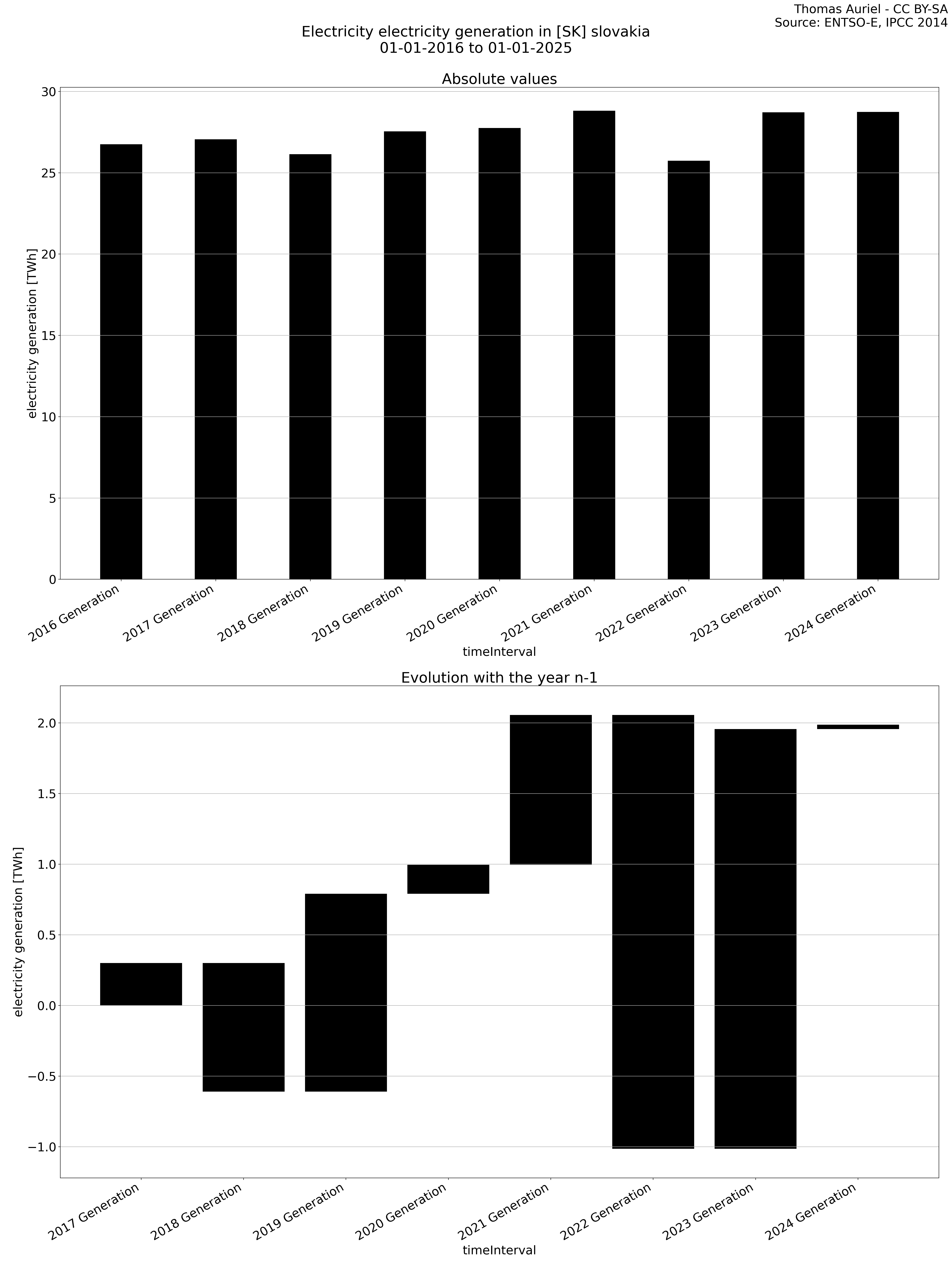The first section consists of a bar plot. Each bar represents a specific electricity metric — such as production, generation, load, import, or export — over the course of a year. The bars are grouped by category, with each category further sorted by year. Therefore, this organization enables a clear comparison of the respective activities within each category across the years.