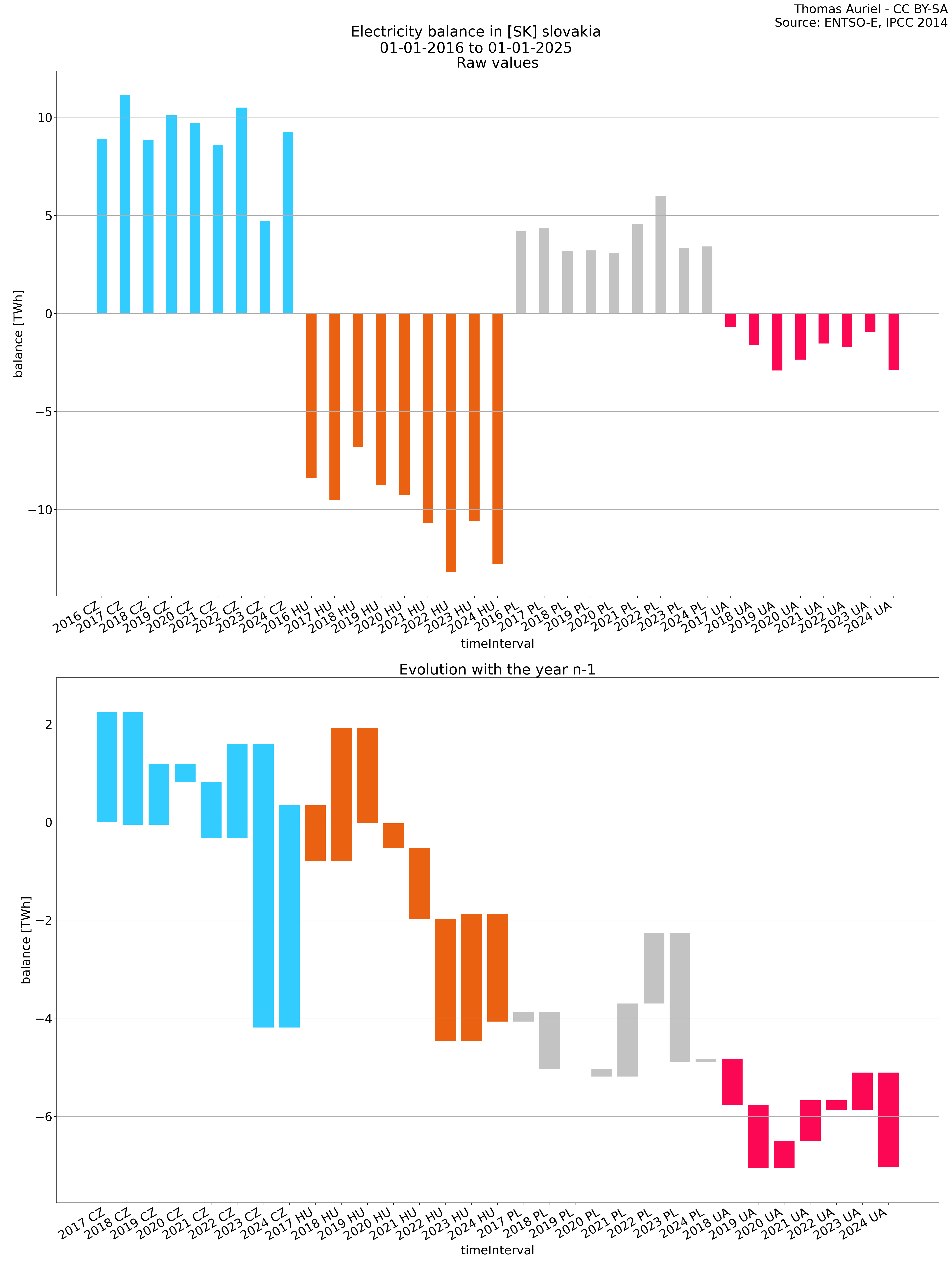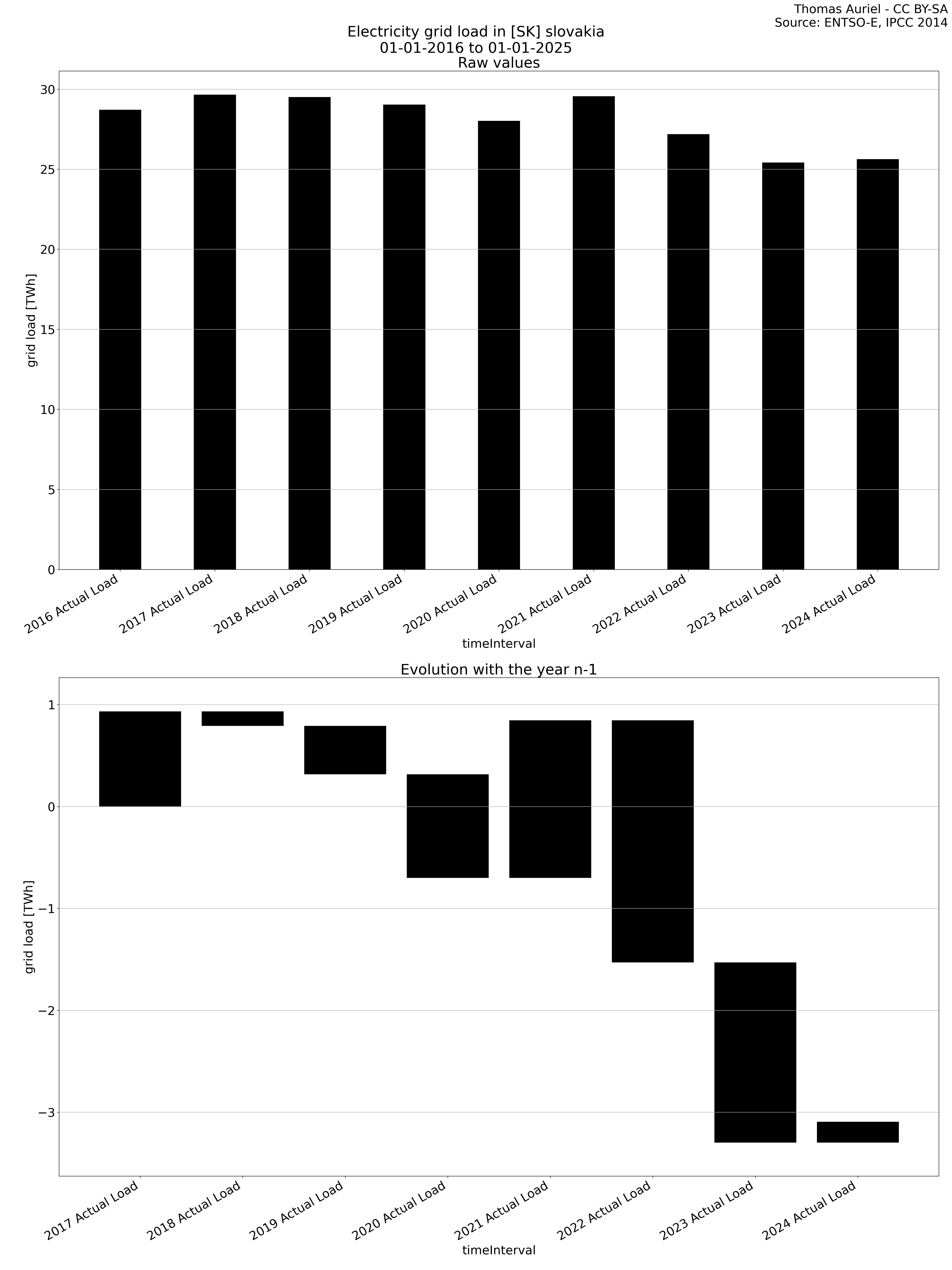 The second section features a waterfall graph, which visually represents the year-over-year changes in electricity metrics. In this graph, the length of each bar corresponds to the difference in the metric (e.g., production, load, etc.) compared to the previous year. Unlike the bar plot, the bars in the waterfall graph do not start at zero; instead, each bar begins where the previous one ended. Hence, this structure emphasizes the incremental changes in the metric over time, facilitating the visualization of fluctuations from one year to the next.