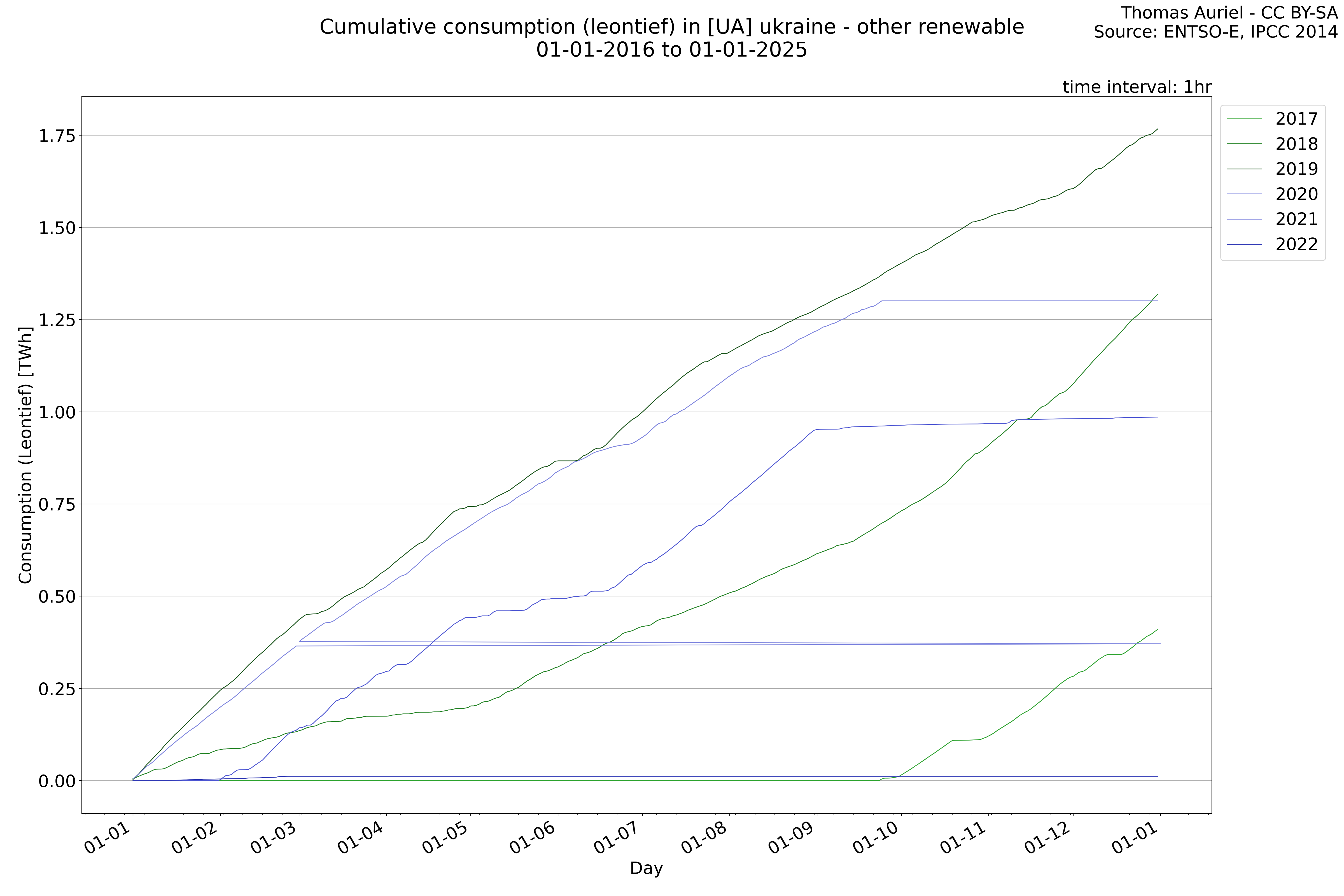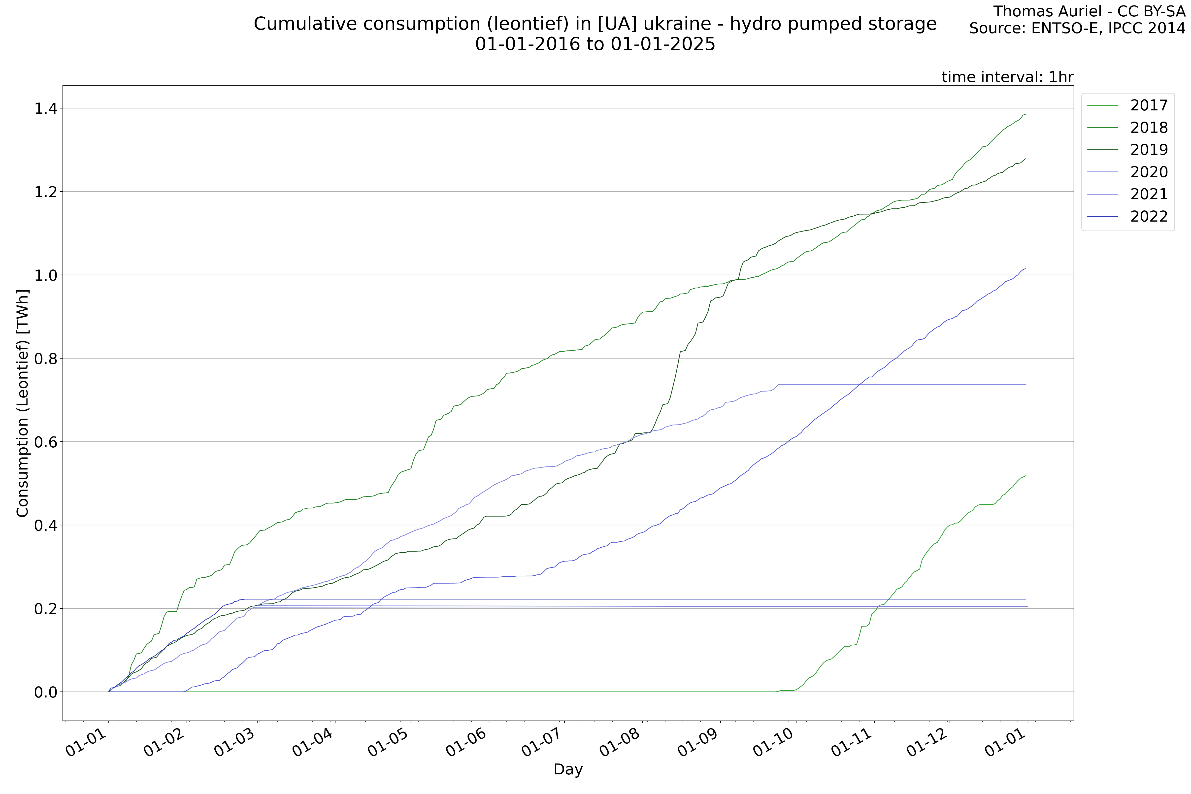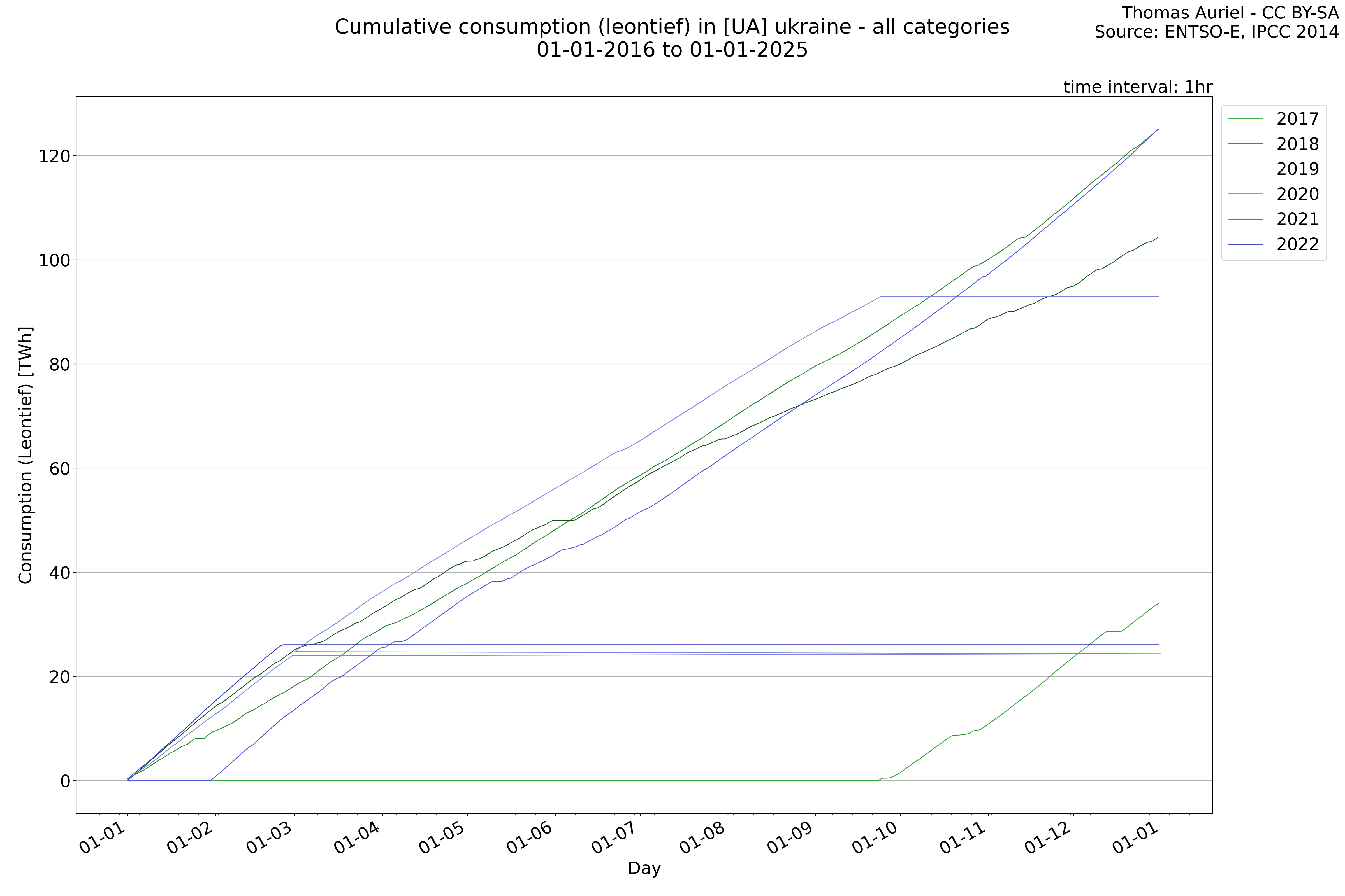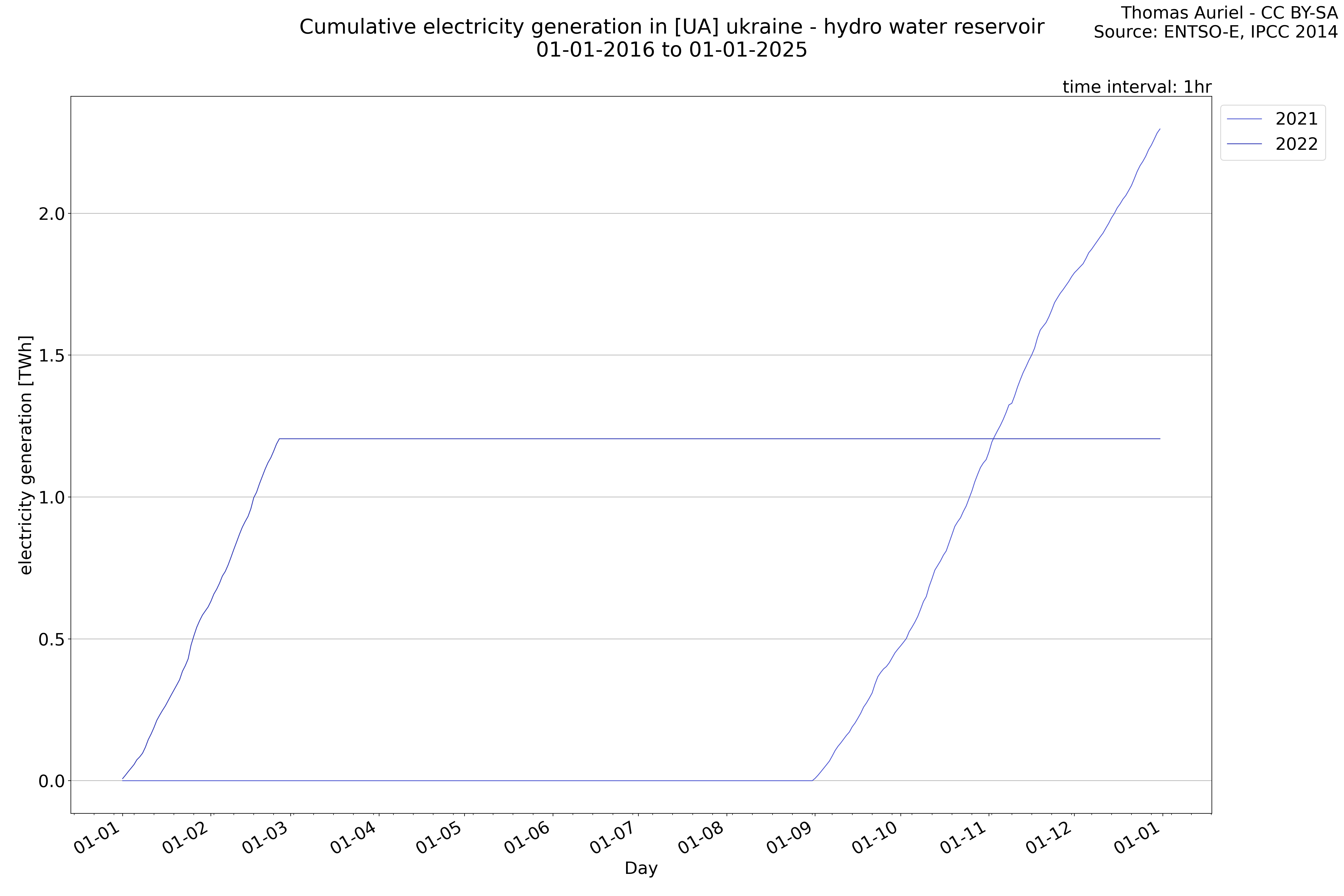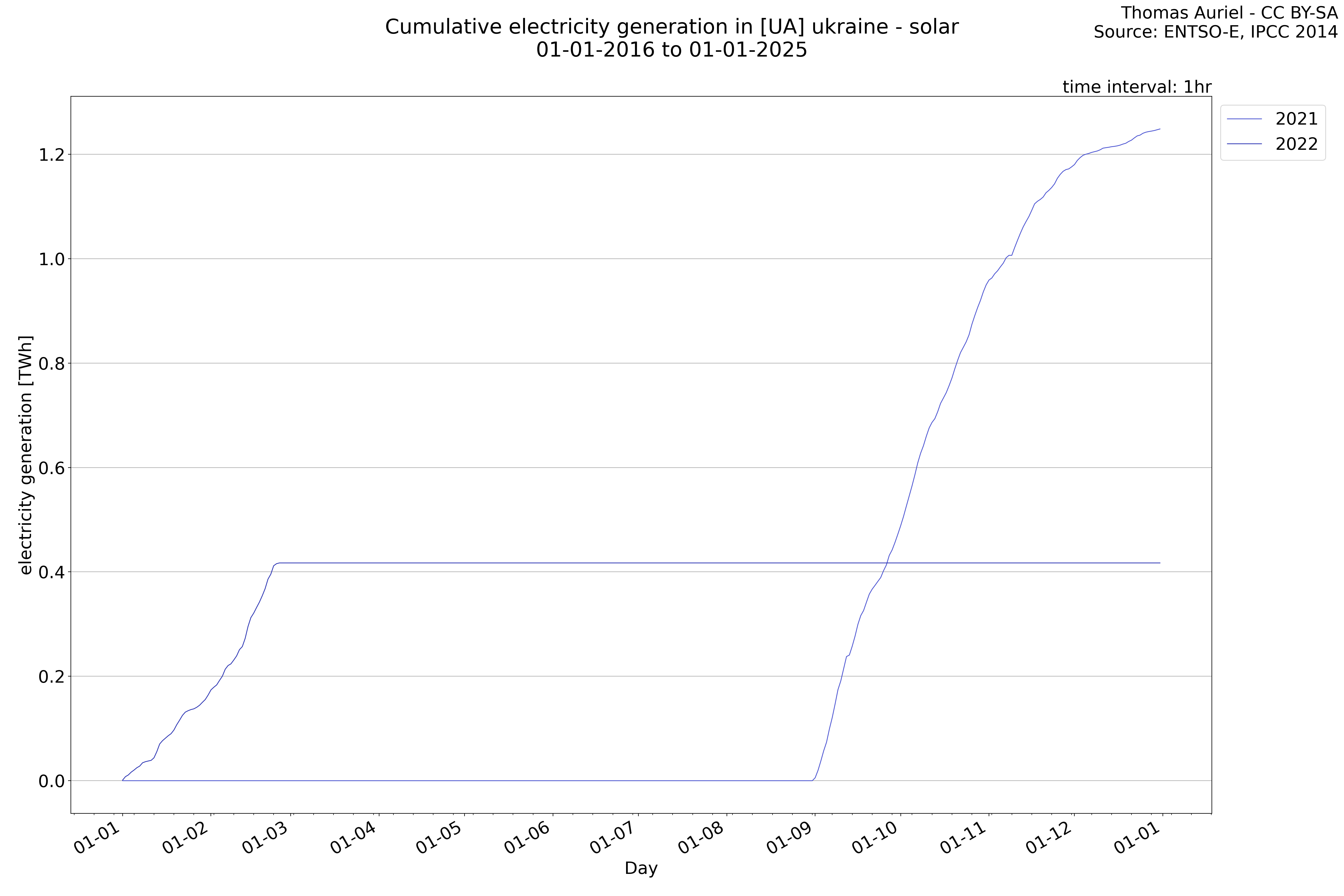 This plot is a cumulative sum plot, where each line represents the cumulative value of a specific metric (e.g., production, load, import, or export) for a given year. The plot begins at zero, and as the year progresses, the cumulative value is updated to reflect the total amount accumulated over time. This visualization illustrates the overall trend of the metric, showing whether the cumulative sum is increasing or decreasing, as well as any changes in the trend within the year. Additionally, the cumulative sum plot helps to reduce the impact of noise and short-term fluctuations commonly present in the raw data of production, load, import, or export. By smoothing out these variations, the plot emphasizes the broader, long-term trends. Consequently, this type of visualization facilitates a clearer understanding of the metric’s evolution across the year, revealing whether the activity follows a steady trajectory, shows signs of volatility, or experiences periods of significant change.